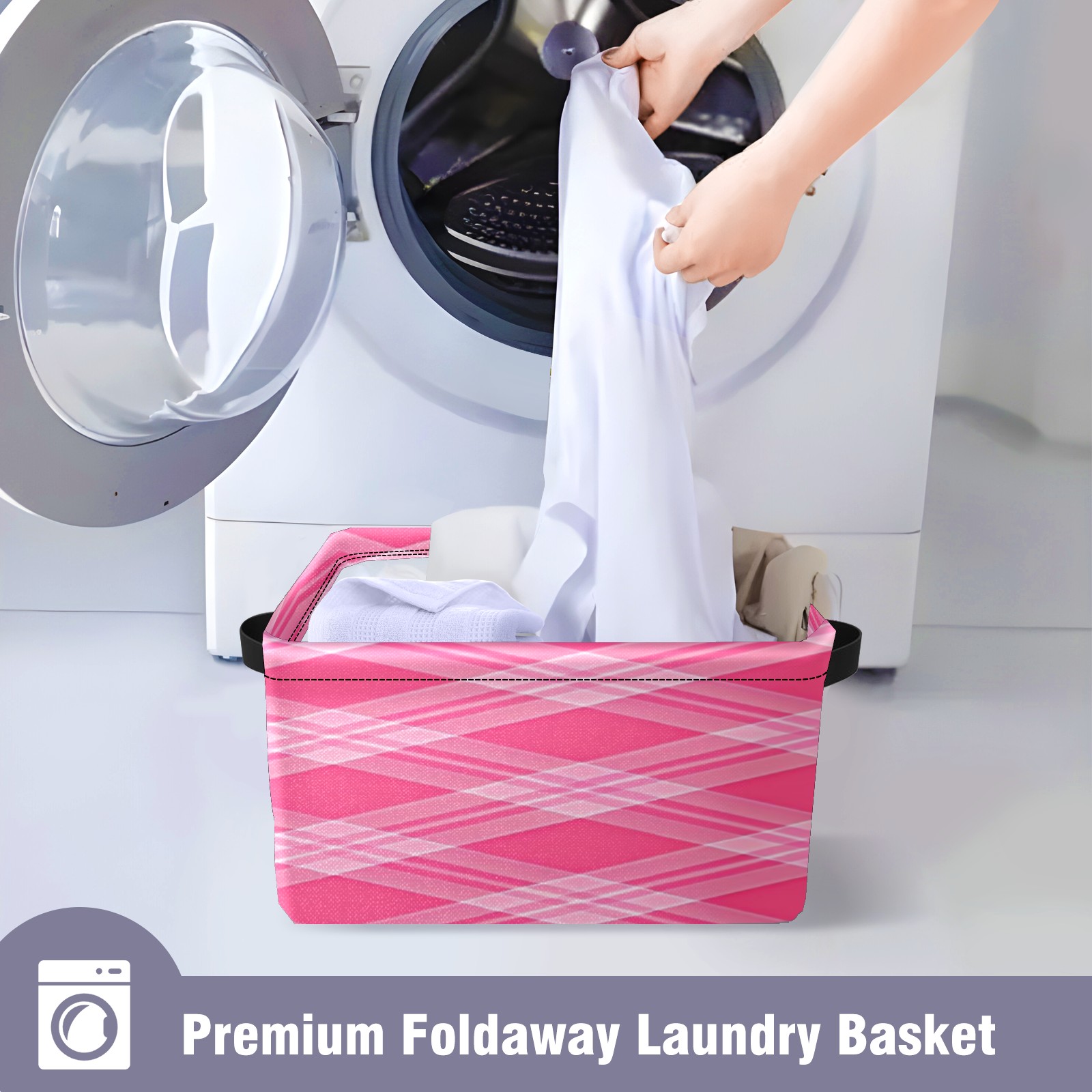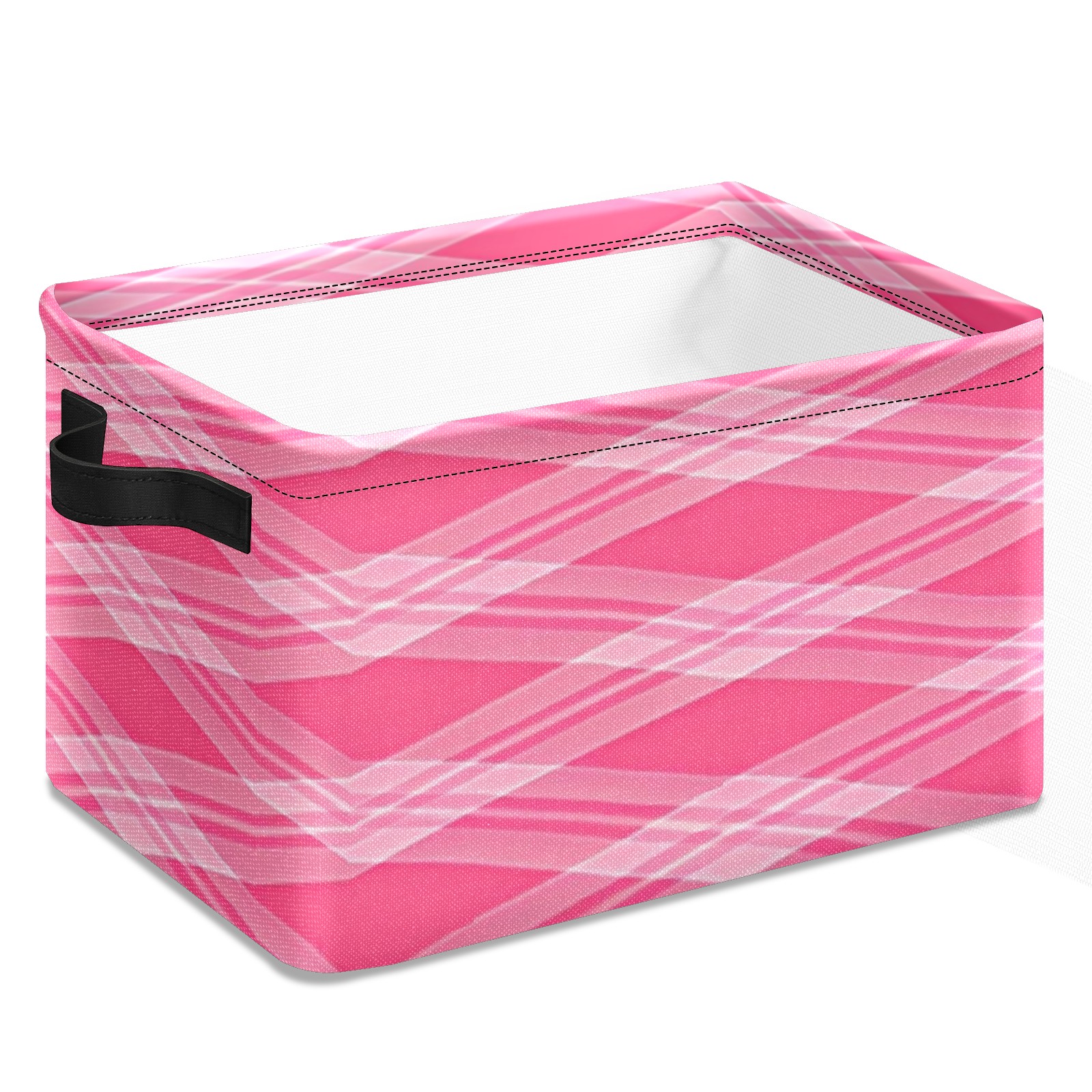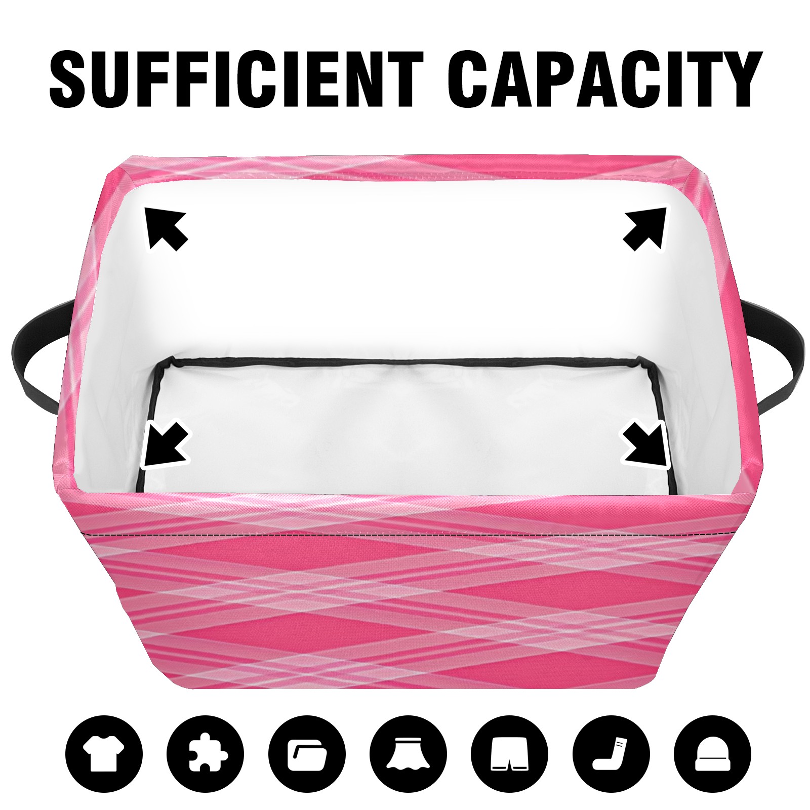 Foldable and Stackable Fabric Storage Basket for Home Organization with Handles, Decorative Closet Bins for Shelves, Laundry, and Toy Storage( Pink White Checkered)