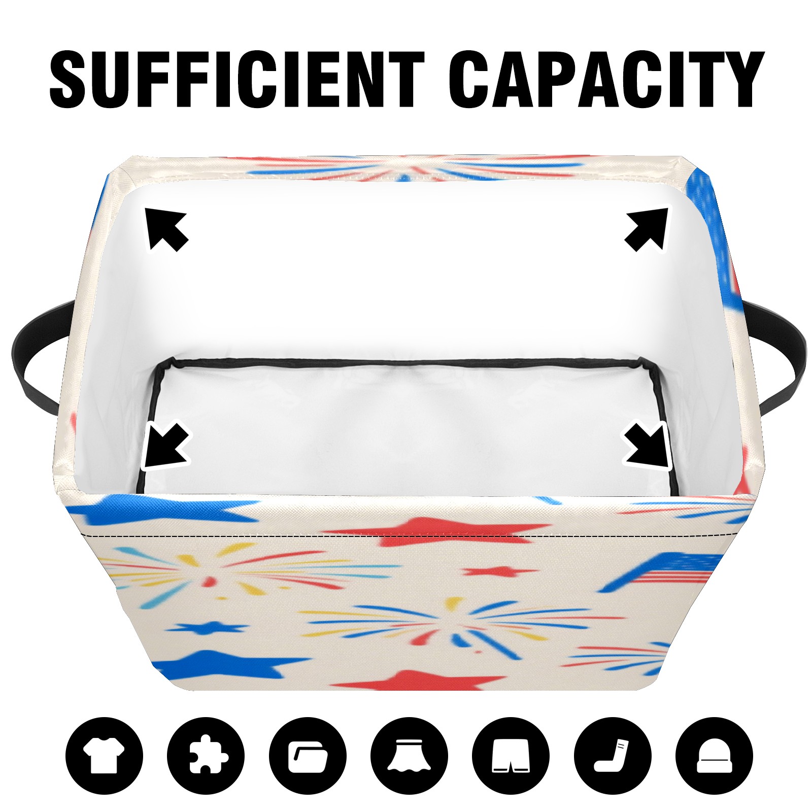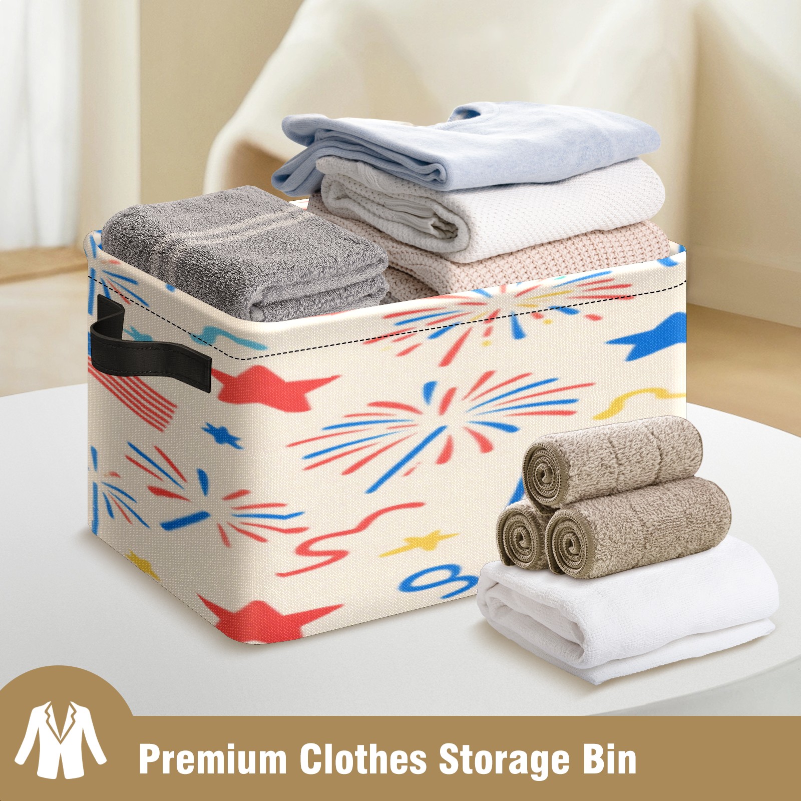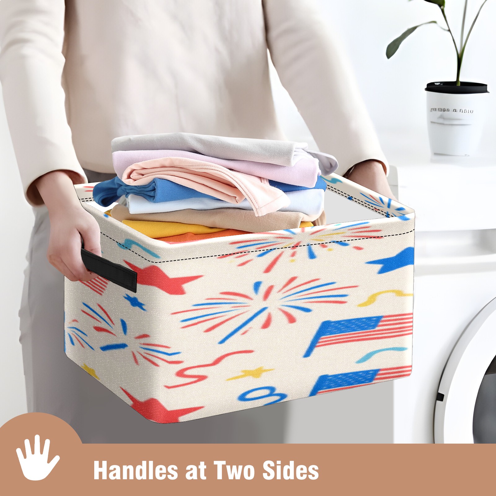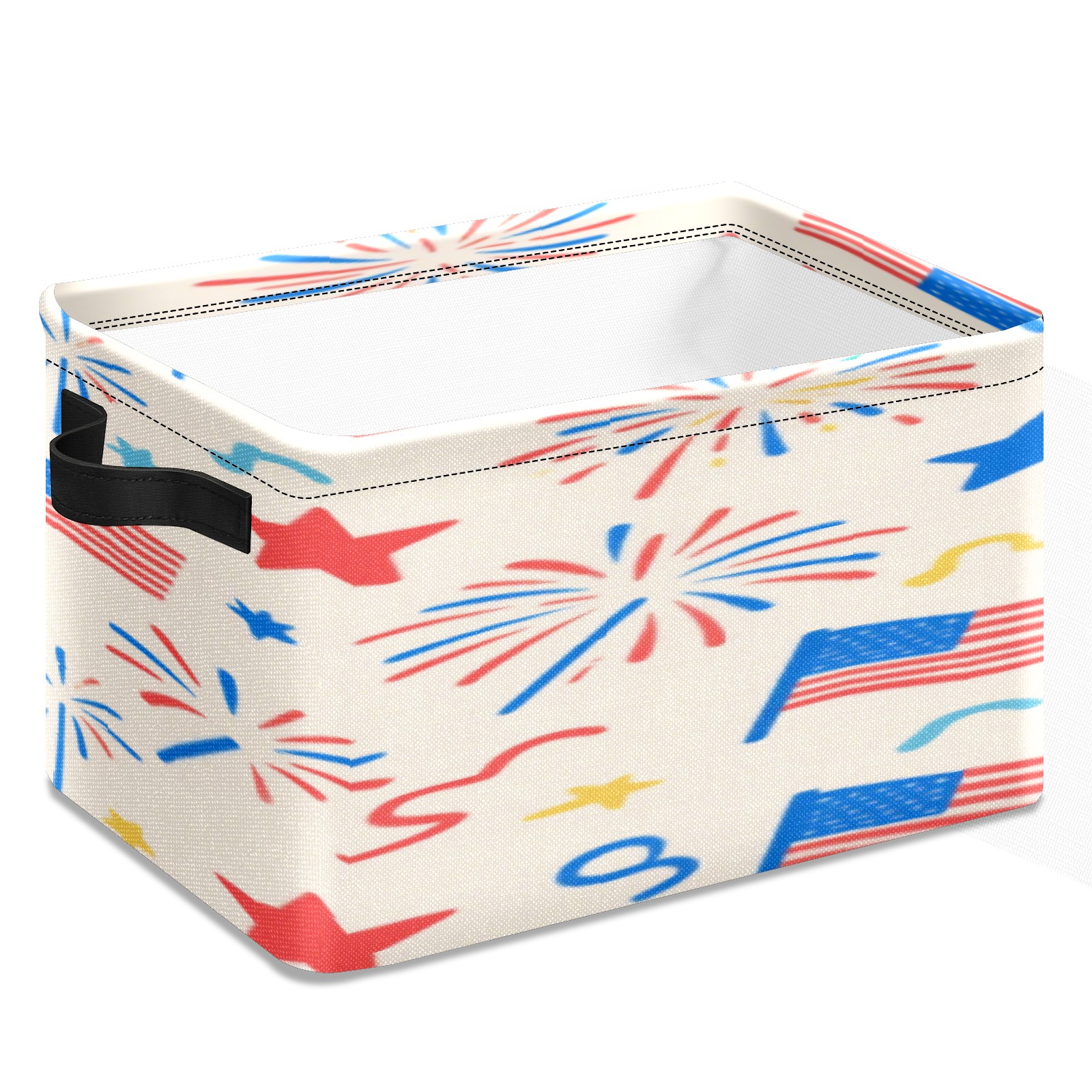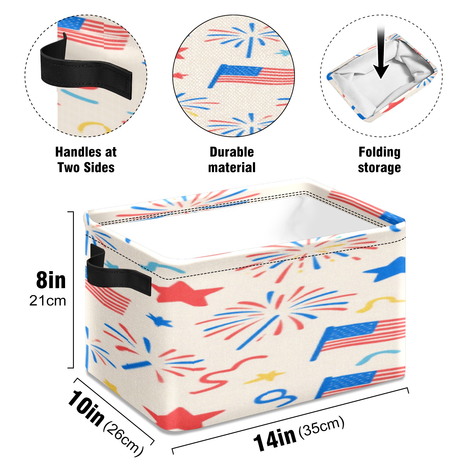 Foldable and Stackable Fabric Storage Basket for Home Organization with Handles, Decorative Closet Bins for Shelves, Laundry, and Toy Storage( American Flag Firework)