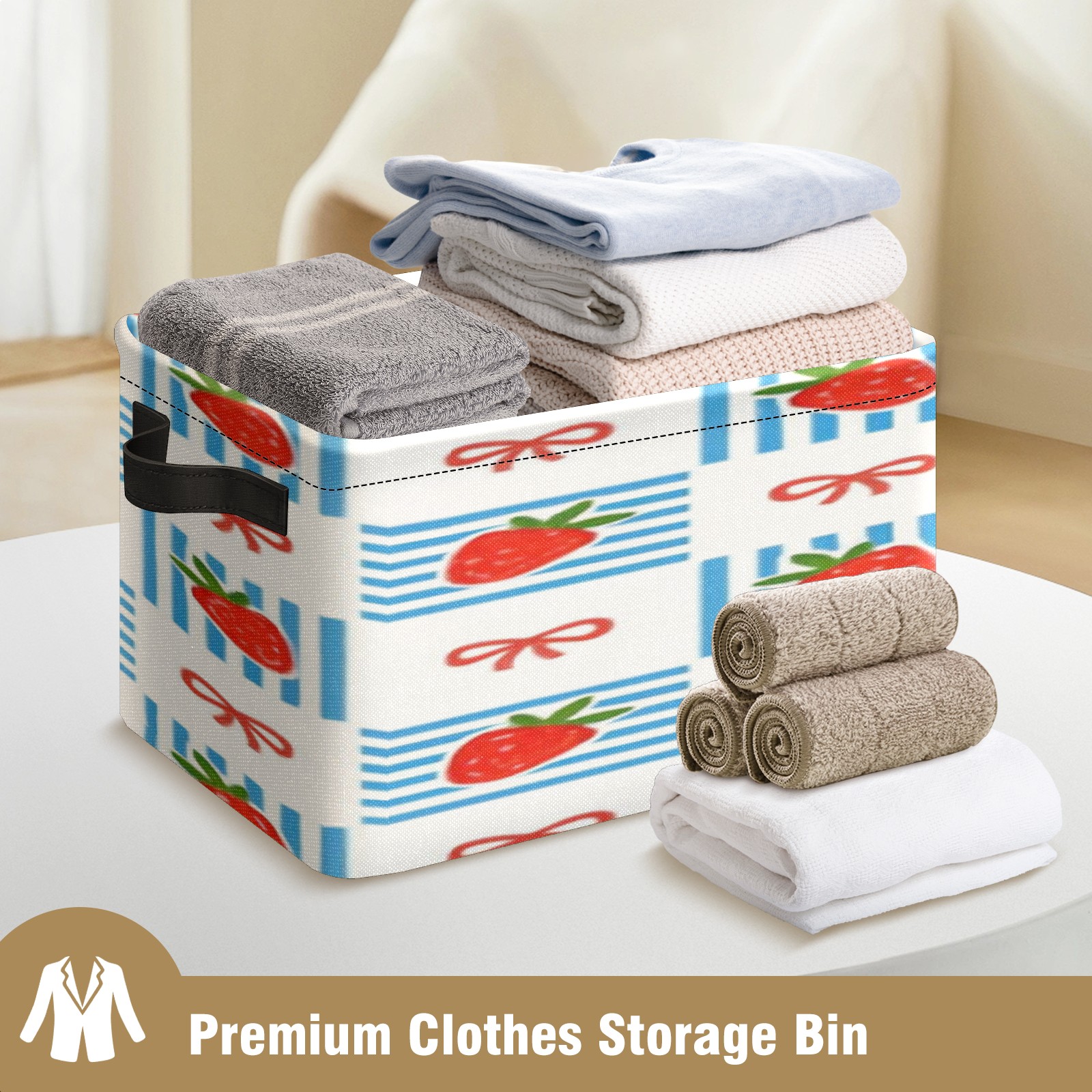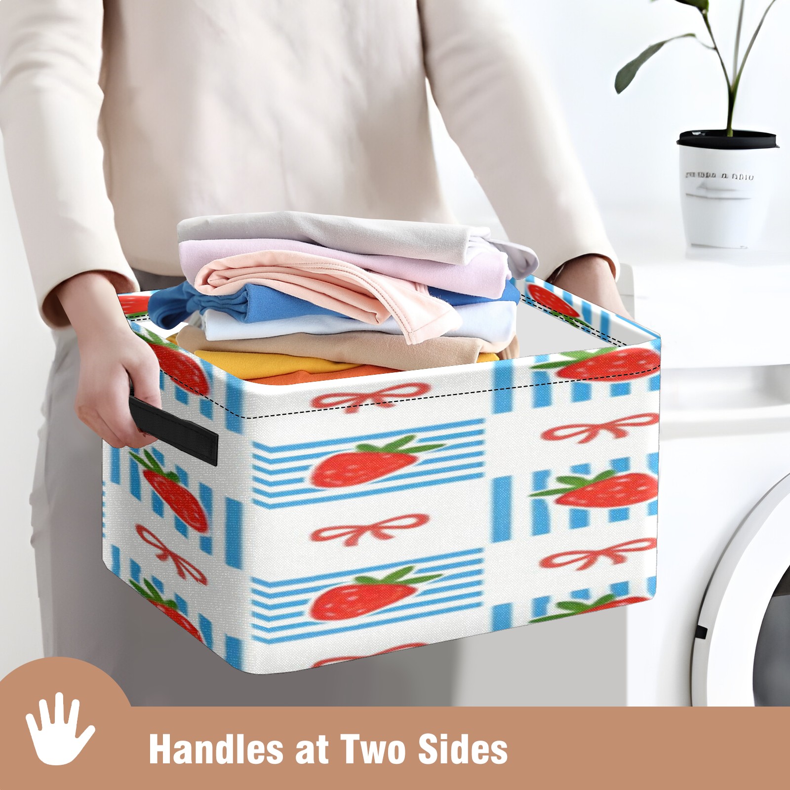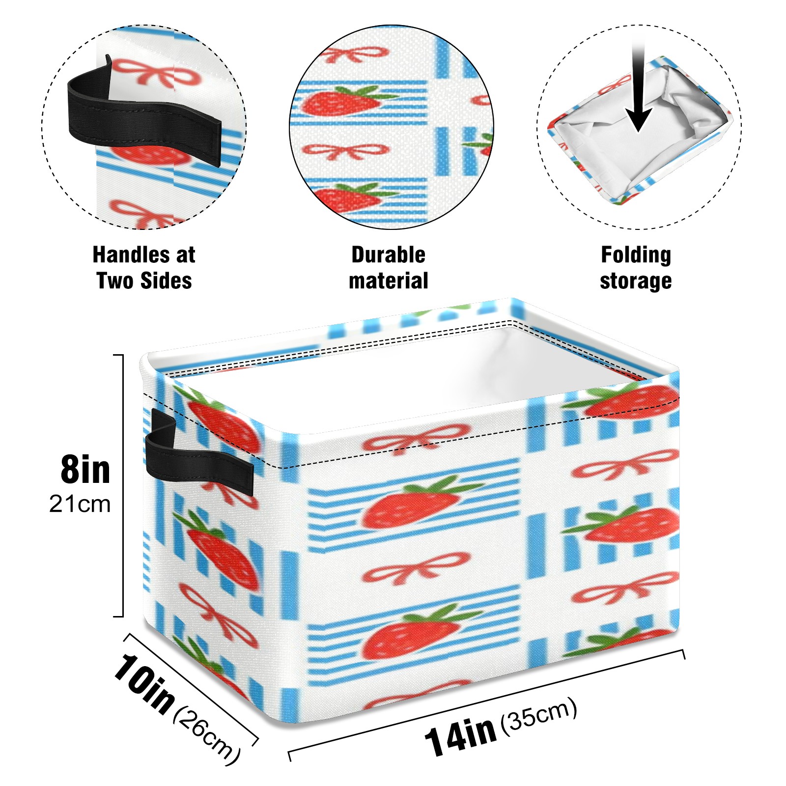 Foldable and Stackable Fabric Storage Basket for Home Organization with Handles, Decorative Closet Bins for Shelves, Laundry, and Toy Storage( Strawberry)