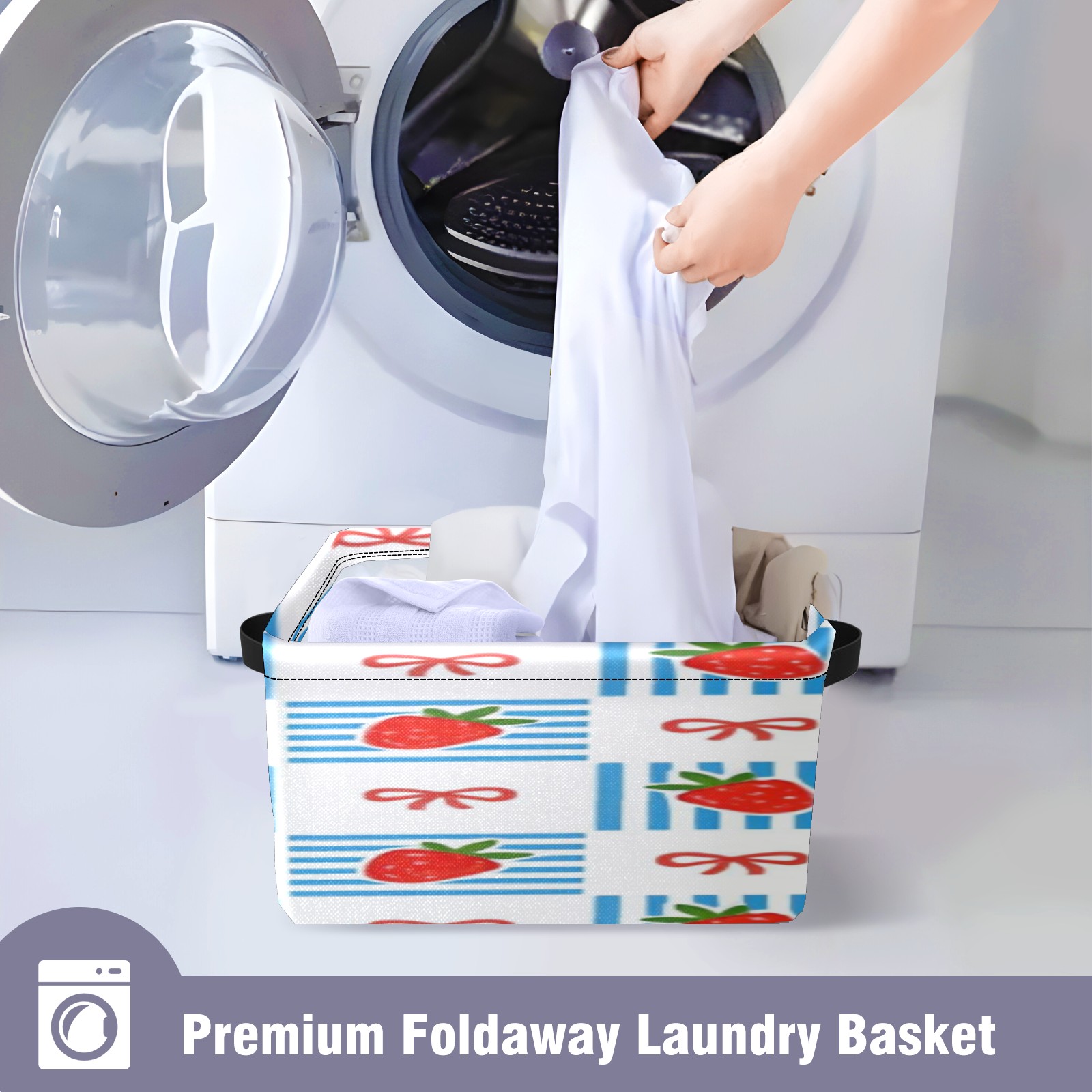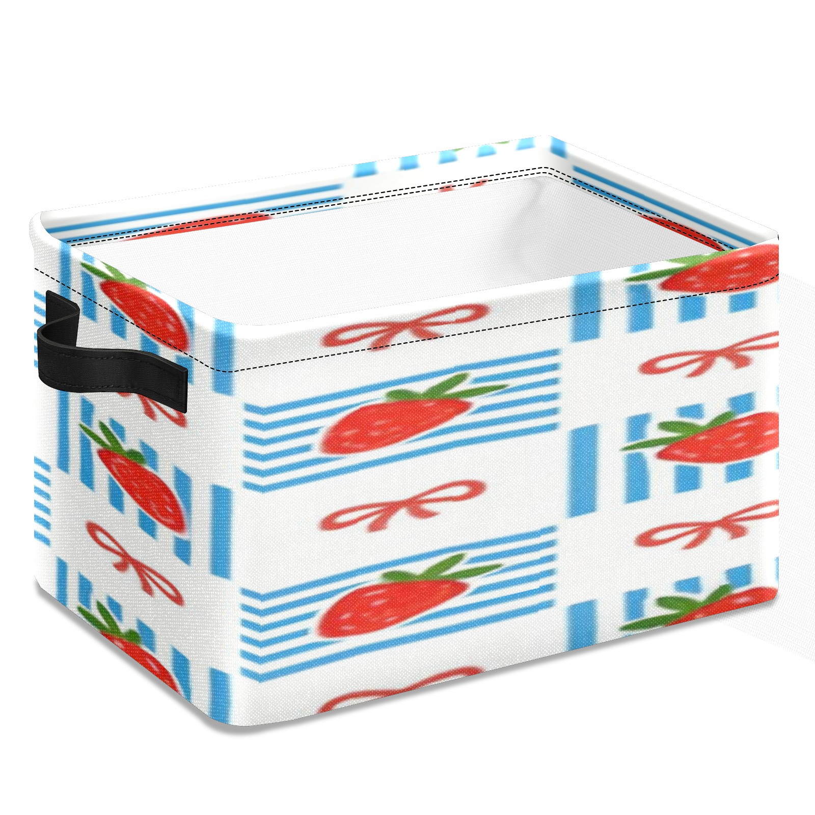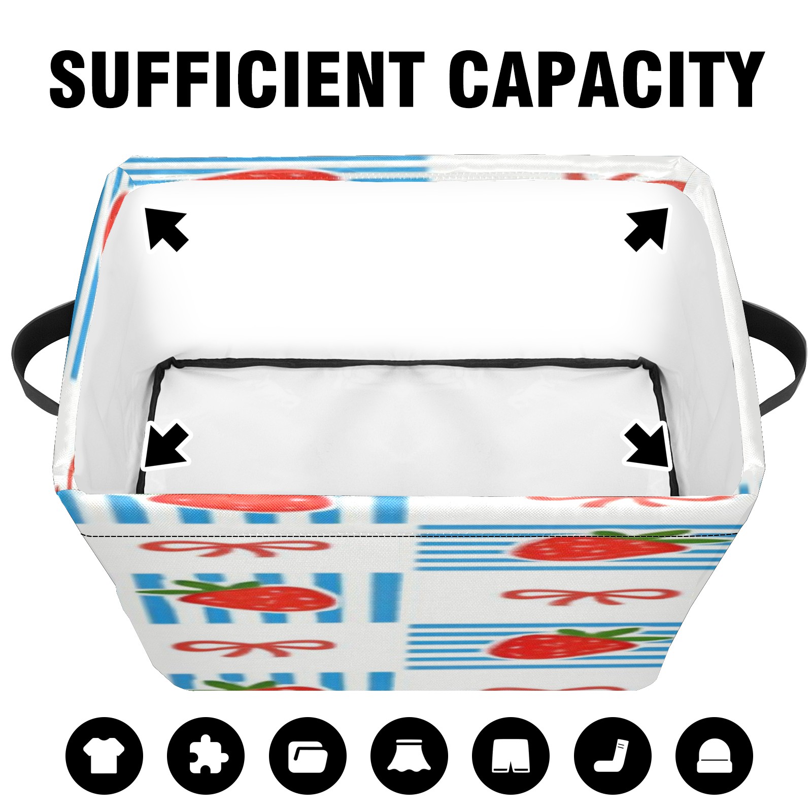 Foldable and Stackable Fabric Storage Basket for Home Organization with Handles, Decorative Closet Bins for Shelves, Laundry, and Toy Storage( Strawberry)