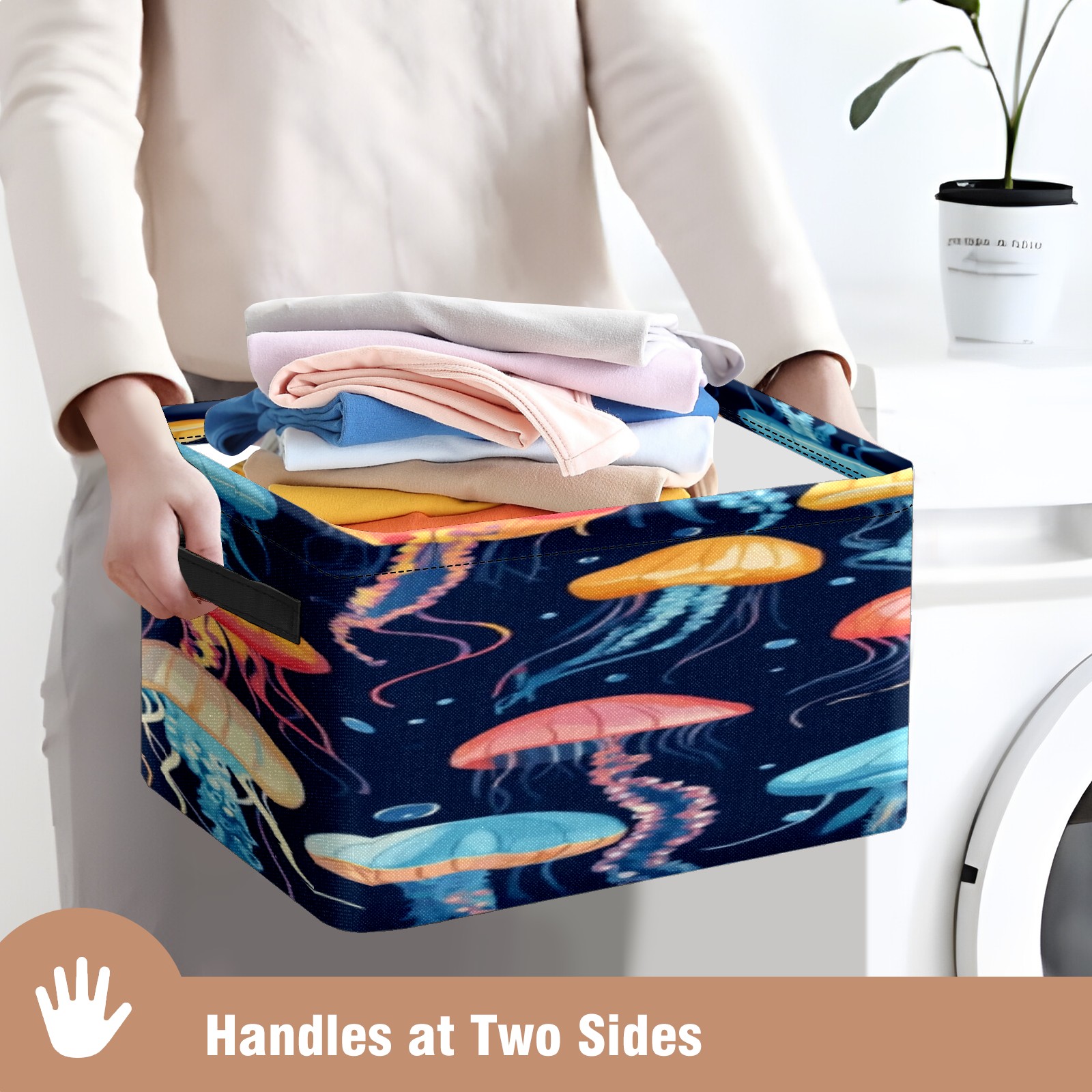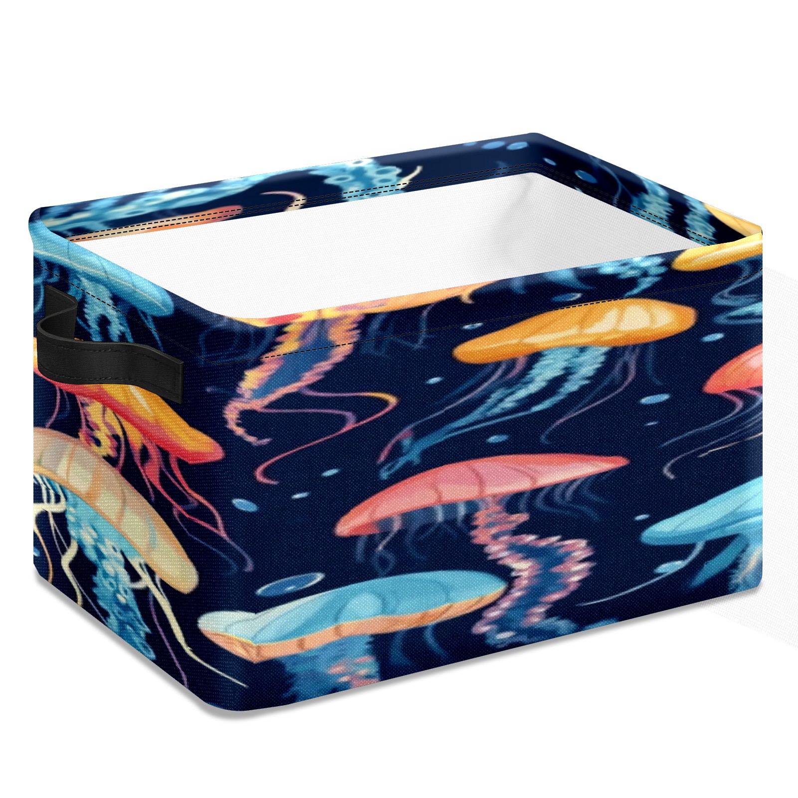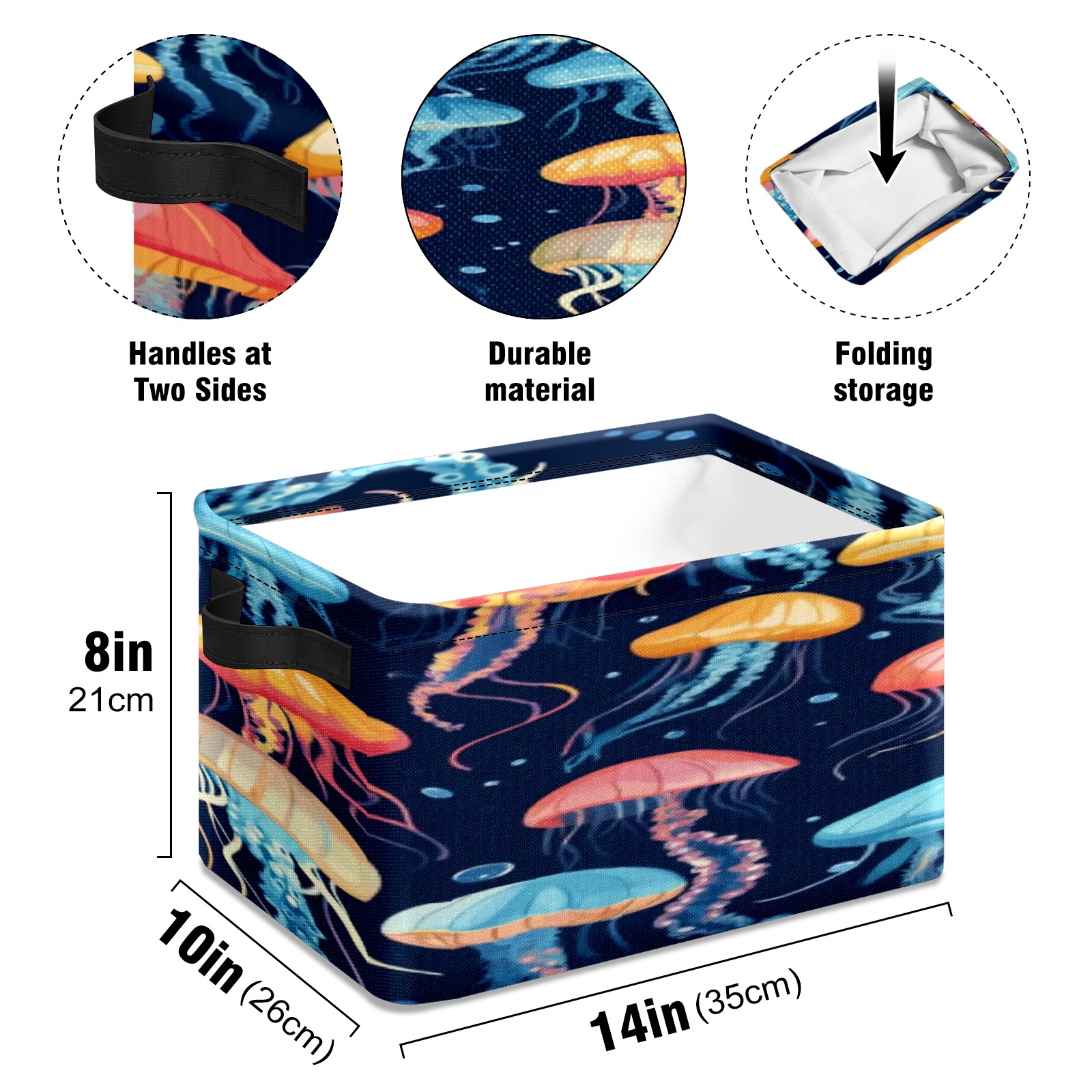 Foldable and Stackable Fabric Storage Basket for Home Organization with Handles, Decorative Closet Bins for Shelves, Laundry, and Toy Storage( Jellyfish)