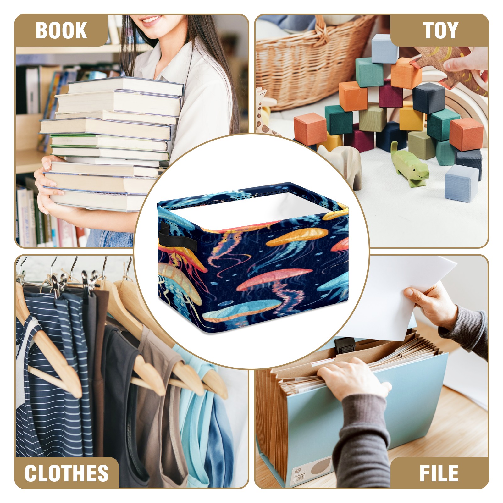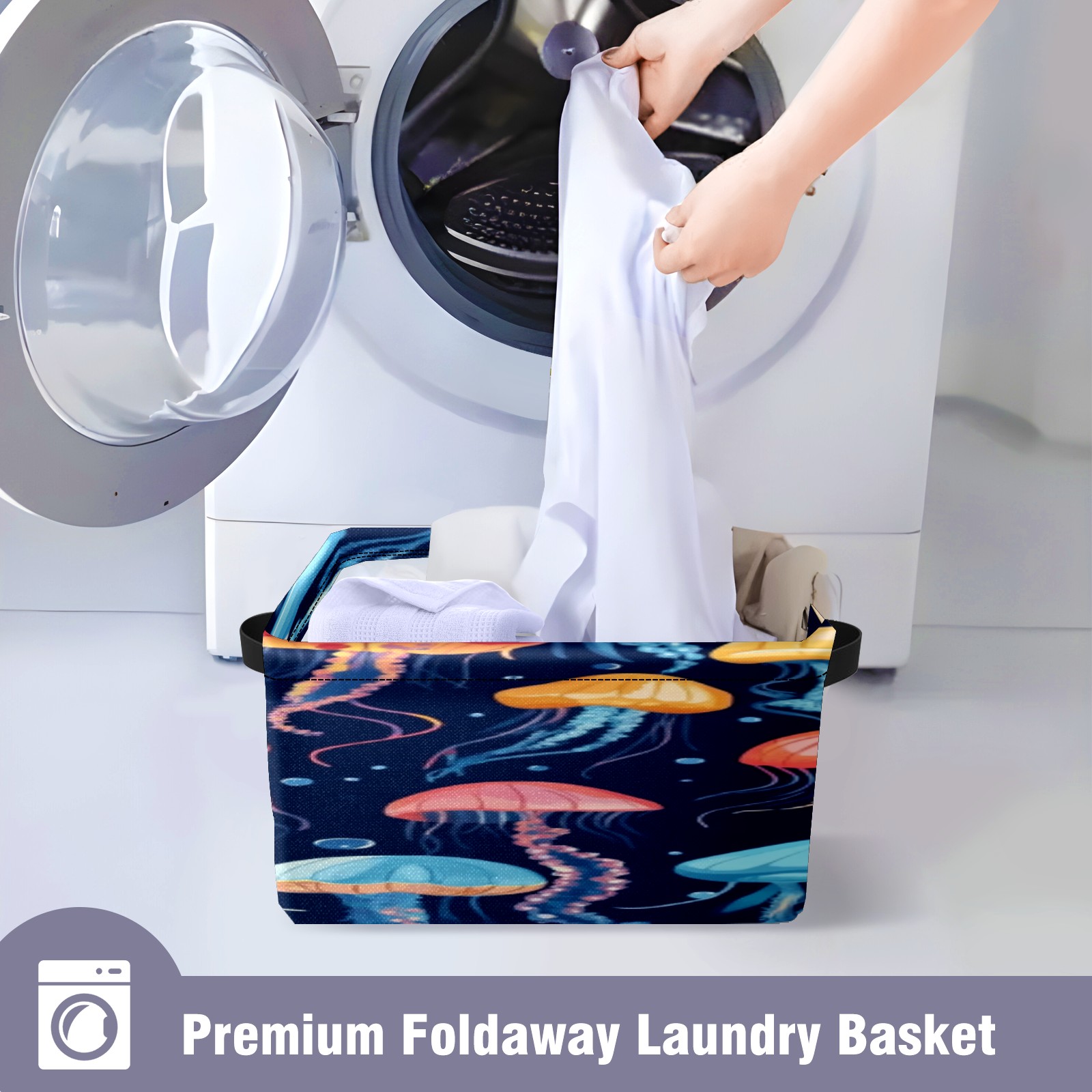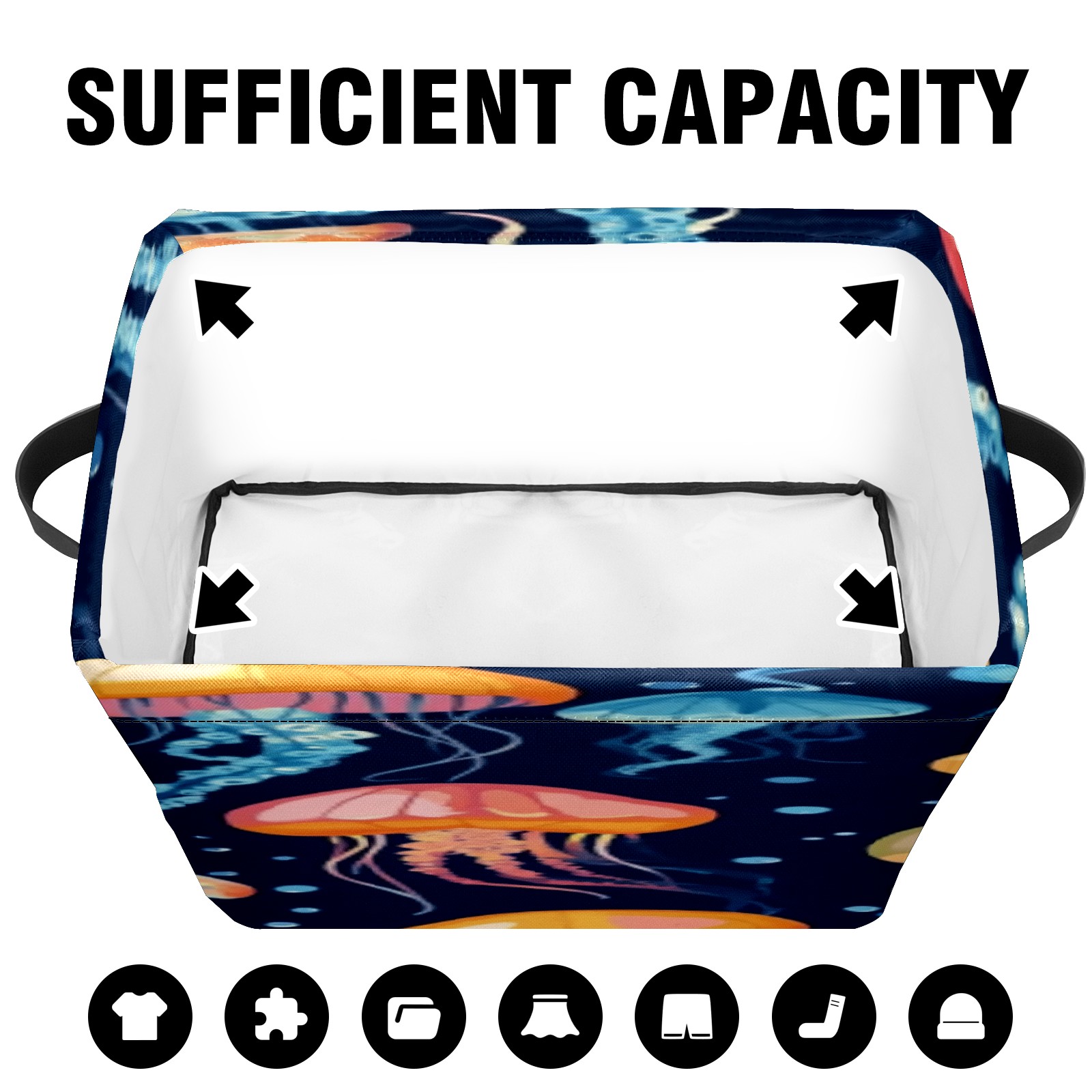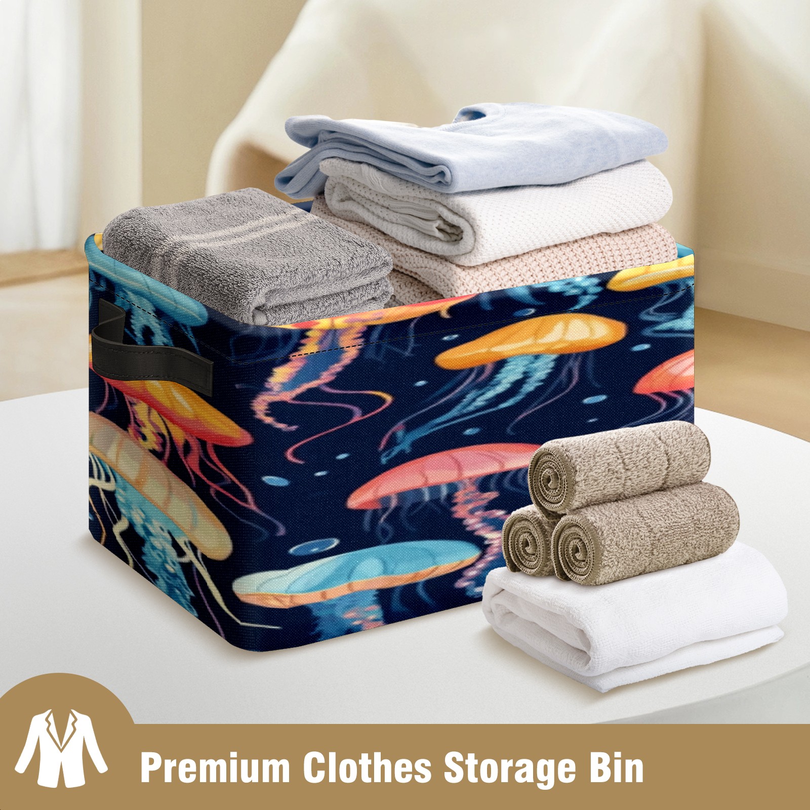 Foldable and Stackable Fabric Storage Basket for Home Organization with Handles, Decorative Closet Bins for Shelves, Laundry, and Toy Storage( Jellyfish)