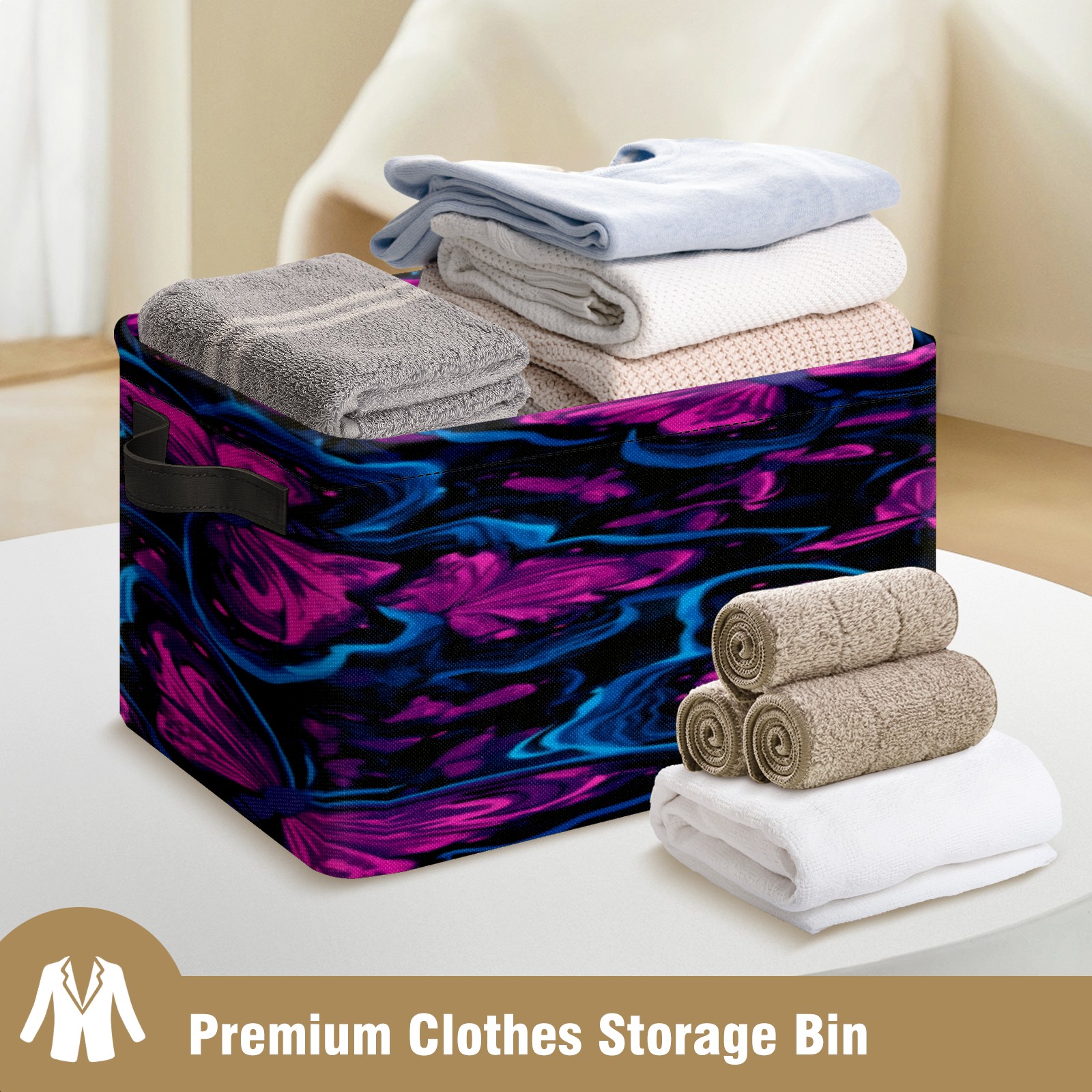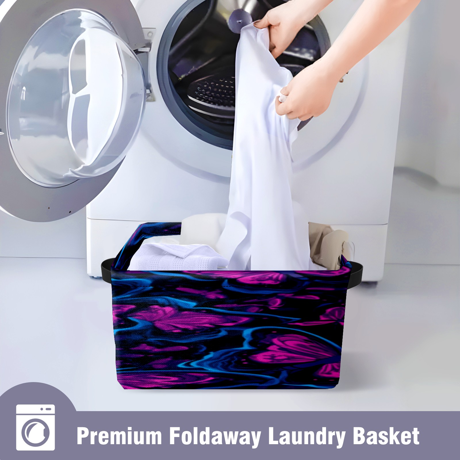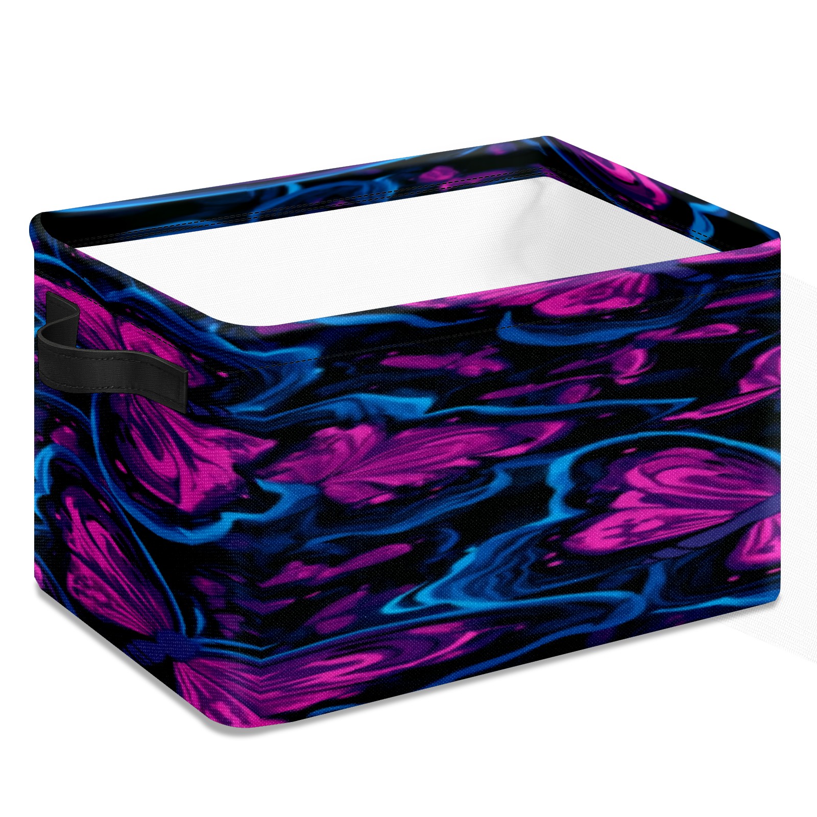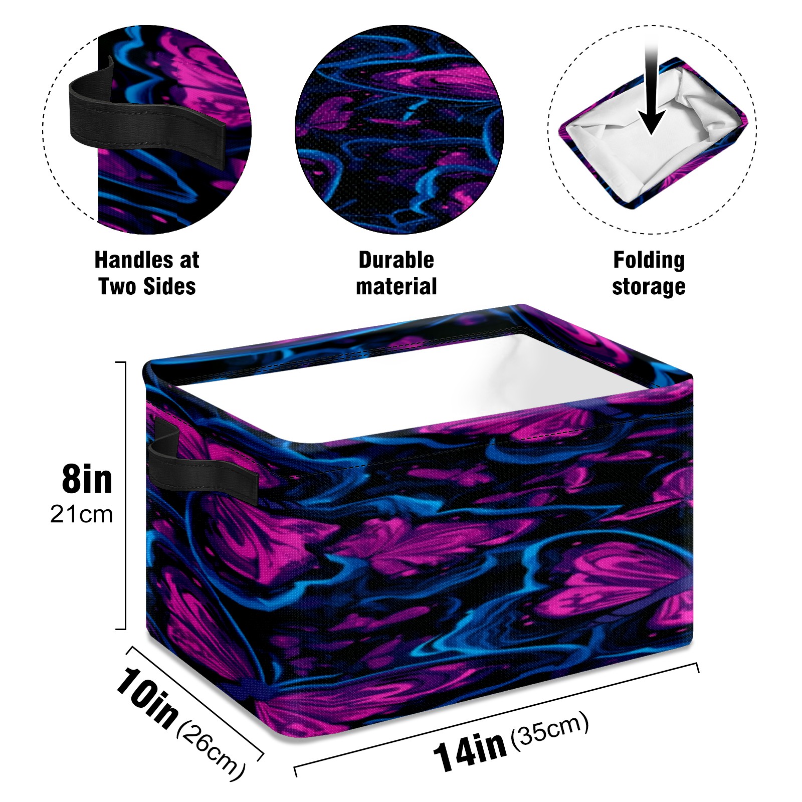 Foldable and Stackable Fabric Storage Basket for Home Organization with Handles, Decorative Closet Bins for Shelves, Laundry, and Toy Storage( Blue And Pink Butterflies)