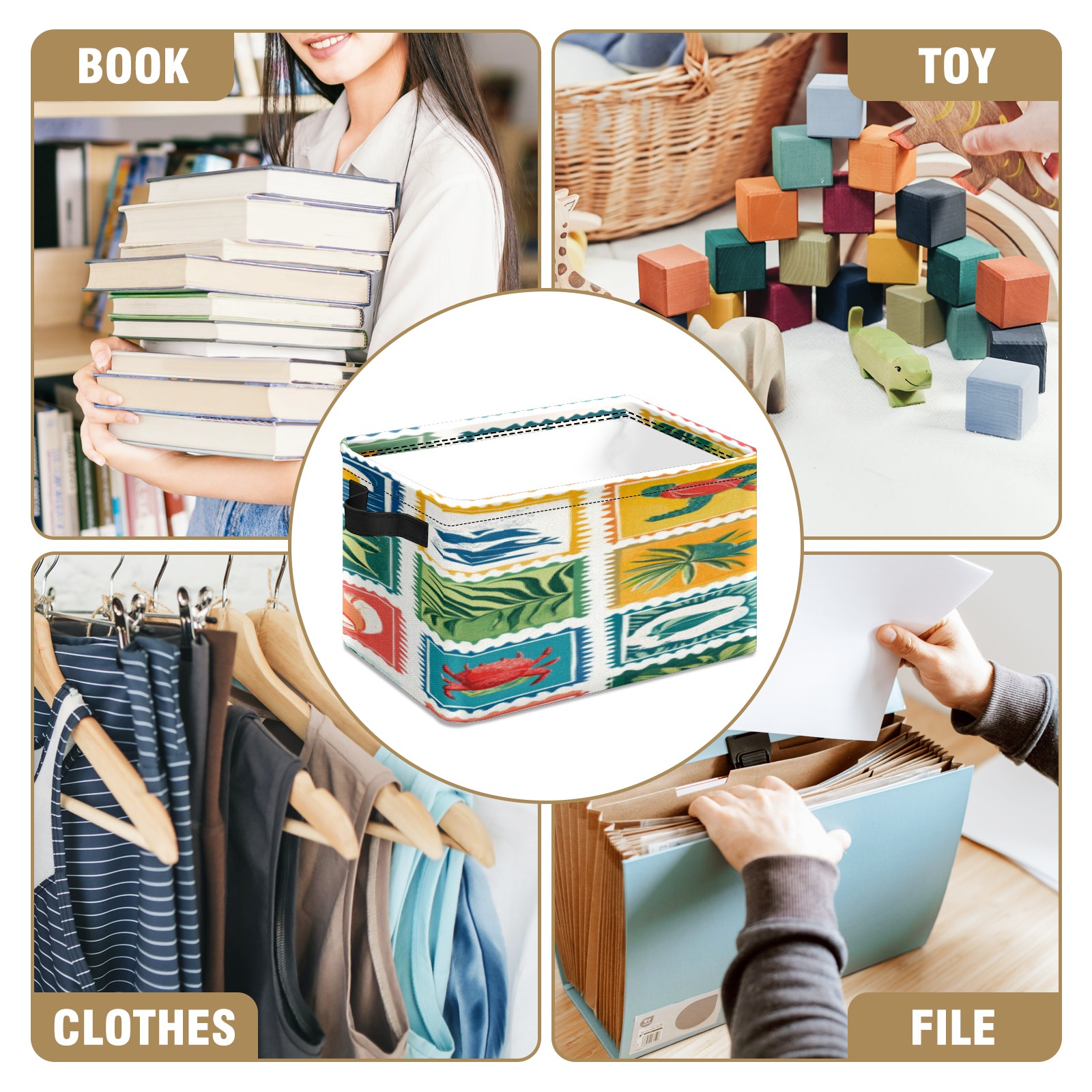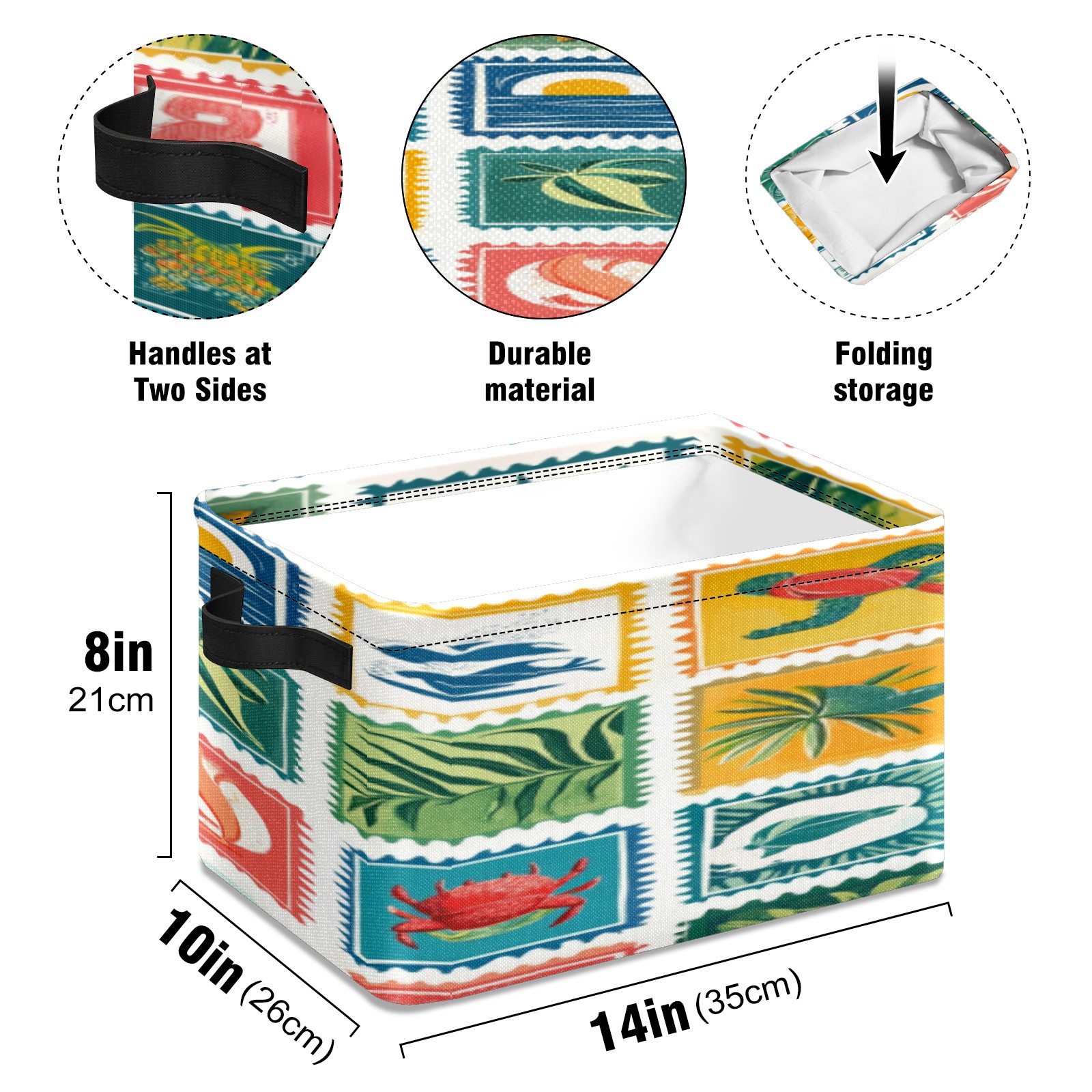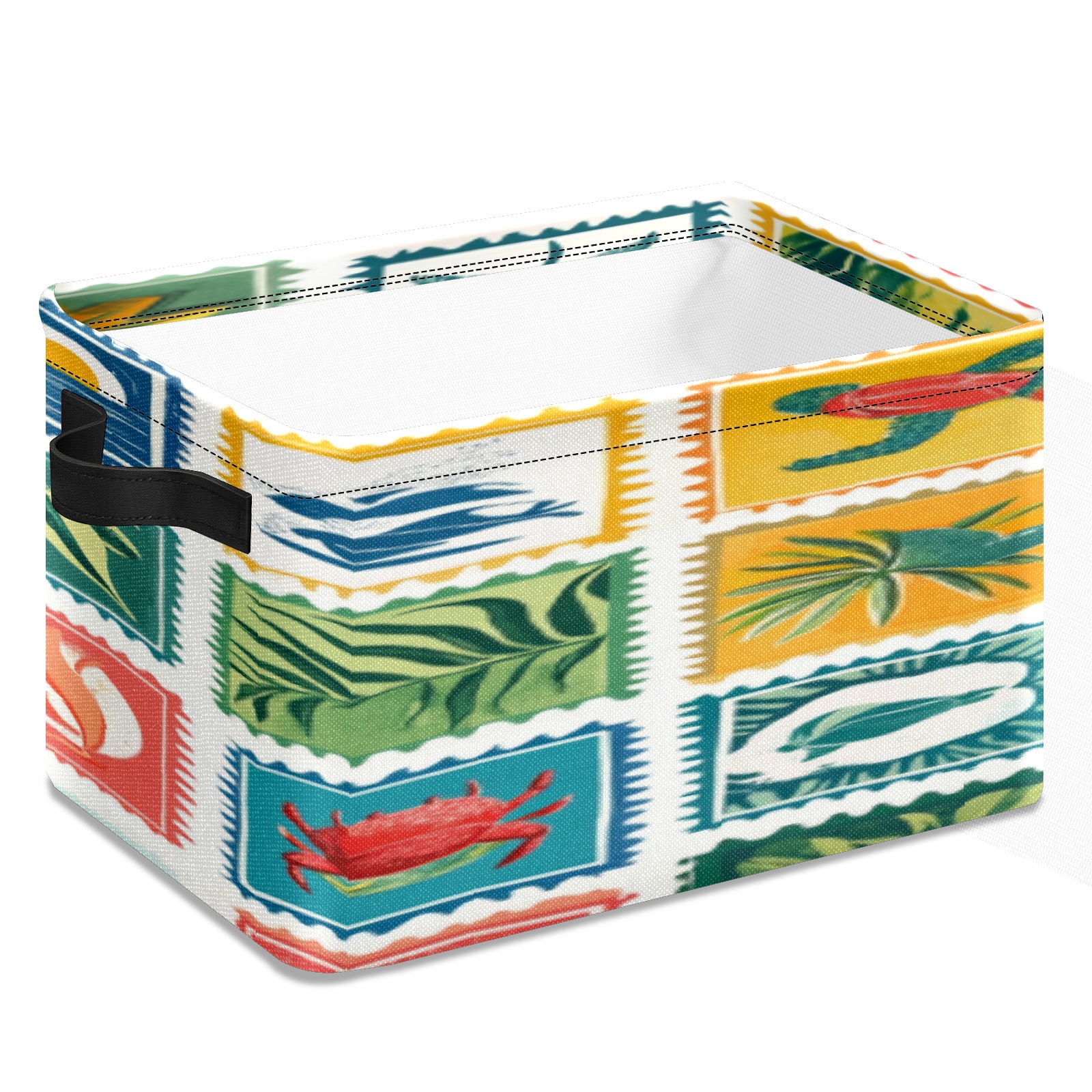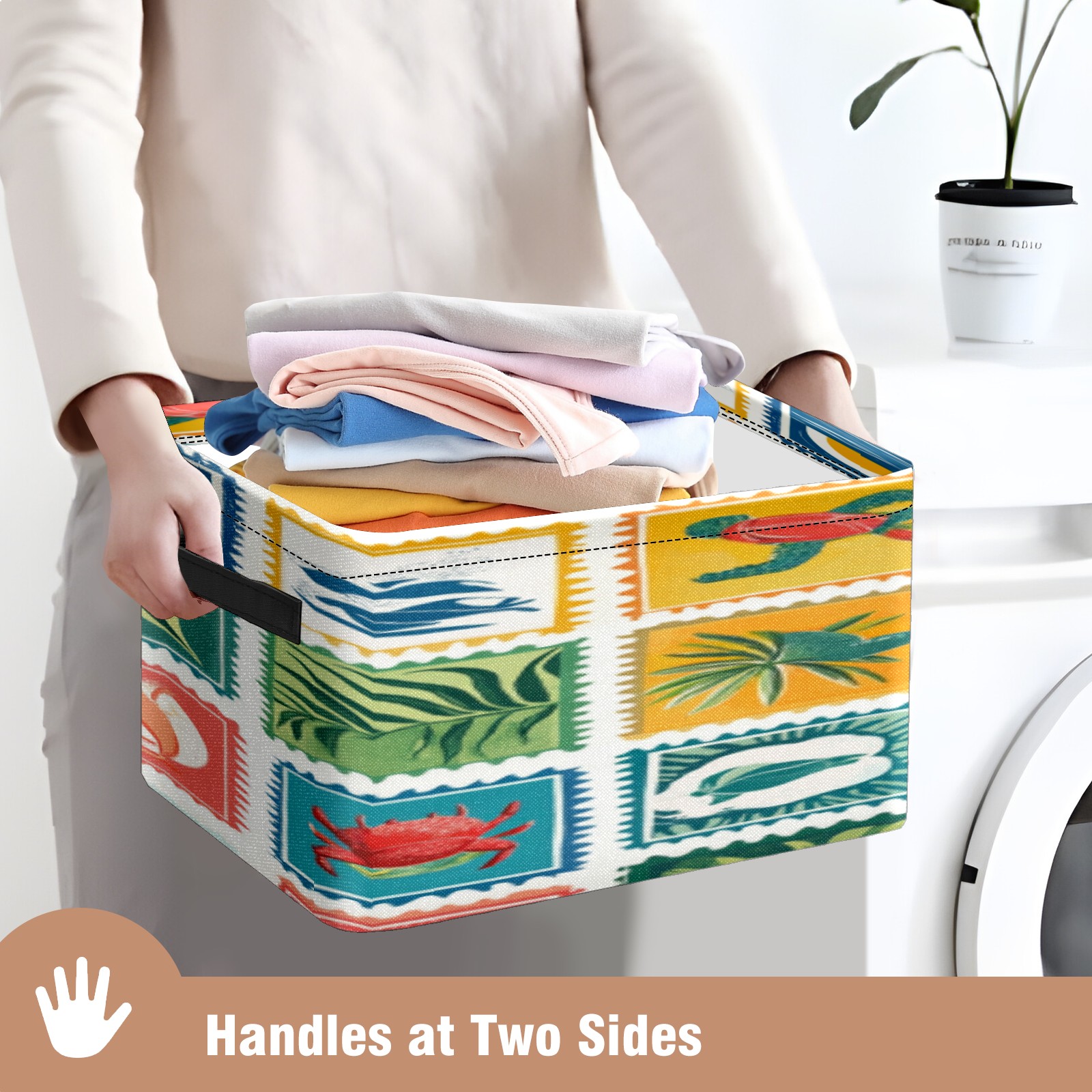 Foldable and Stackable Fabric Storage Basket for Home Organization with Handles, Decorative Closet Bins for Shelves, Laundry, and Toy Storage( Postage Stamps)