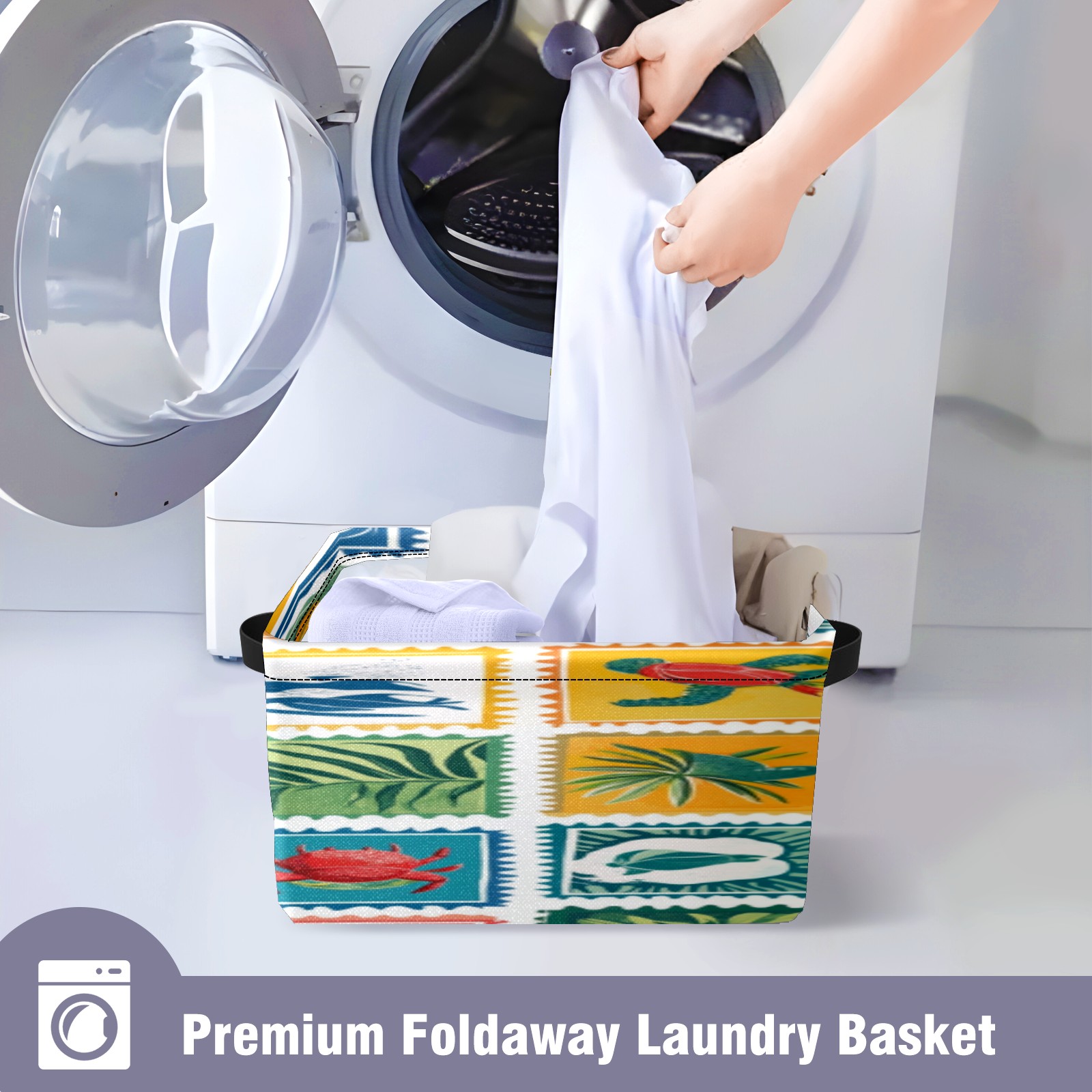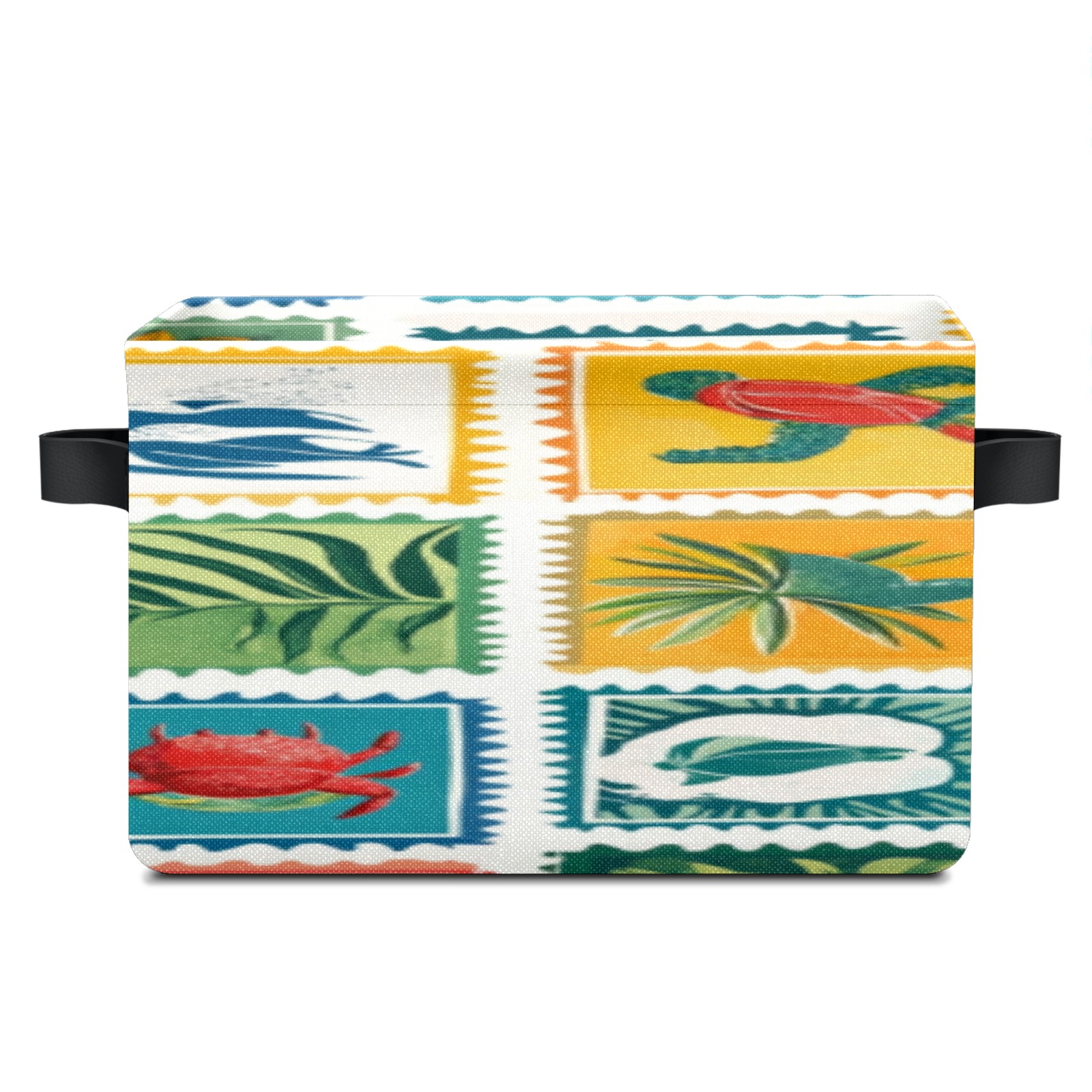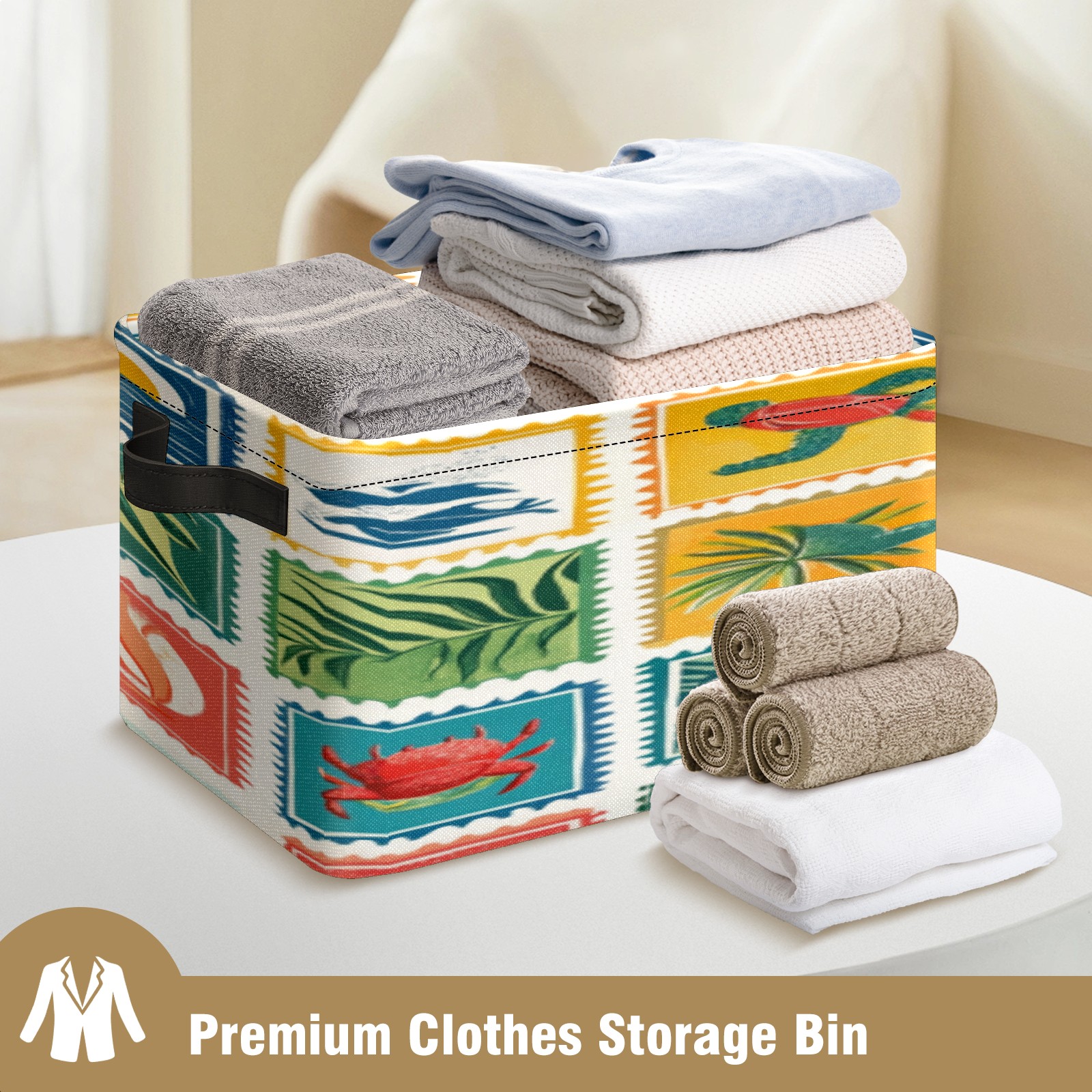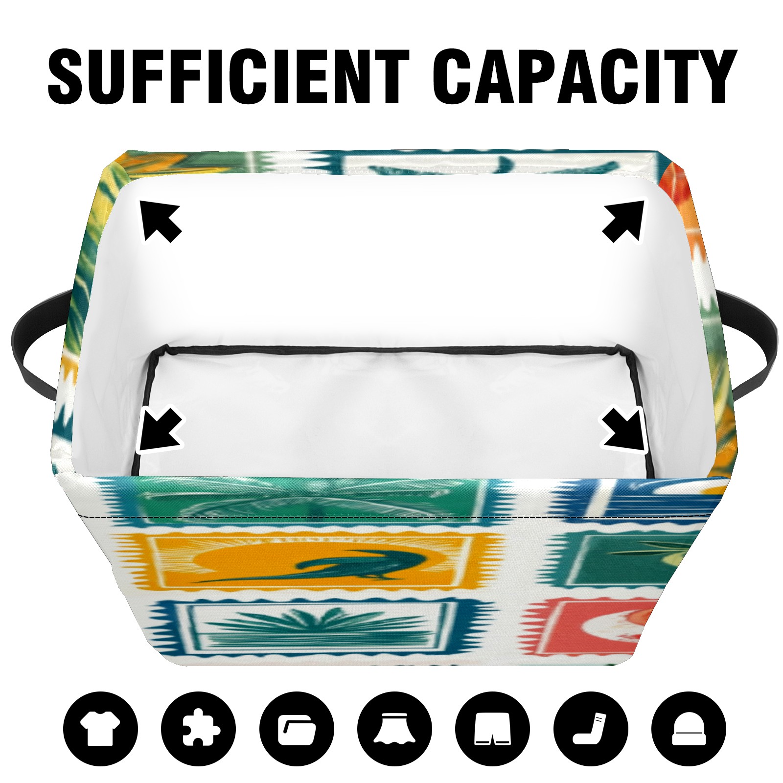 Foldable and Stackable Fabric Storage Basket for Home Organization with Handles, Decorative Closet Bins for Shelves, Laundry, and Toy Storage( Postage Stamps)