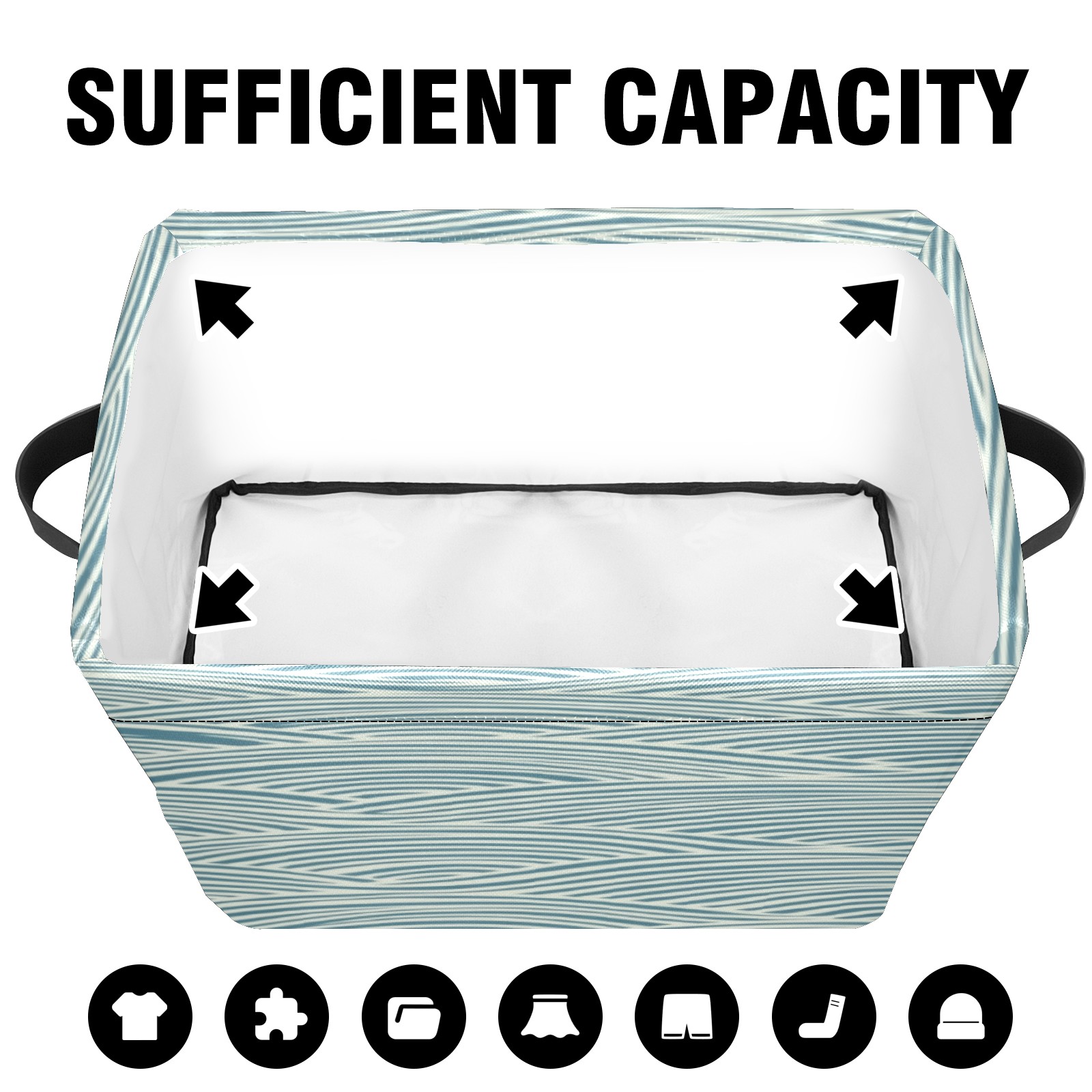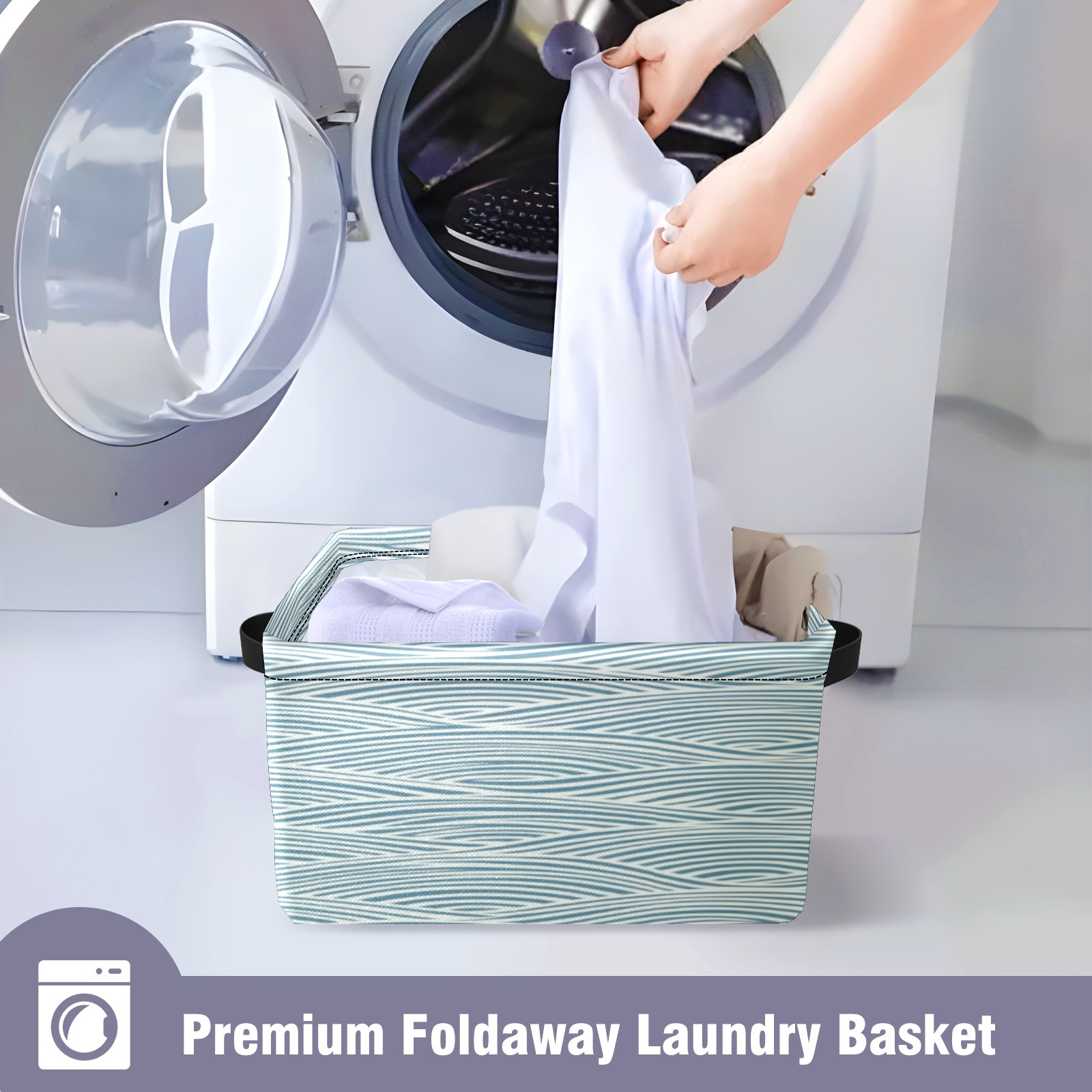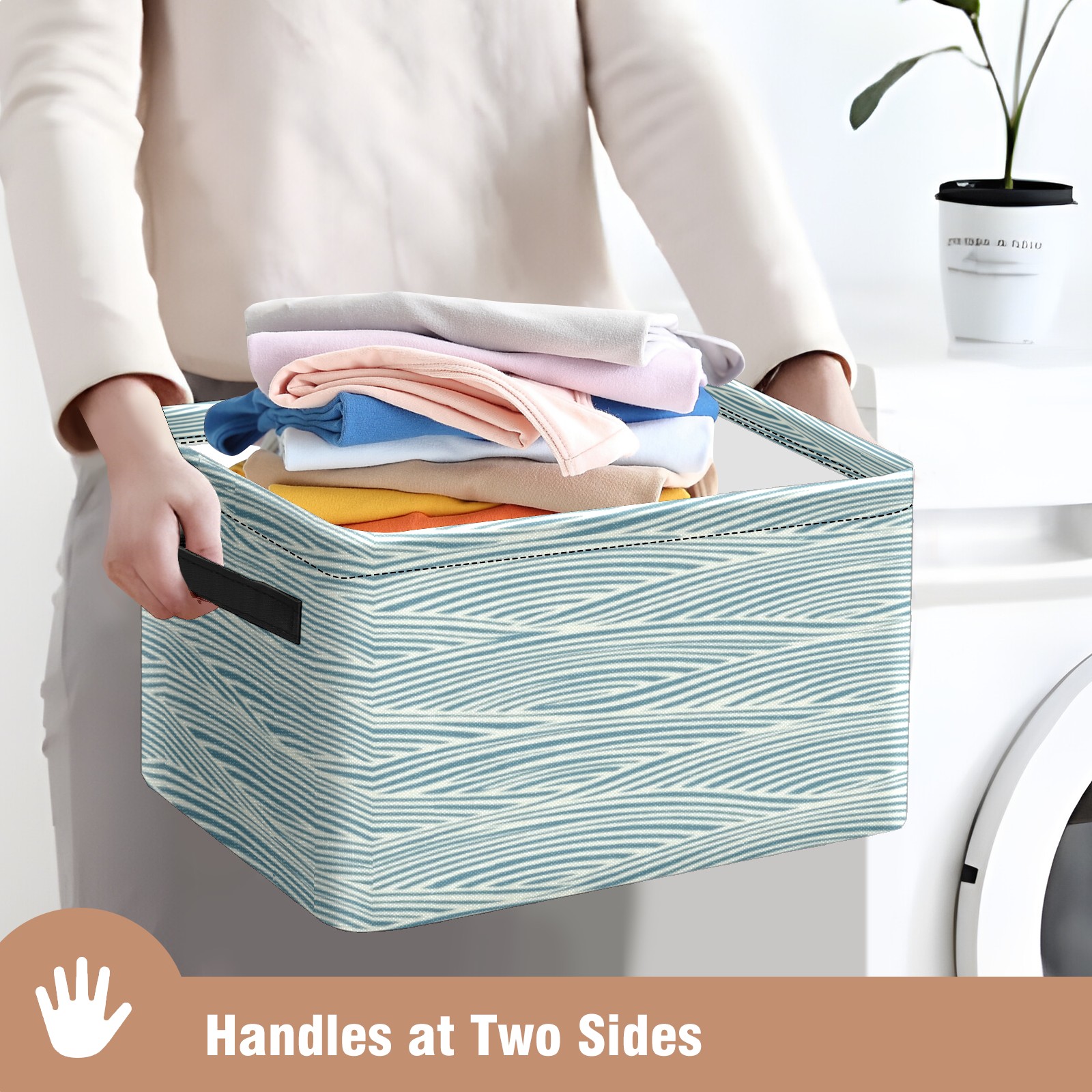 Foldable and Stackable Fabric Storage Basket for Home Organization with Handles, Decorative Closet Bins for Shelves, Laundry, and Toy Storage( Japanese Wave Lines)
