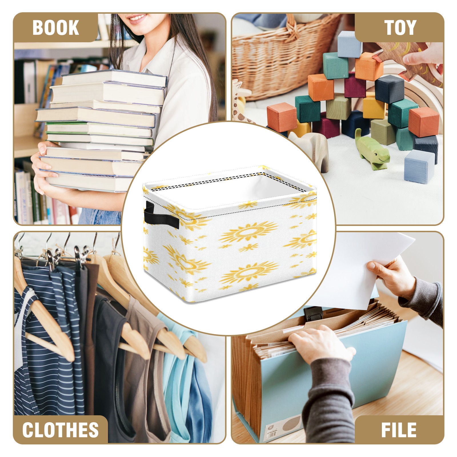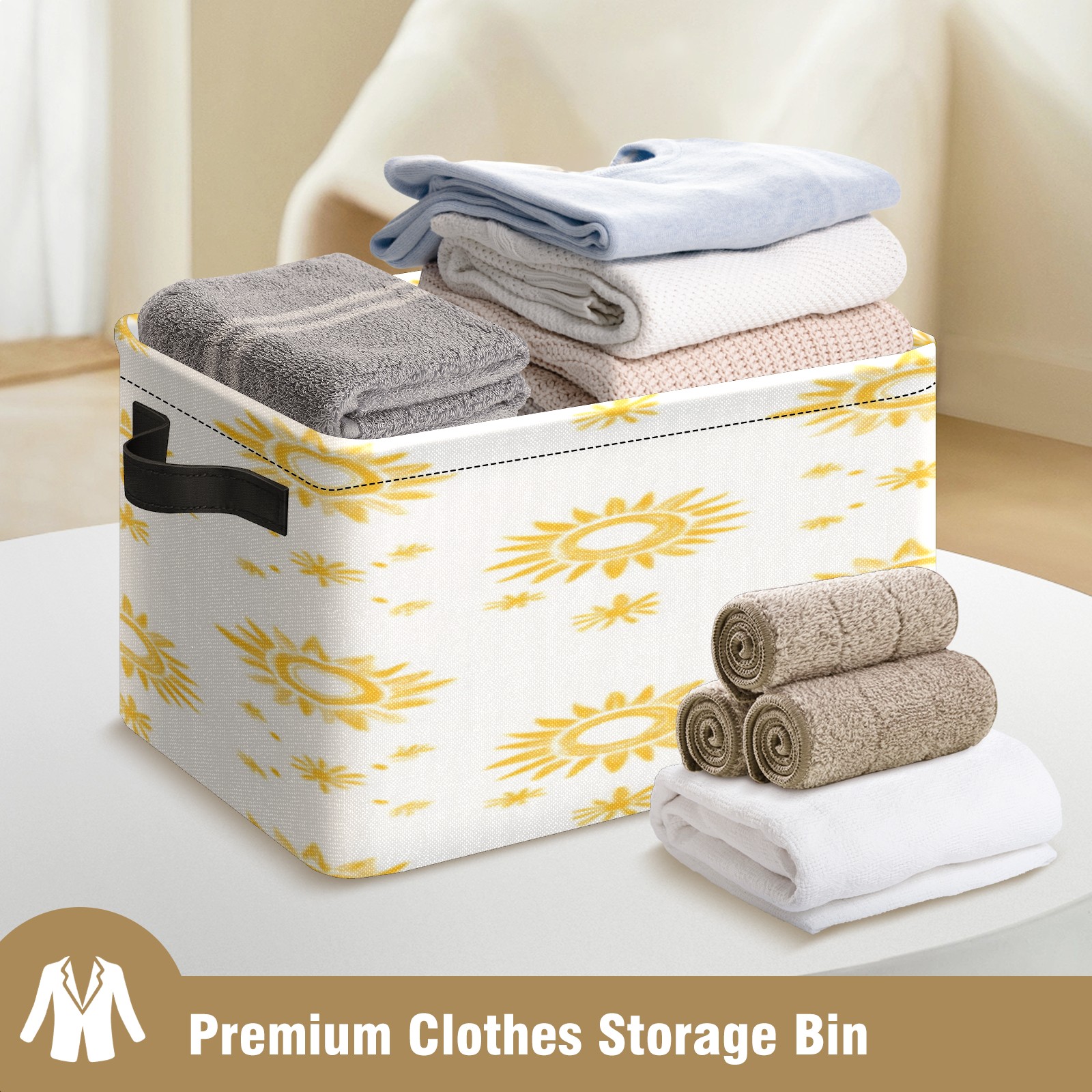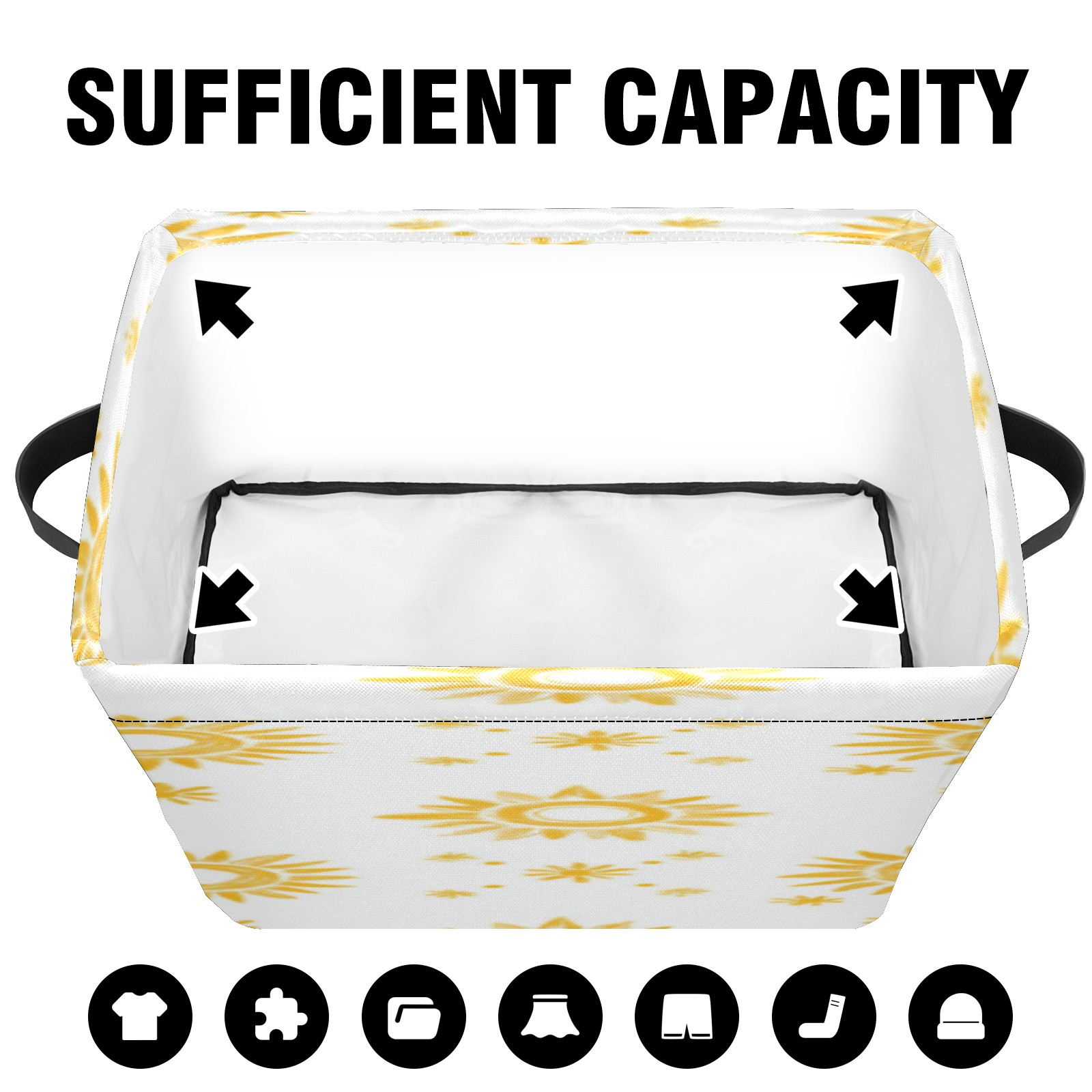Foldable and Stackable Fabric Storage Basket for Home Organization with Handles, Decorative Closet Bins for Shelves, Laundry, and Toy Storage( Yellow Suns)