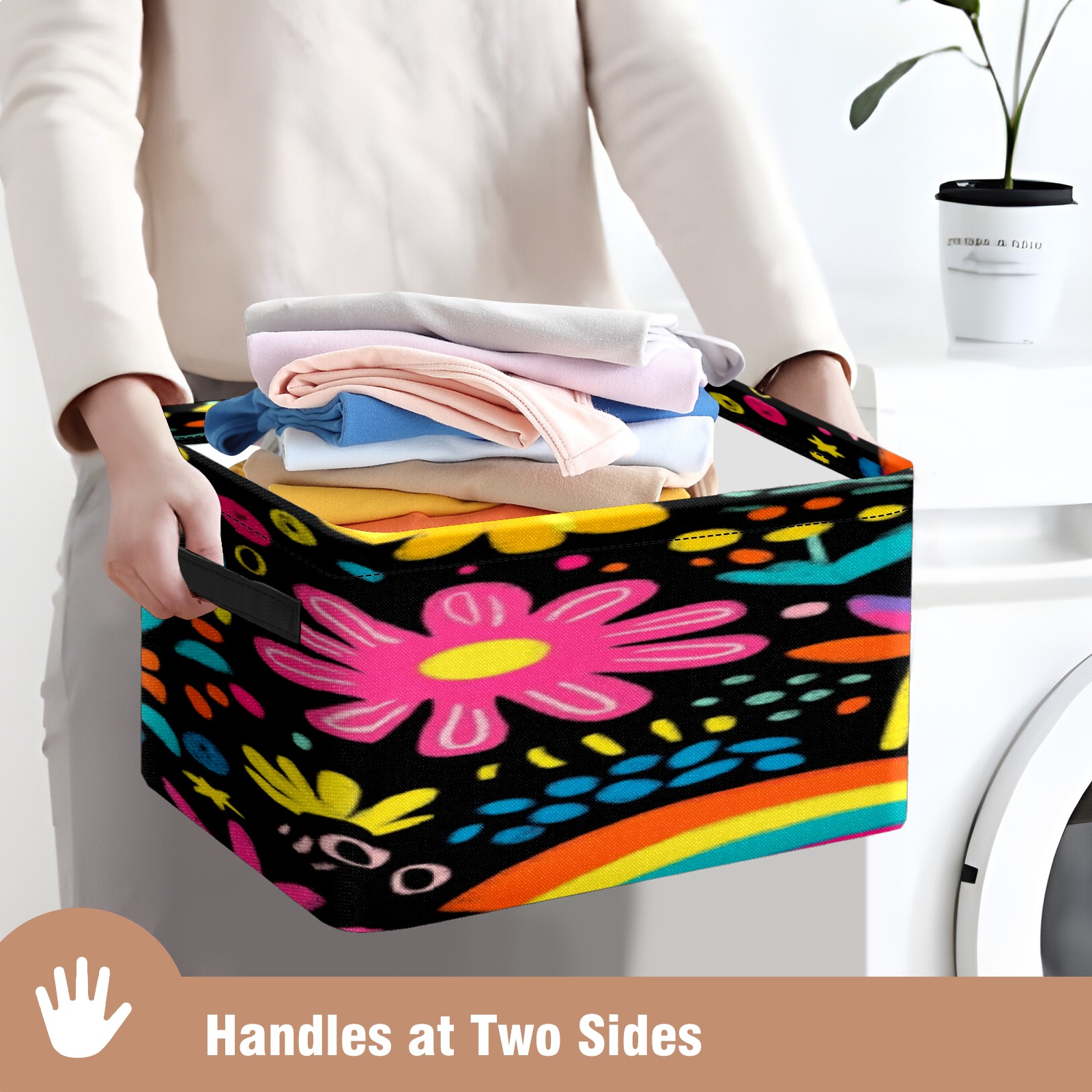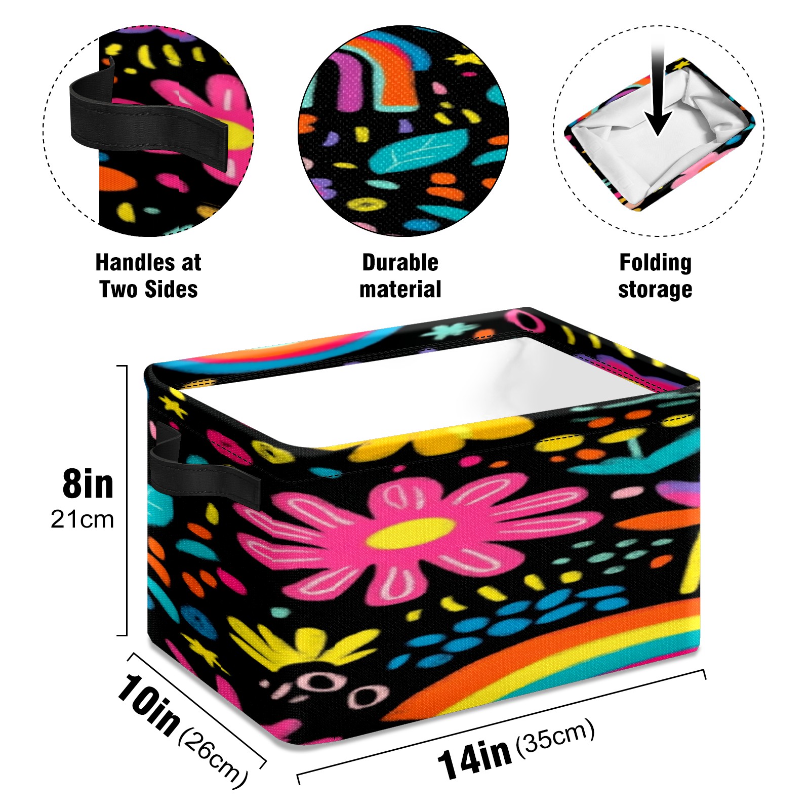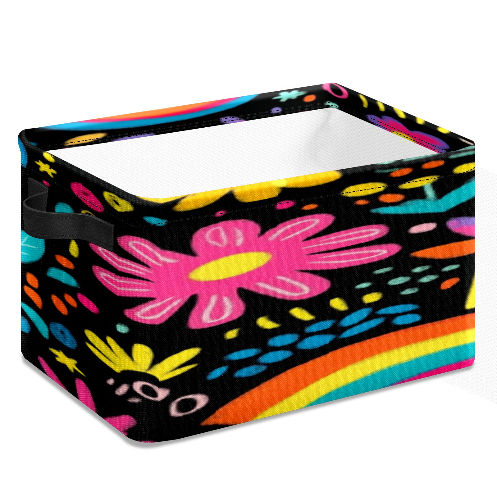 Foldable and Stackable Fabric Storage Basket for Home Organization with Handles, Decorative Closet Bins for Shelves, Laundry, and Toy Storage( Colorful Doodles Rainbows)