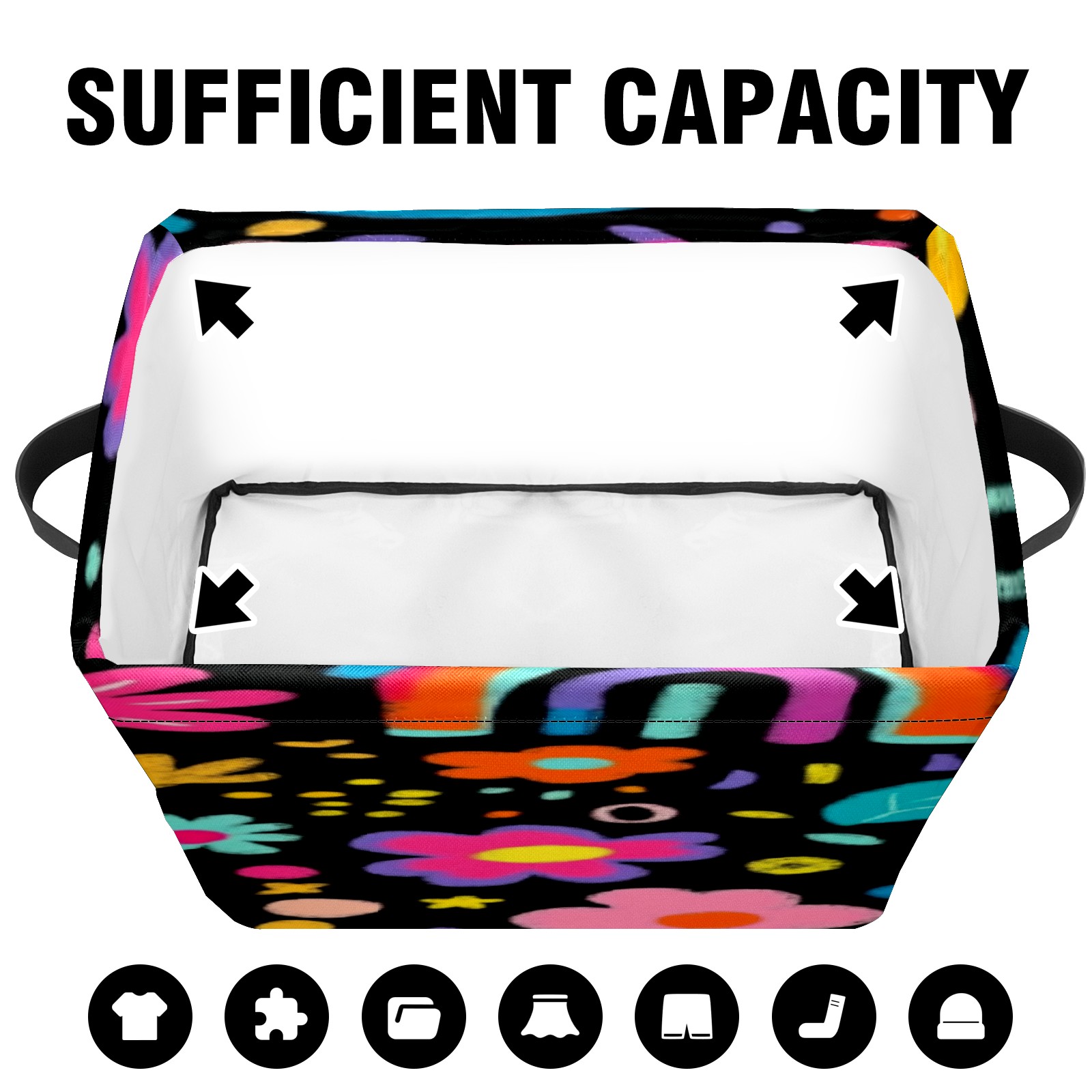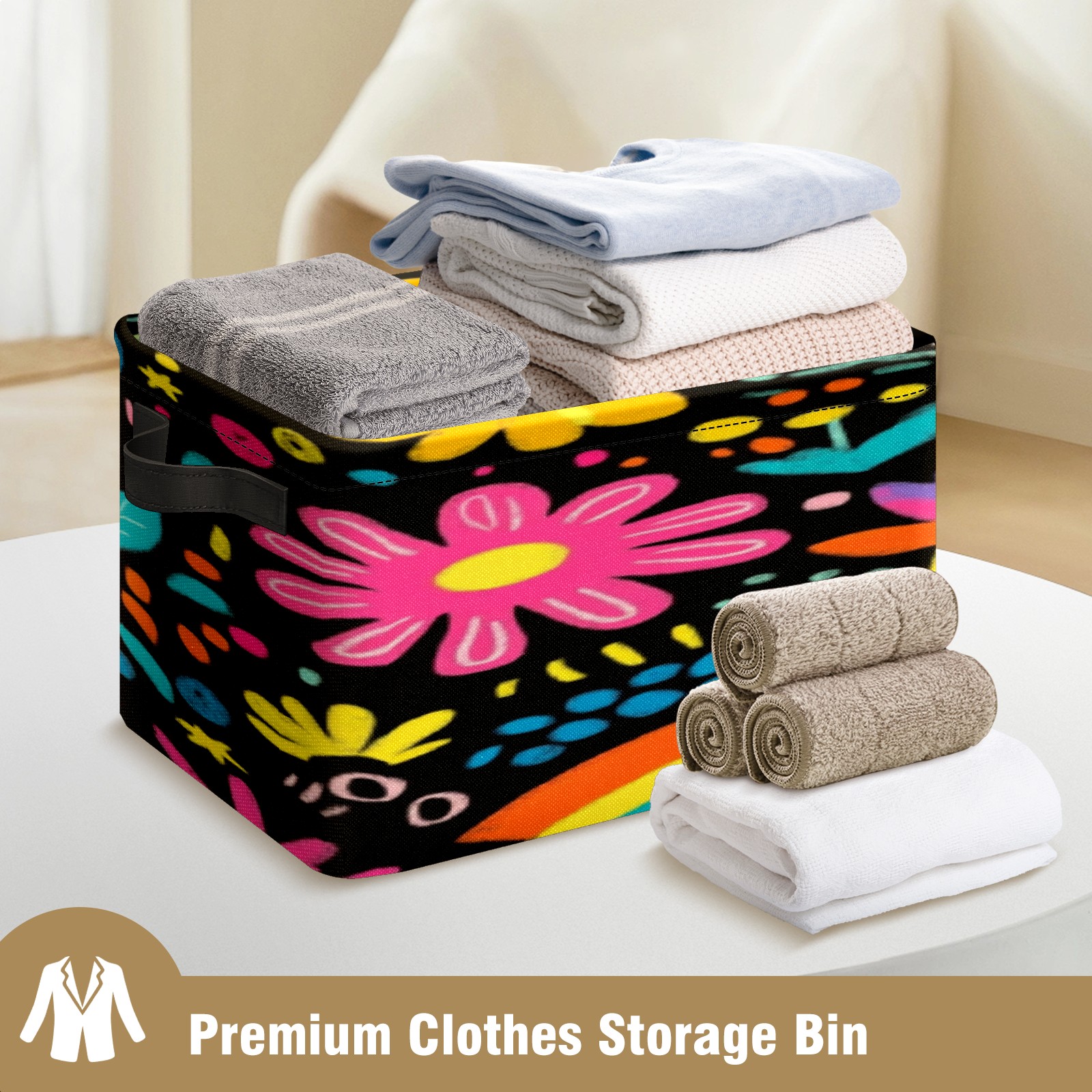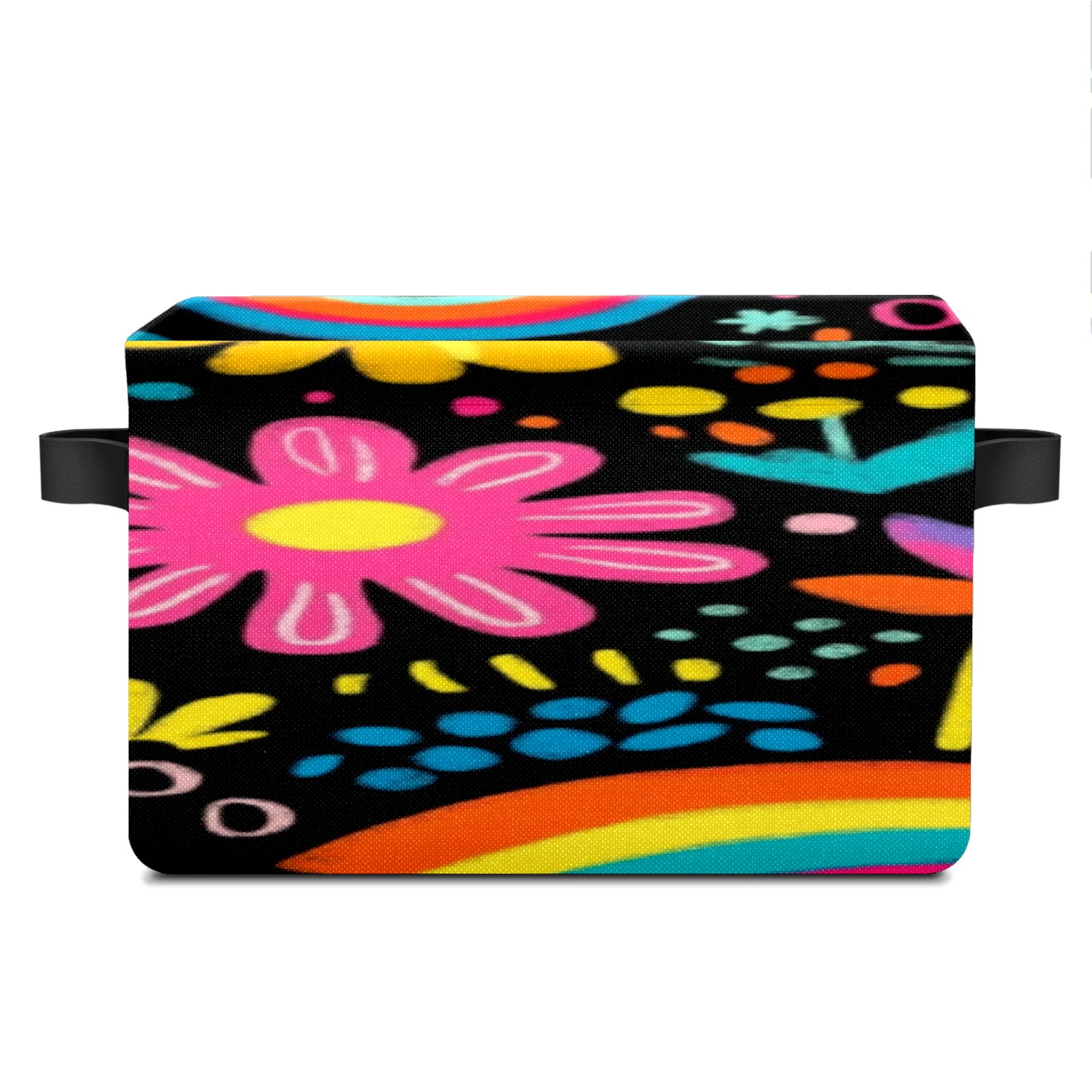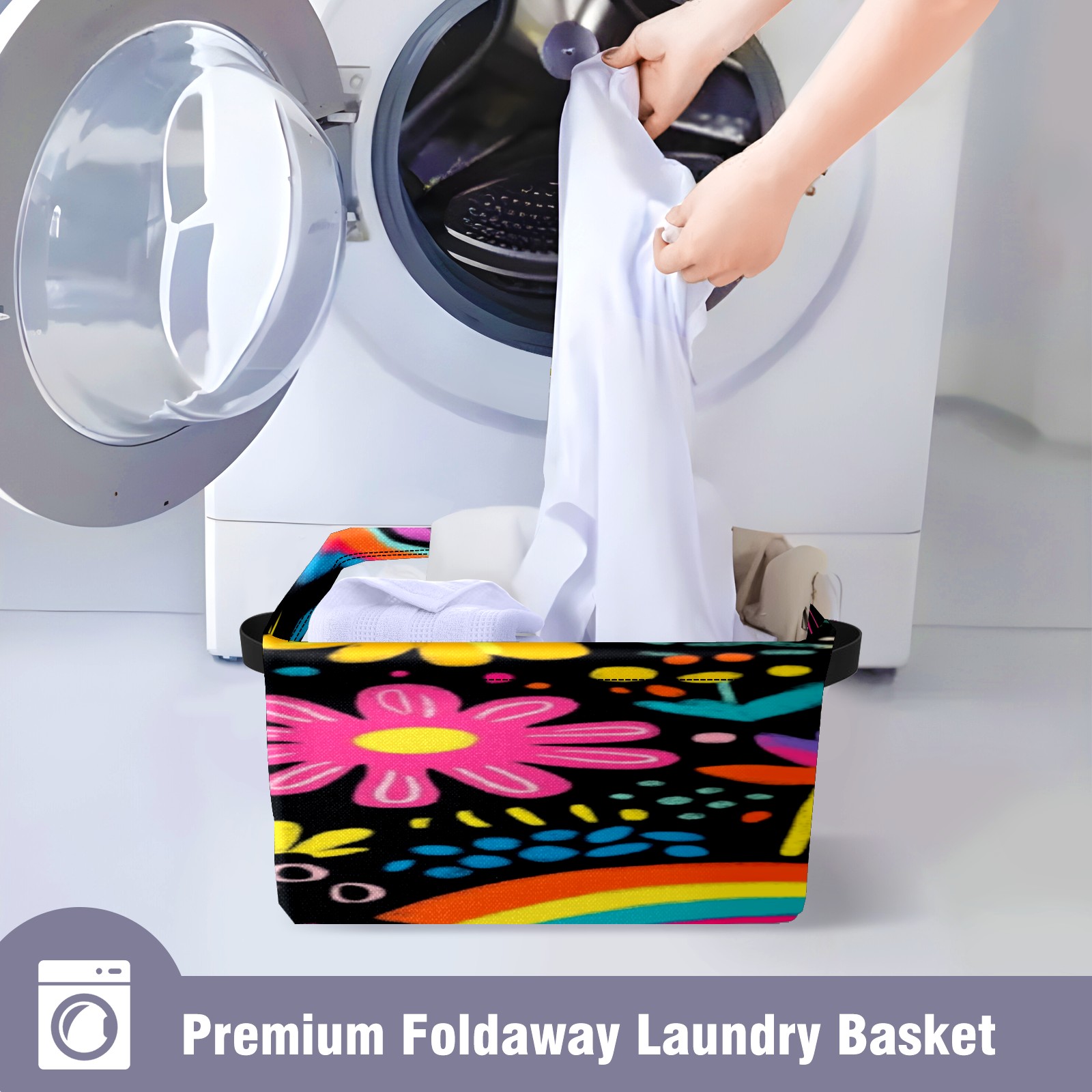 Foldable and Stackable Fabric Storage Basket for Home Organization with Handles, Decorative Closet Bins for Shelves, Laundry, and Toy Storage( Colorful Doodles Rainbows)