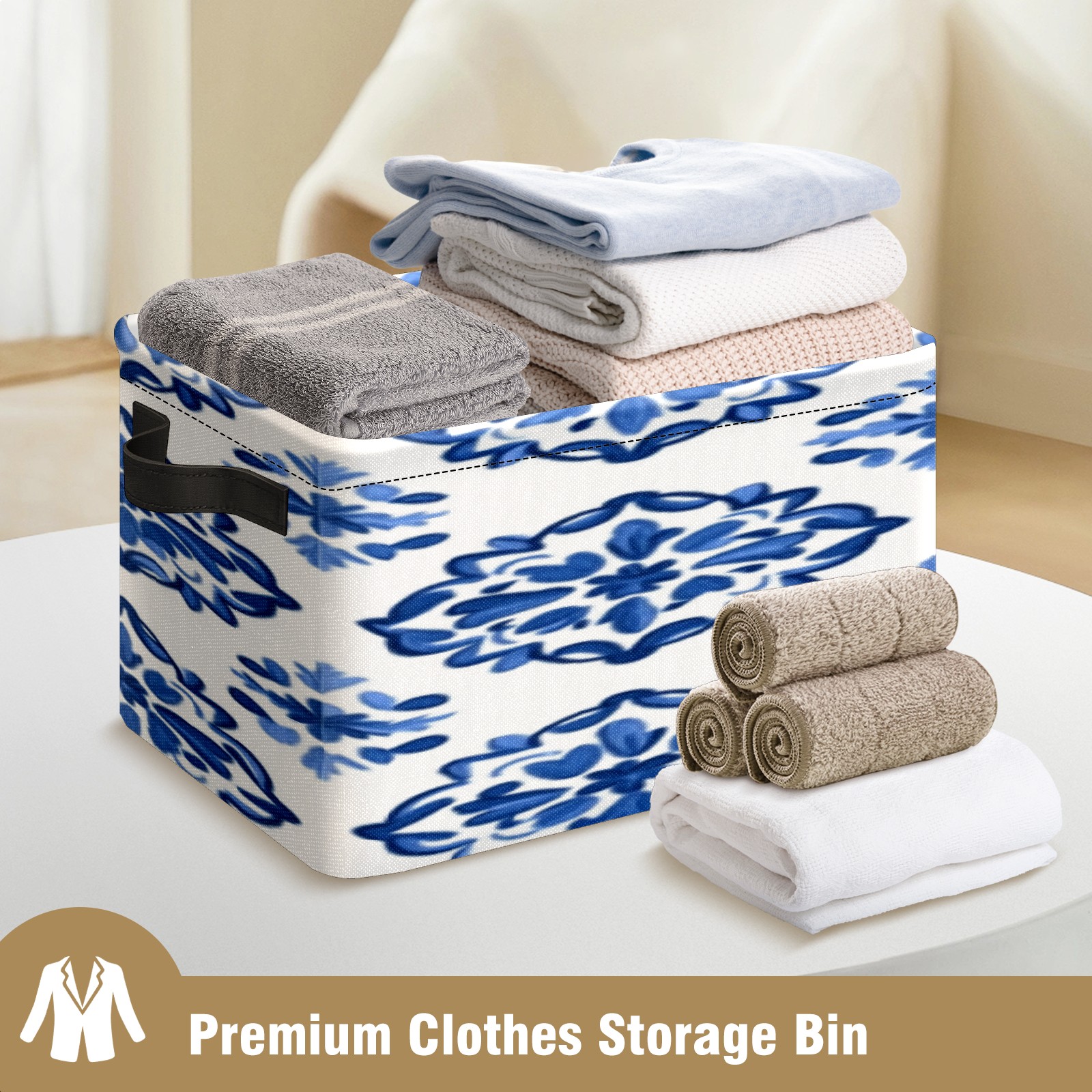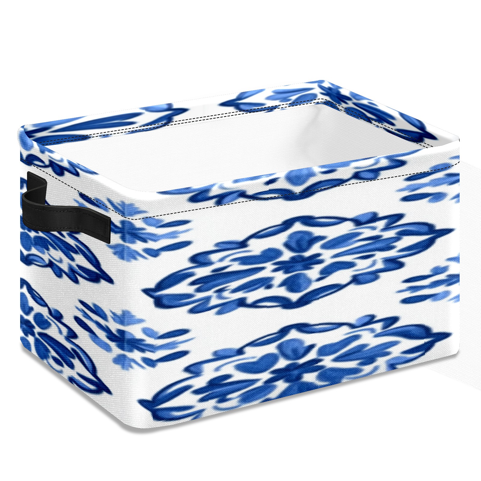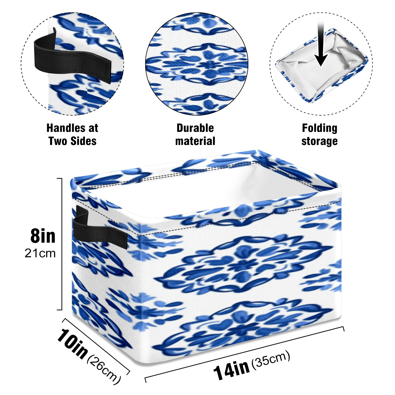 Foldable and Stackable Fabric Storage Basket for Home Organization with Handles, Decorative Closet Bins for Shelves, Laundry, and Toy Storage( Blue And White Tile)
