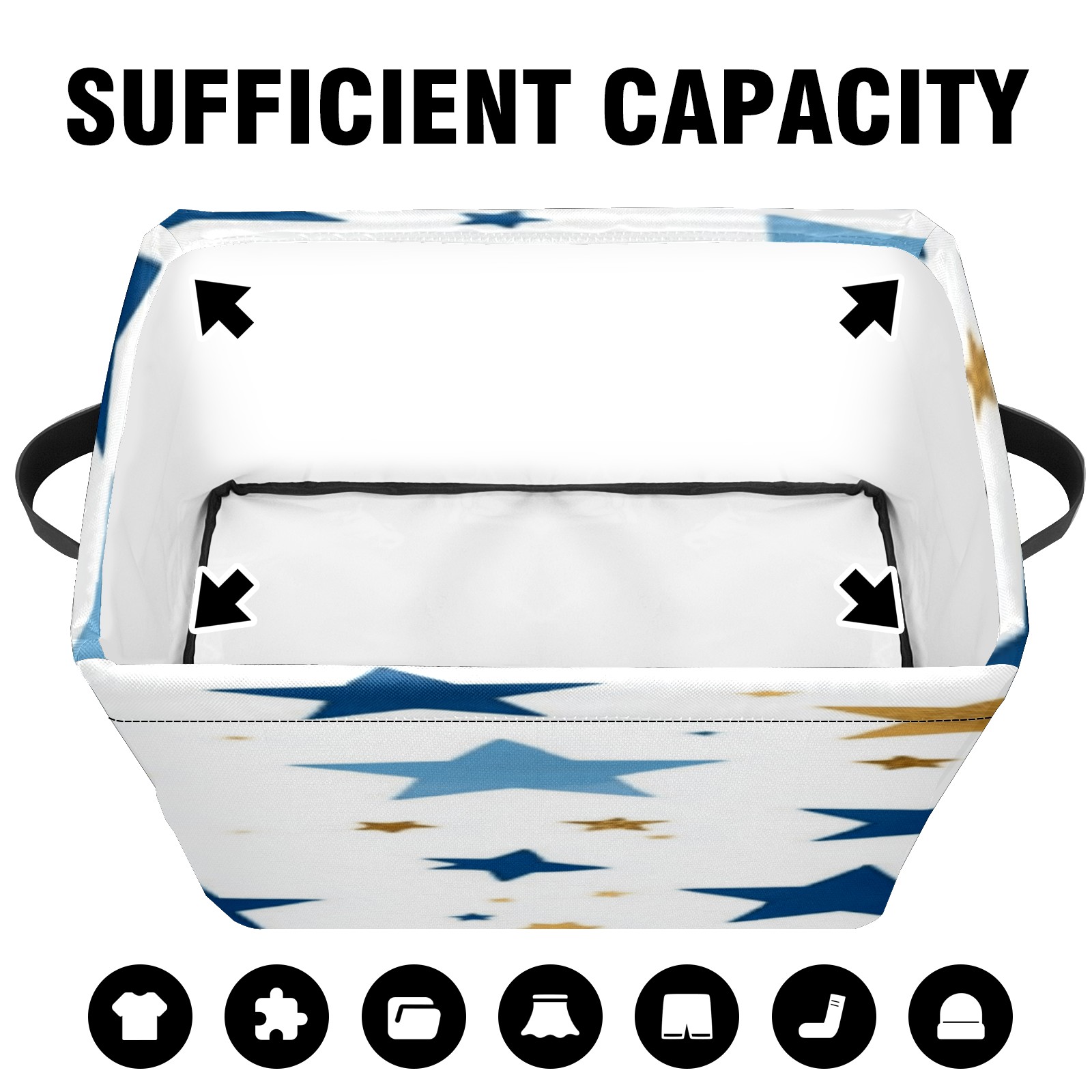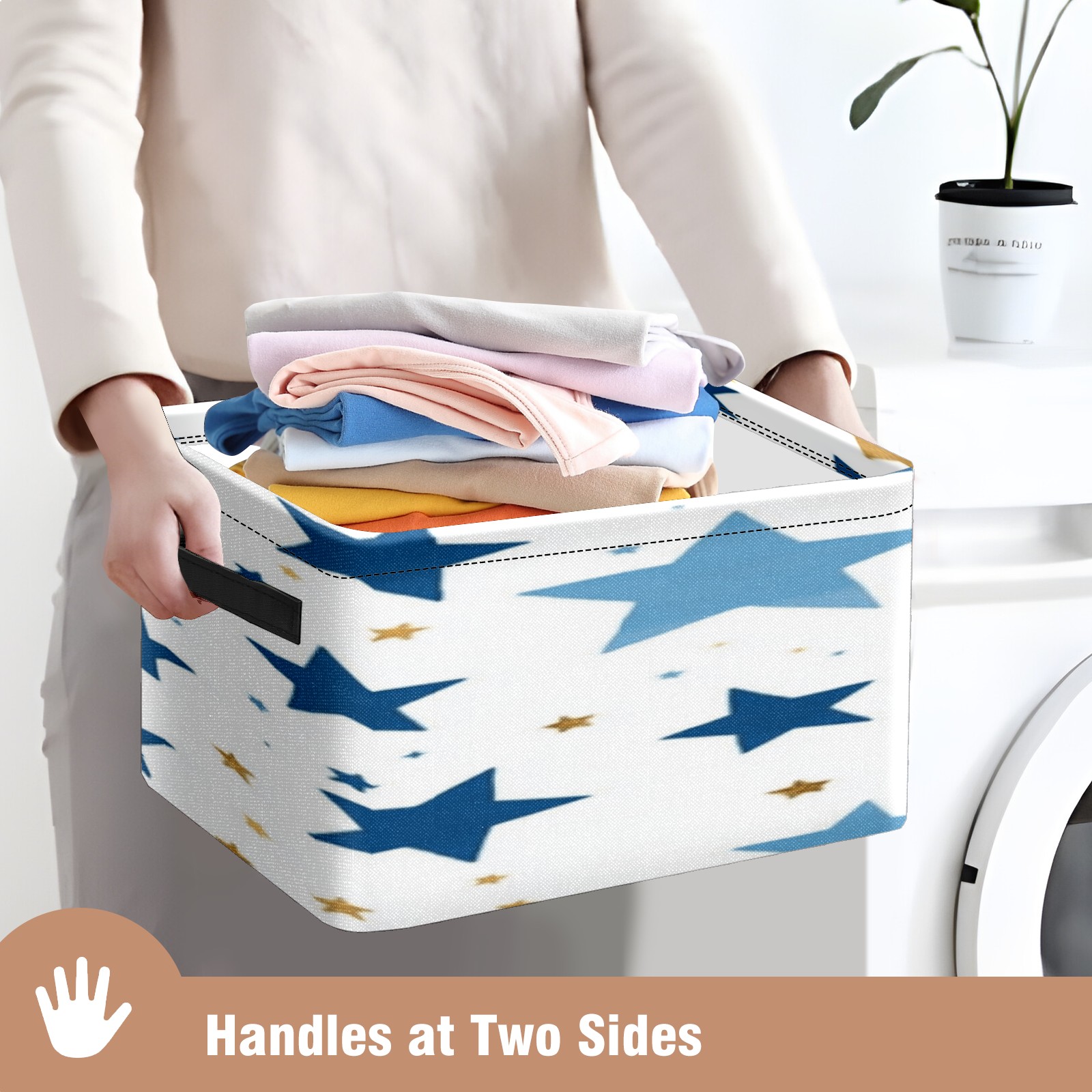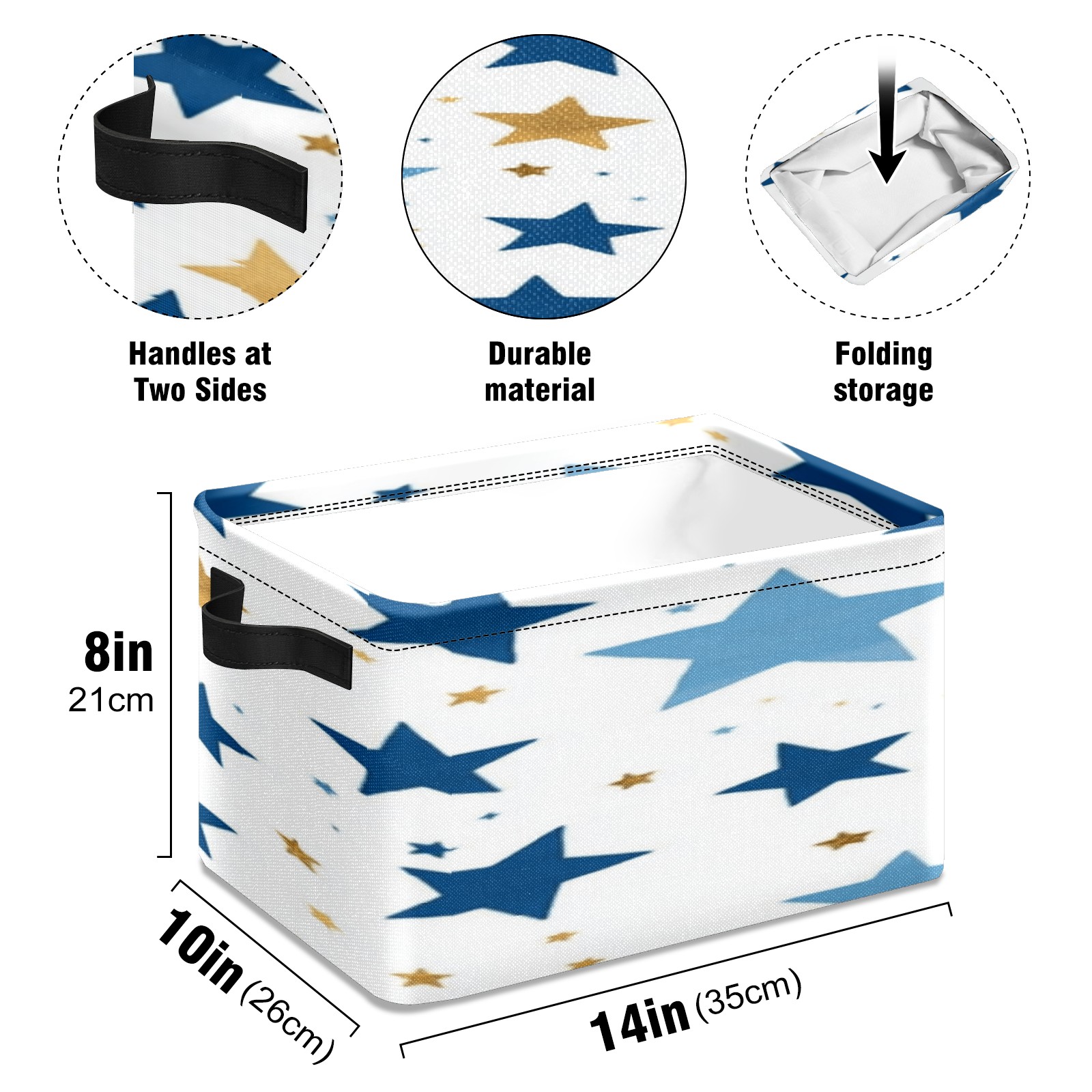 Foldable and Stackable Fabric Storage Basket for Home Organization with Handles, Decorative Closet Bins for Shelves, Laundry, and Toy Storage( Blue And Gold Stars)