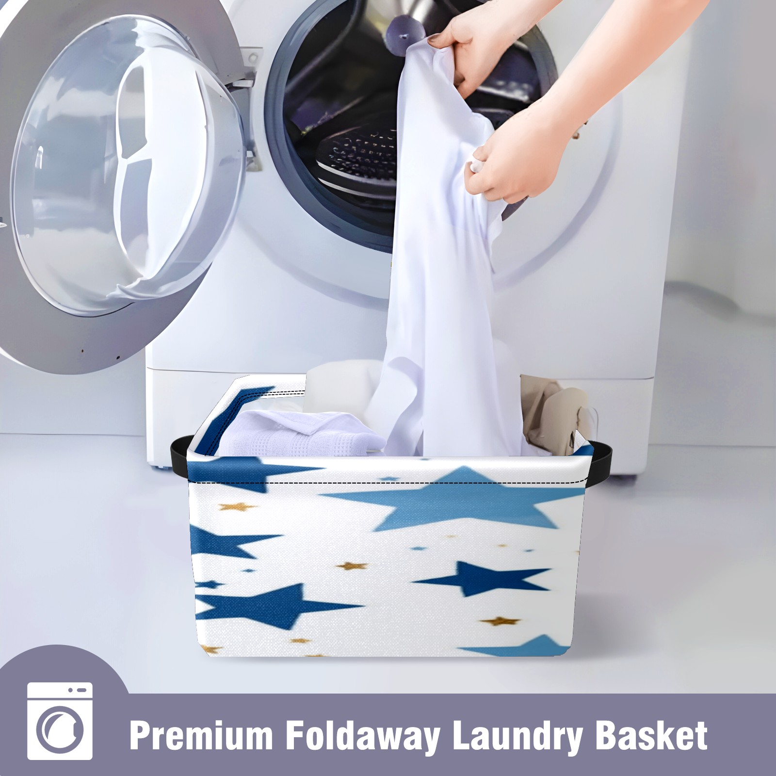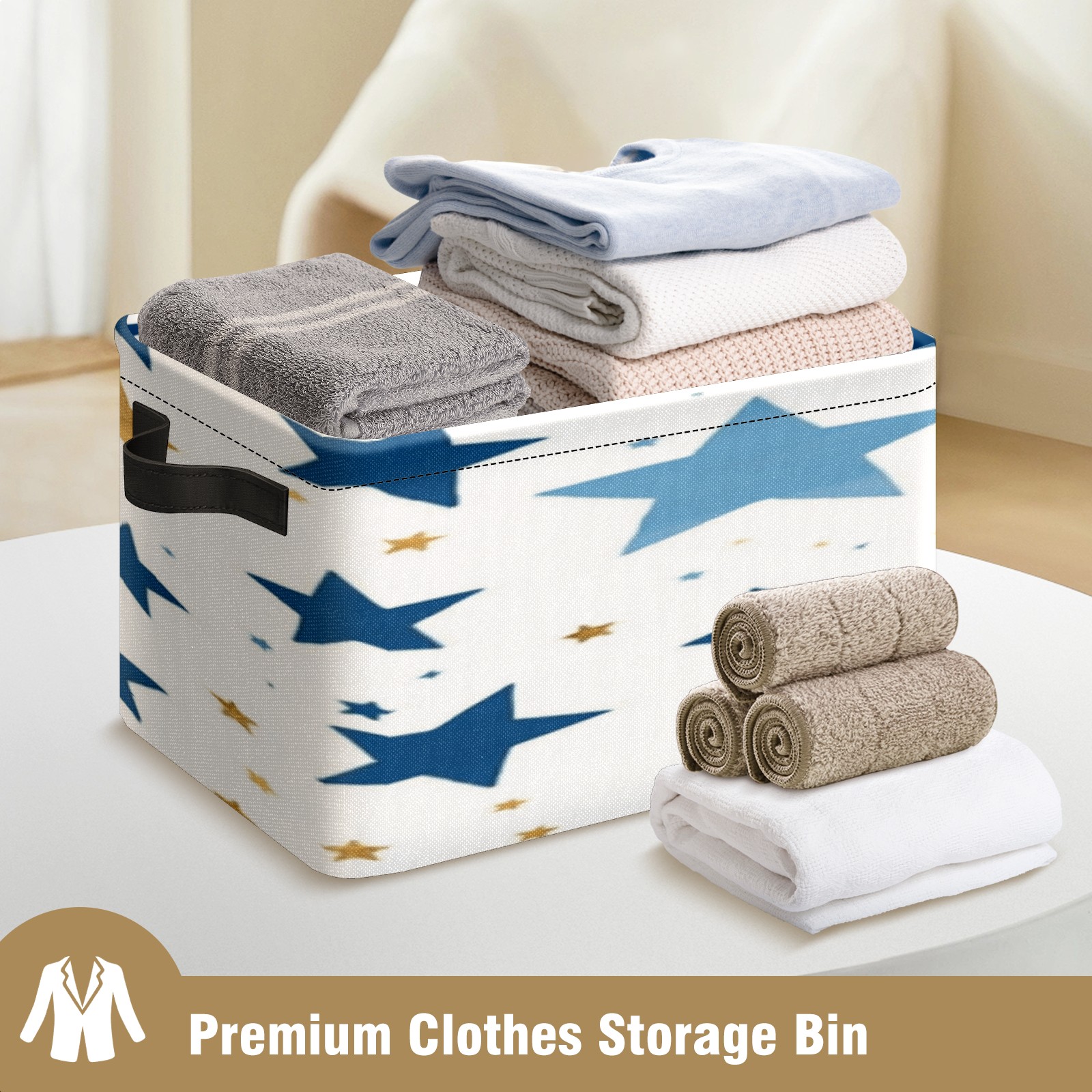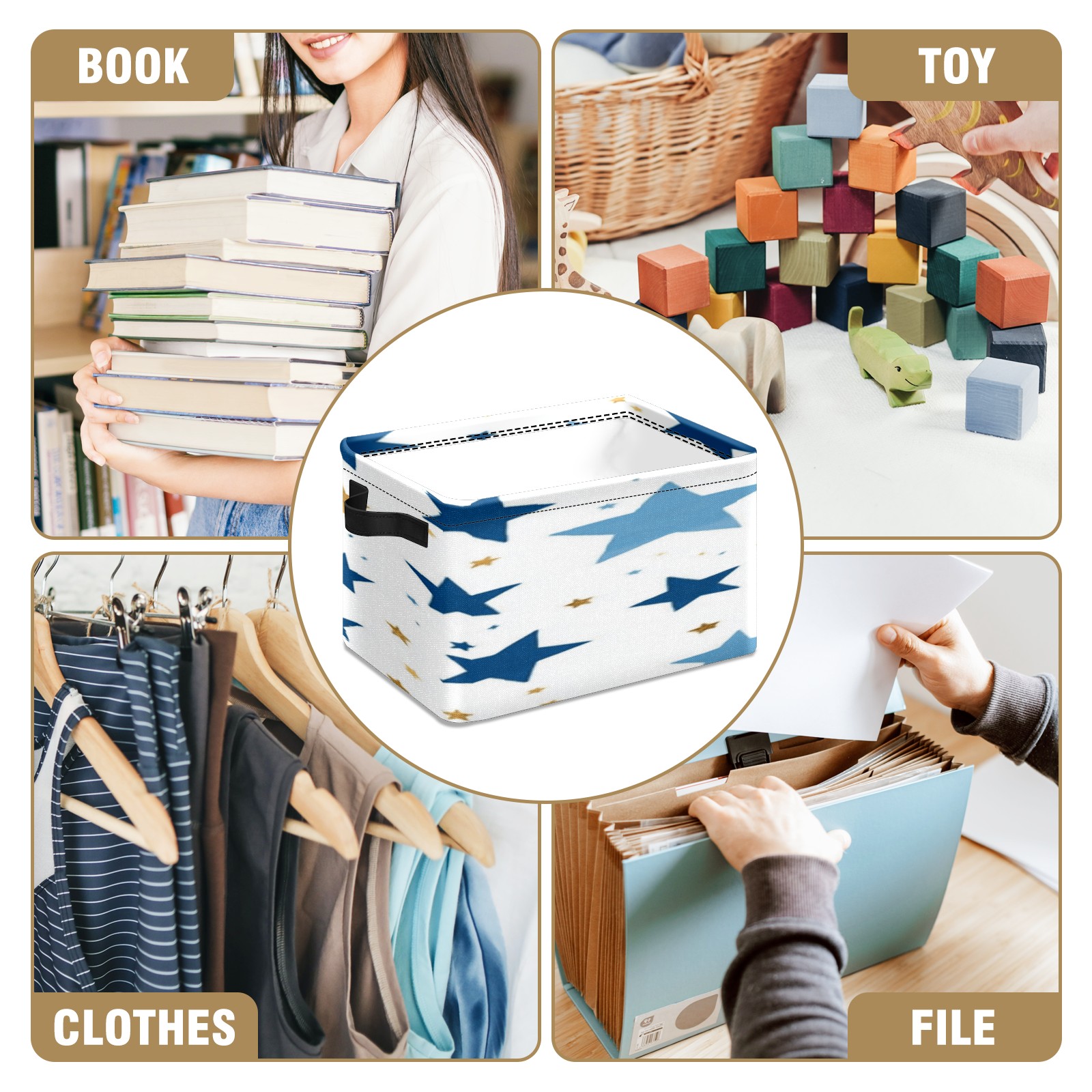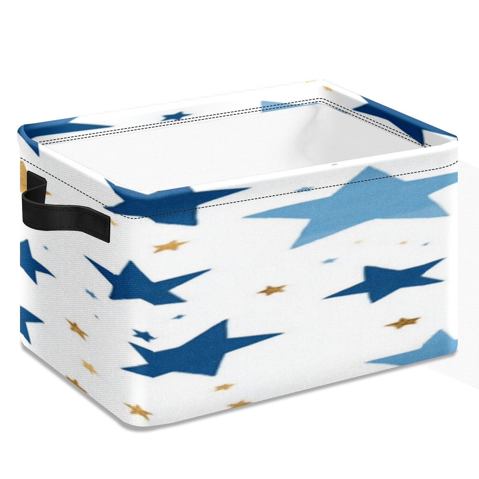 Foldable and Stackable Fabric Storage Basket for Home Organization with Handles, Decorative Closet Bins for Shelves, Laundry, and Toy Storage( Blue And Gold Stars)