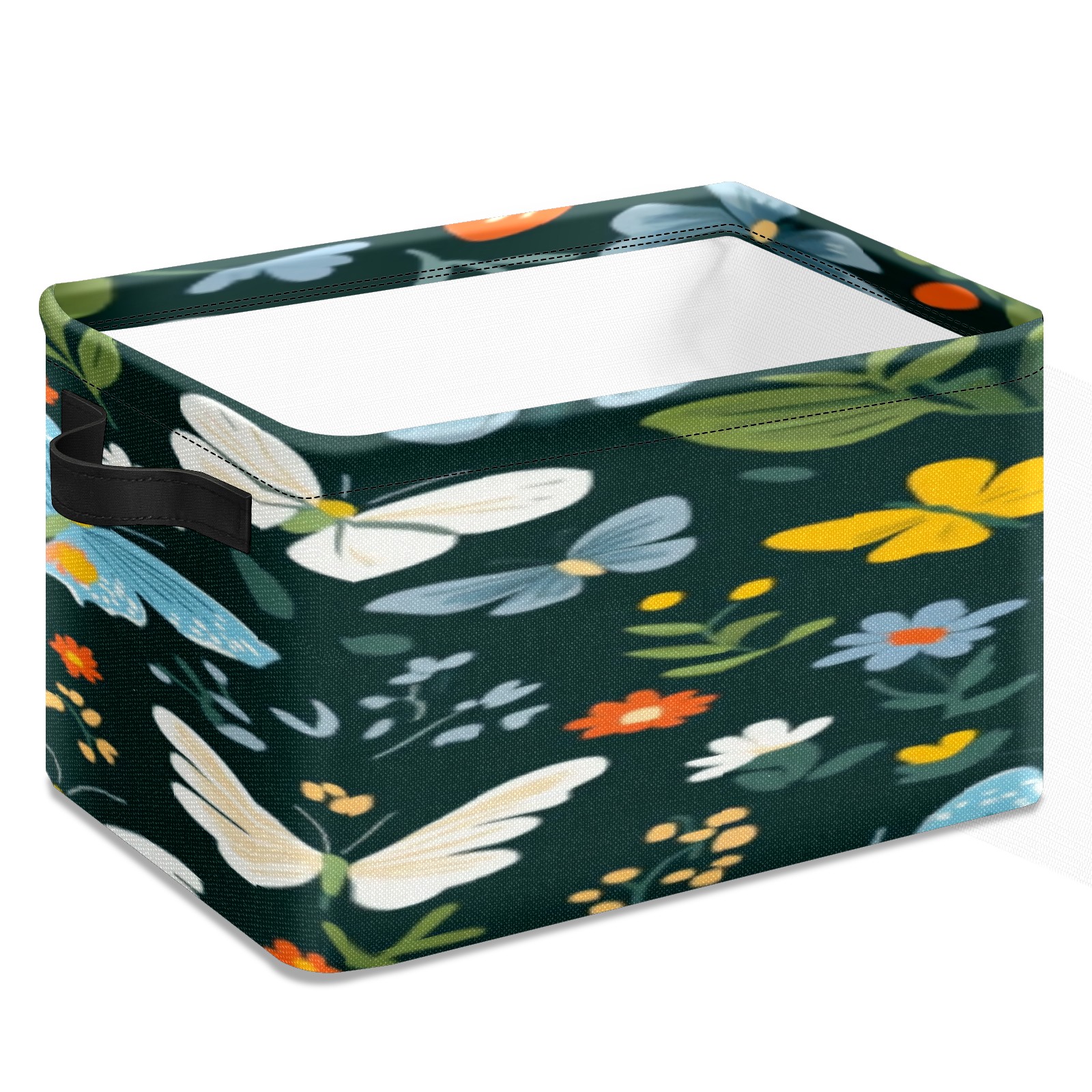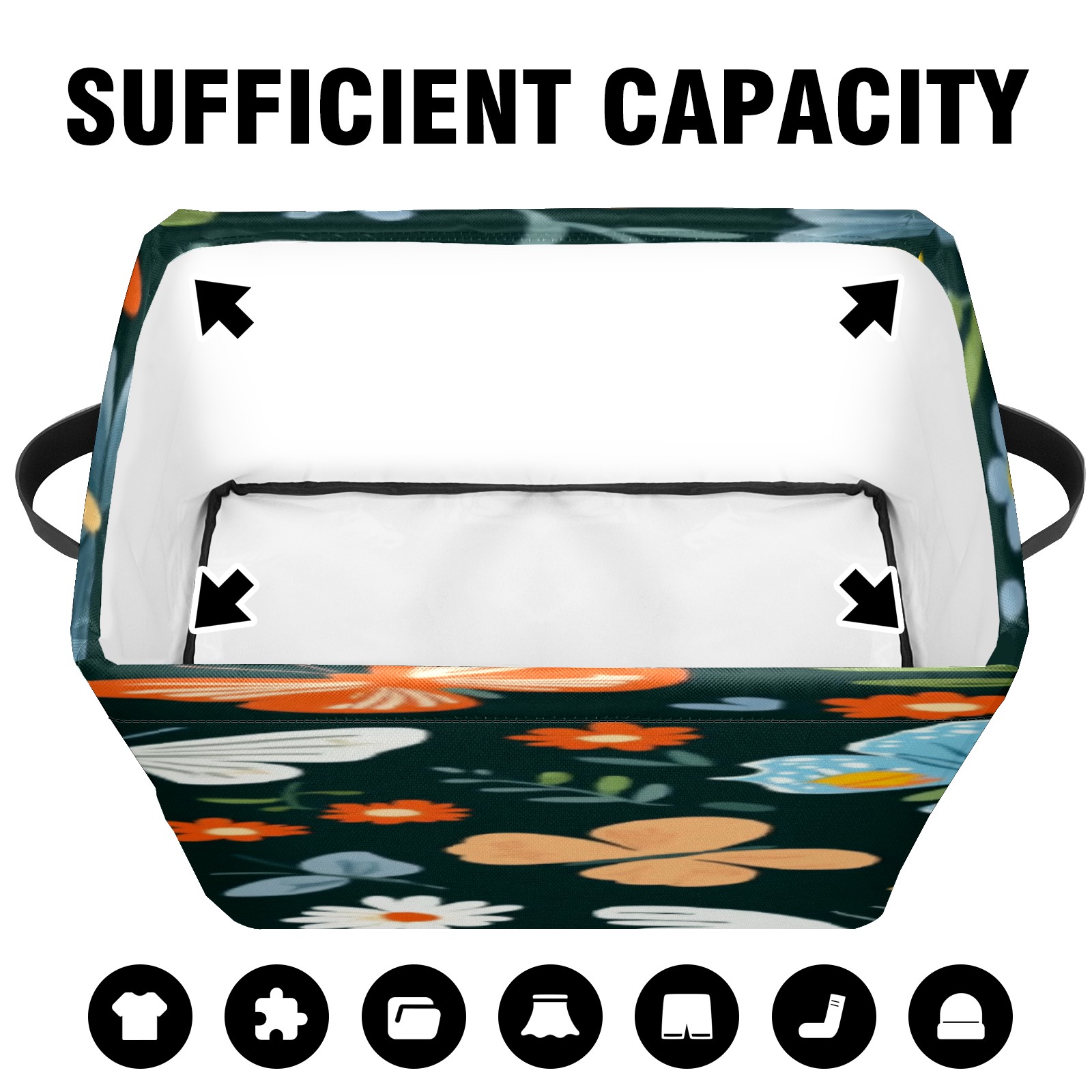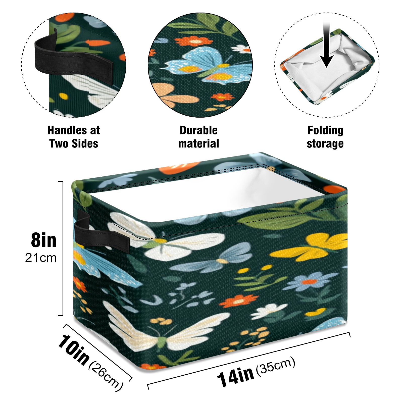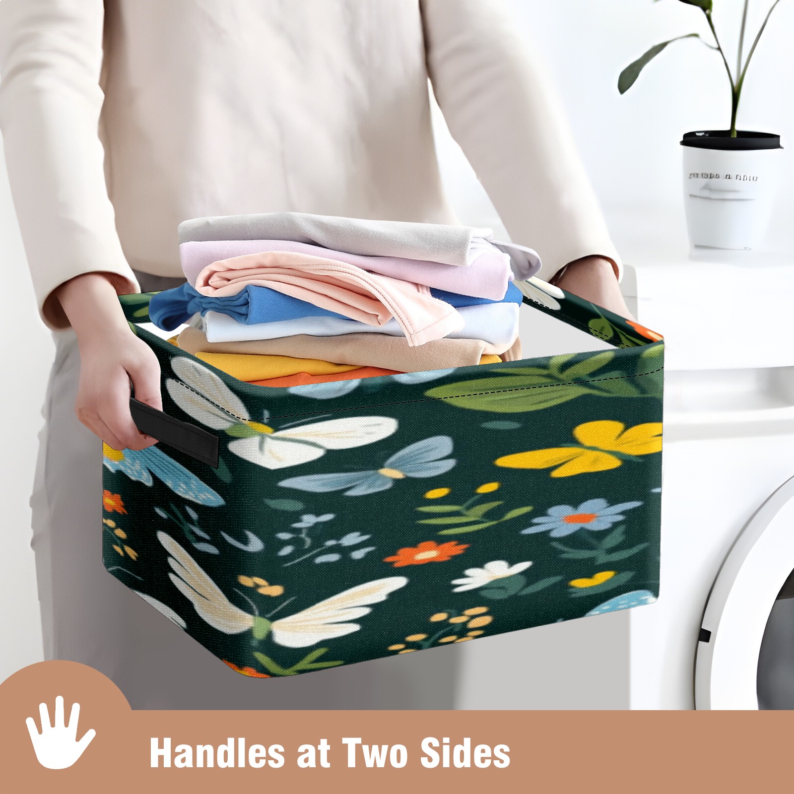 Foldable and Stackable Fabric Storage Basket for Home Organization with Handles, Decorative Closet Bins for Shelves, Laundry, and Toy Storage( Colorful Butterflies And Flowers)