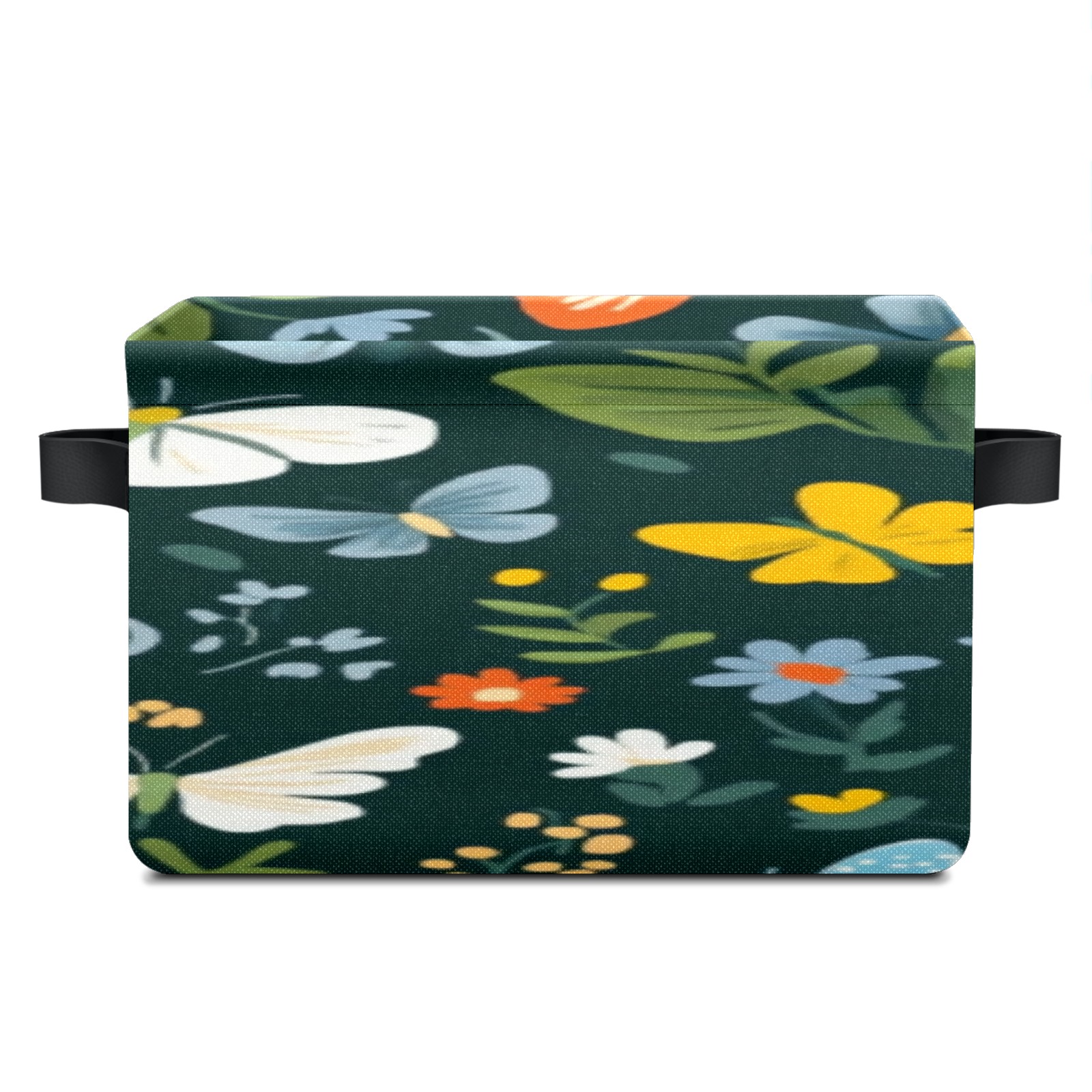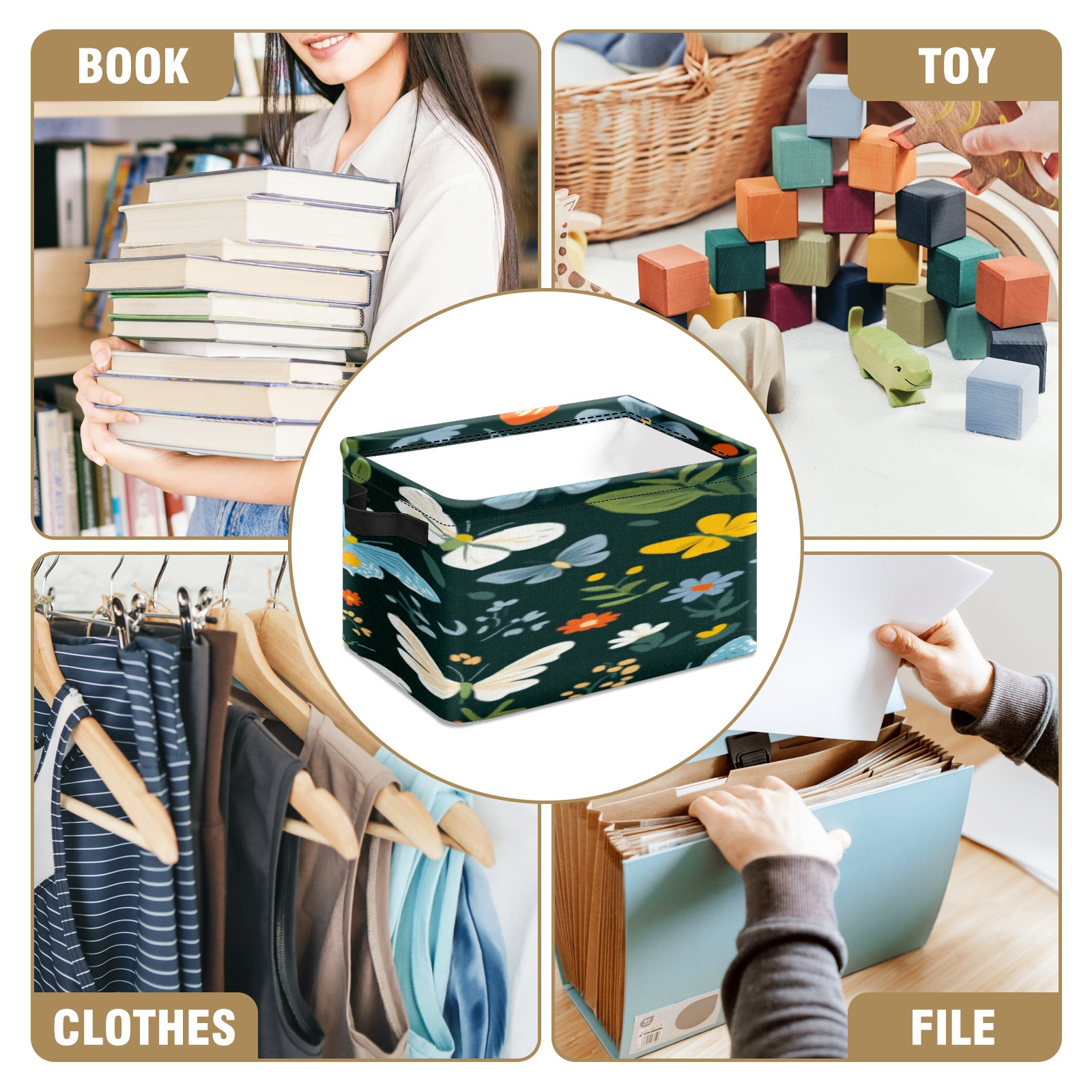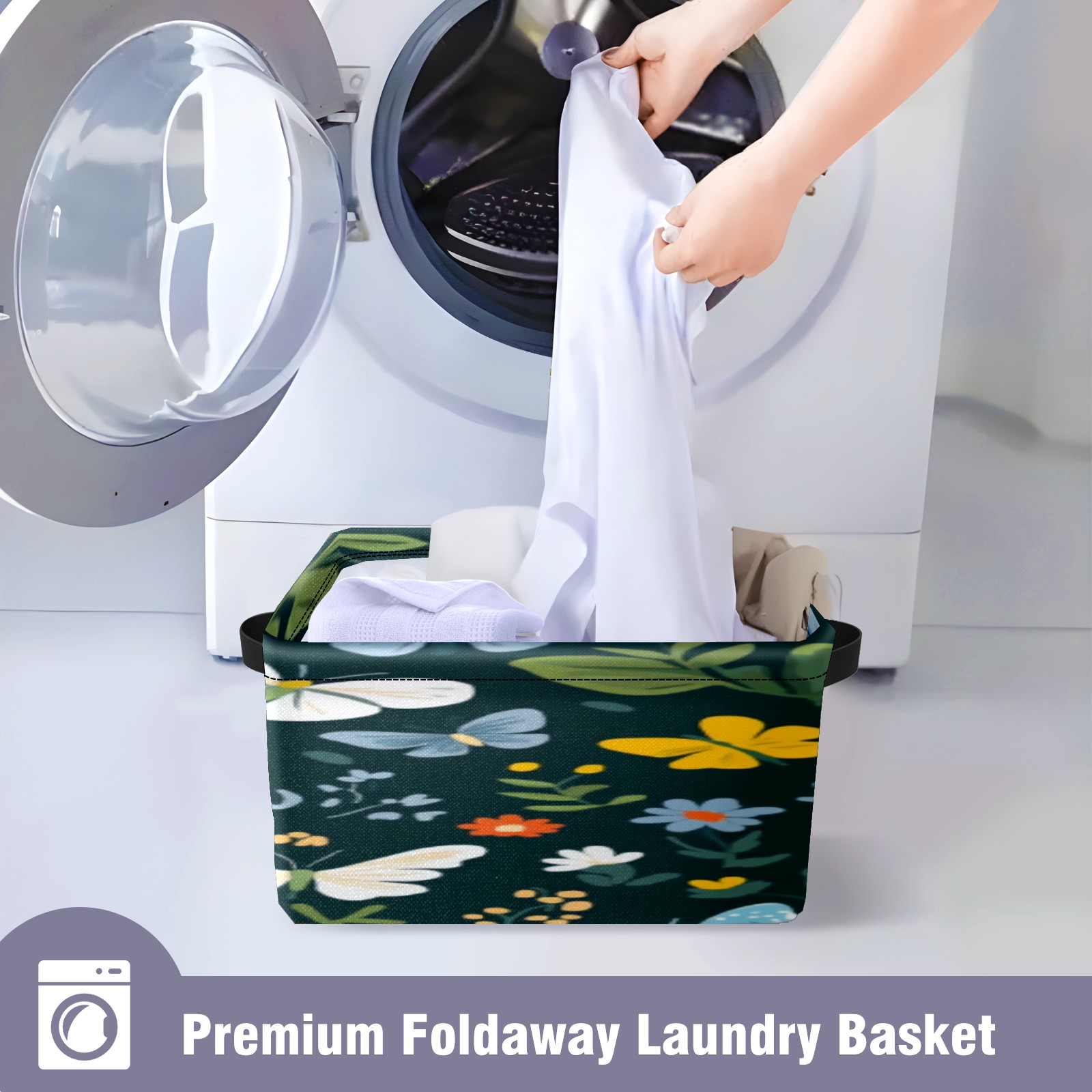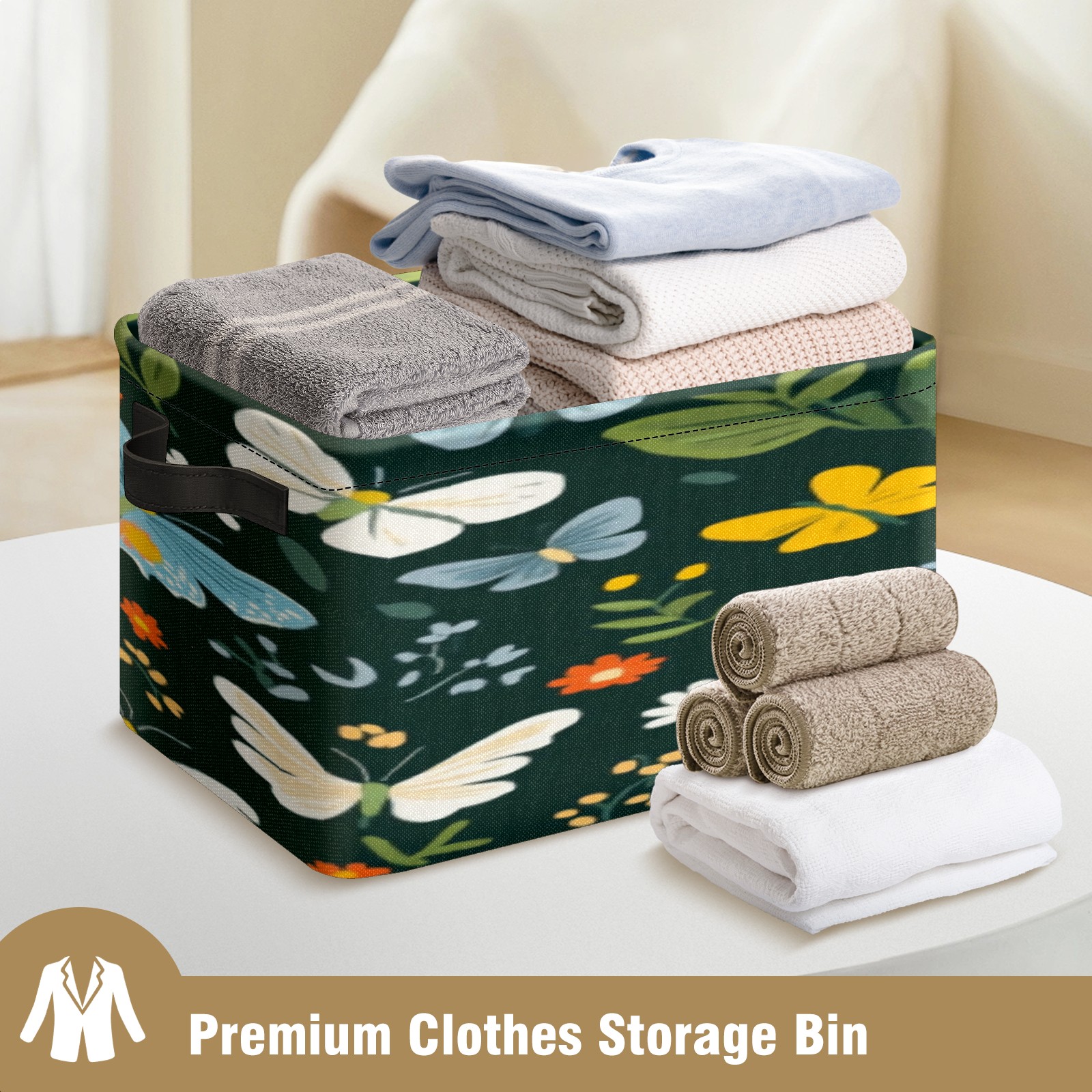 Foldable and Stackable Fabric Storage Basket for Home Organization with Handles, Decorative Closet Bins for Shelves, Laundry, and Toy Storage( Colorful Butterflies And Flowers)