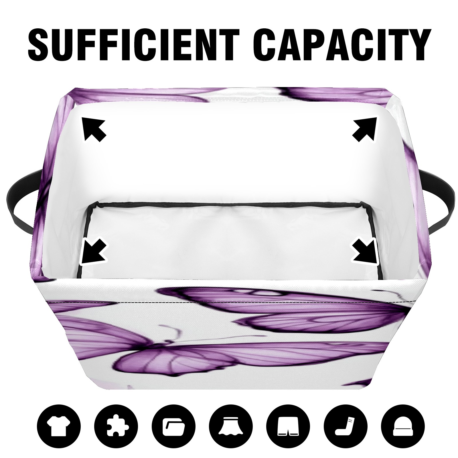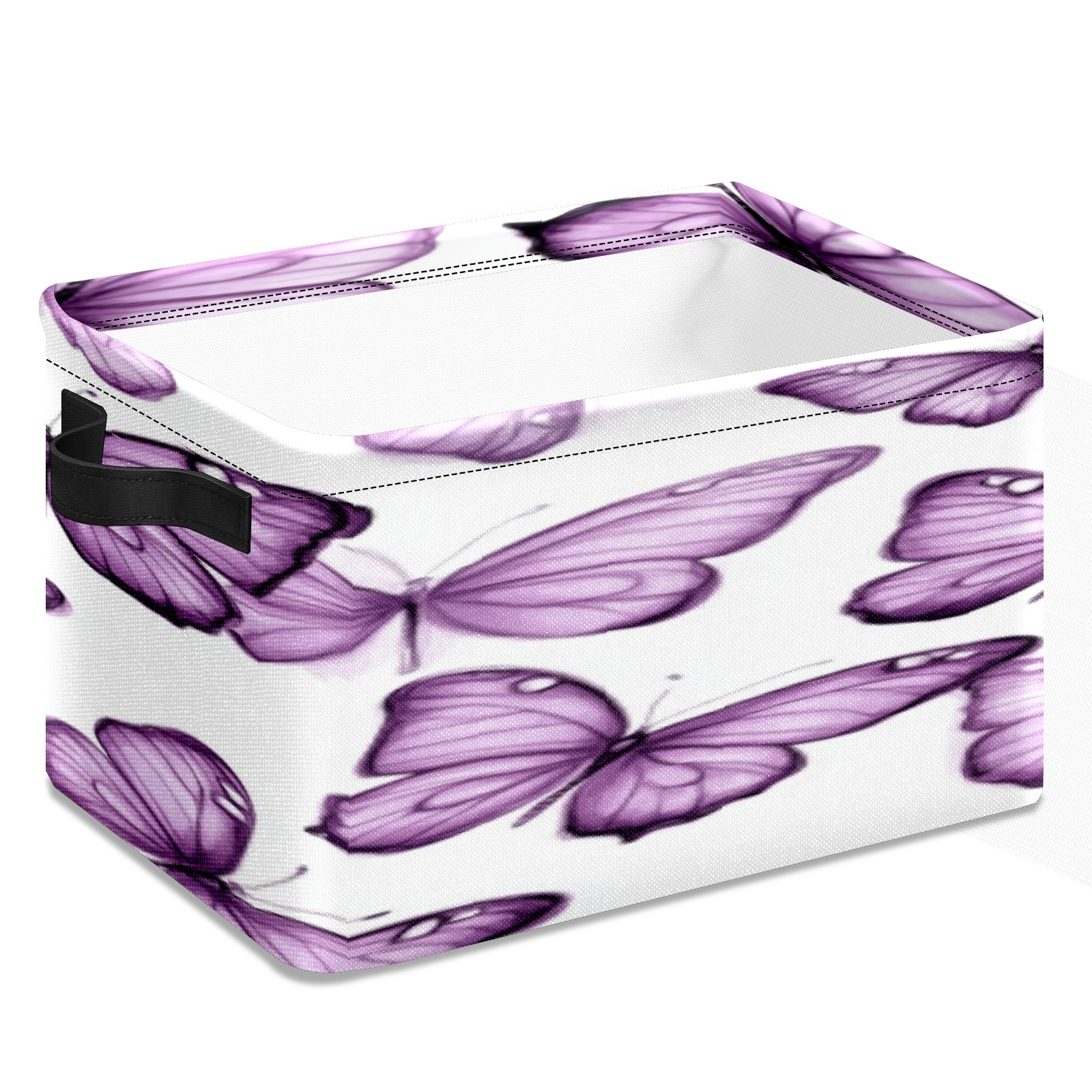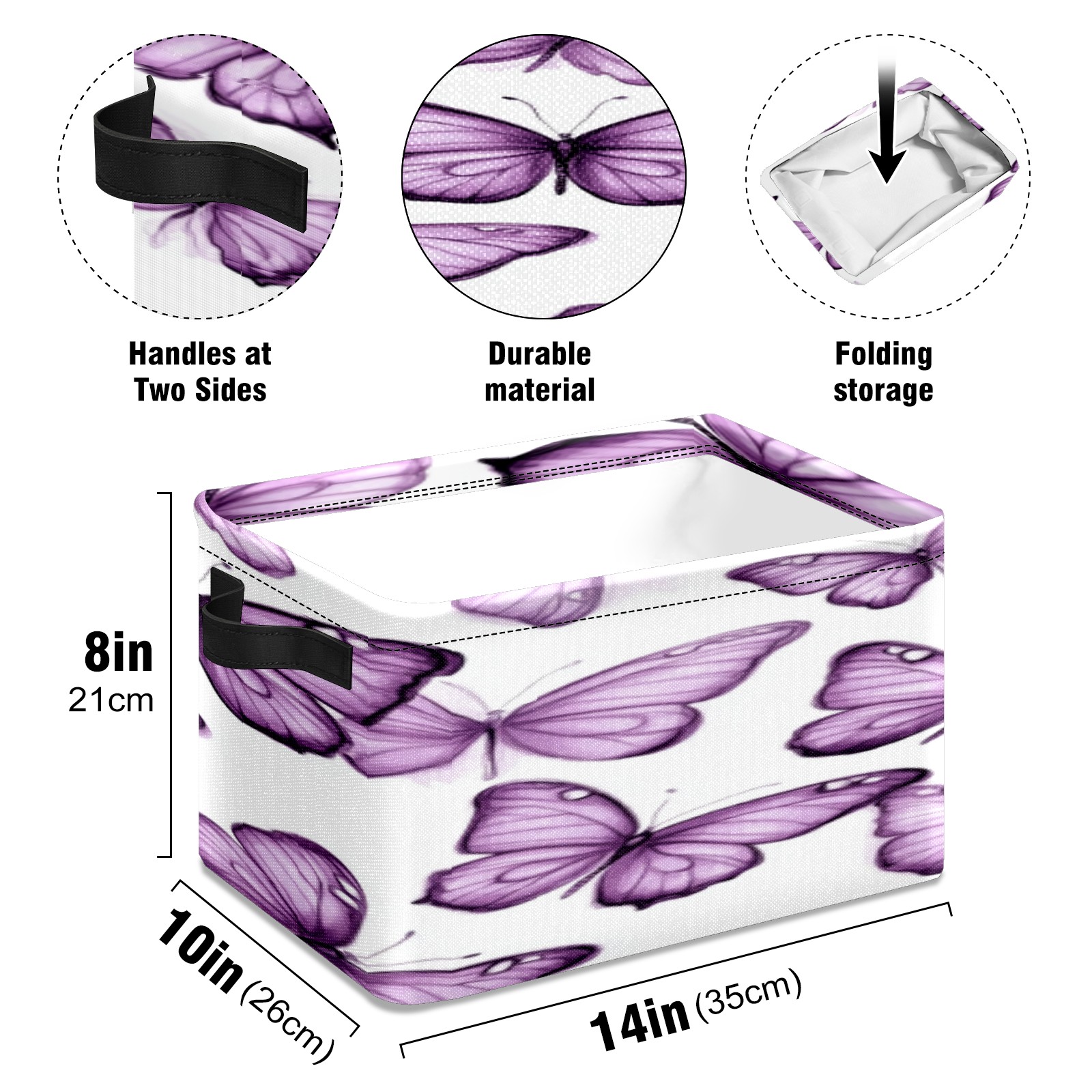 Foldable and Stackable Fabric Storage Basket for Home Organization with Handles, Decorative Closet Bins for Shelves, Laundry, and Toy Storage( Purple Butterflies)