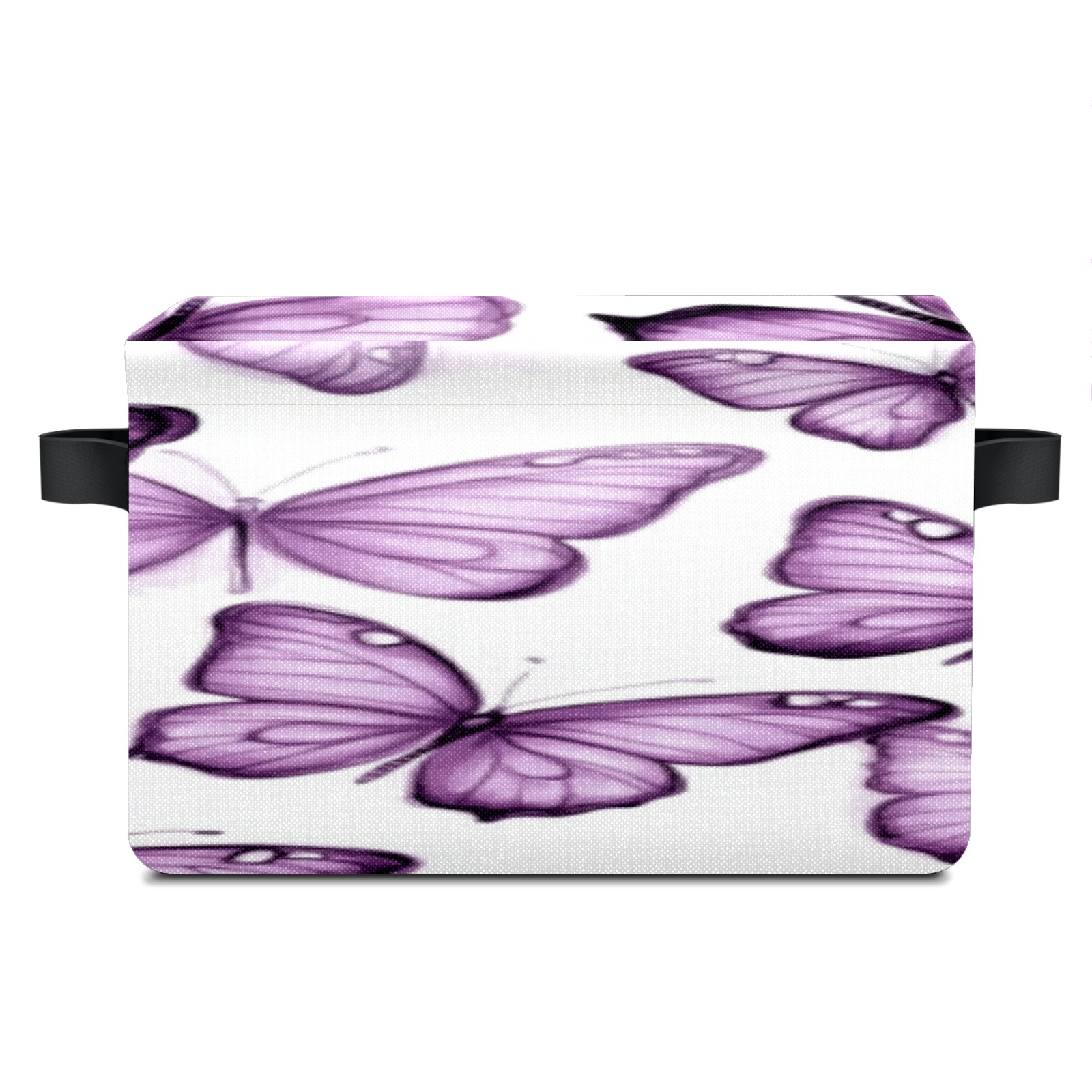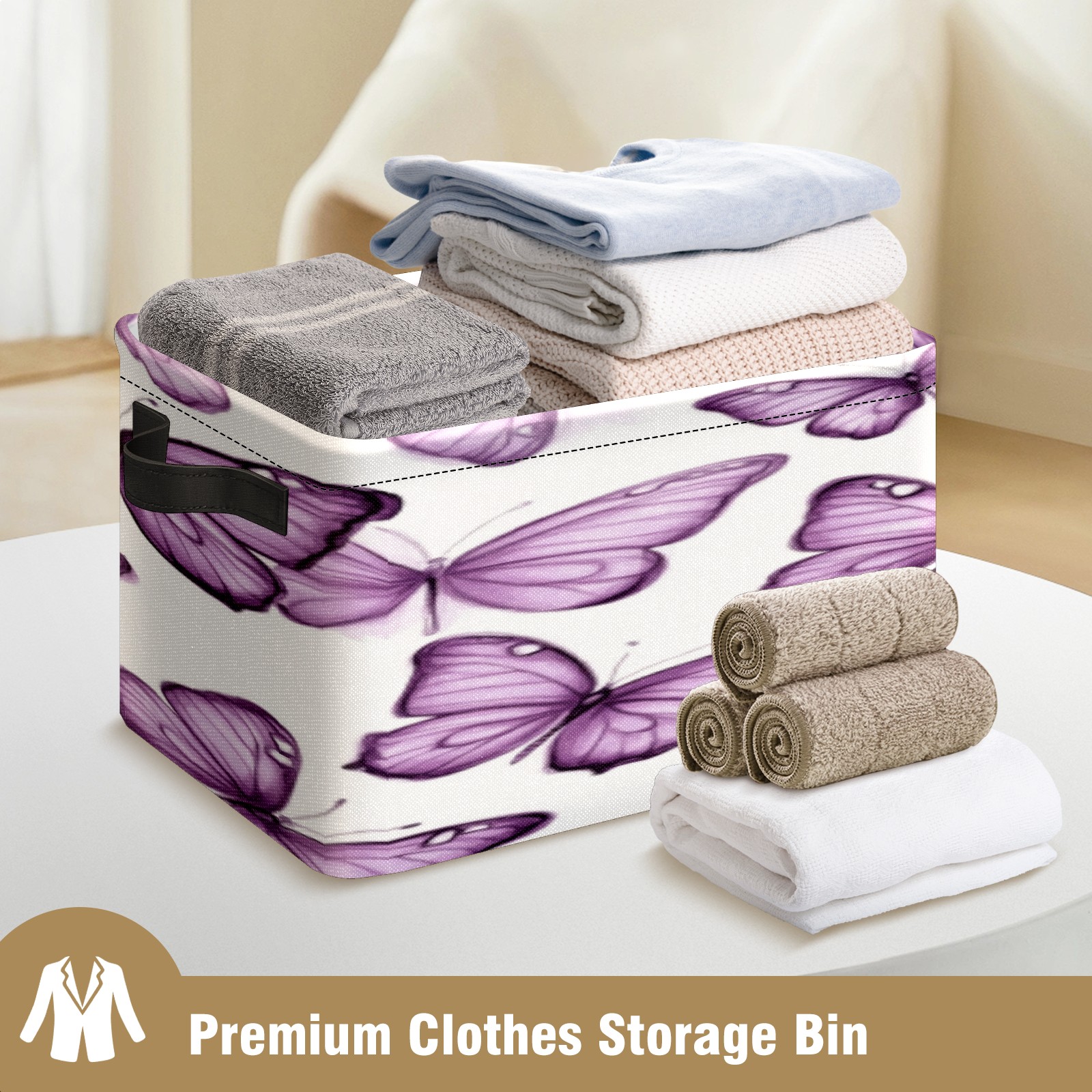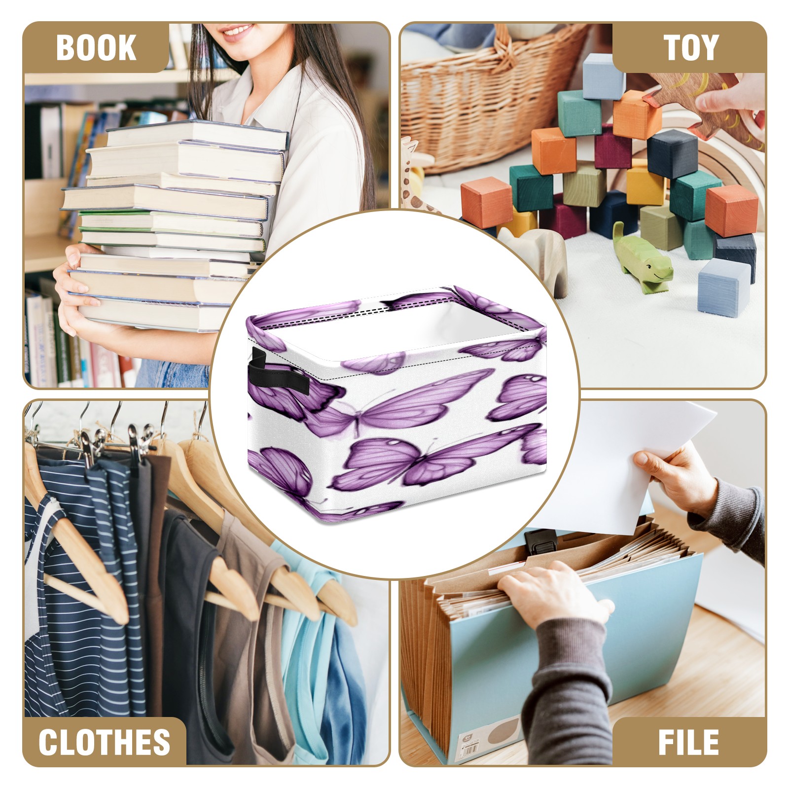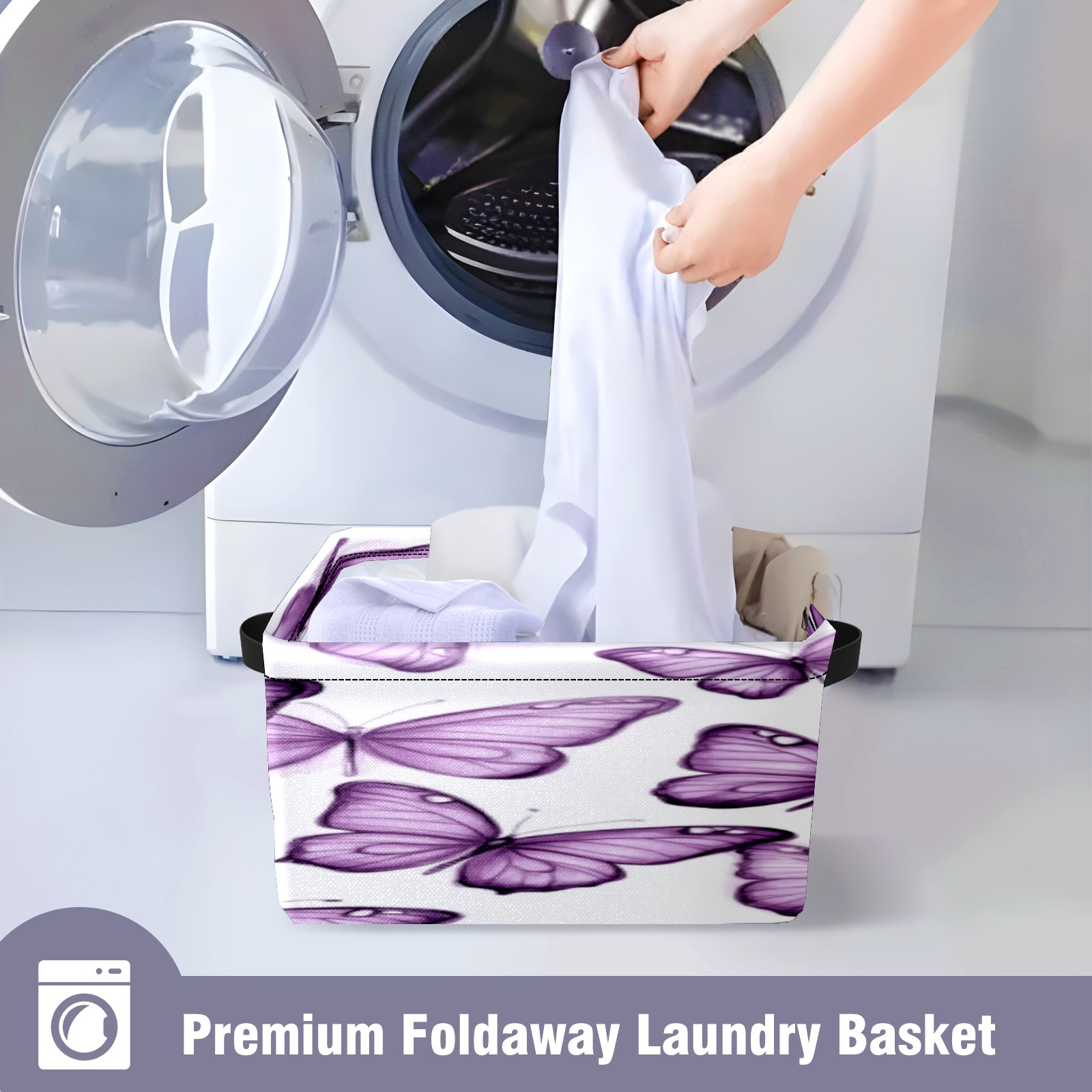 Foldable and Stackable Fabric Storage Basket for Home Organization with Handles, Decorative Closet Bins for Shelves, Laundry, and Toy Storage( Purple Butterflies)