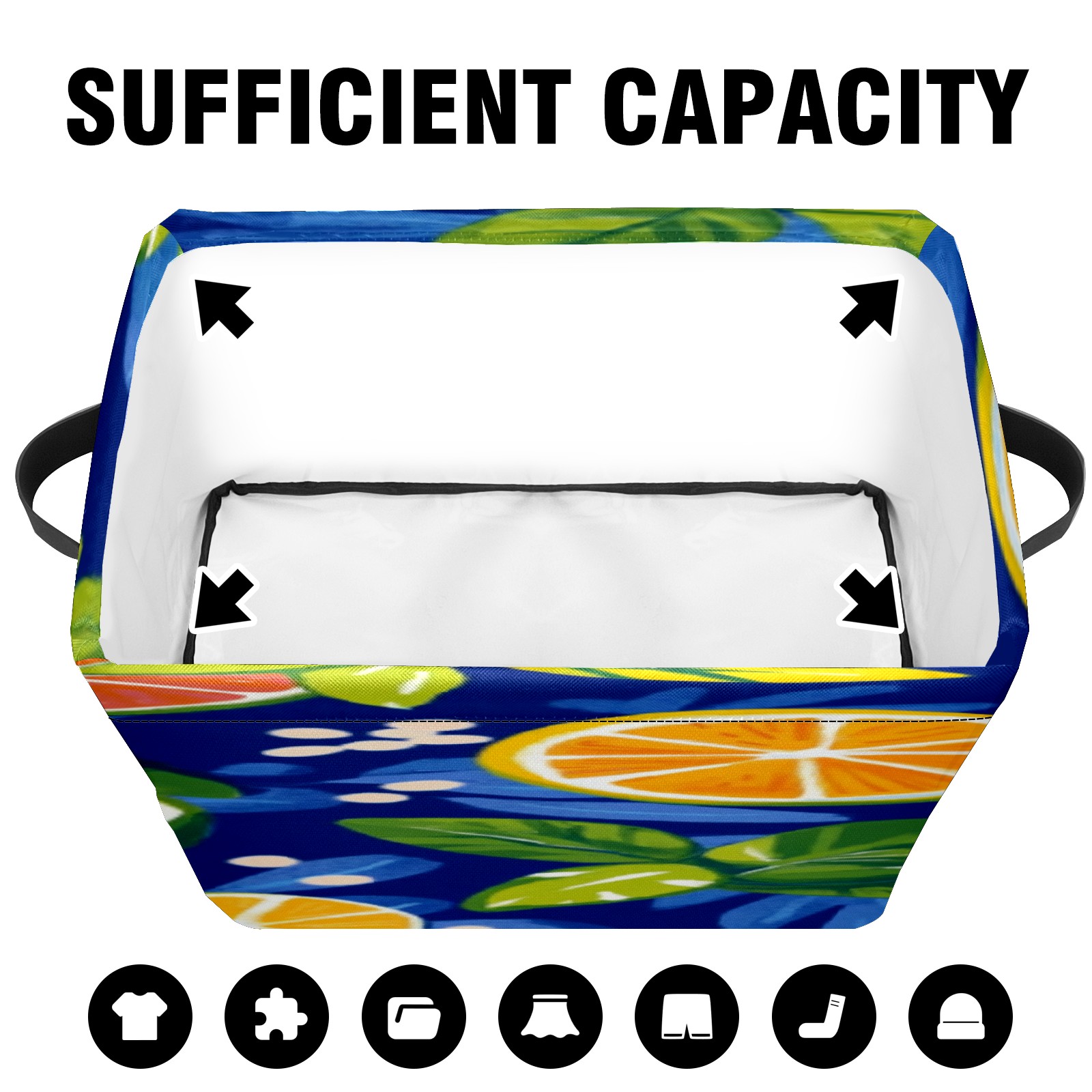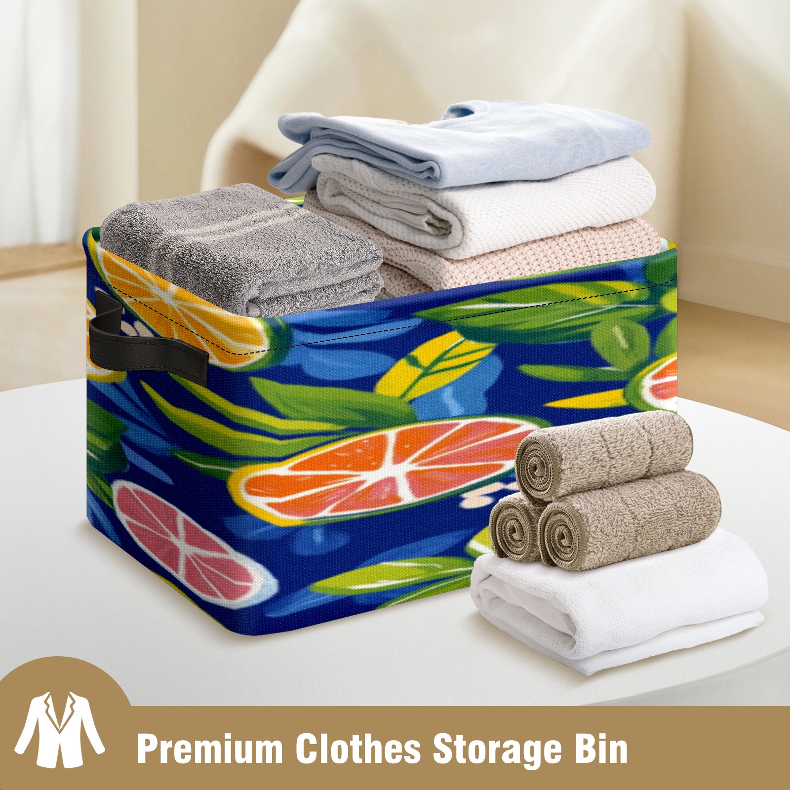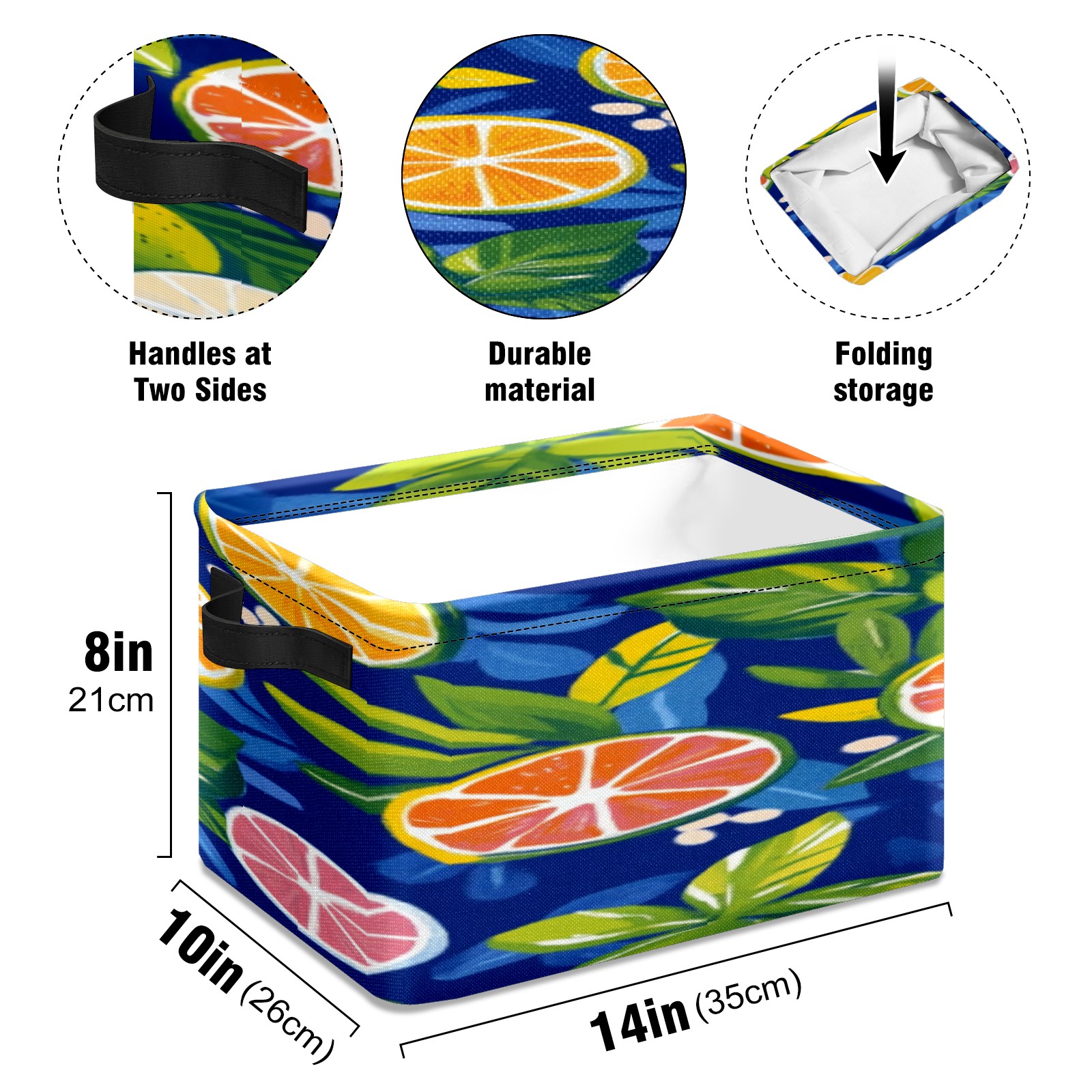 Foldable and Stackable Fabric Storage Basket for Home Organization with Handles, Decorative Closet Bins for Shelves, Laundry, and Toy Storage( Oranges And Lemons)