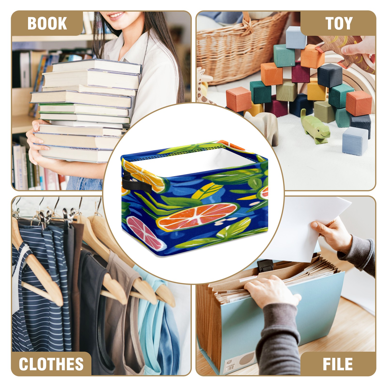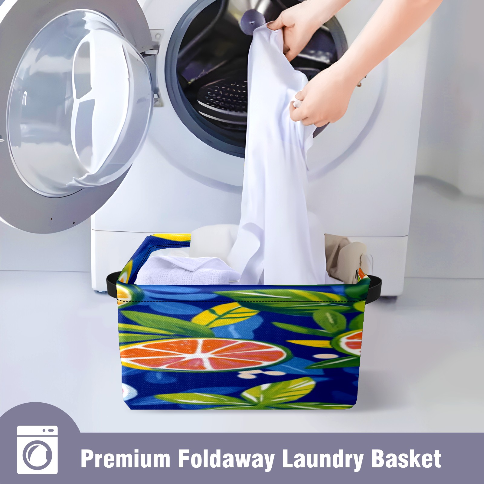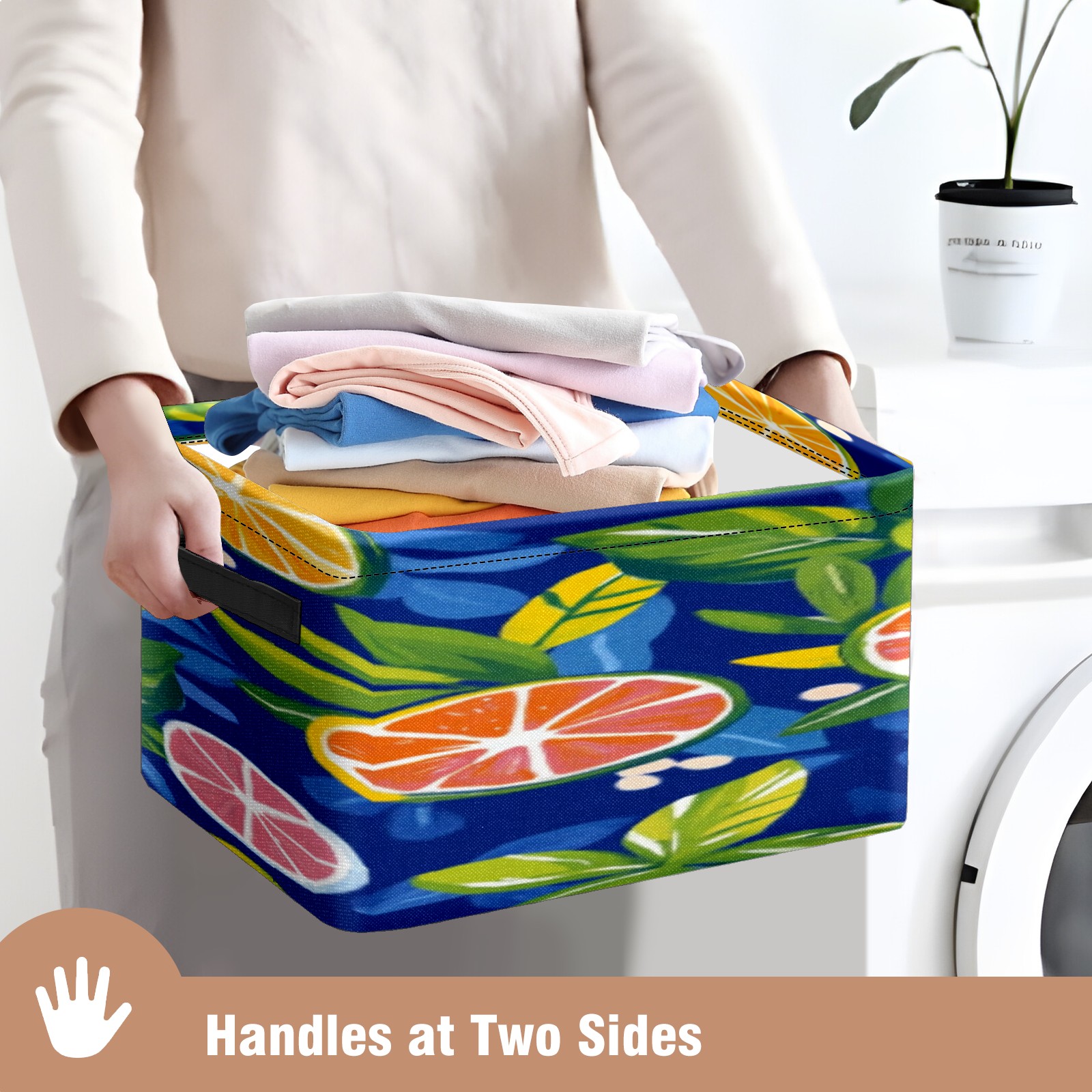 Foldable and Stackable Fabric Storage Basket for Home Organization with Handles, Decorative Closet Bins for Shelves, Laundry, and Toy Storage( Oranges And Lemons)