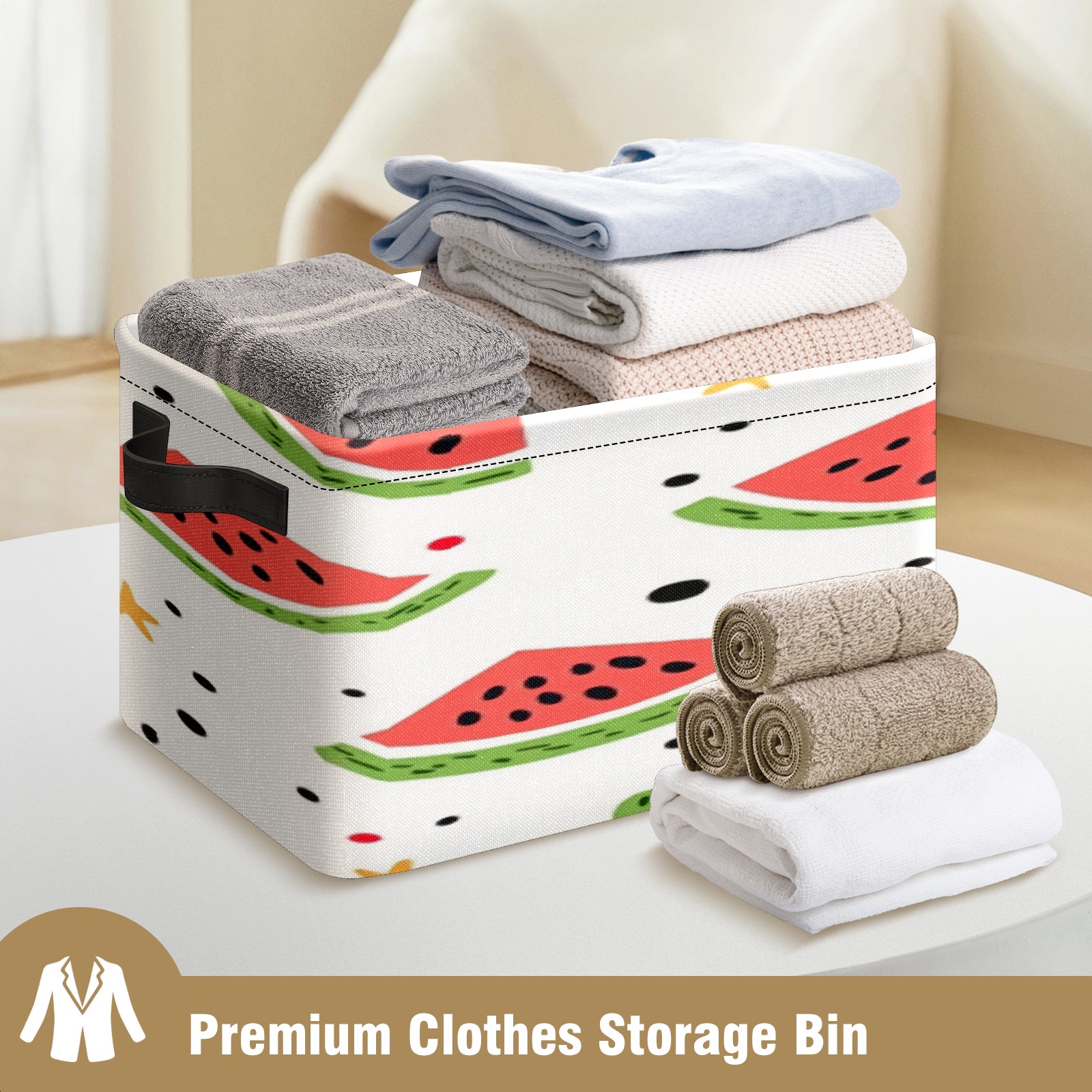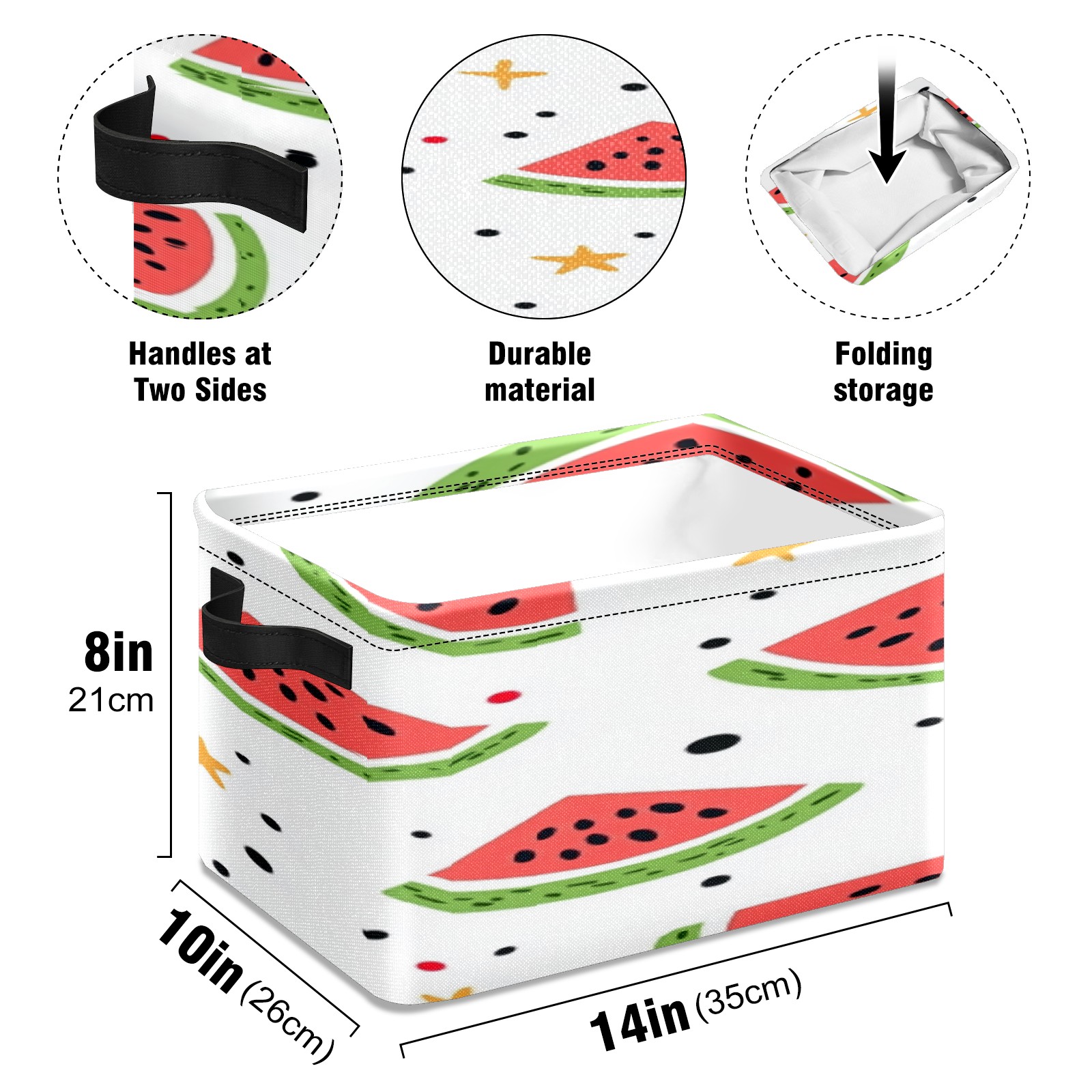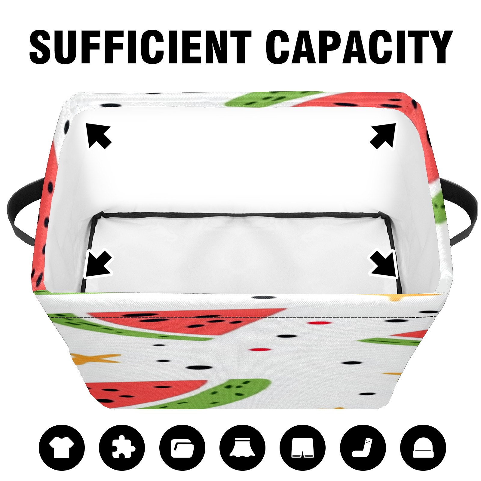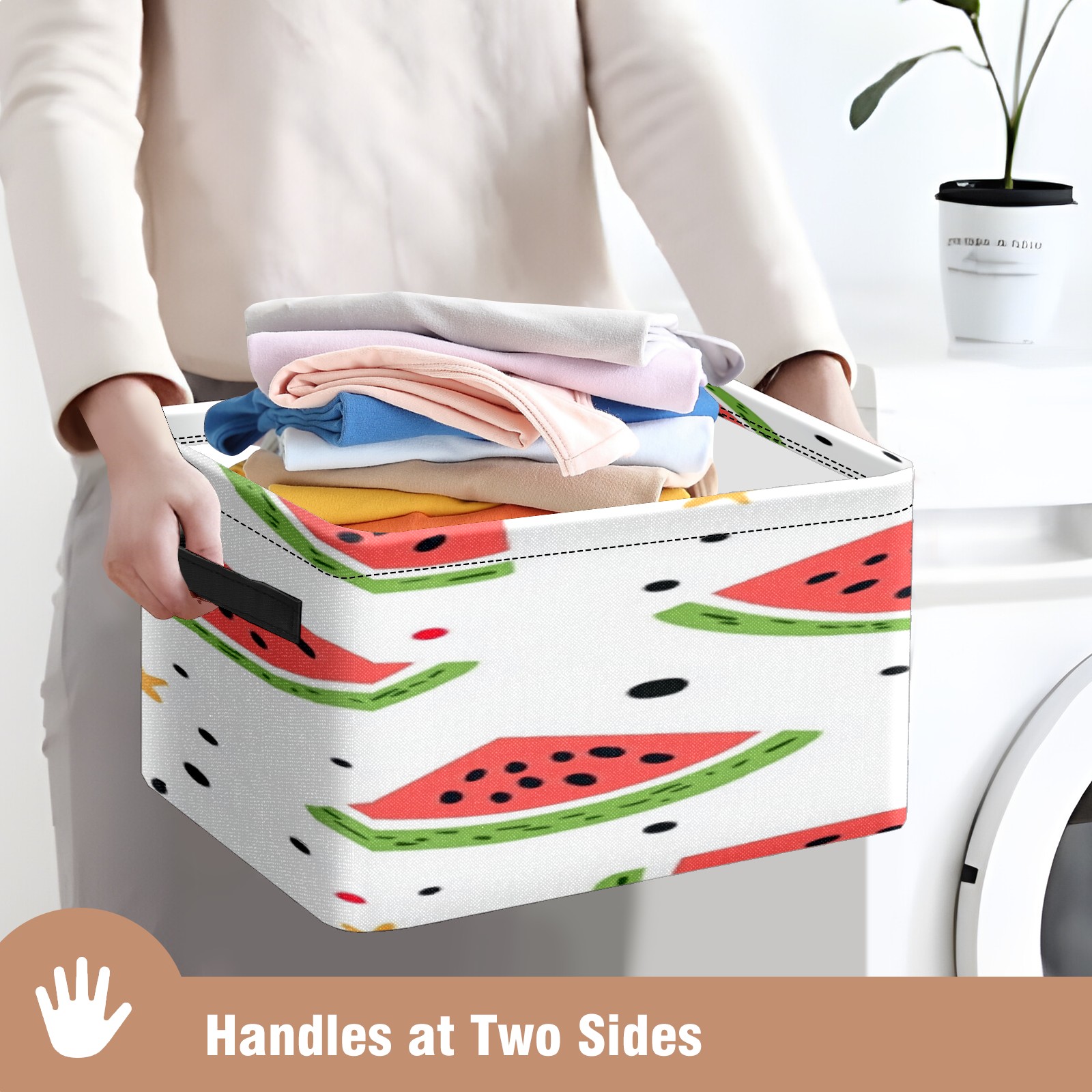 Foldable and Stackable Fabric Storage Basket for Home Organization with Handles, Decorative Closet Bins for Shelves, Laundry, and Toy Storage( Cute Watermelon)