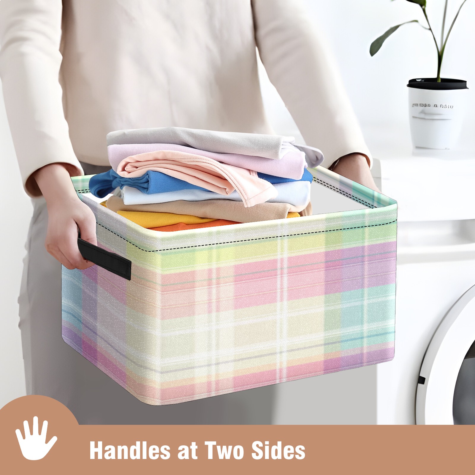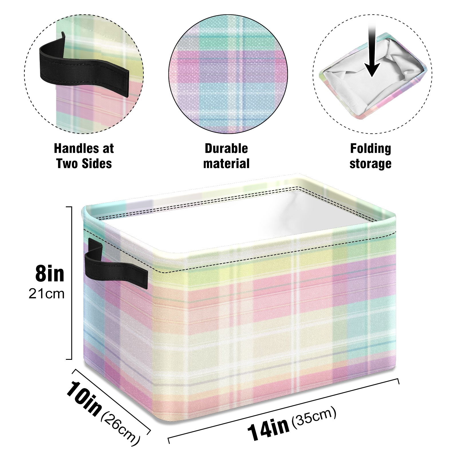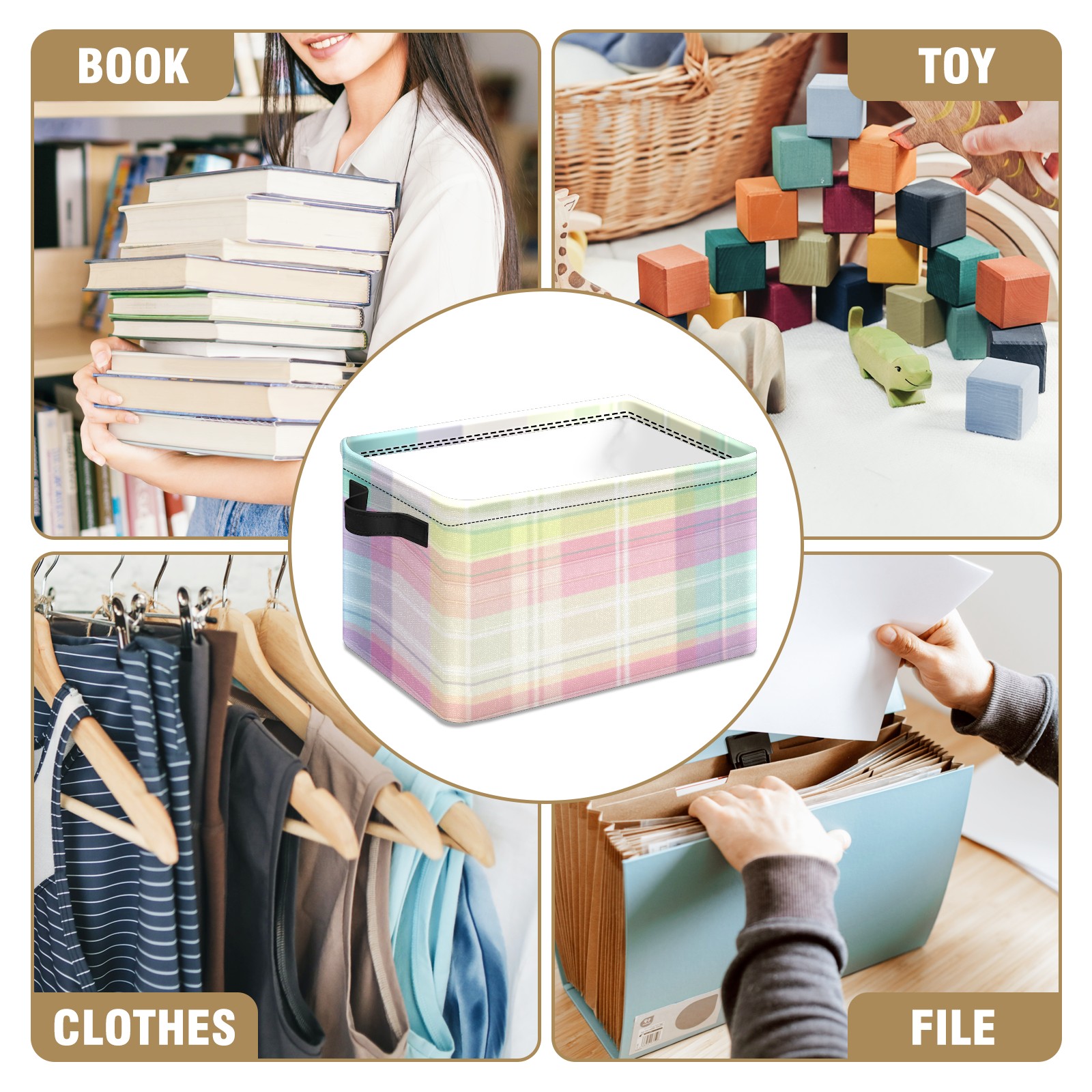 Foldable and Stackable Fabric Storage Basket for Home Organization with Handles, Decorative Closet Bins for Shelves, Laundry, and Toy Storage( Colorful Gingham)