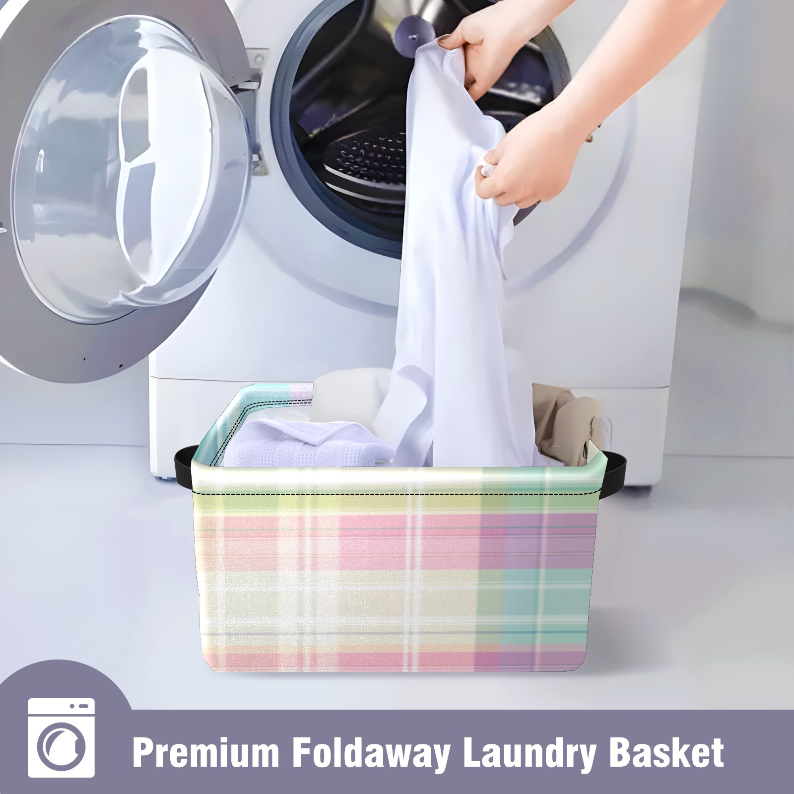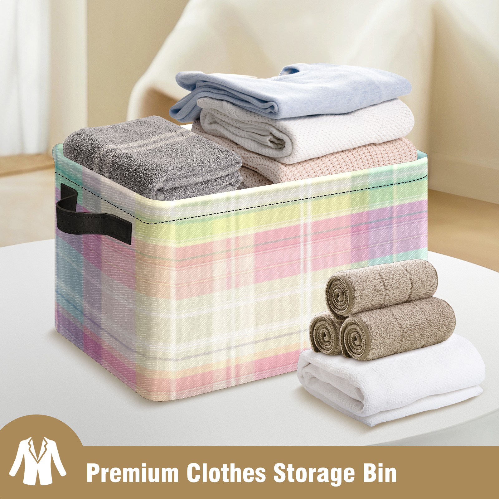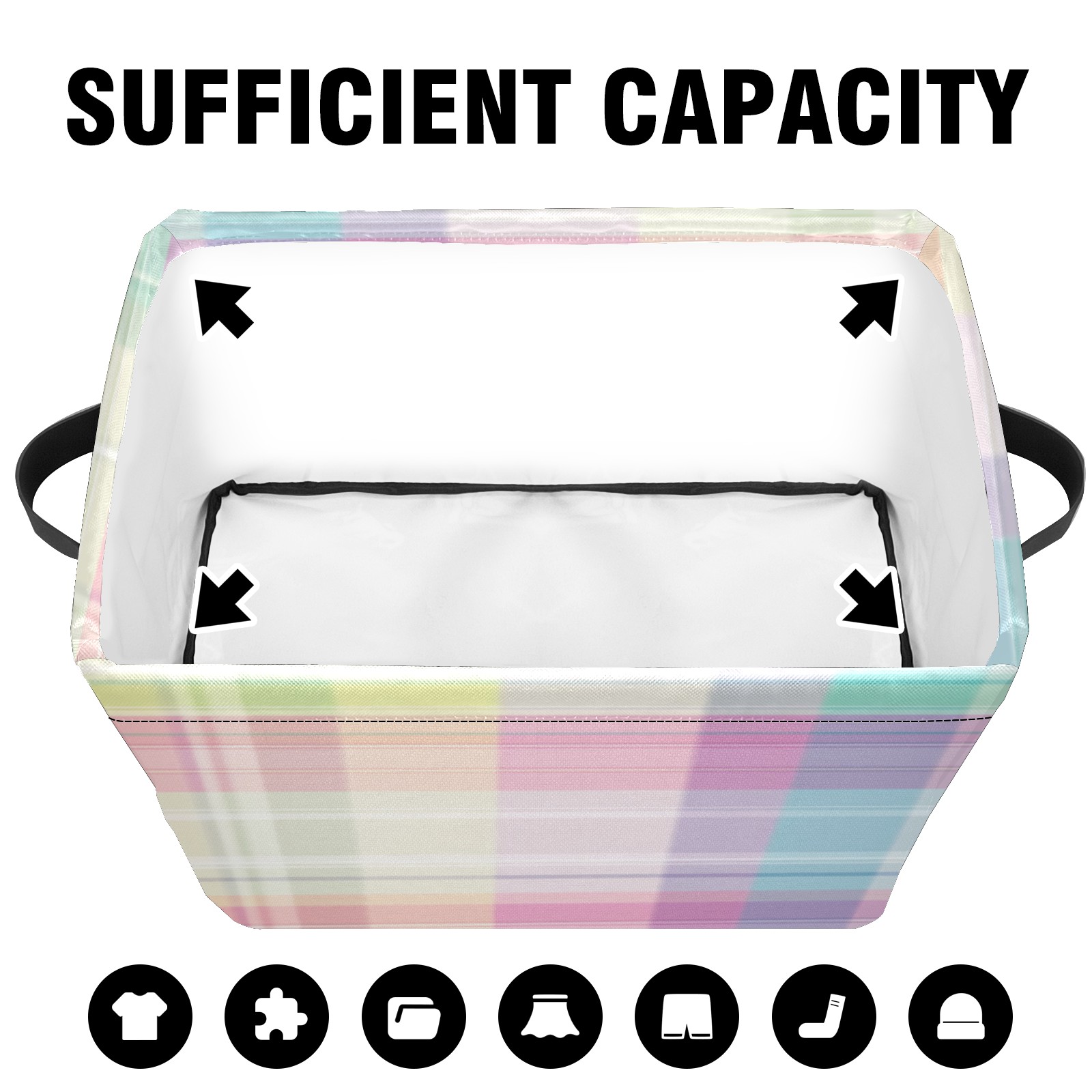 Foldable and Stackable Fabric Storage Basket for Home Organization with Handles, Decorative Closet Bins for Shelves, Laundry, and Toy Storage( Colorful Gingham)