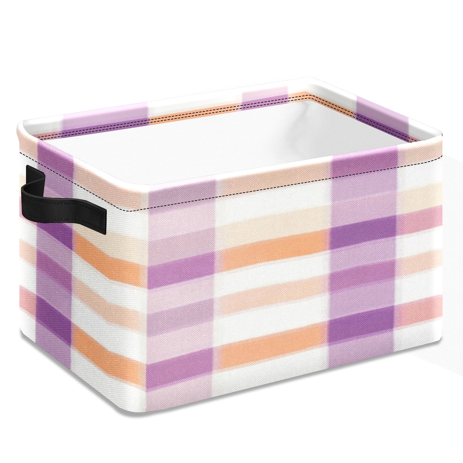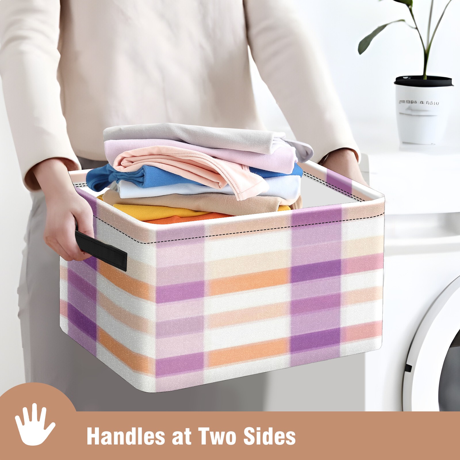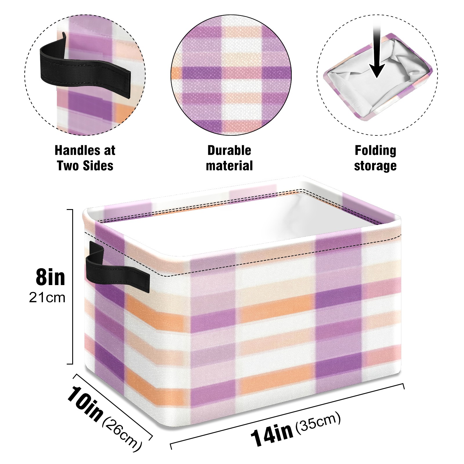 Foldable and Stackable Fabric Storage Basket for Home Organization with Handles, Decorative Closet Bins for Shelves, Laundry, and Toy Storage( Purple And Peach Gingham)