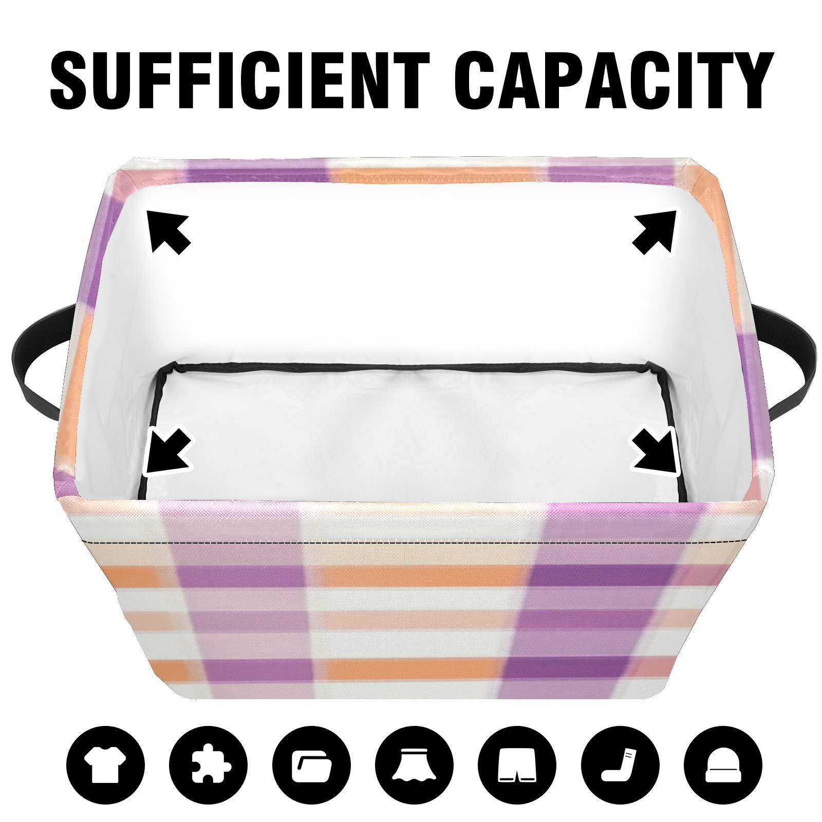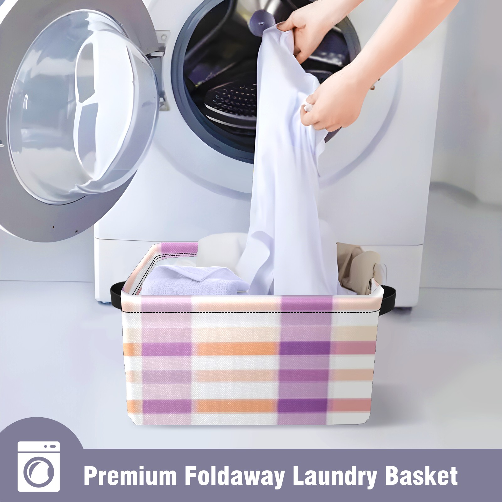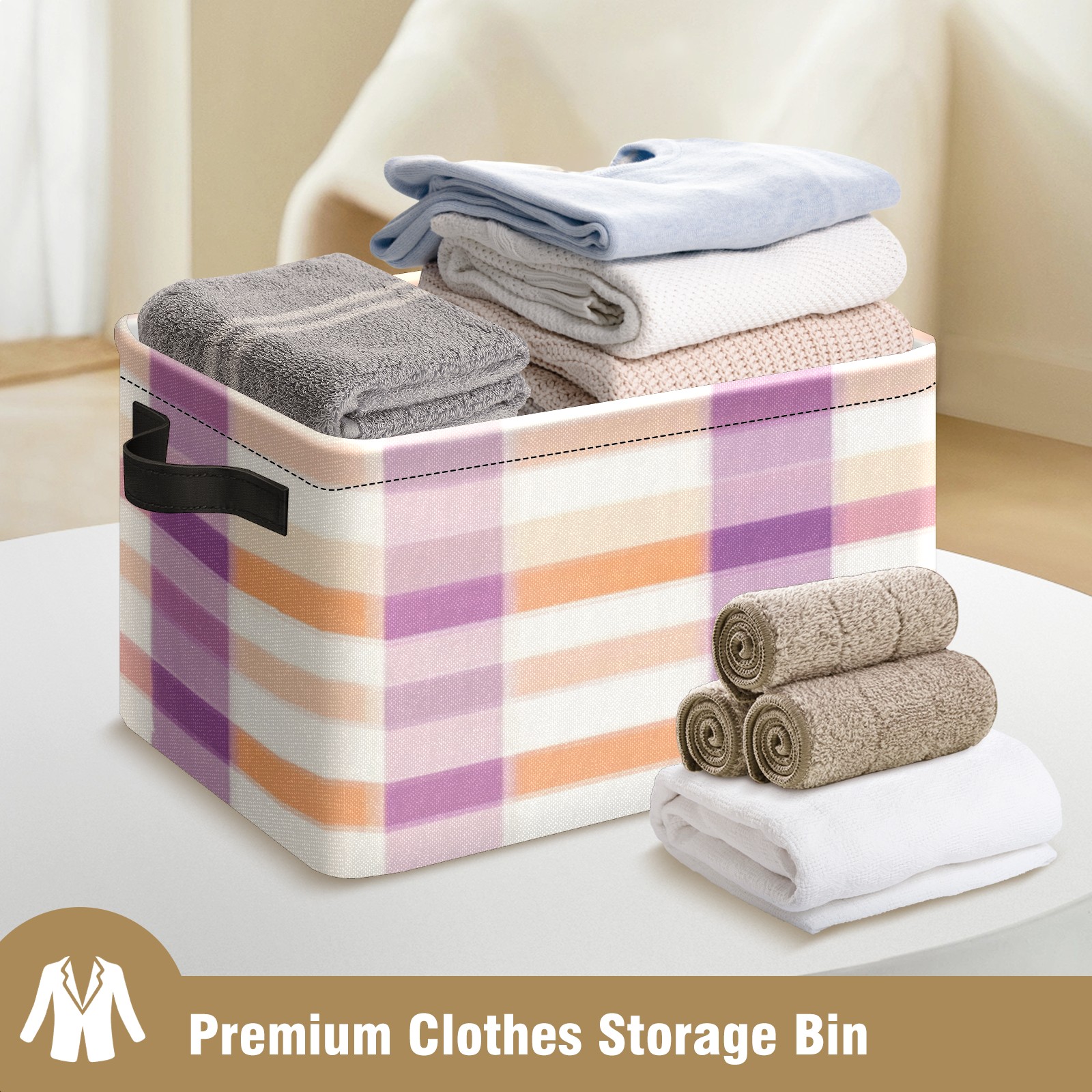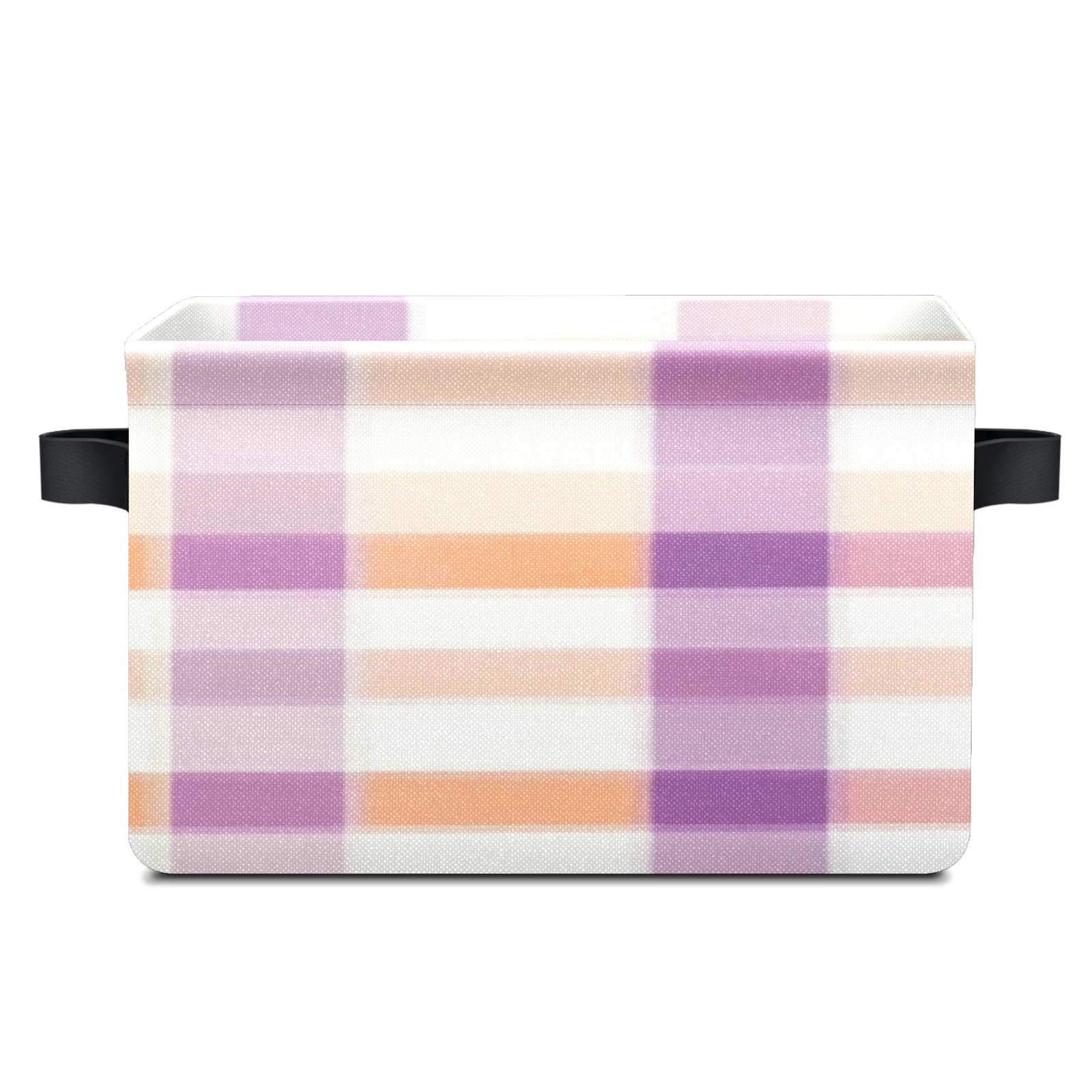 Foldable and Stackable Fabric Storage Basket for Home Organization with Handles, Decorative Closet Bins for Shelves, Laundry, and Toy Storage( Purple And Peach Gingham)