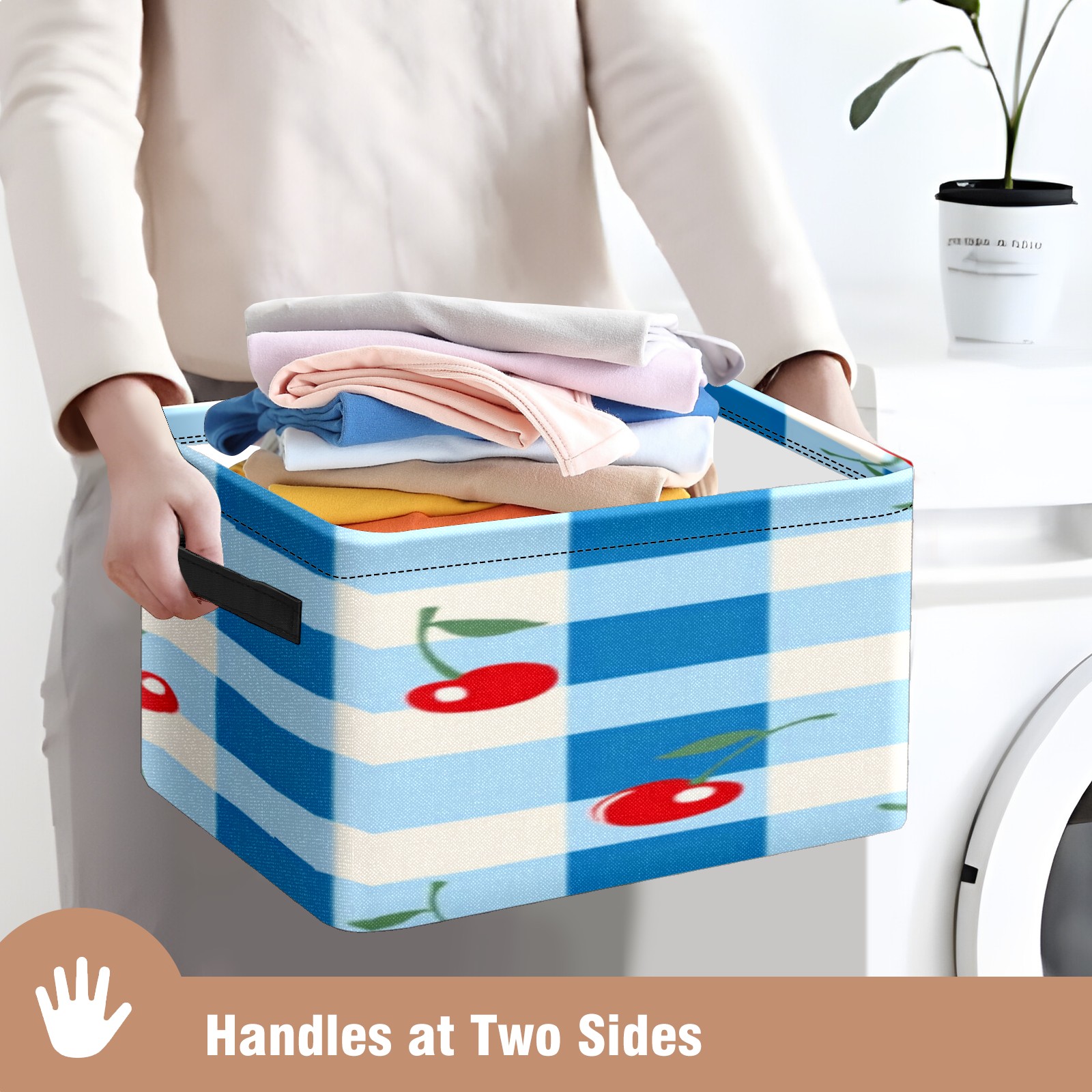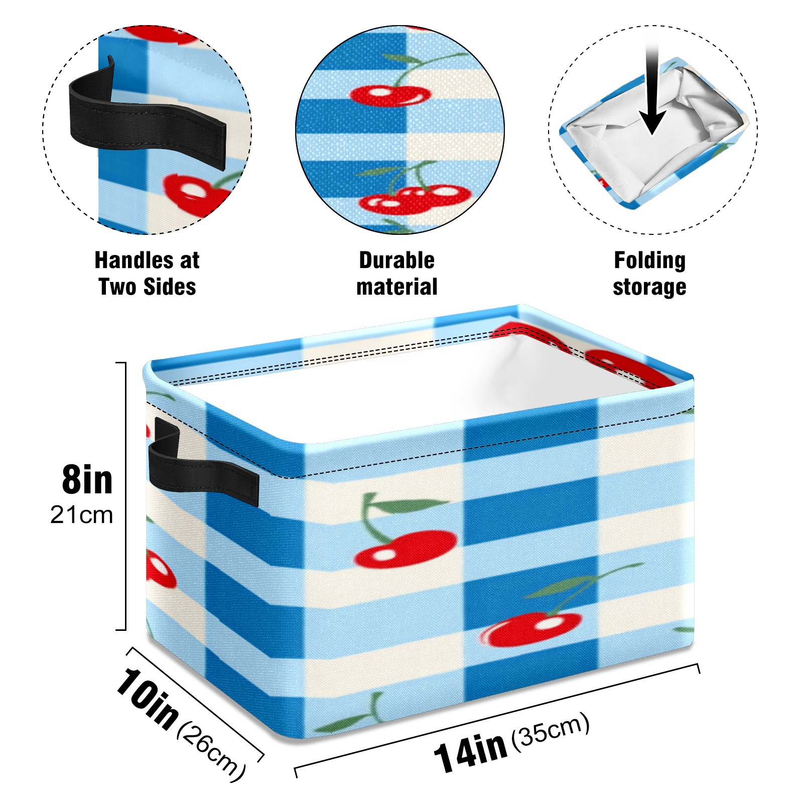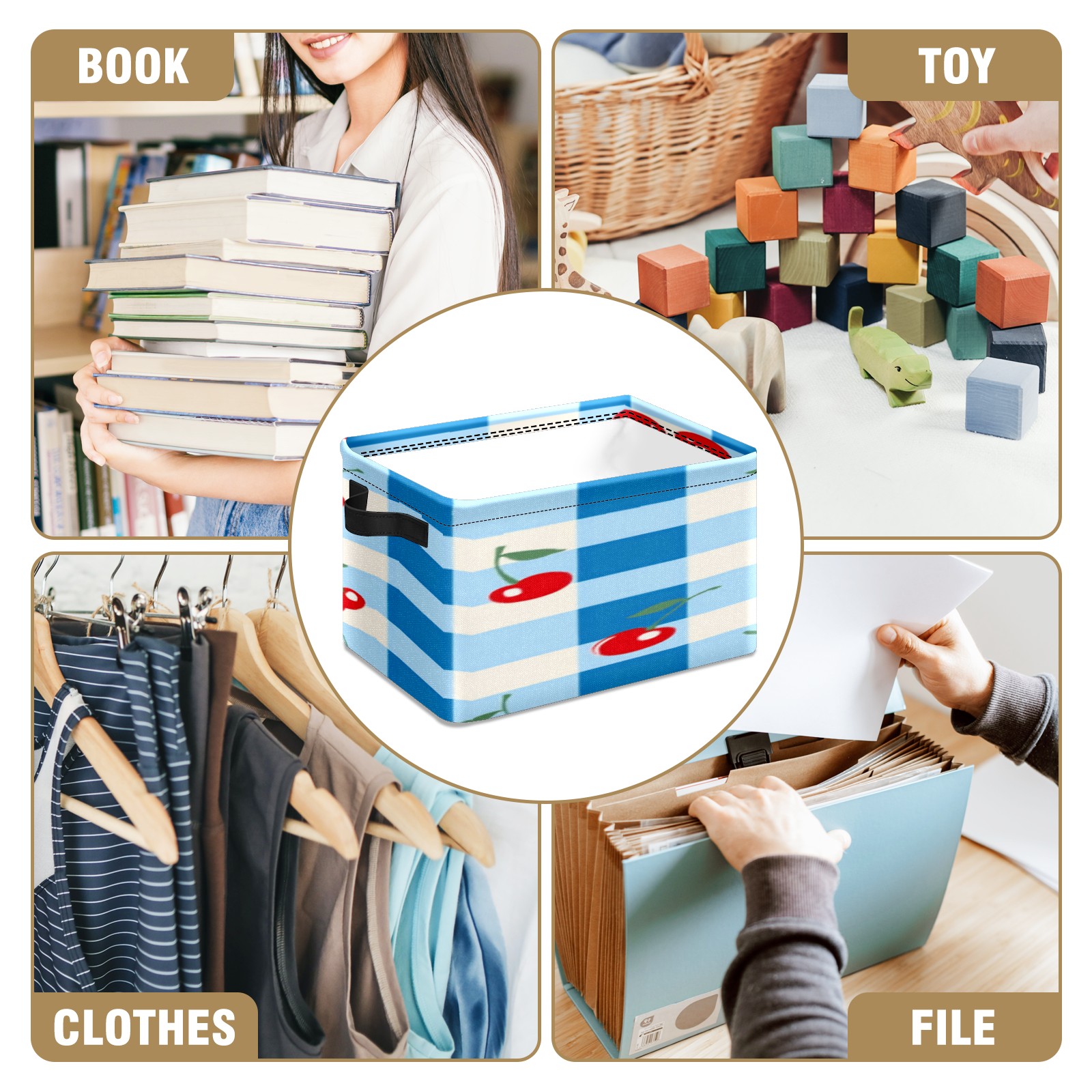 Foldable and Stackable Fabric Storage Basket for Home Organization with Handles, Decorative Closet Bins for Shelves, Laundry, and Toy Storage( Blue White Gingham)