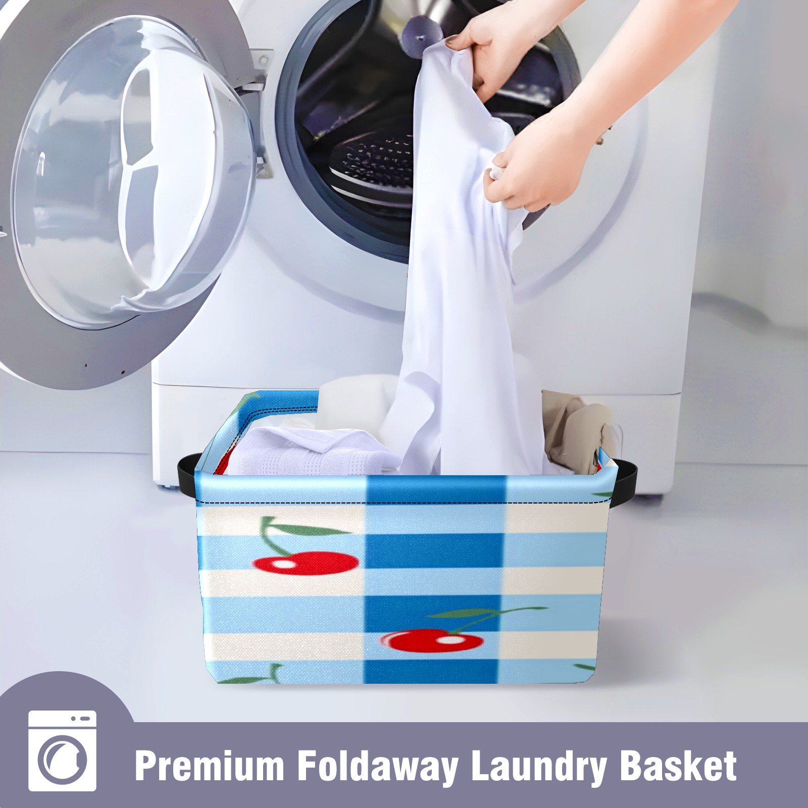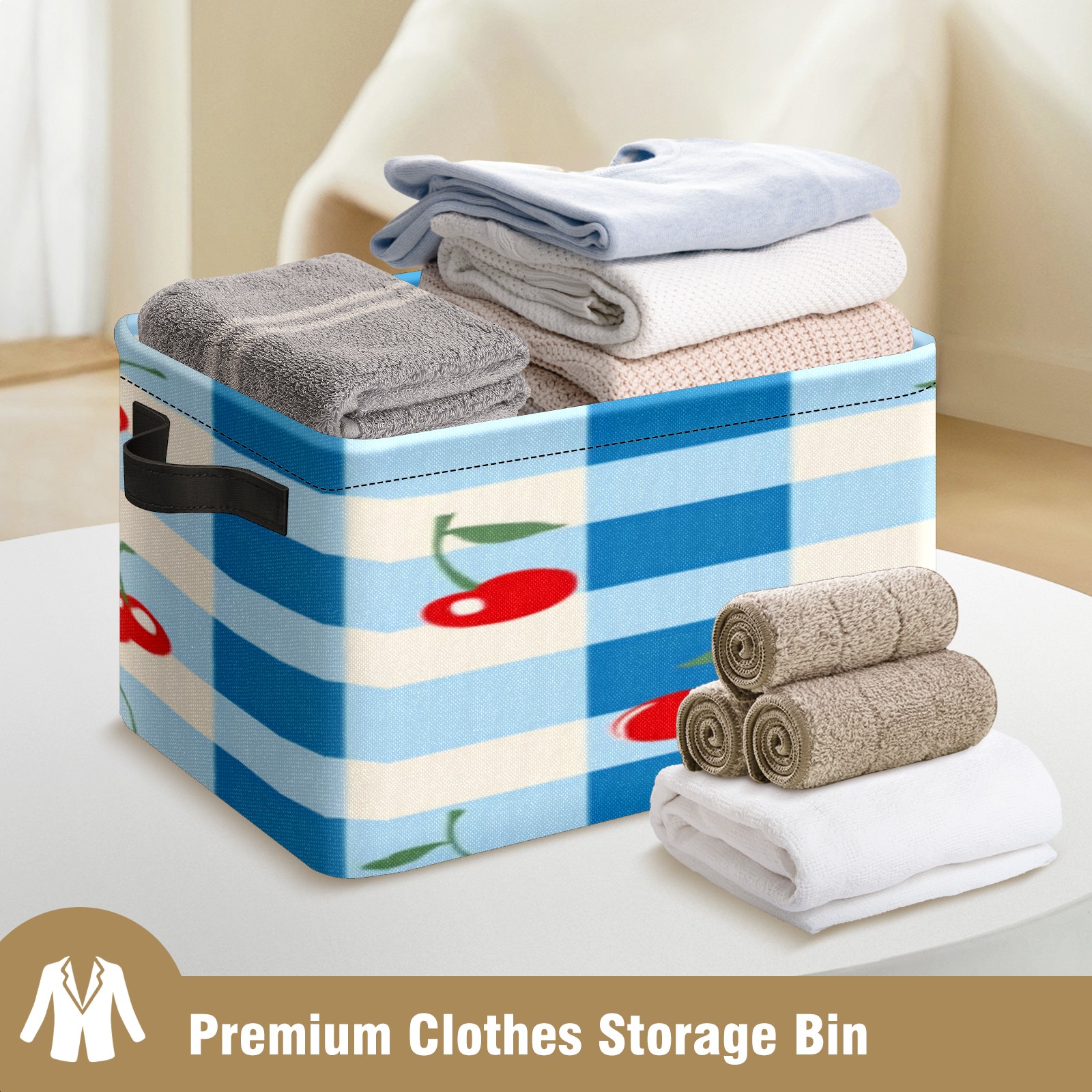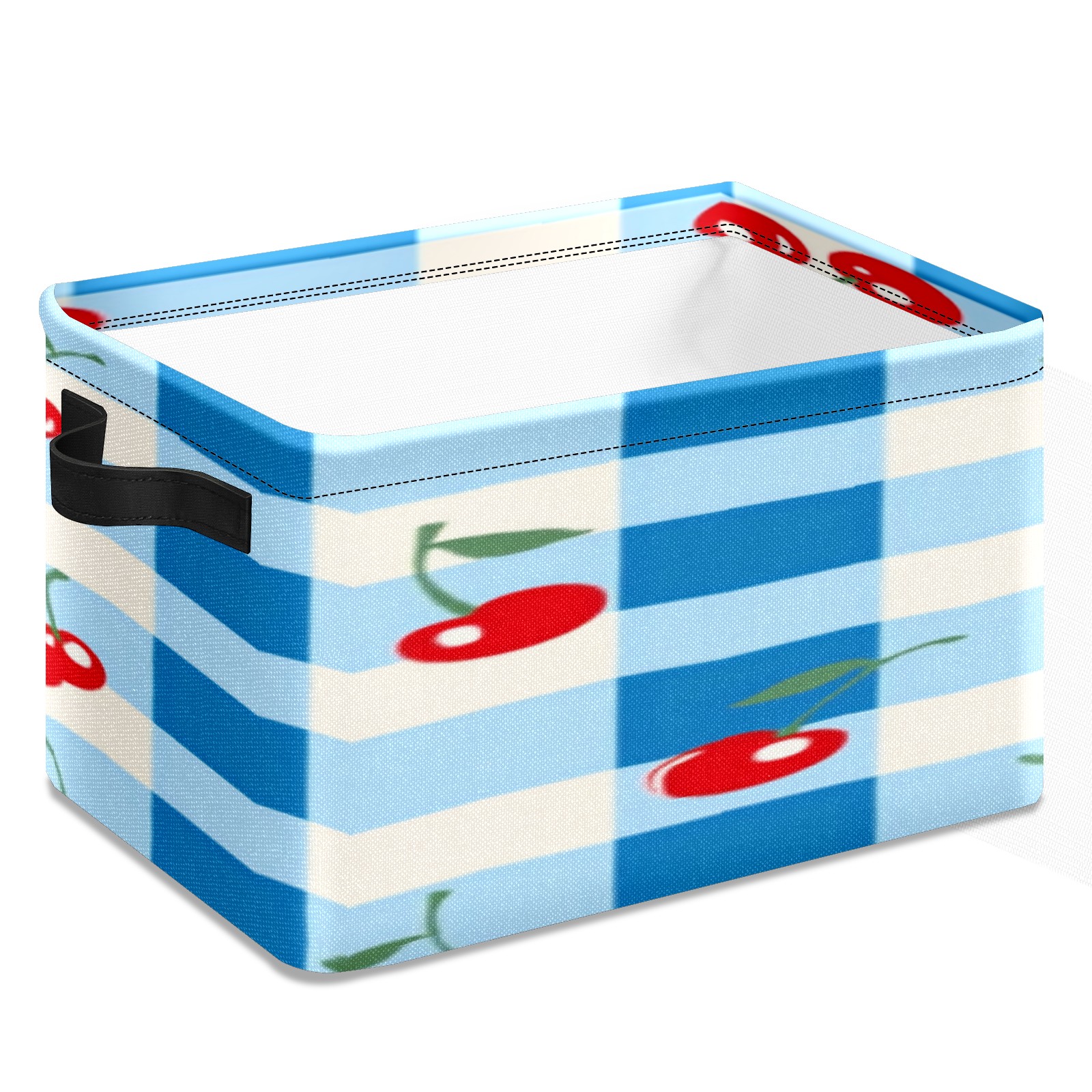 Foldable and Stackable Fabric Storage Basket for Home Organization with Handles, Decorative Closet Bins for Shelves, Laundry, and Toy Storage( Blue White Gingham)