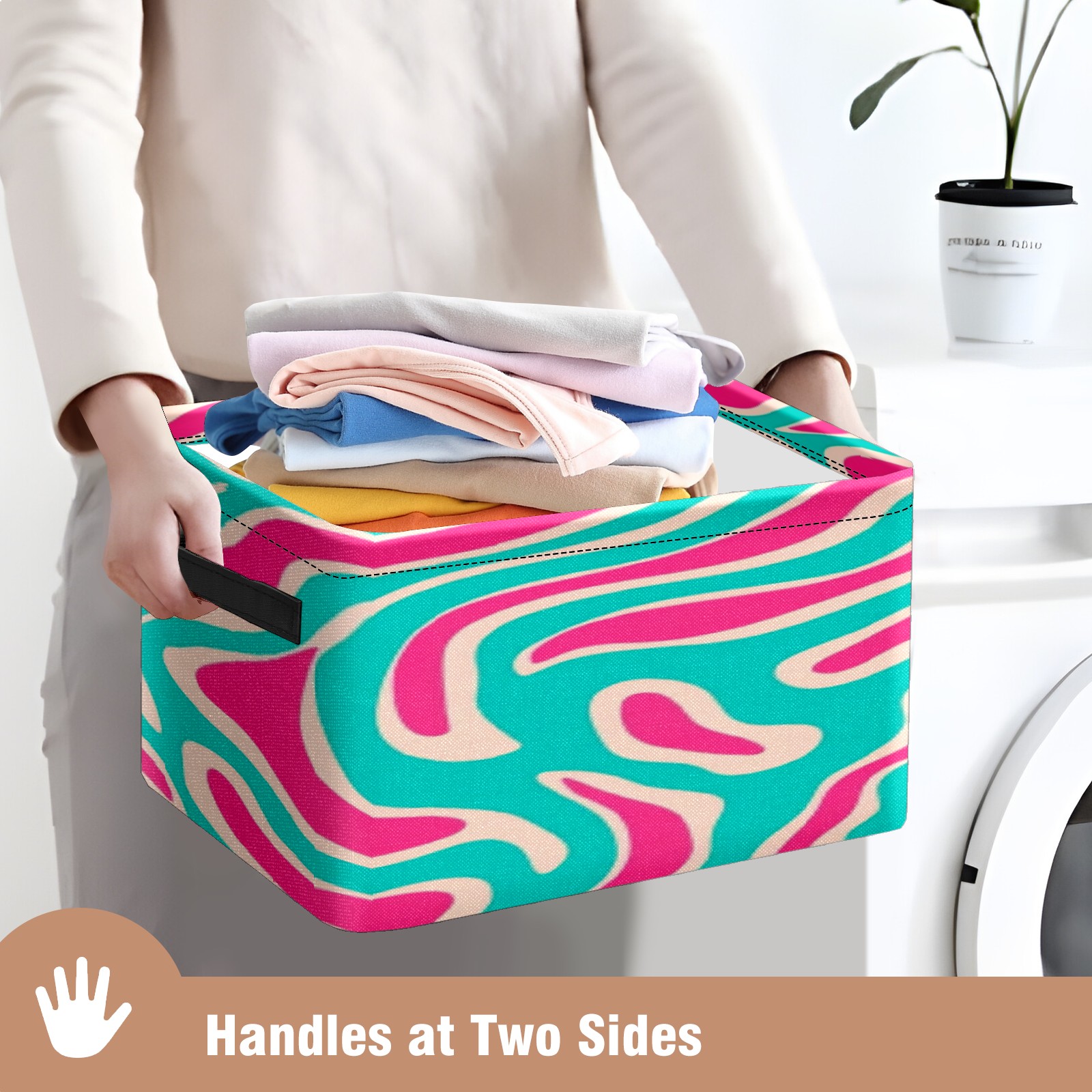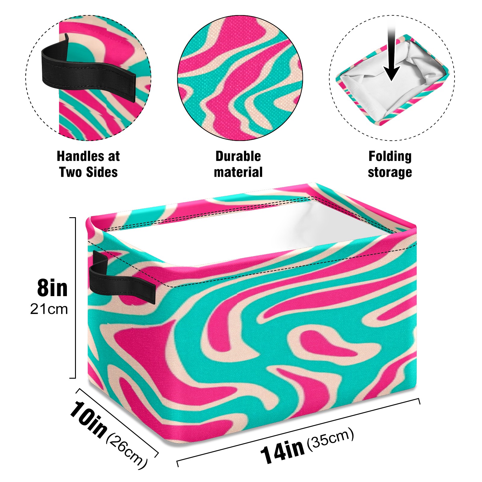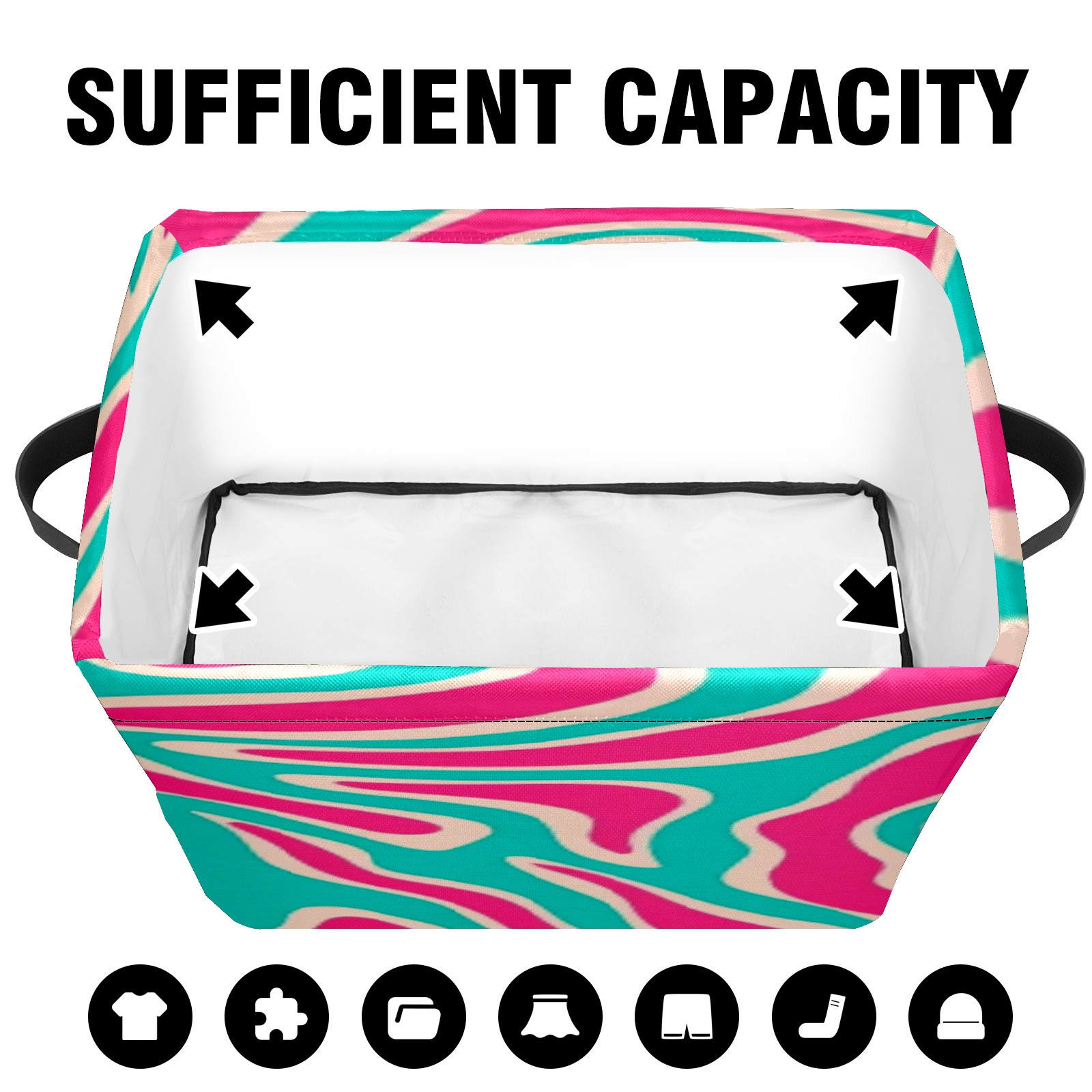 Foldable and Stackable Fabric Storage Basket for Home Organization with Handles, Decorative Closet Bins for Shelves, Laundry, and Toy Storage( Pink And Turquoise Lines)