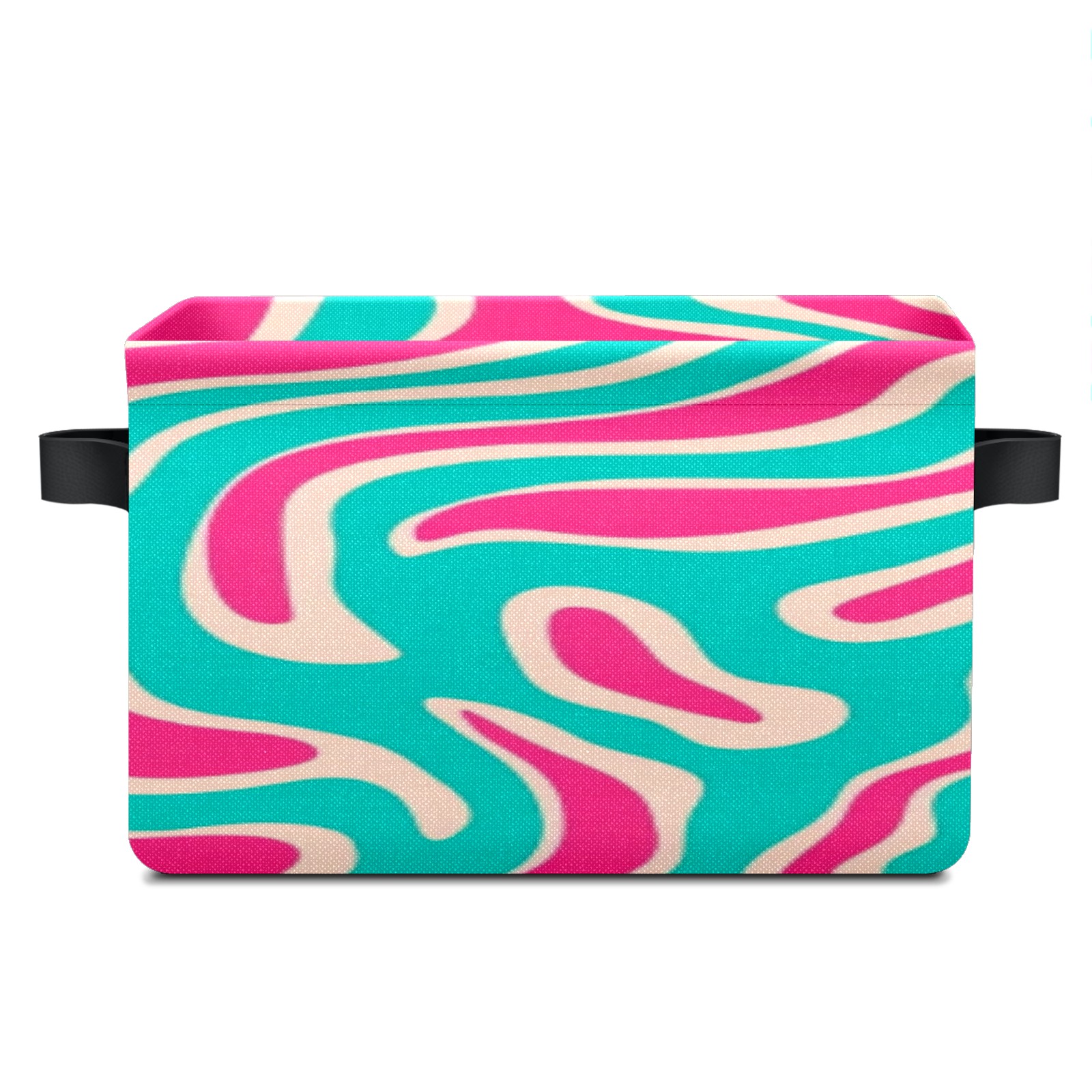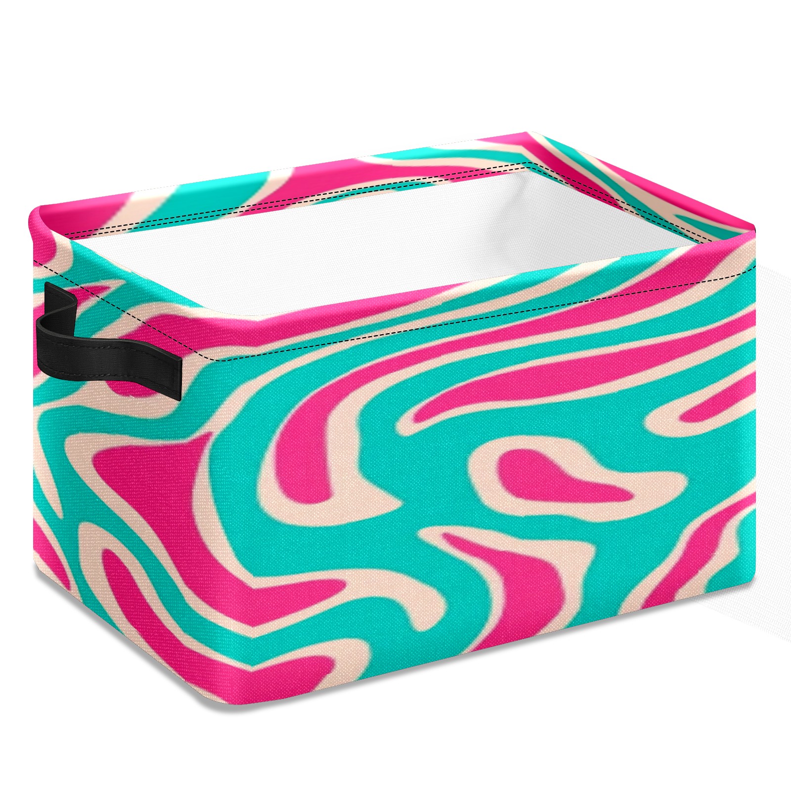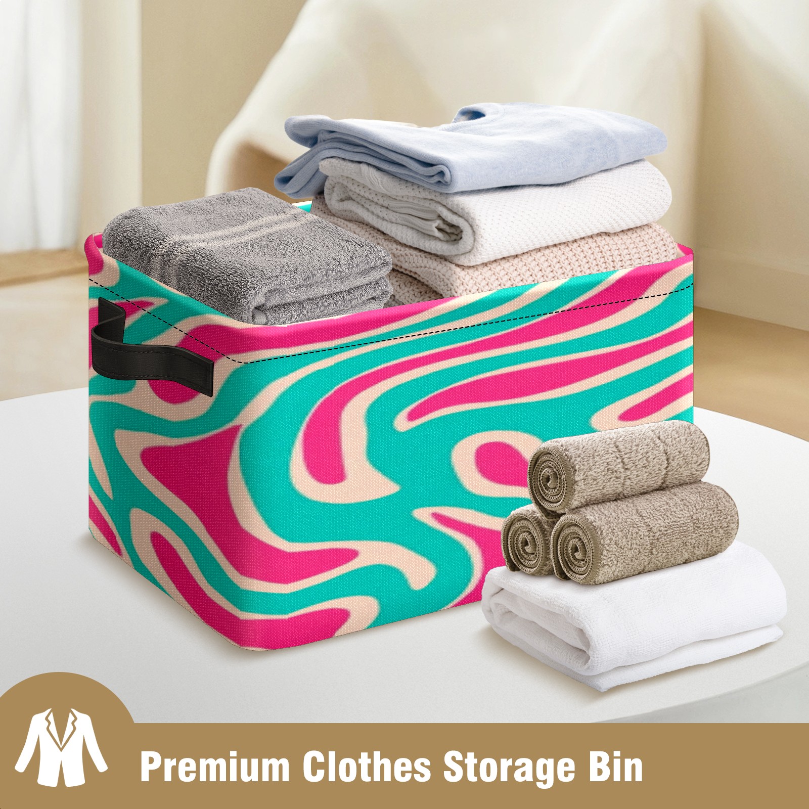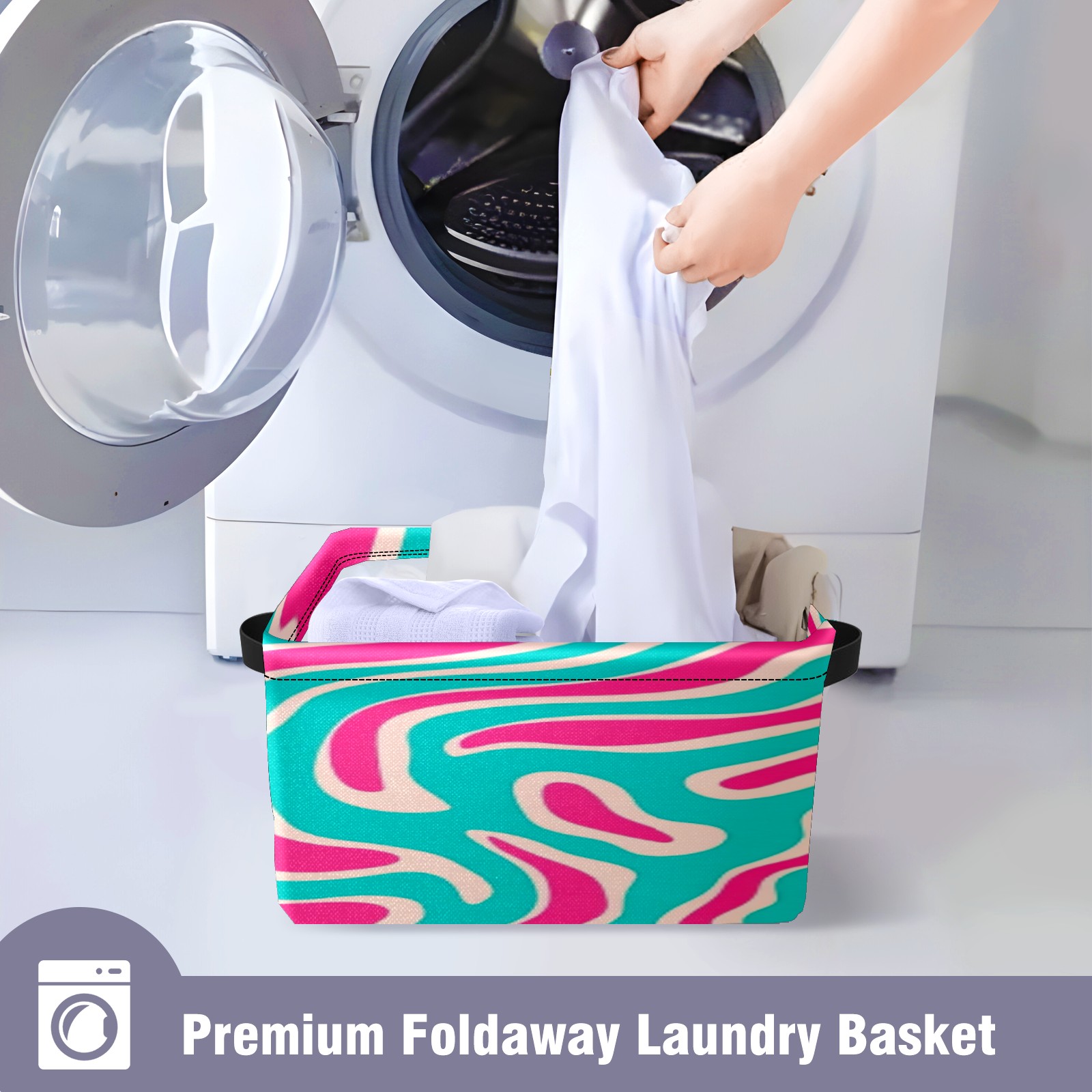 Foldable and Stackable Fabric Storage Basket for Home Organization with Handles, Decorative Closet Bins for Shelves, Laundry, and Toy Storage( Pink And Turquoise Lines)