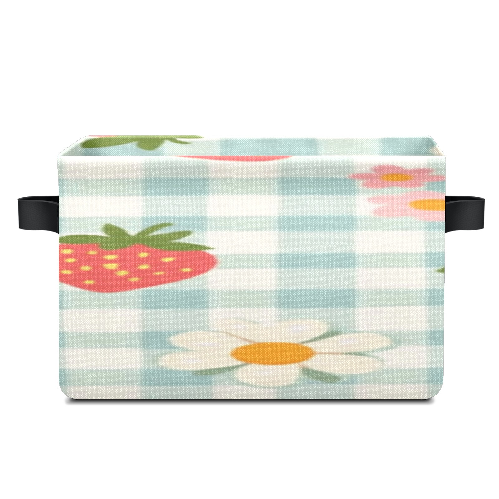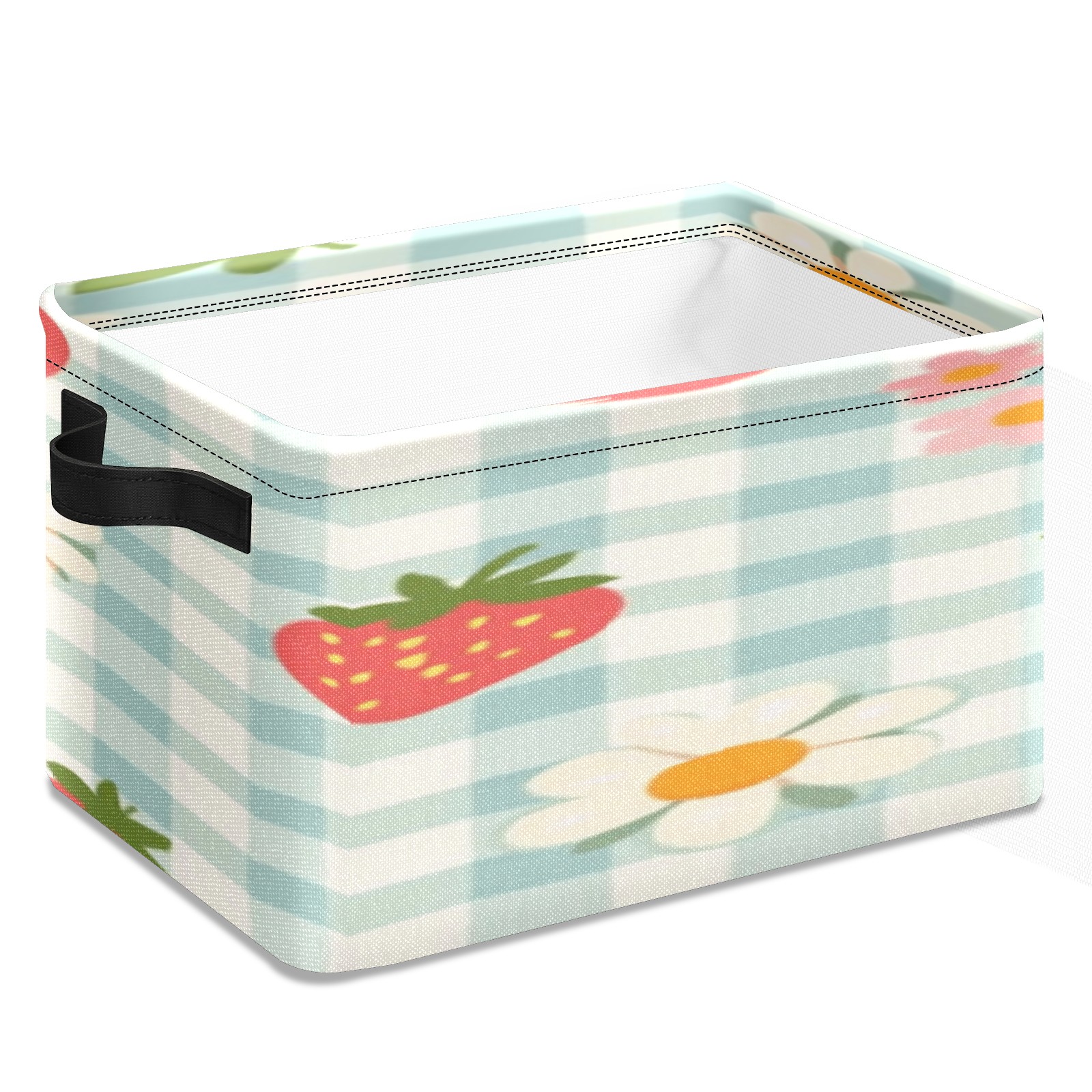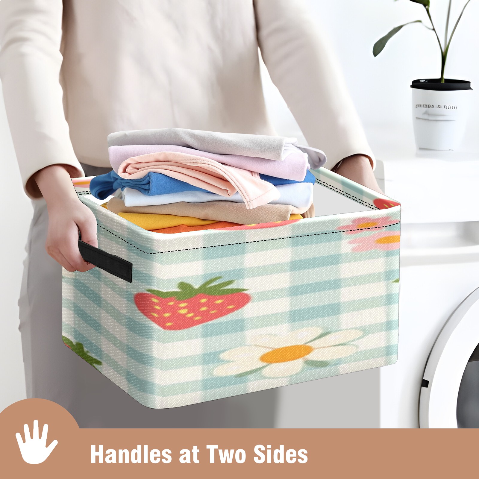 Foldable and Stackable Fabric Storage Basket for Home Organization with Handles, Decorative Closet Bins for Shelves, Laundry, and Toy Storage( Strawberries And Daisies)