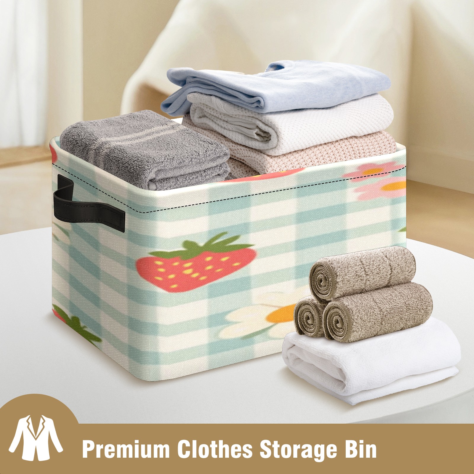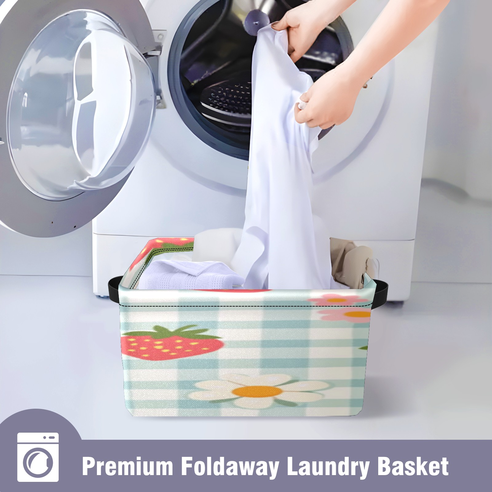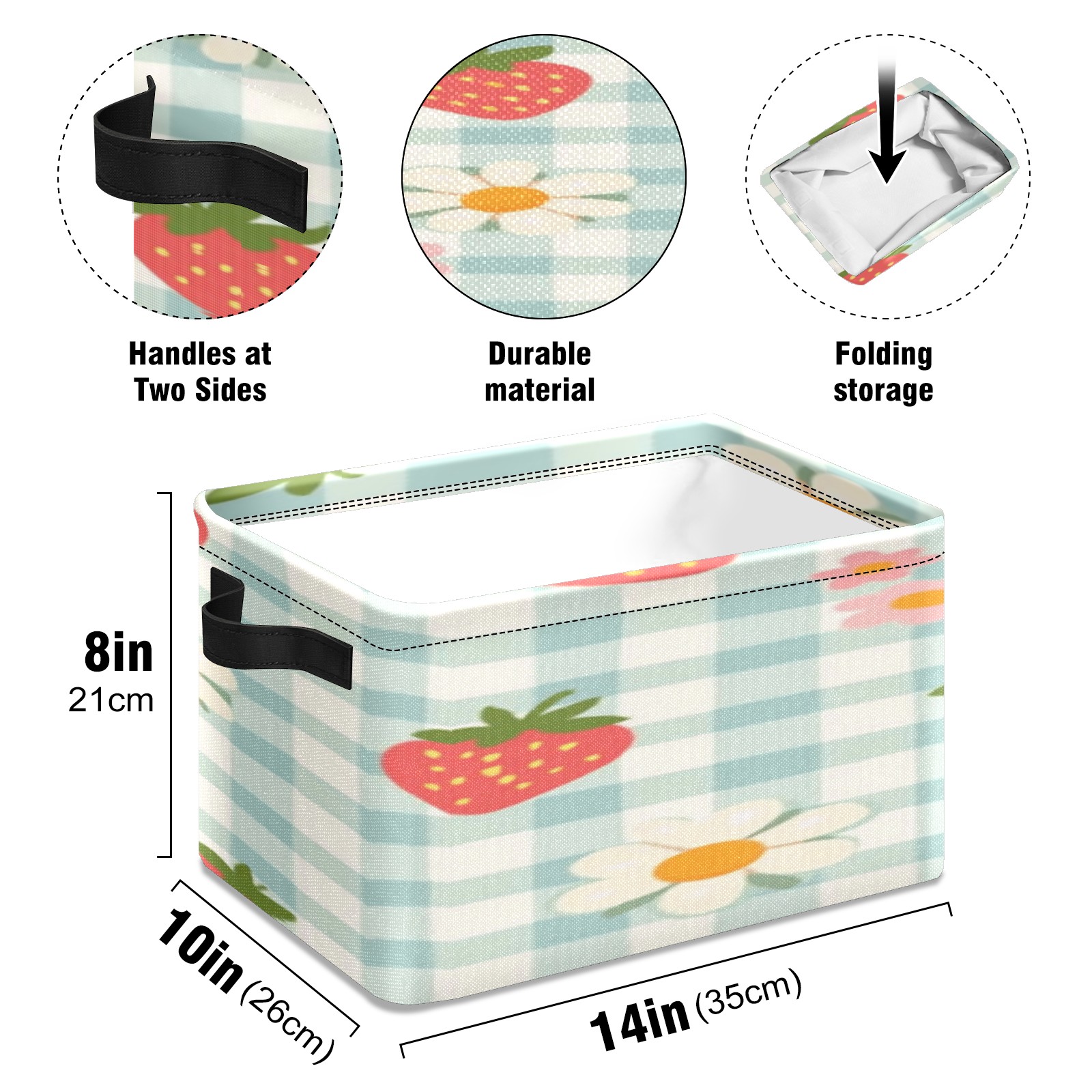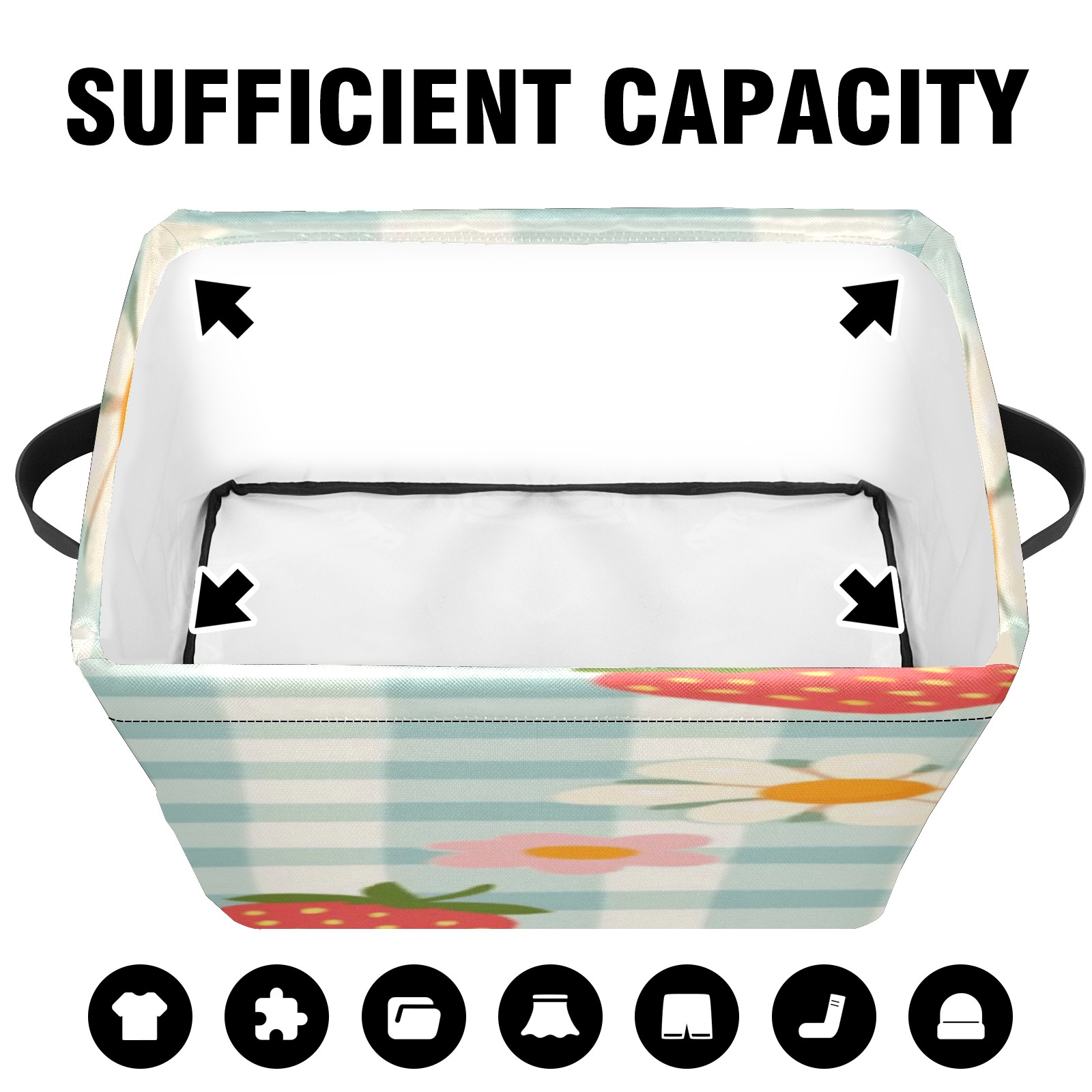 Foldable and Stackable Fabric Storage Basket for Home Organization with Handles, Decorative Closet Bins for Shelves, Laundry, and Toy Storage( Strawberries And Daisies)