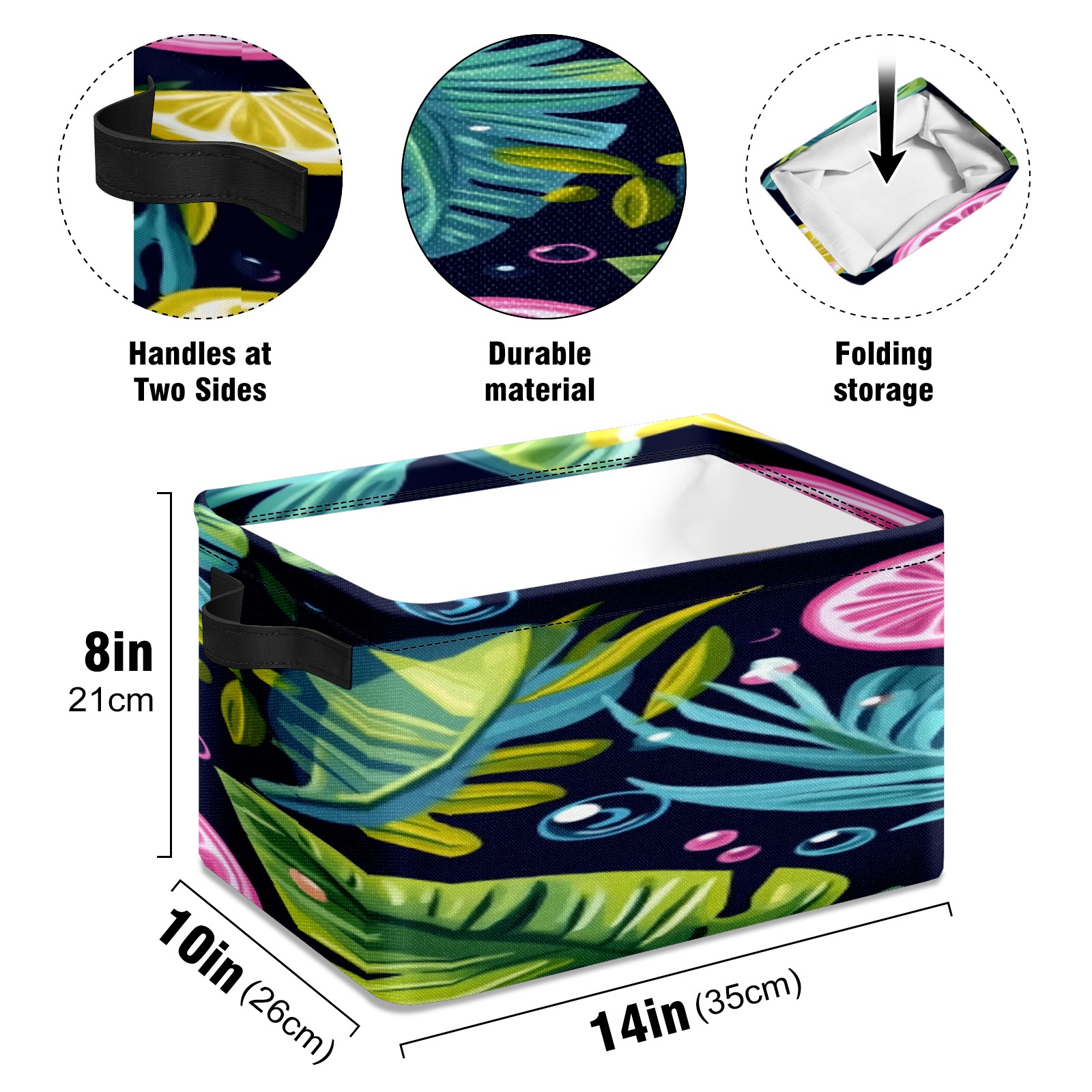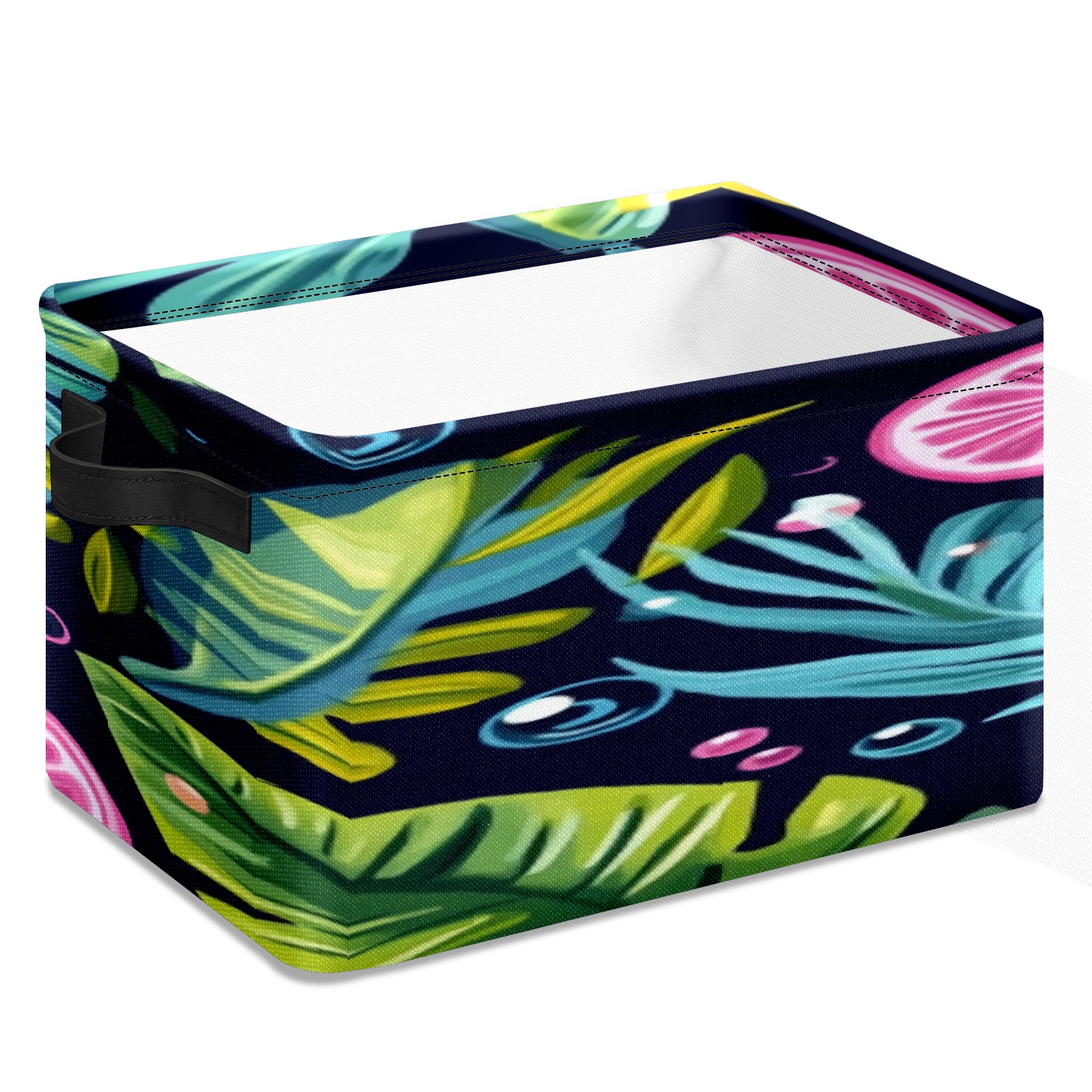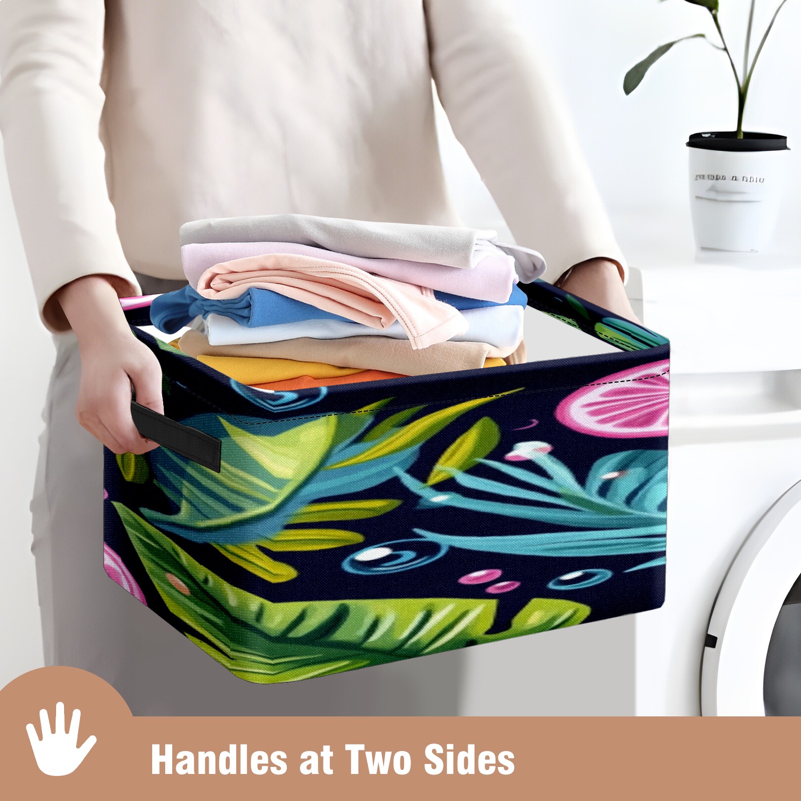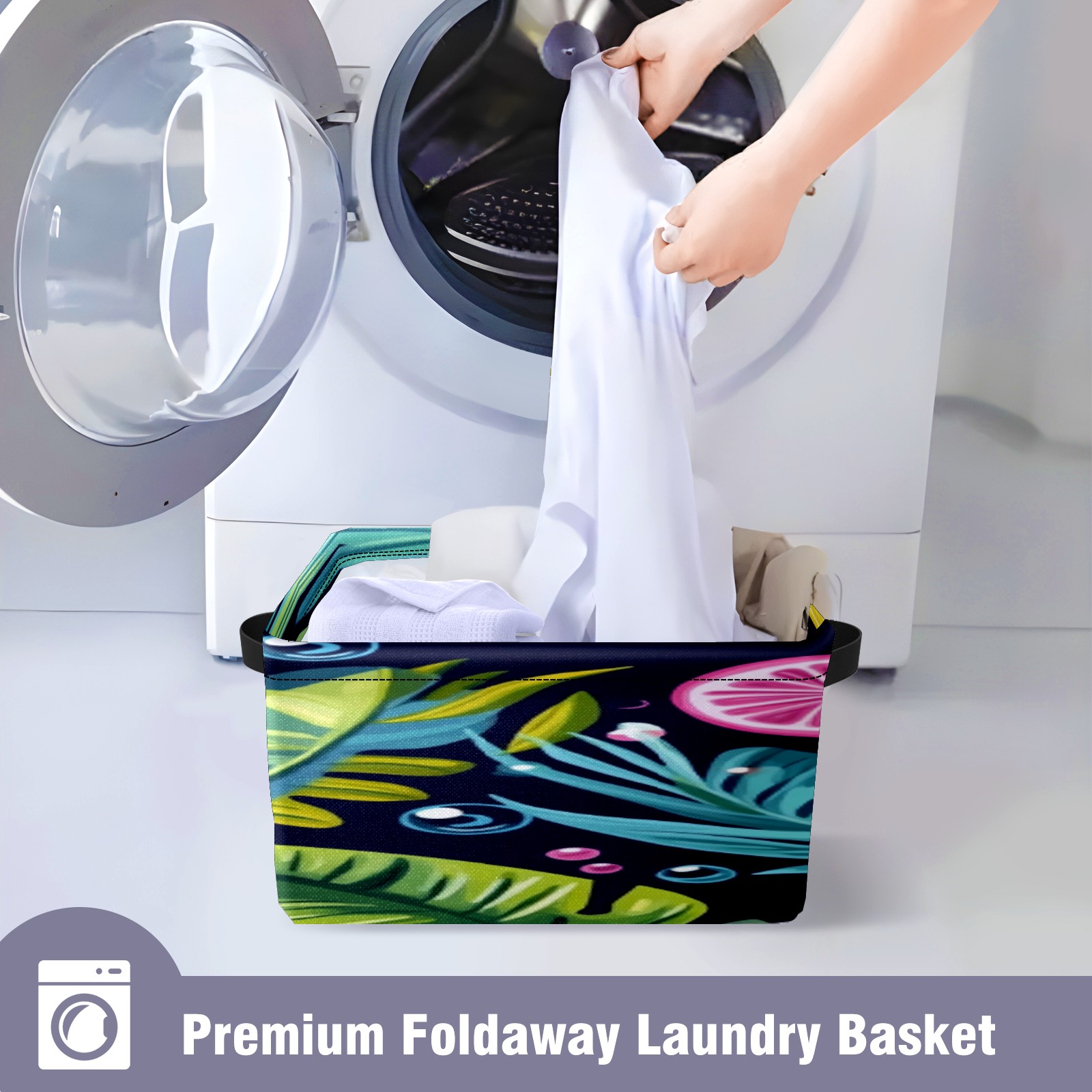 Foldable and Stackable Fabric Storage Basket for Home Organization with Handles, Decorative Closet Bins for Shelves, Laundry, and Toy Storage( Tropical Leaves Bubbles)
