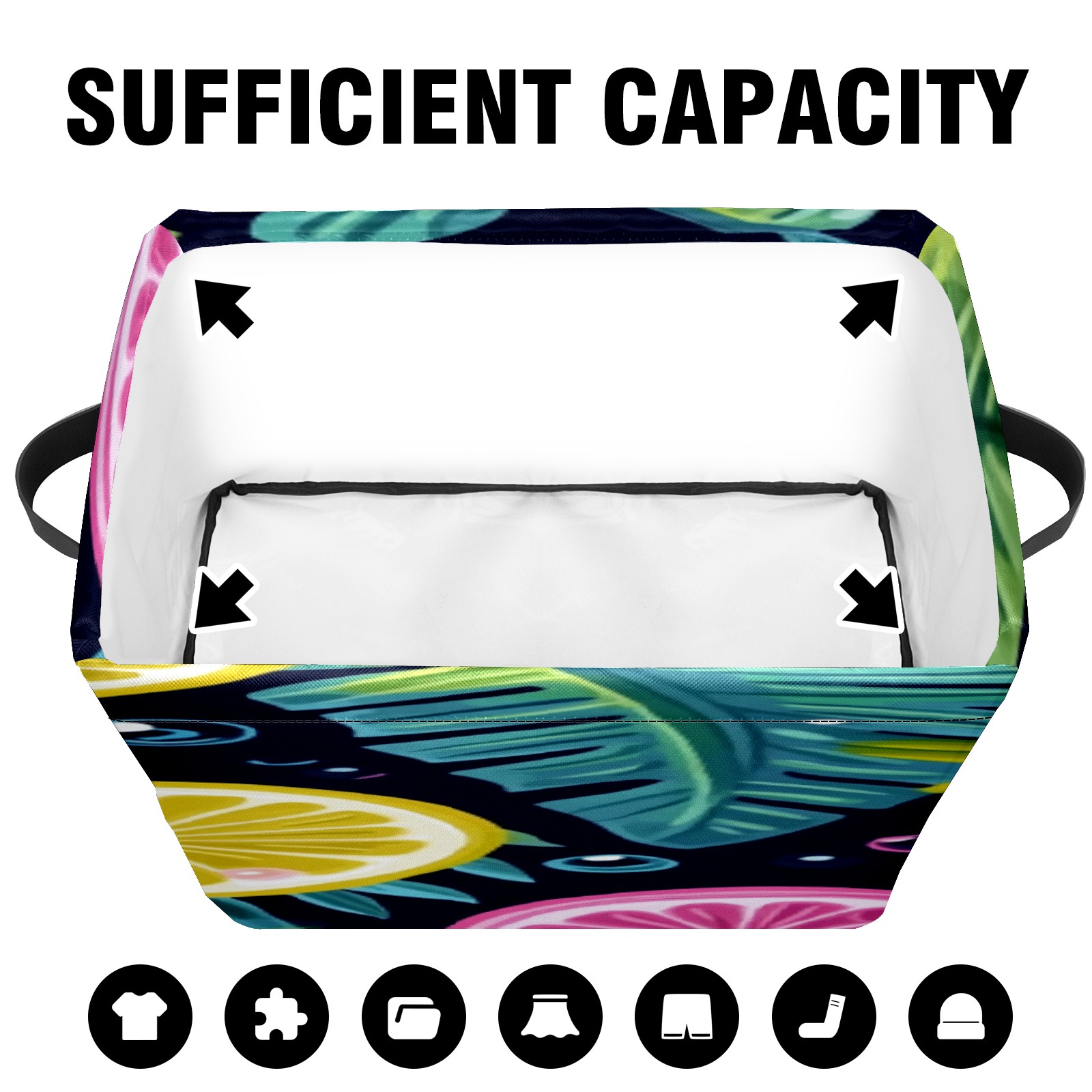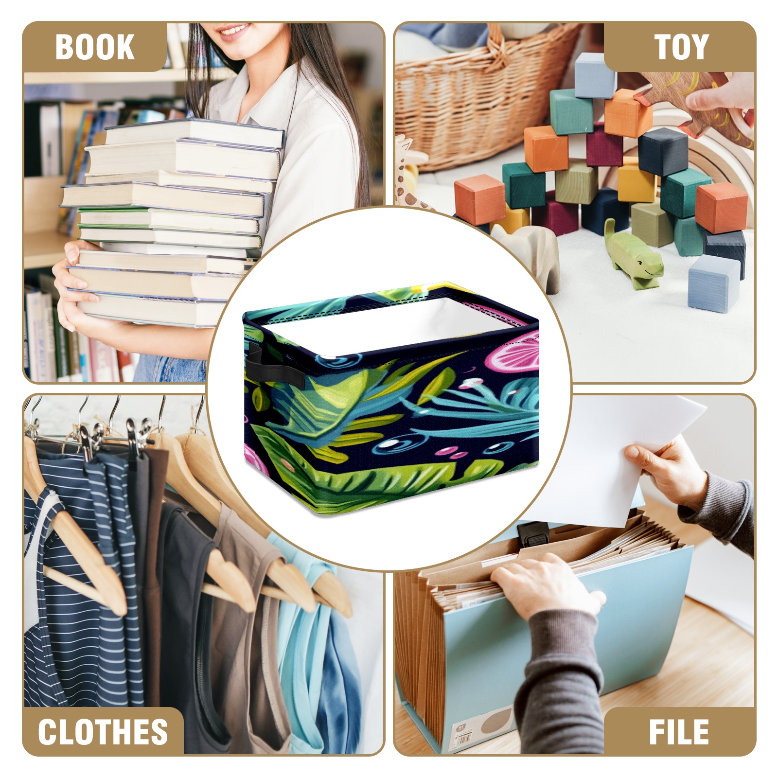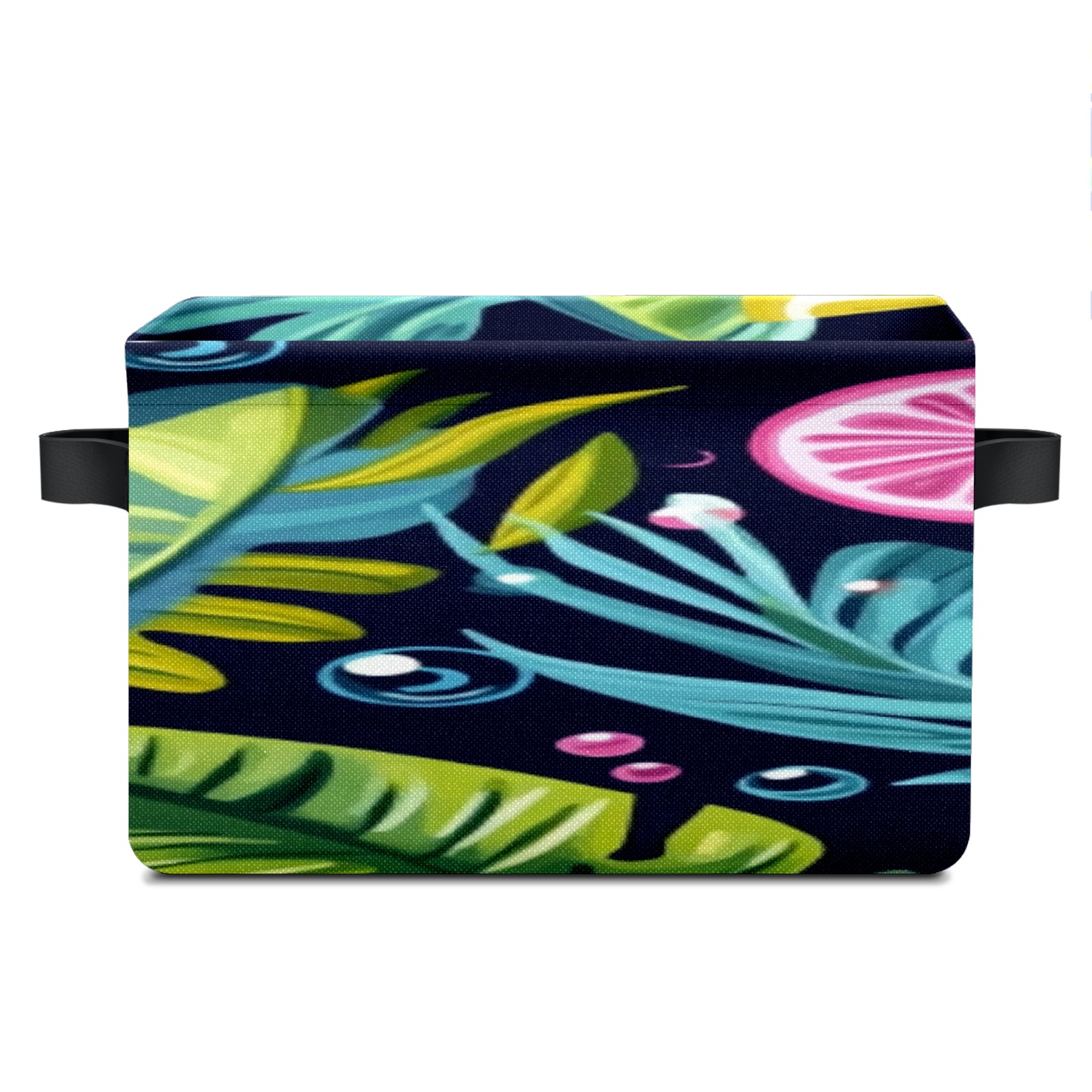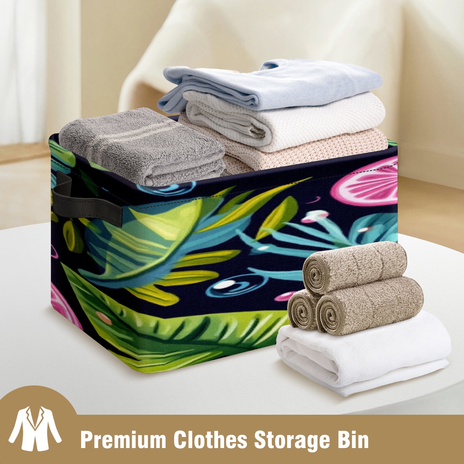 Foldable and Stackable Fabric Storage Basket for Home Organization with Handles, Decorative Closet Bins for Shelves, Laundry, and Toy Storage( Tropical Leaves Bubbles)
