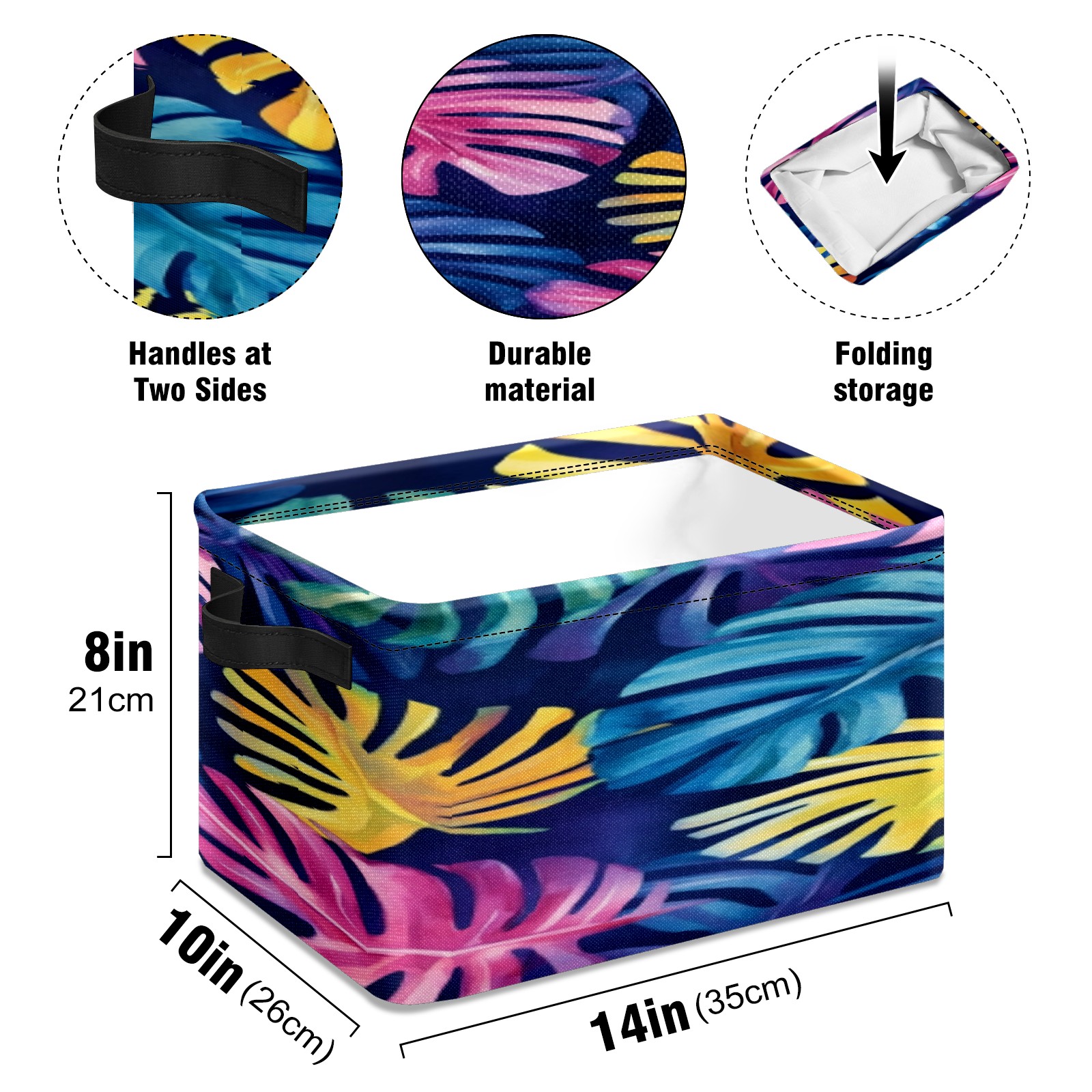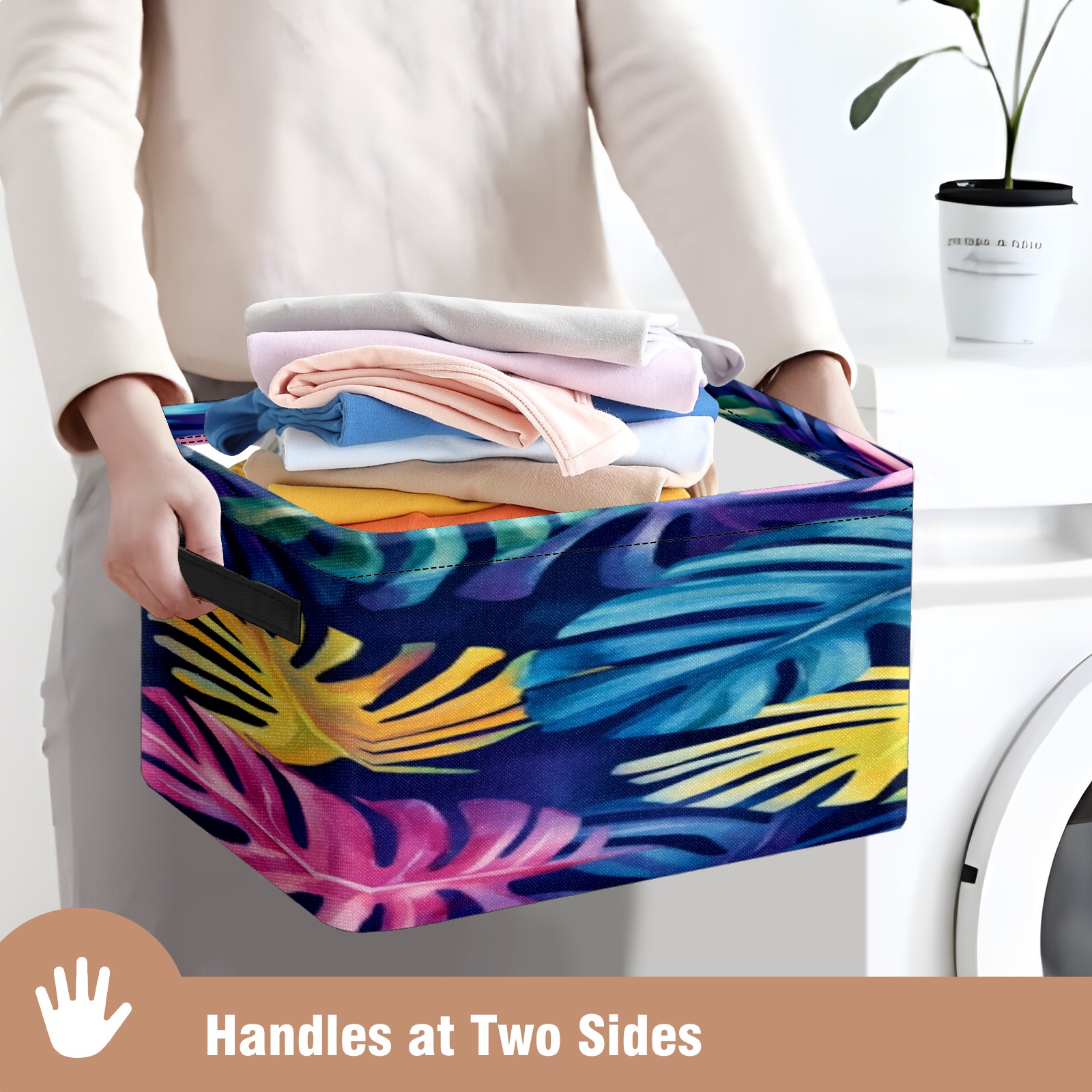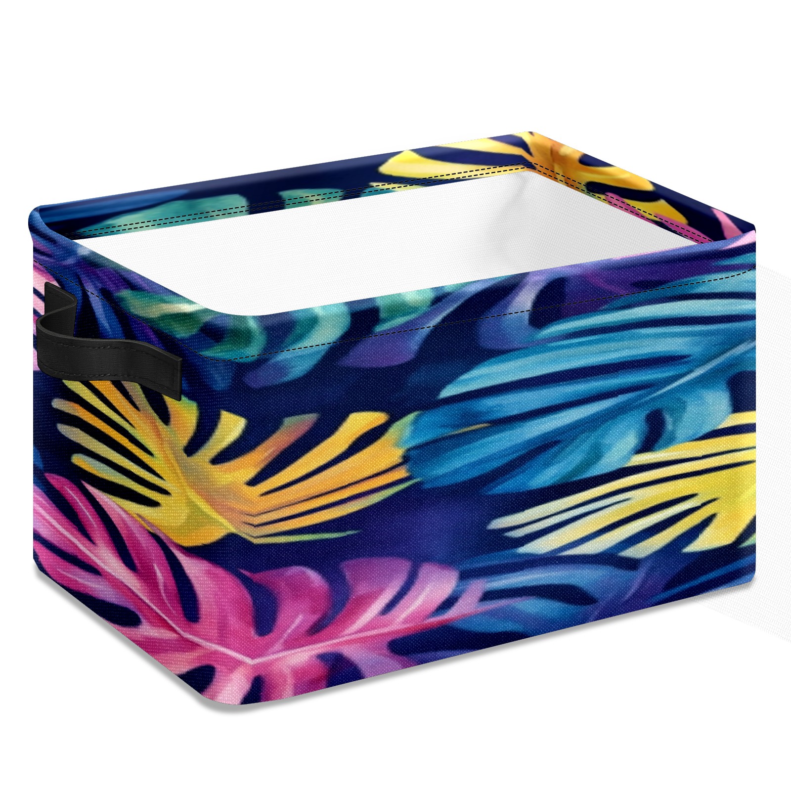 Foldable and Stackable Fabric Storage Basket for Home Organization with Handles, Decorative Closet Bins for Shelves, Laundry, and Toy Storage( Watercolor Tropical Leaves)