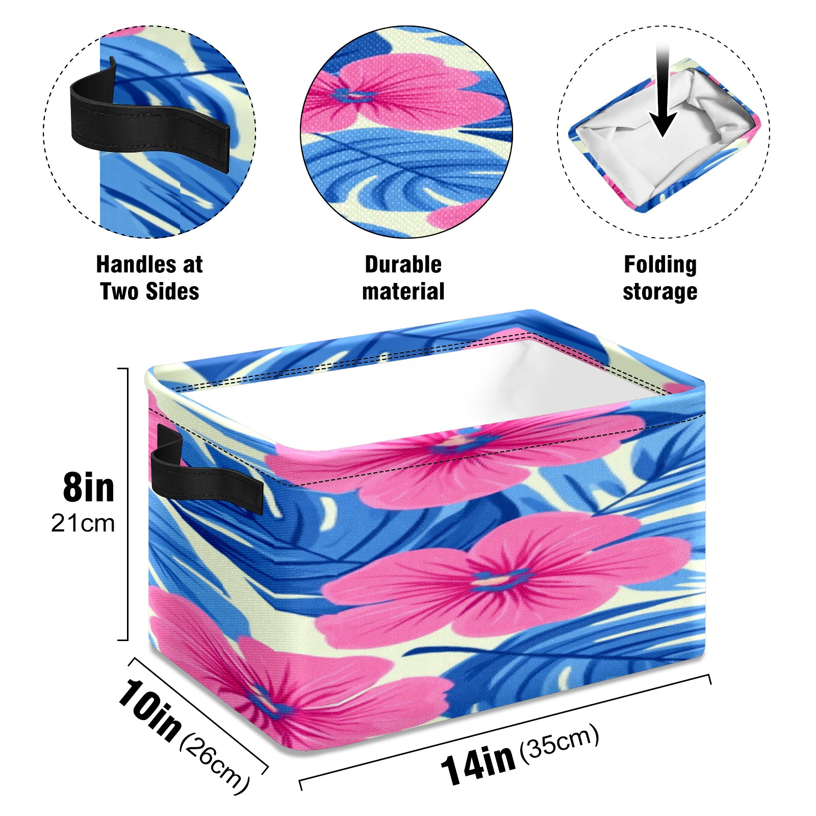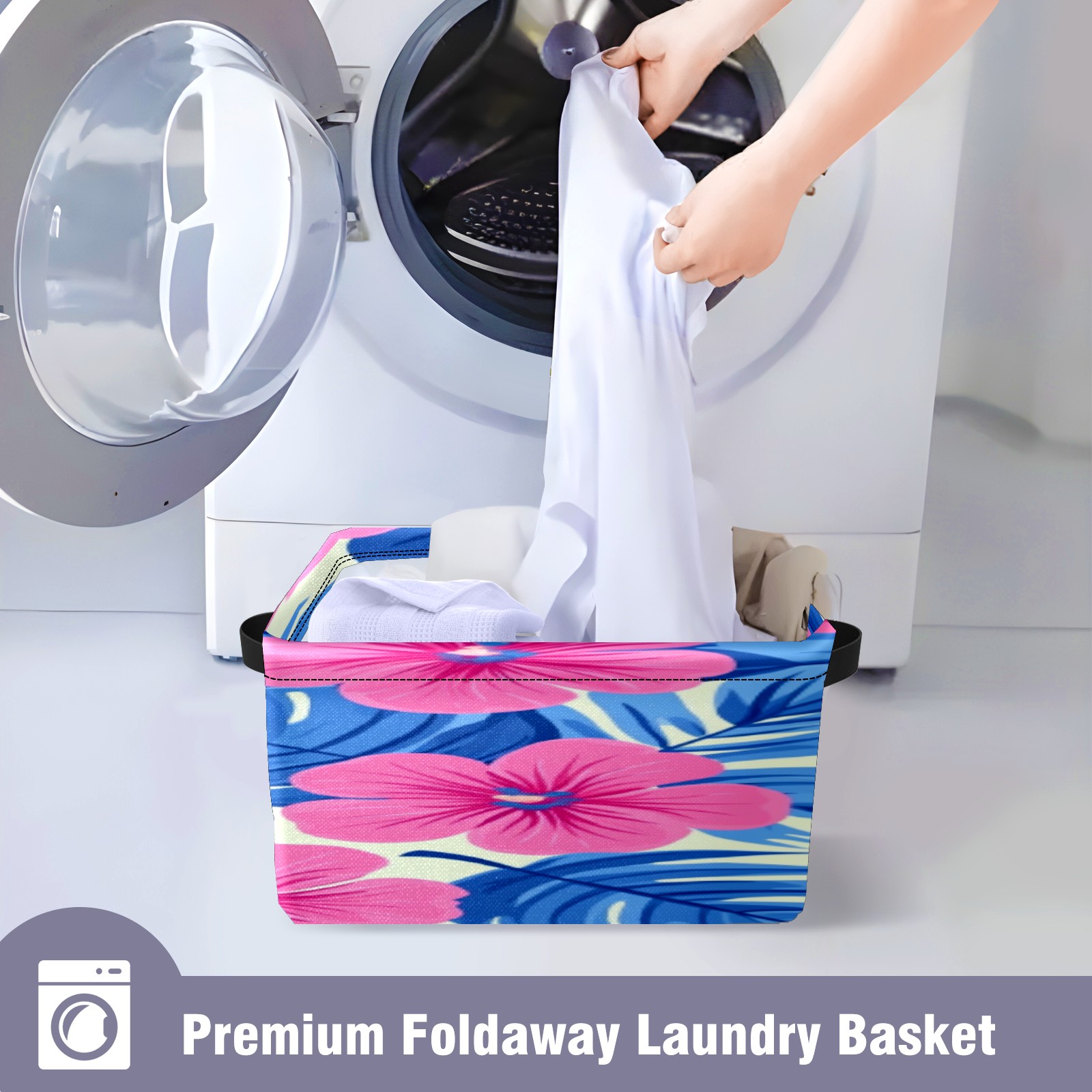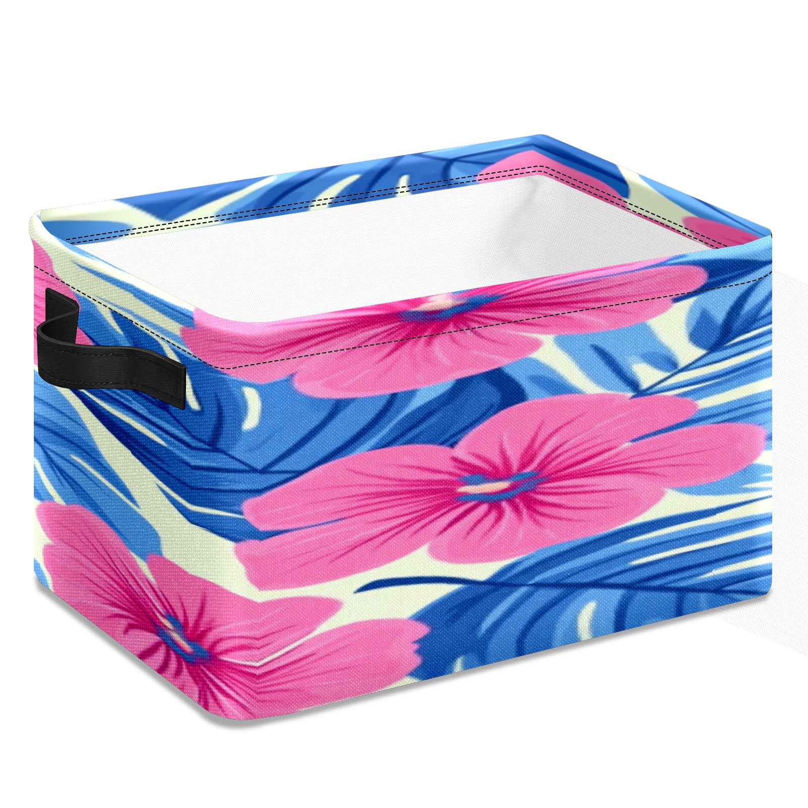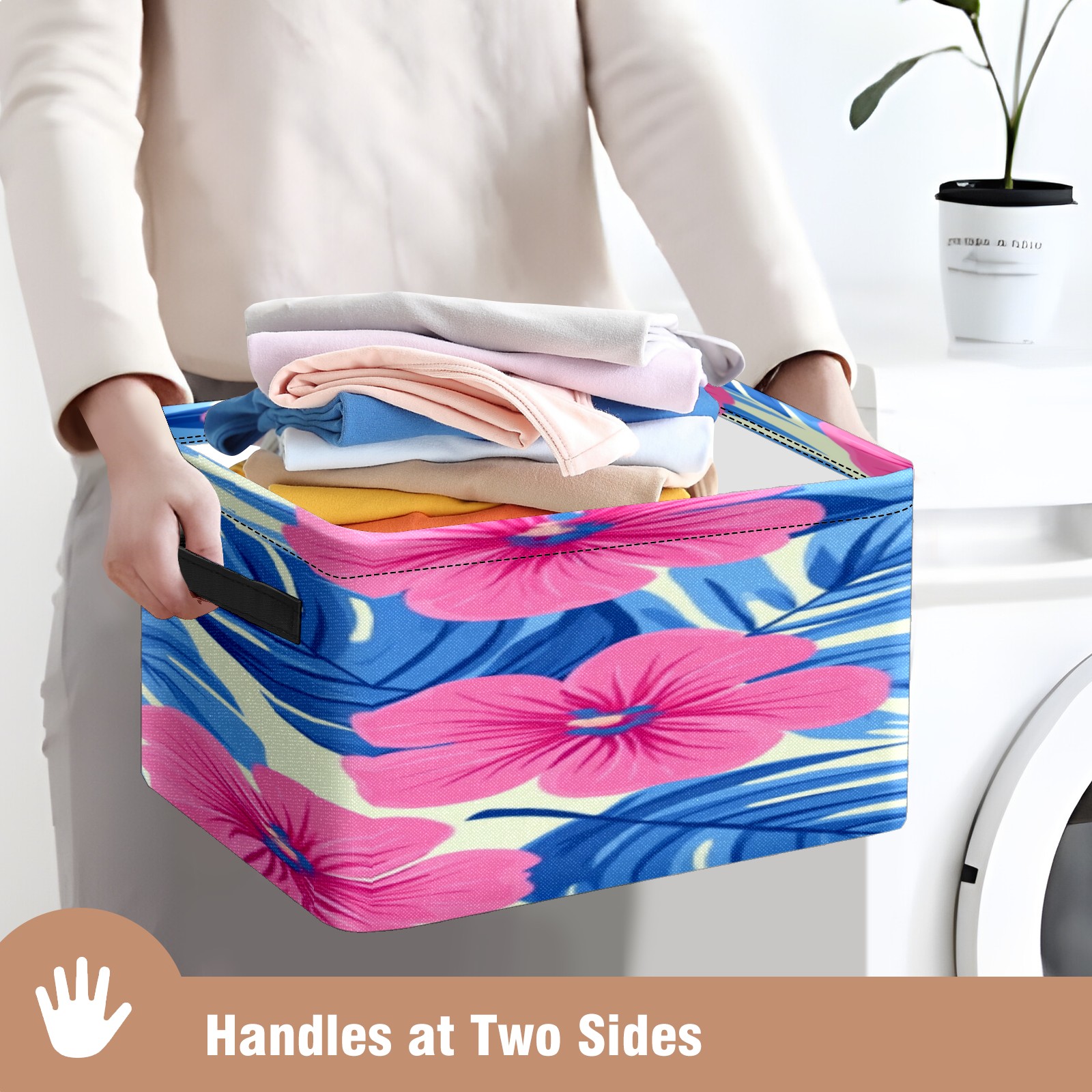 Foldable and Stackable Fabric Storage Basket for Home Organization with Handles, Decorative Closet Bins for Shelves, Laundry, and Toy Storage( Pink Flowers And Blue Leaves)