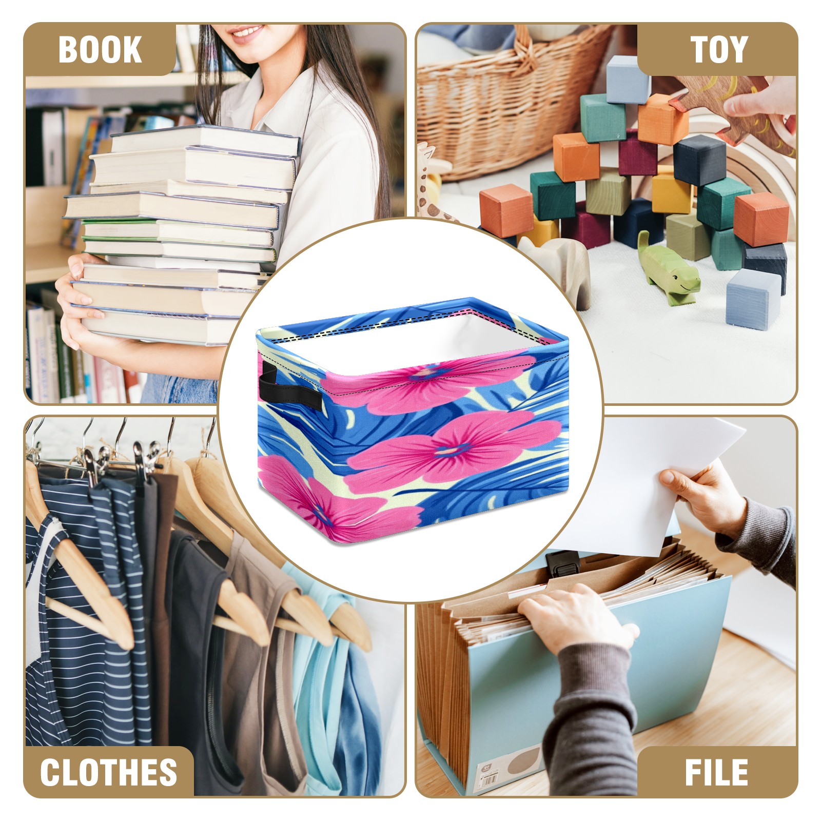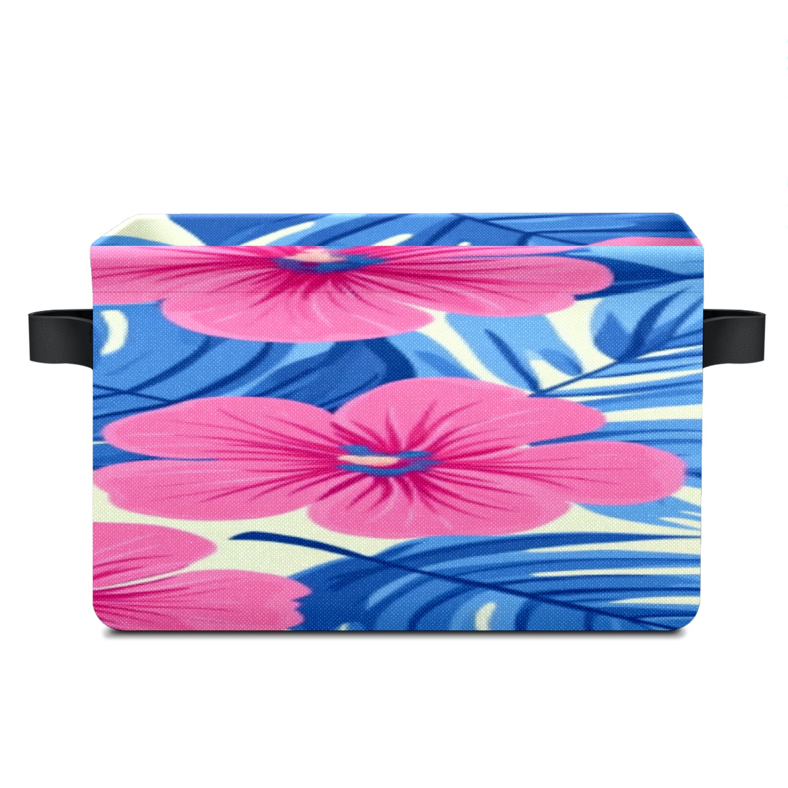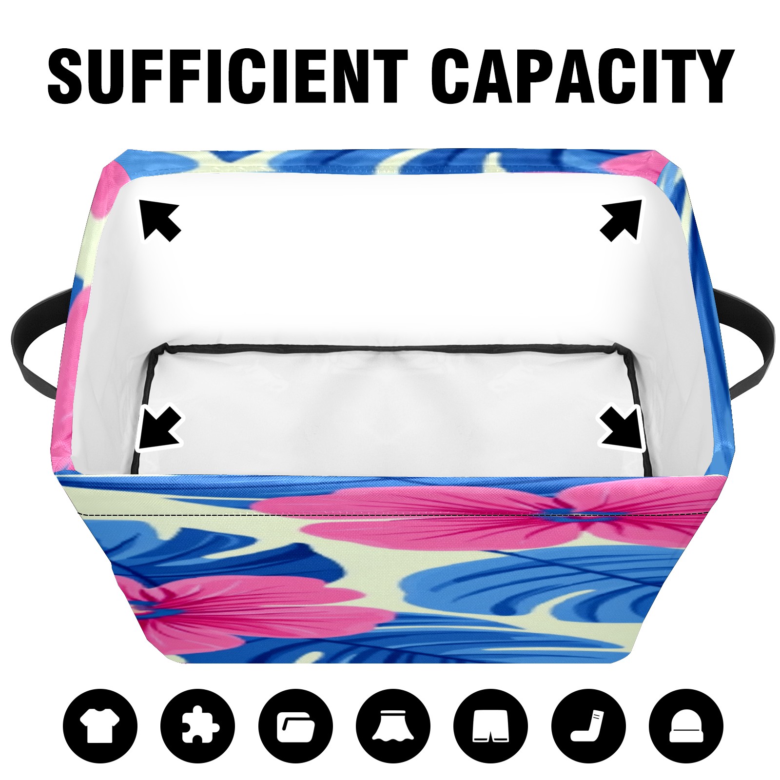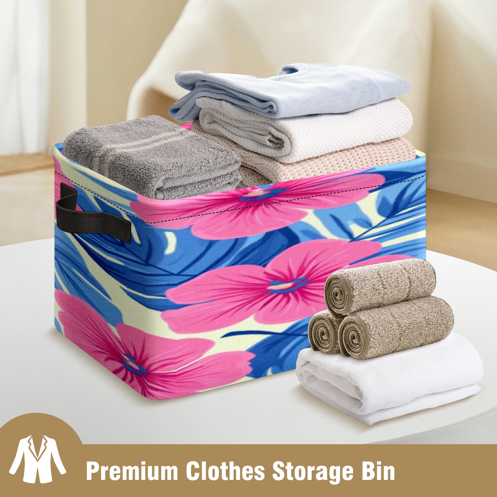 Foldable and Stackable Fabric Storage Basket for Home Organization with Handles, Decorative Closet Bins for Shelves, Laundry, and Toy Storage( Pink Flowers And Blue Leaves)