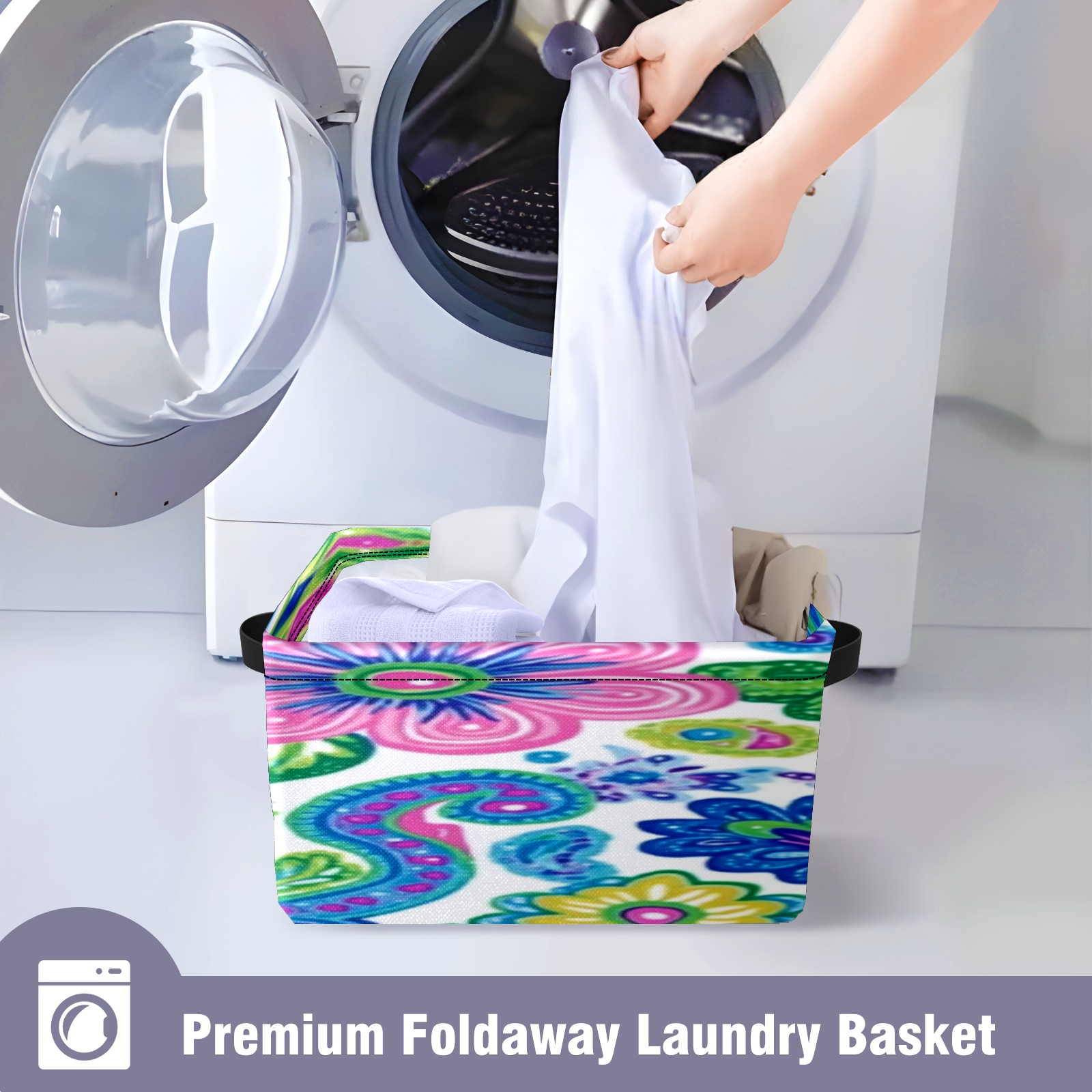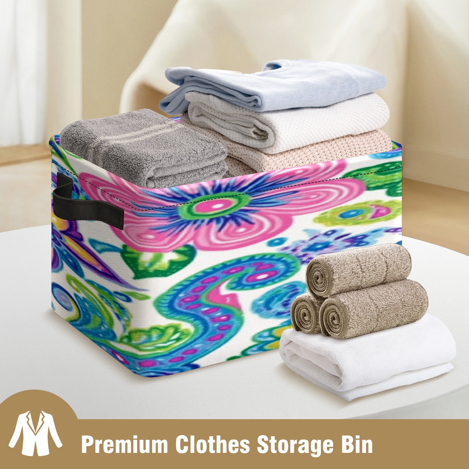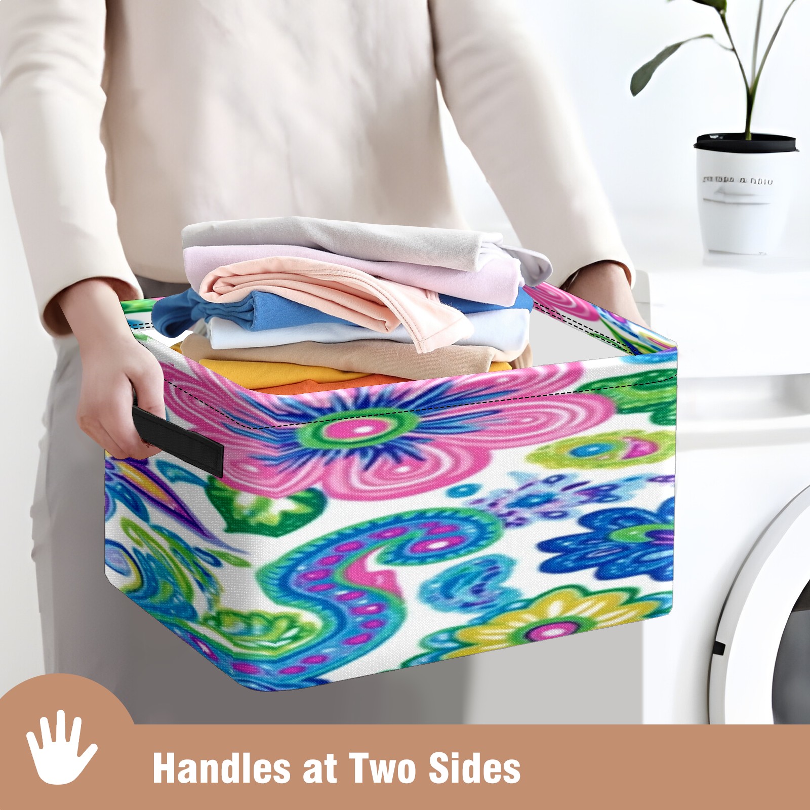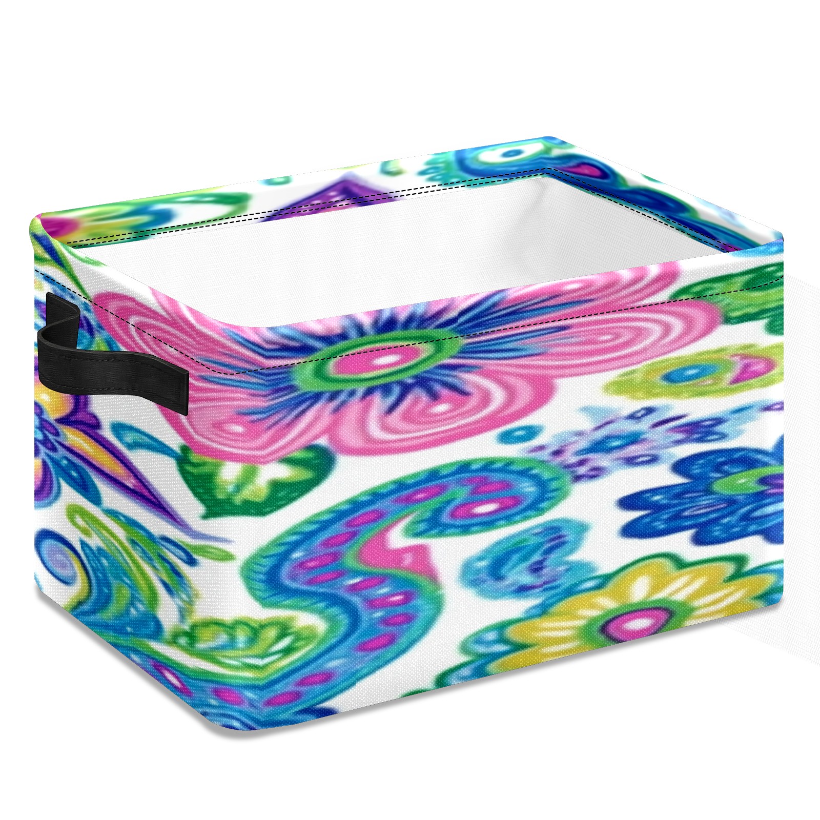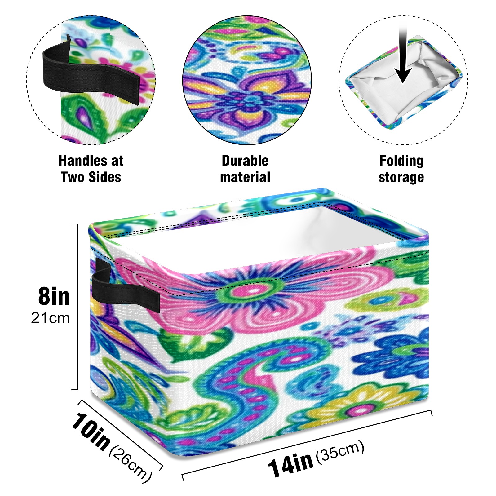 Foldable and Stackable Fabric Storage Basket for Home Organization with Handles, Decorative Closet Bins for Shelves, Laundry, and Toy Storage( Vibrant And Colorful Flowers)