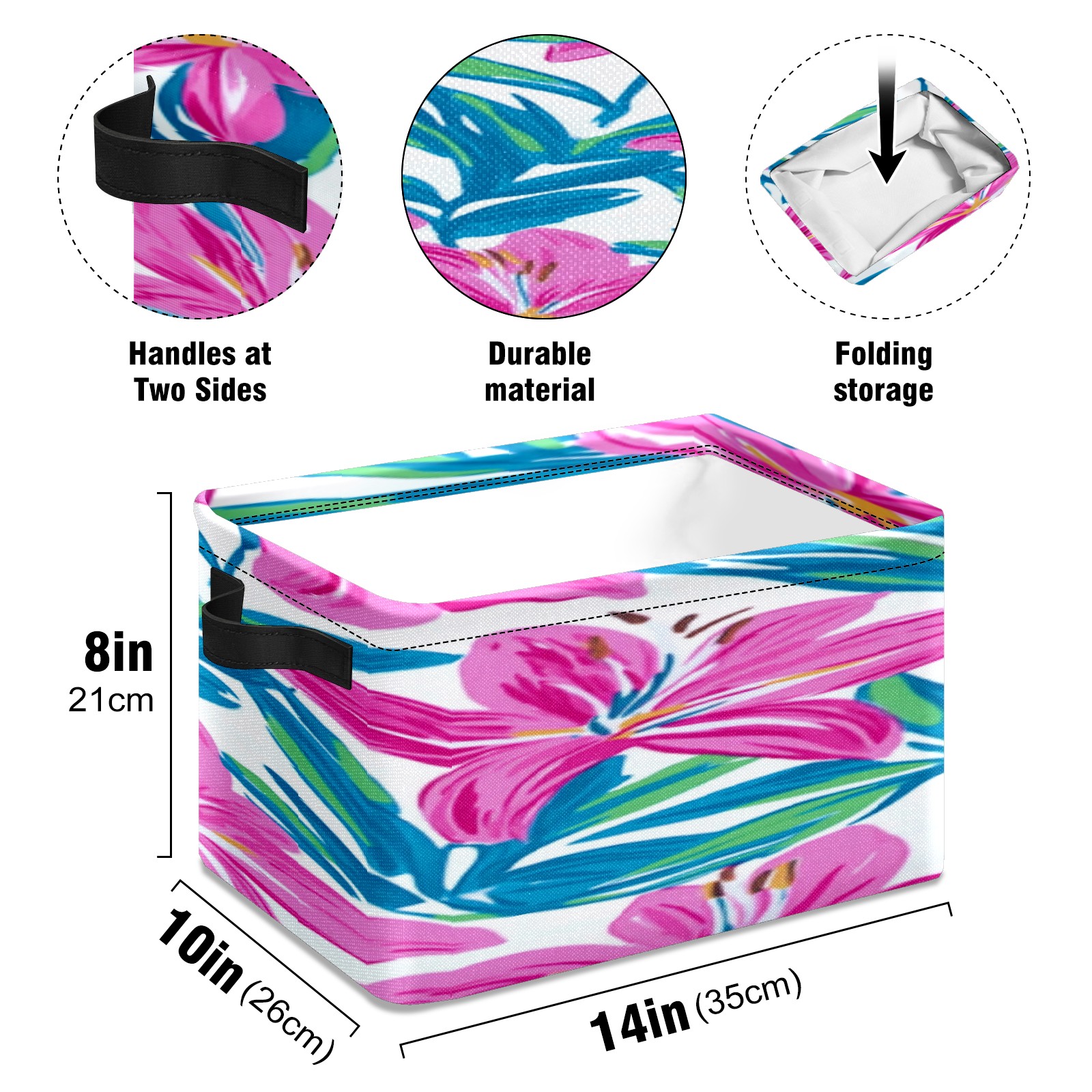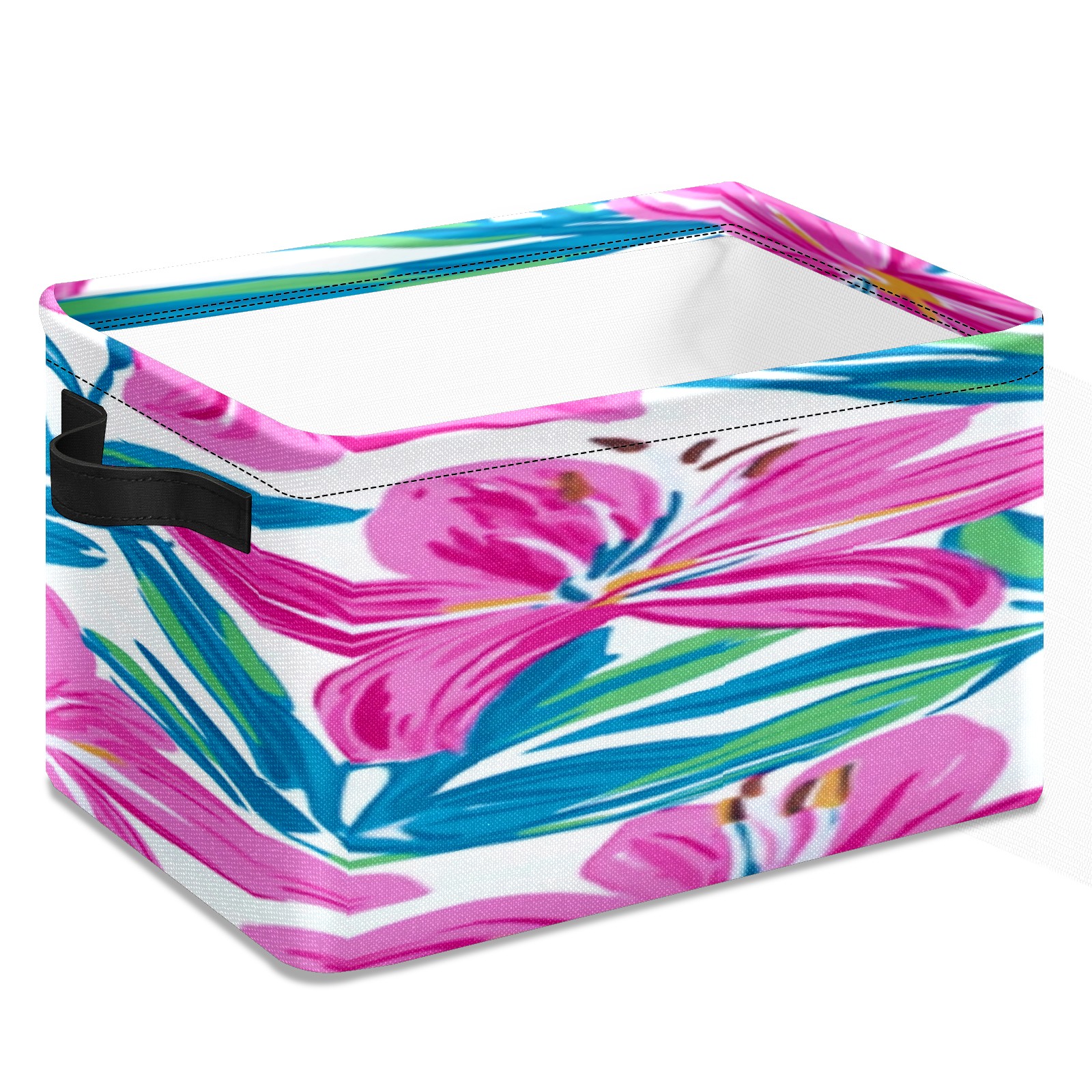 Foldable and Stackable Fabric Storage Basket for Home Organization with Handles, Decorative Closet Bins for Shelves, Laundry, and Toy Storage( Teal Lily)
