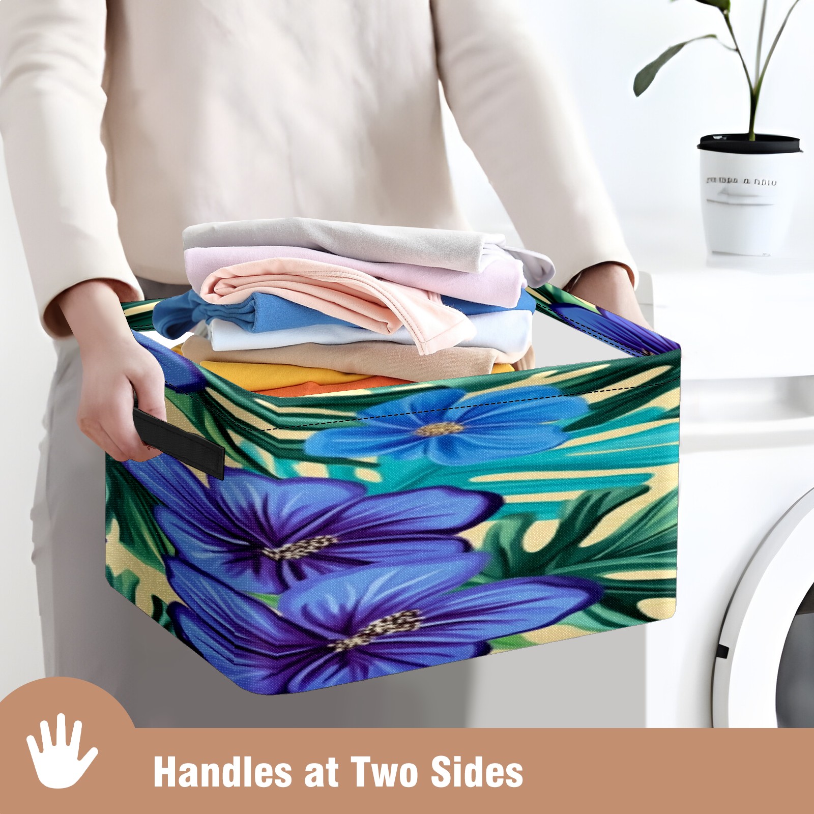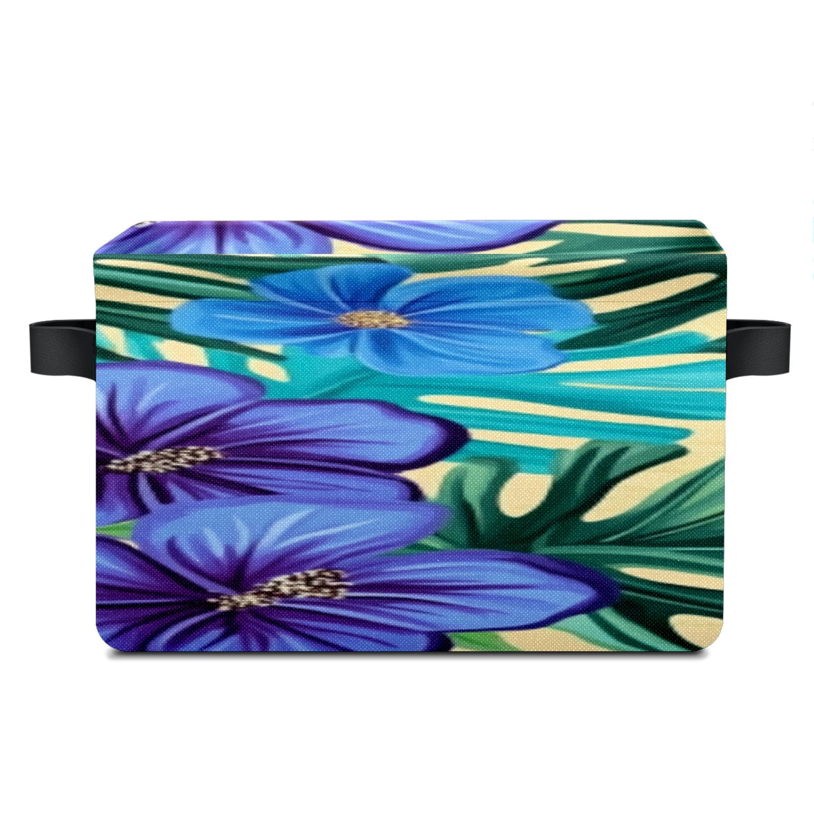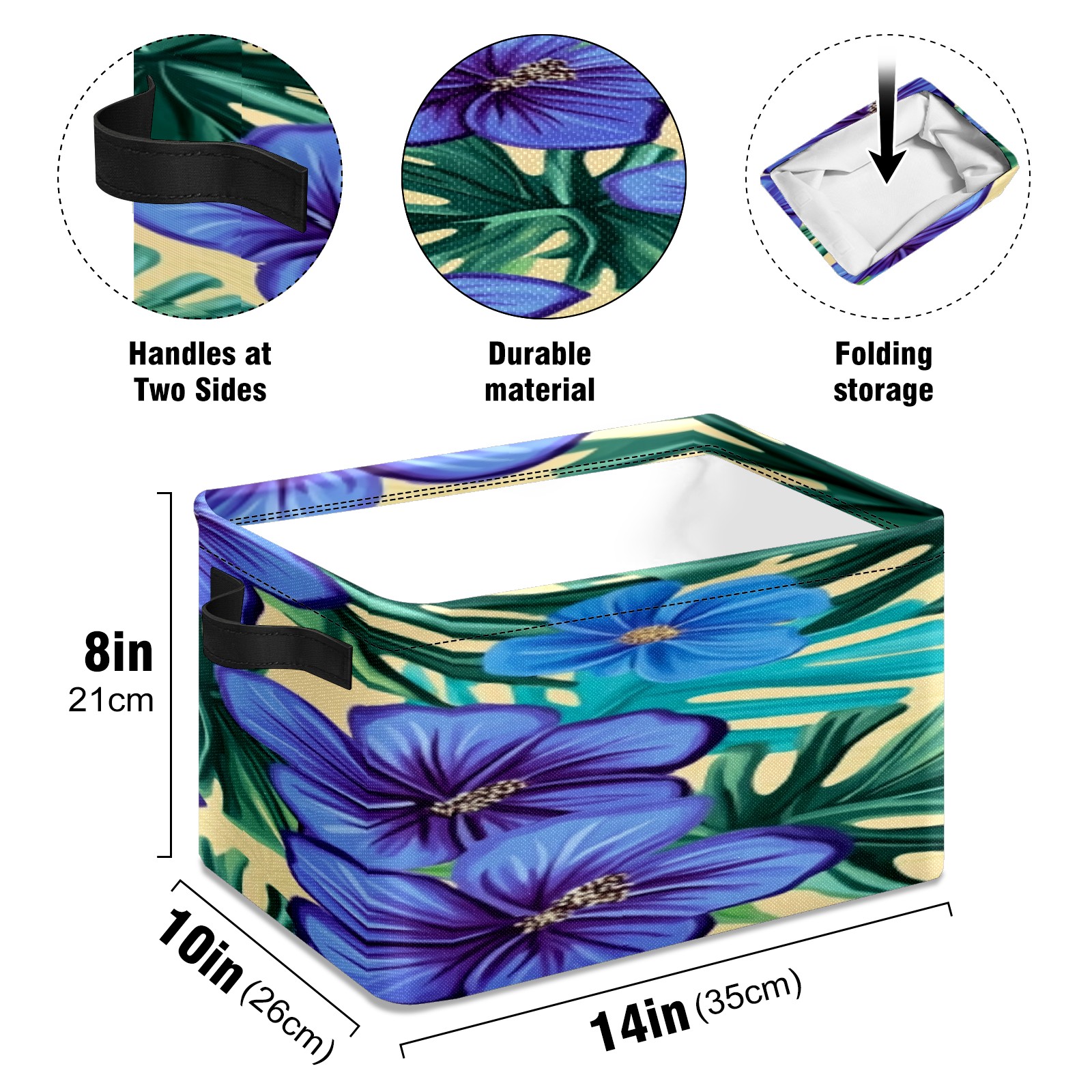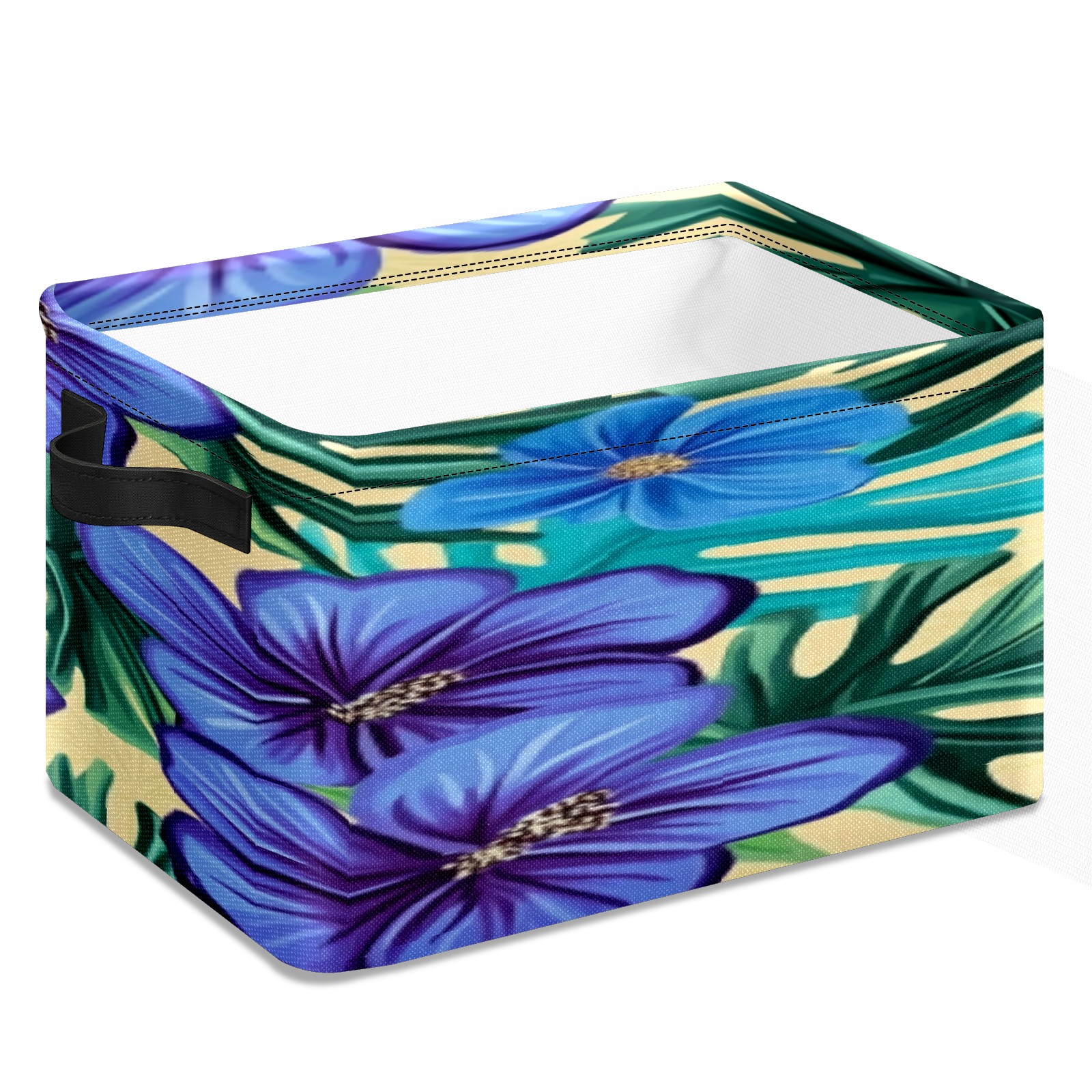 Foldable and Stackable Fabric Storage Basket for Home Organization with Handles, Decorative Closet Bins for Shelves, Laundry, and Toy Storage( Blue Hibiscus Flowers)