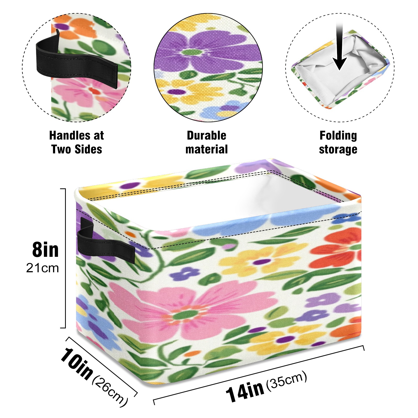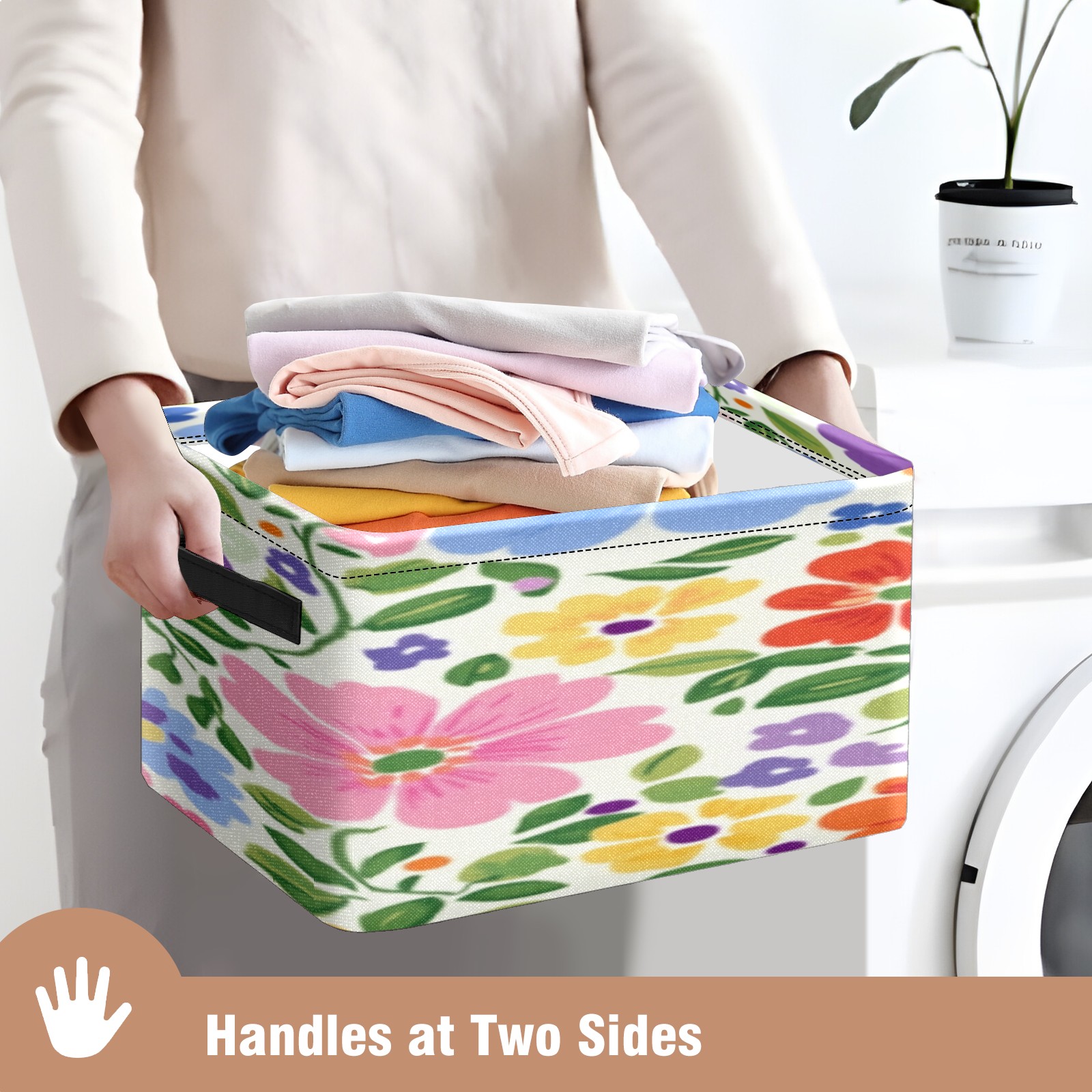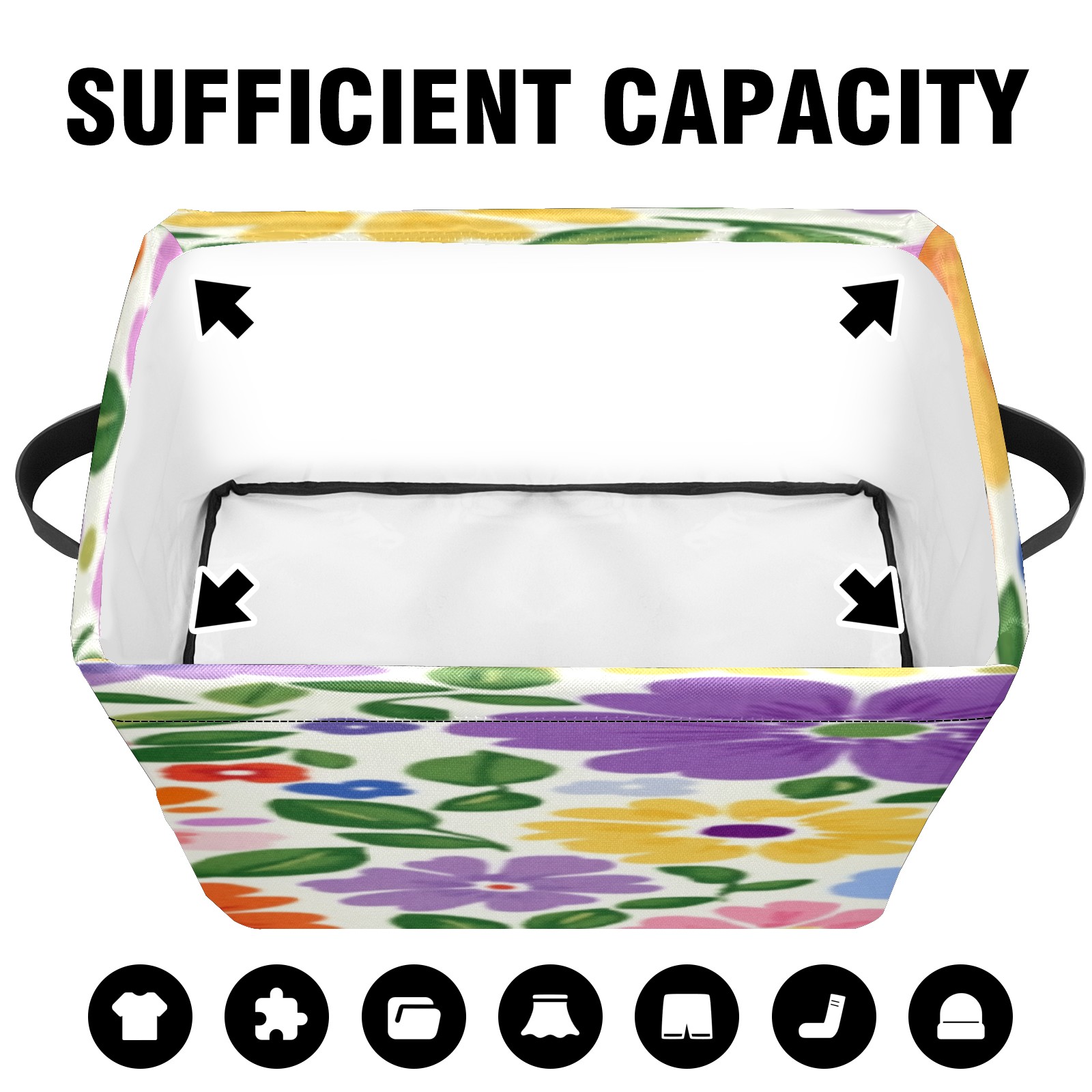 Foldable and Stackable Fabric Storage Basket for Home Organization with Handles, Decorative Closet Bins for Shelves, Laundry, and Toy Storage( Colorful Flowers)