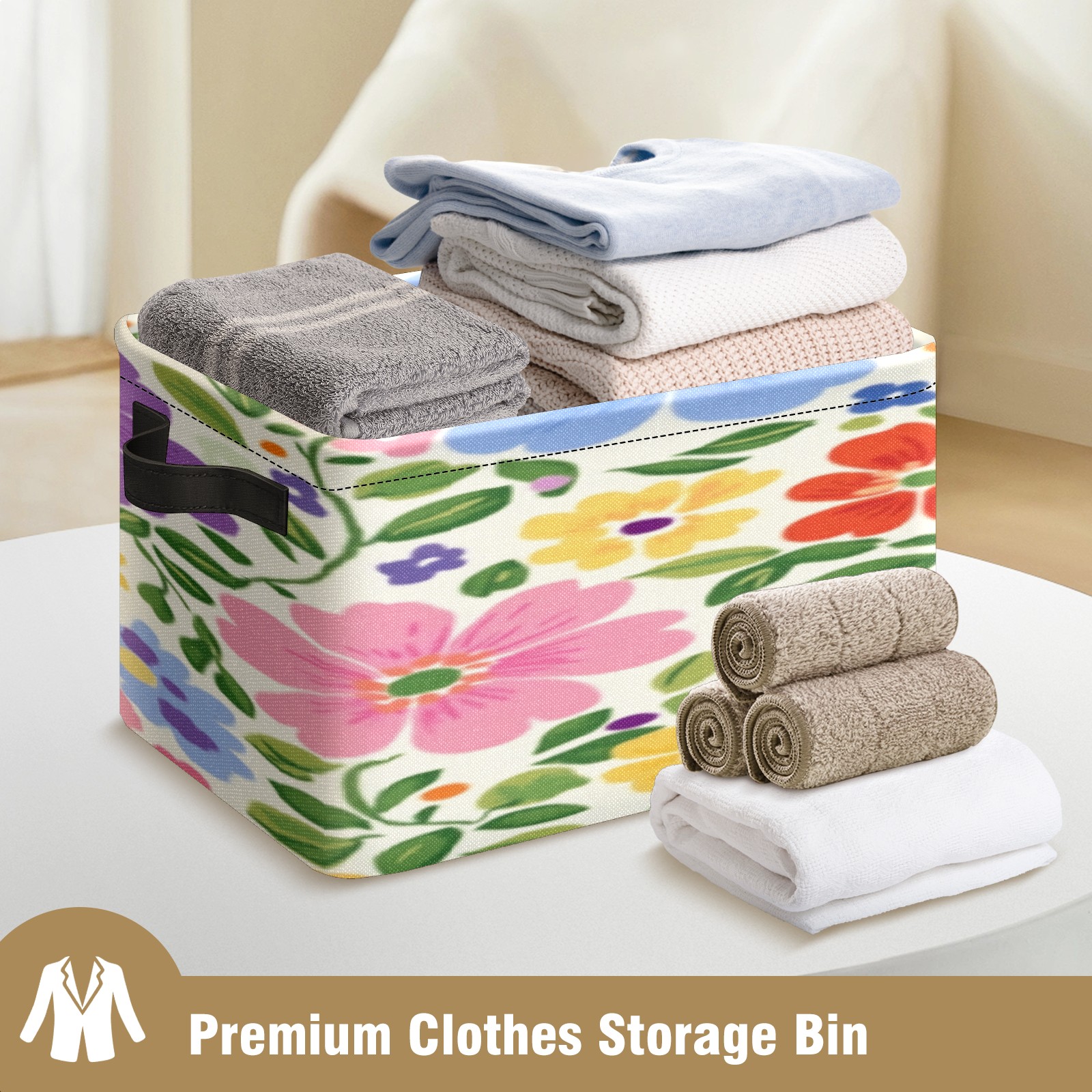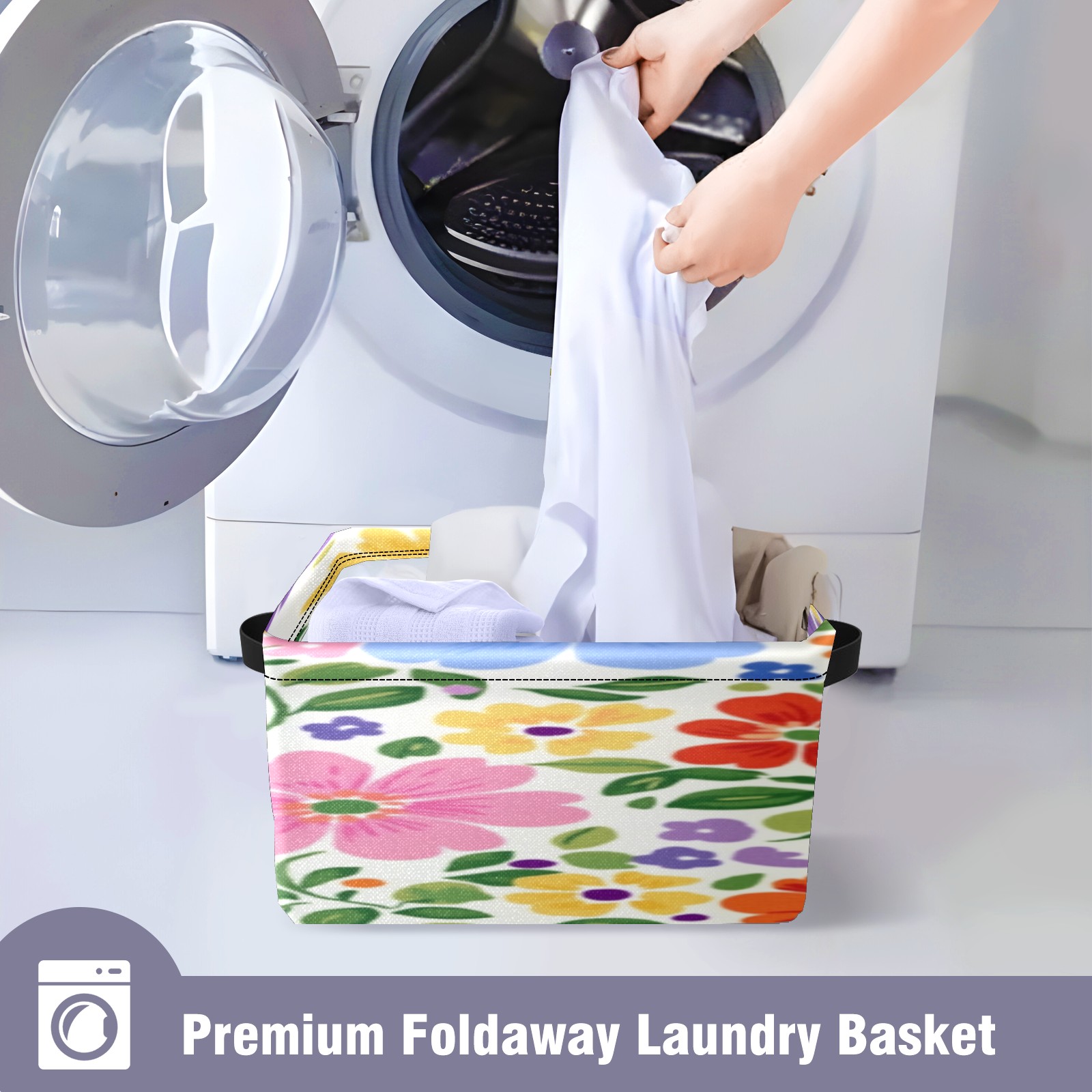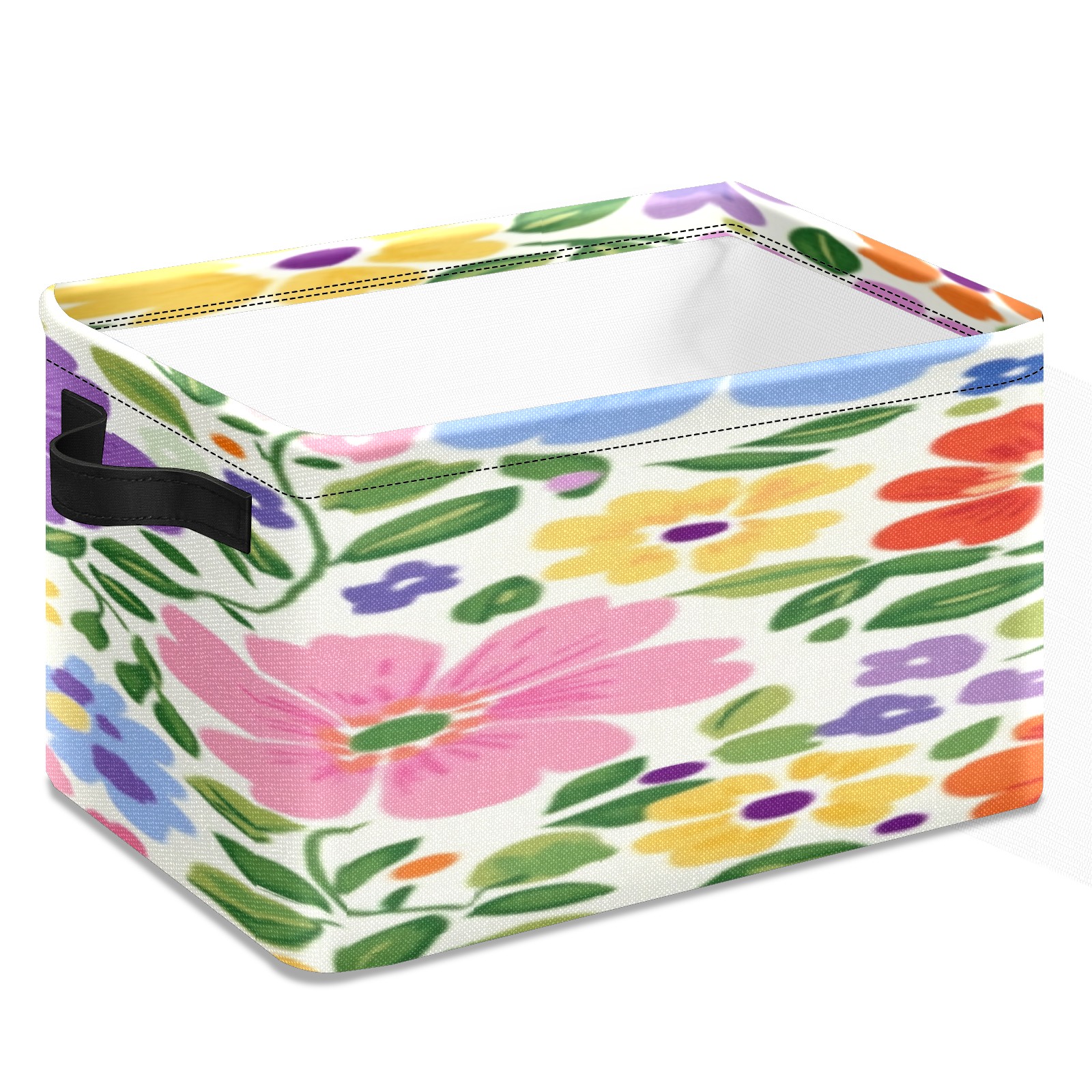 Foldable and Stackable Fabric Storage Basket for Home Organization with Handles, Decorative Closet Bins for Shelves, Laundry, and Toy Storage( Colorful Flowers)