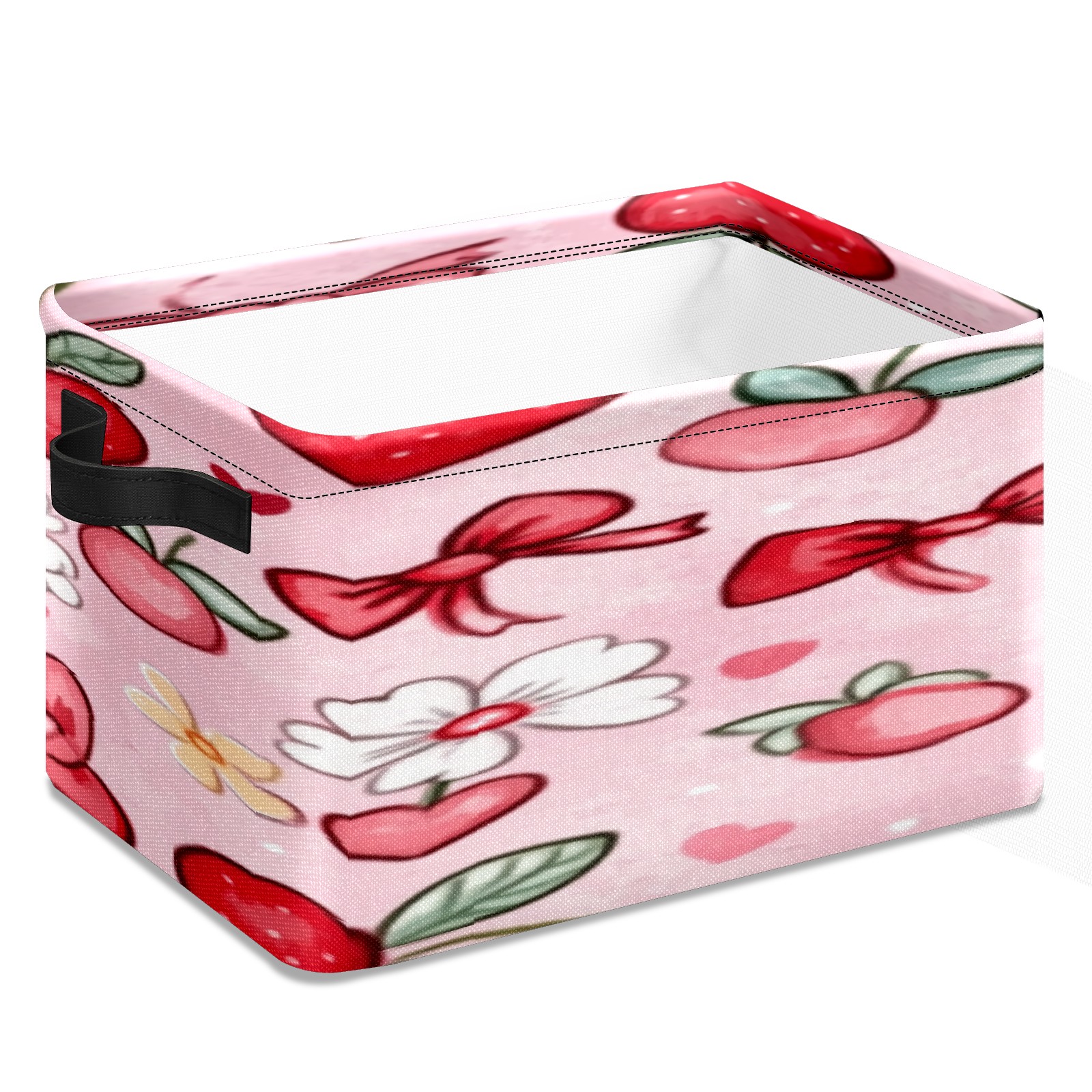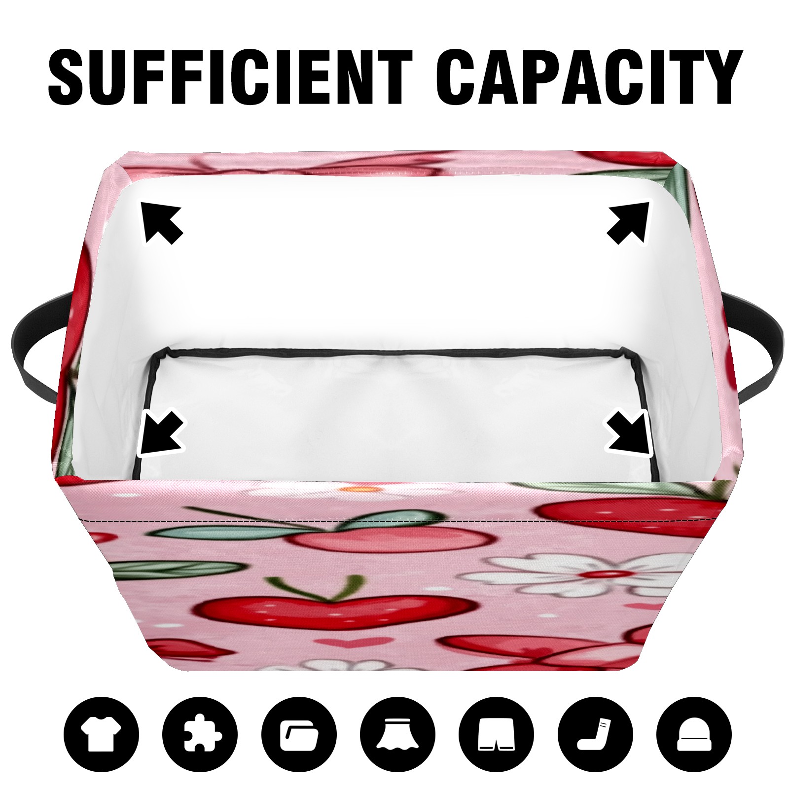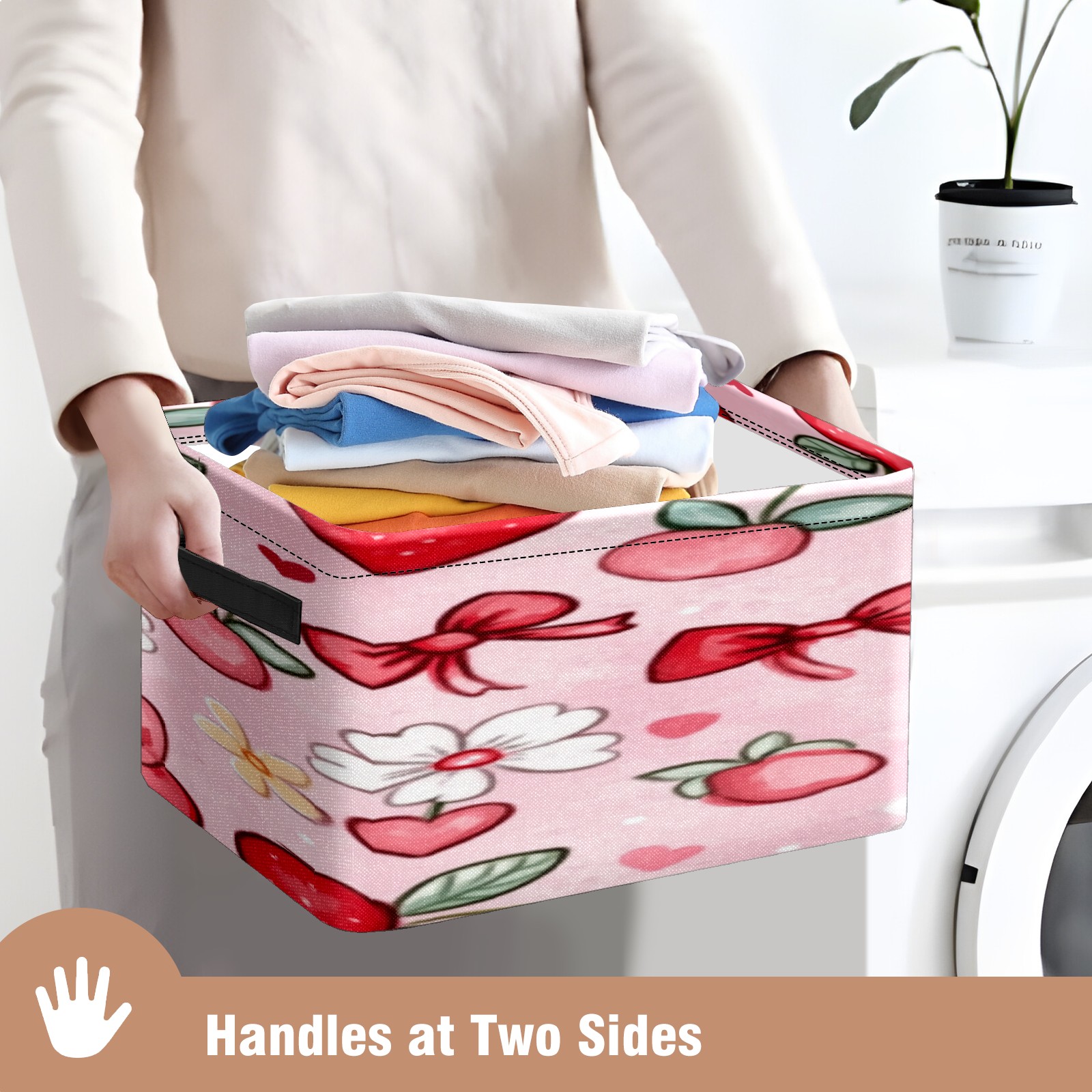 Foldable and Stackable Fabric Storage Basket for Home Organization with Handles, Decorative Closet Bins for Shelves, Laundry, and Toy Storage( Red And White Hearts)