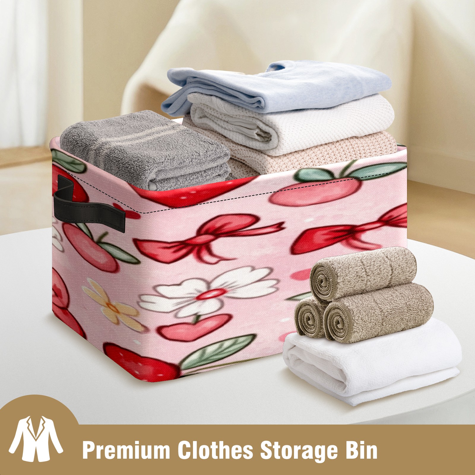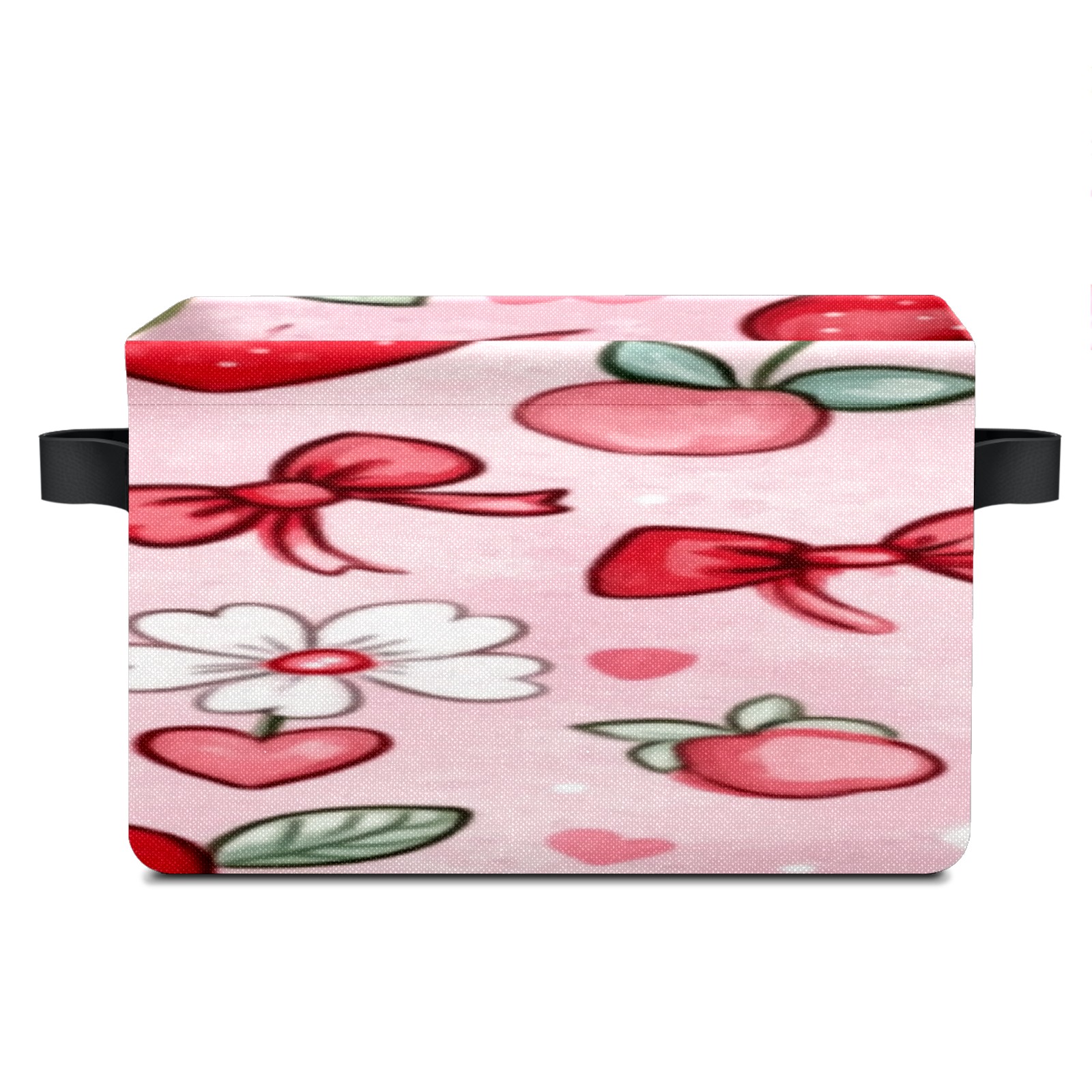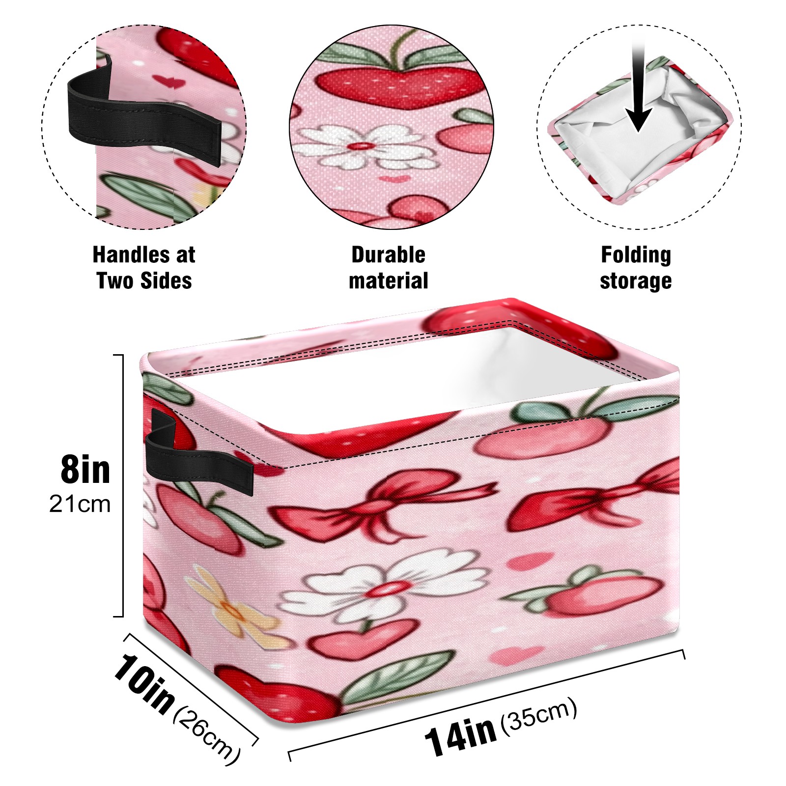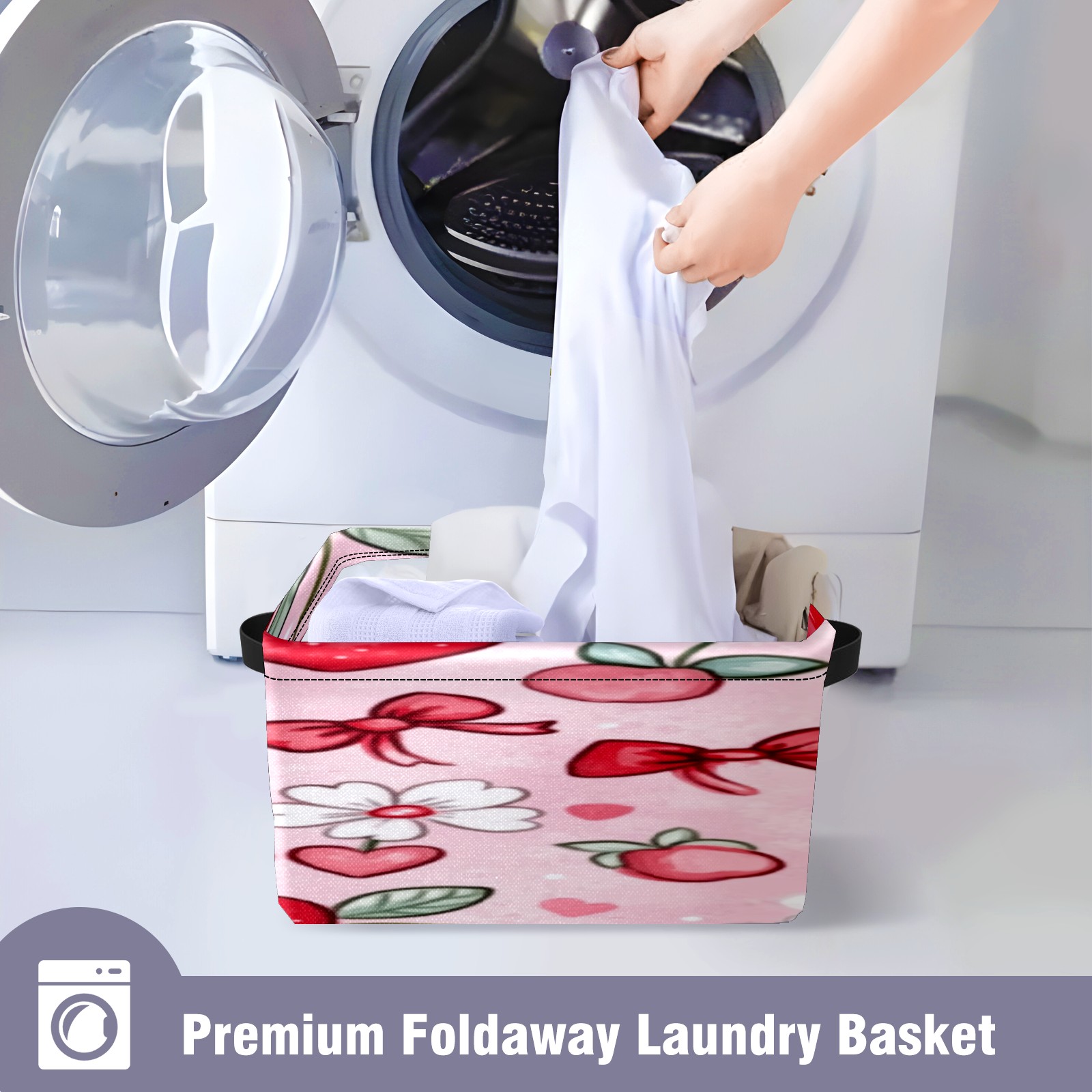 Foldable and Stackable Fabric Storage Basket for Home Organization with Handles, Decorative Closet Bins for Shelves, Laundry, and Toy Storage( Red And White Hearts)