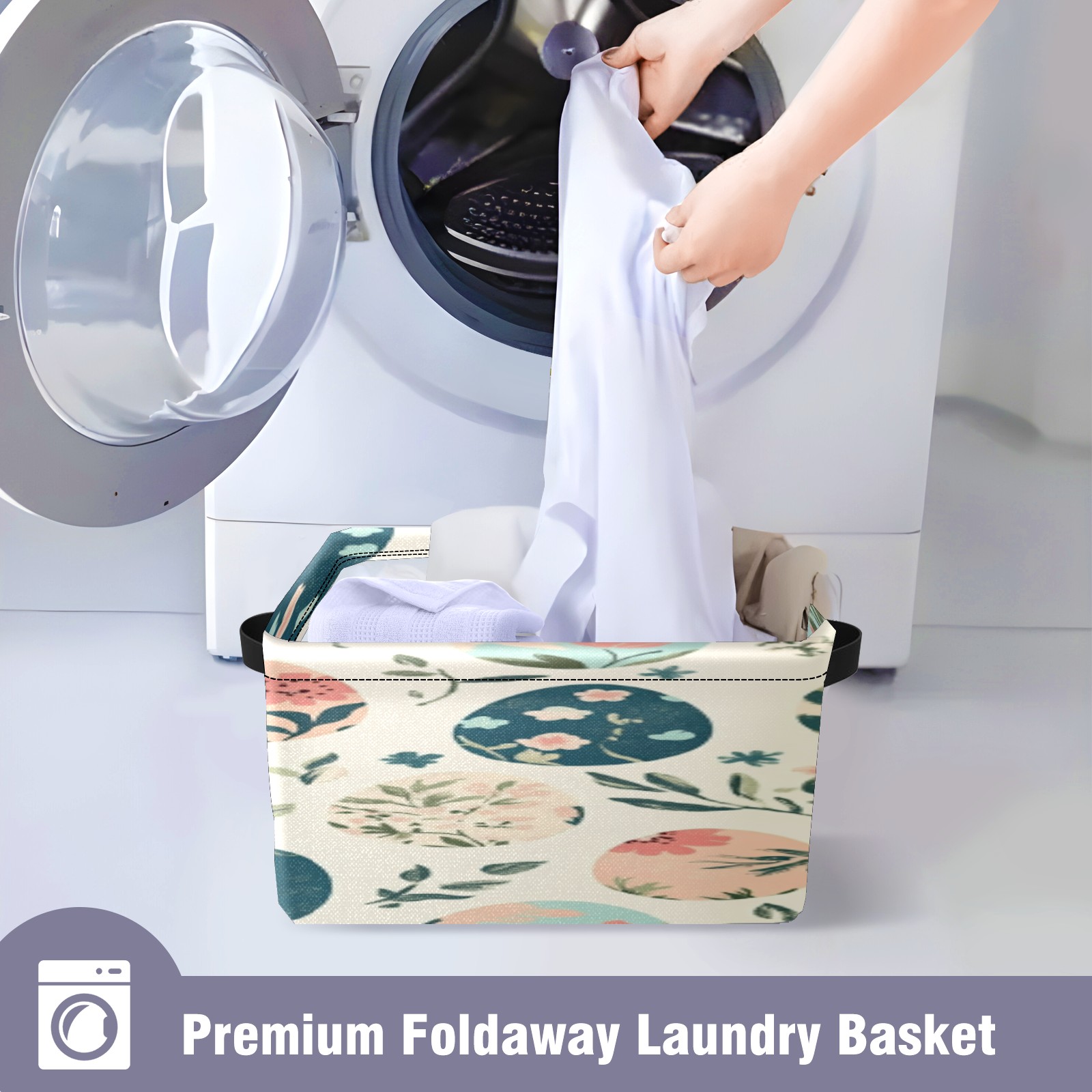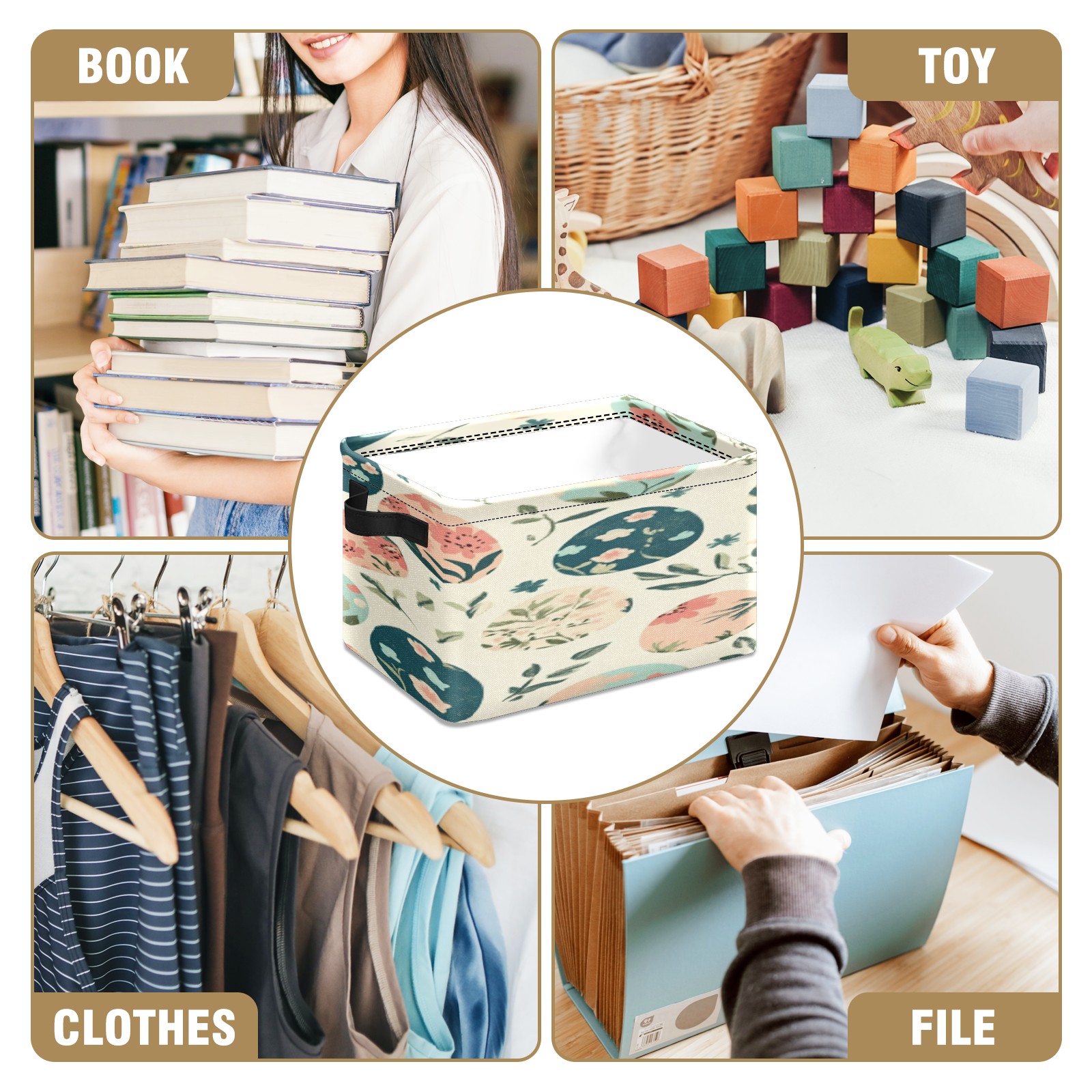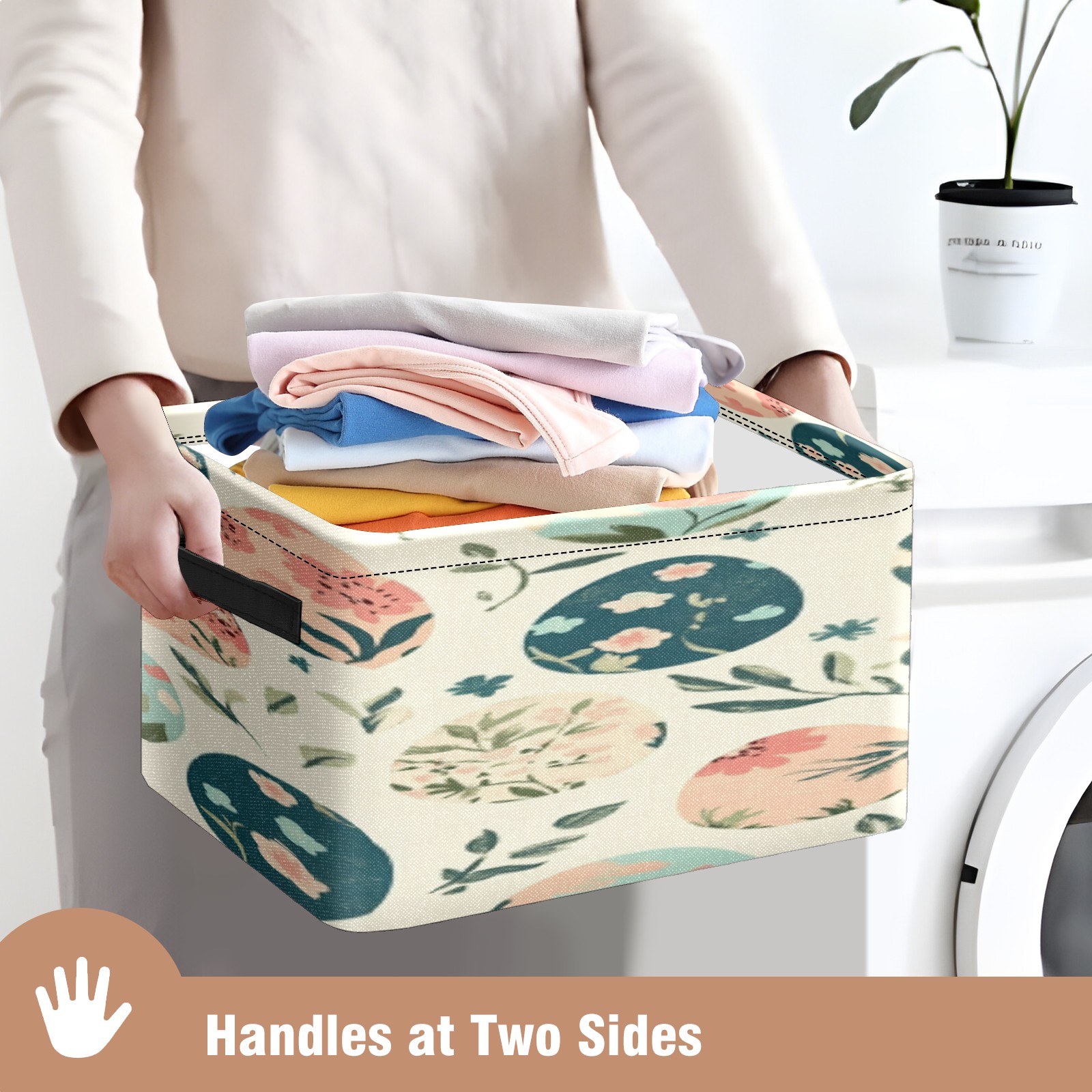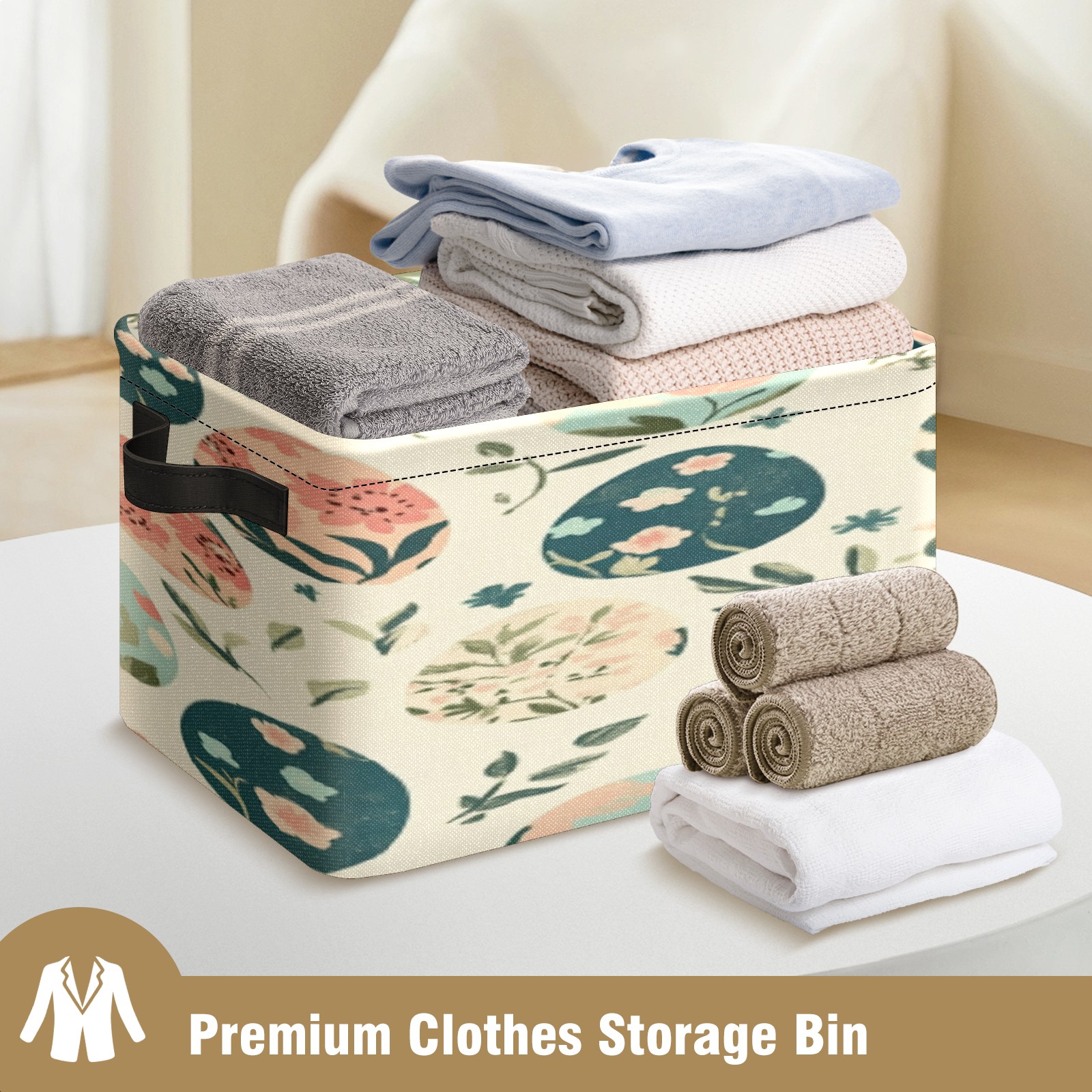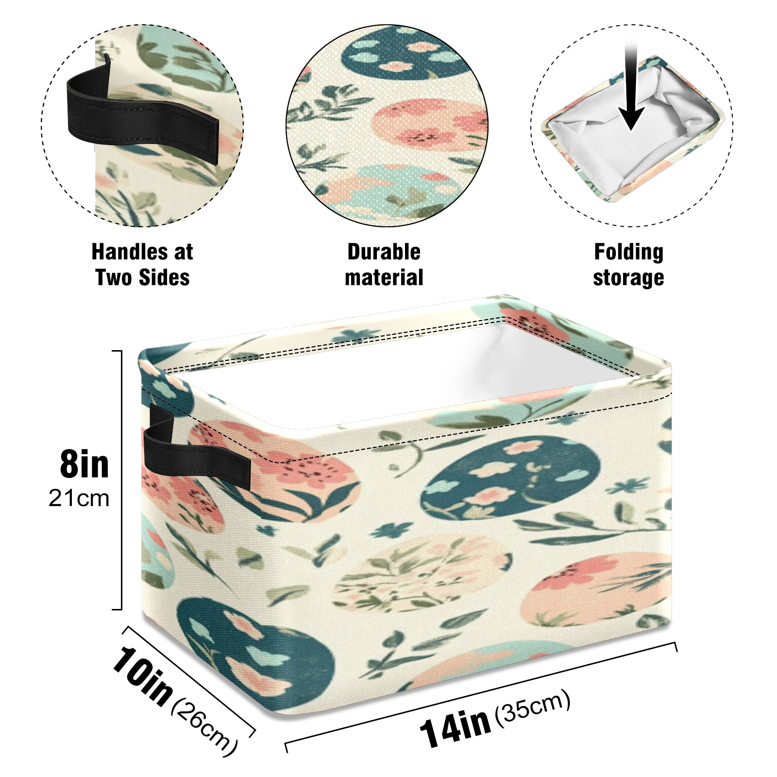 Foldable and Stackable Fabric Storage Basket for Home Organization with Handles, Decorative Closet Bins for Shelves, Laundry, and Toy Storage( Easter Eggs)