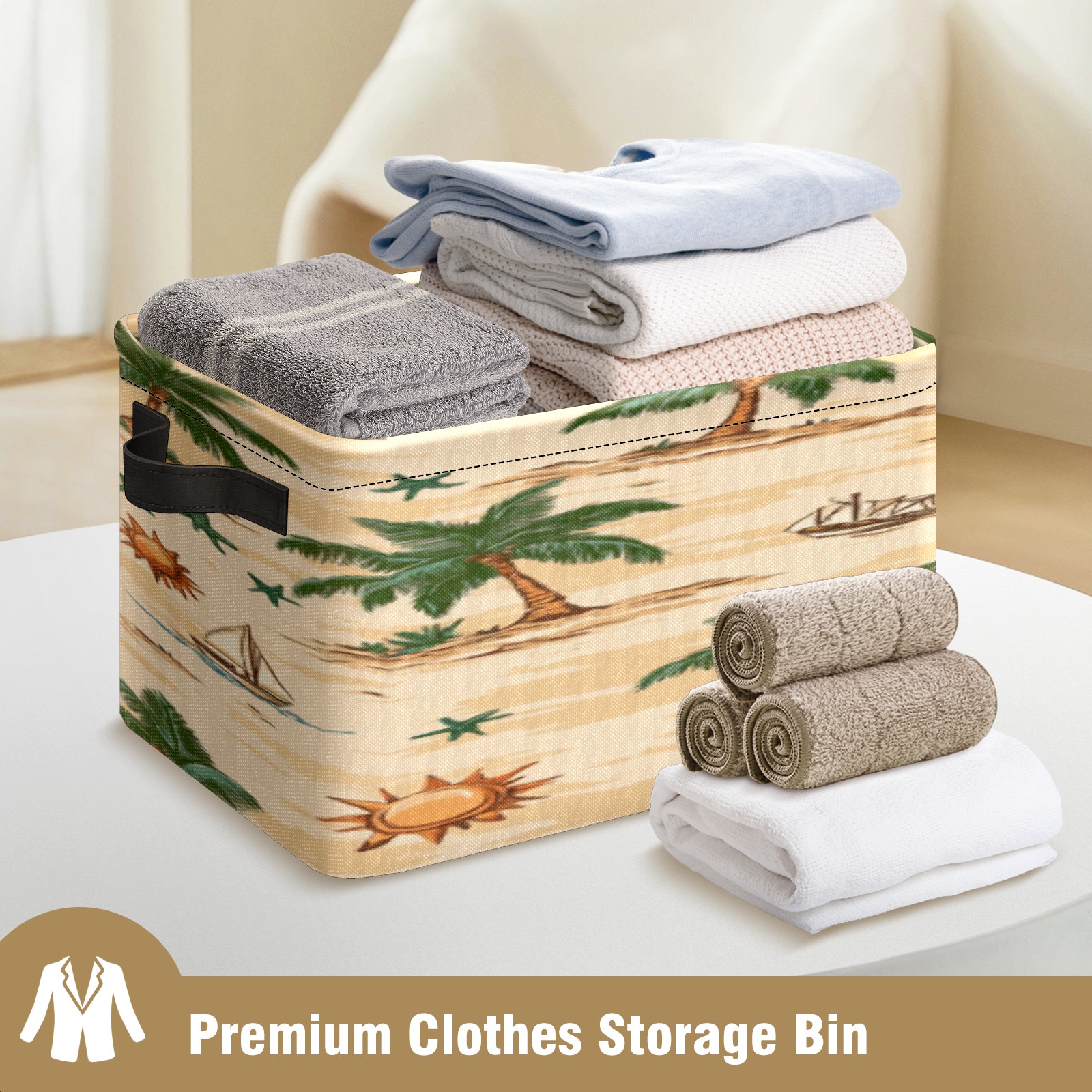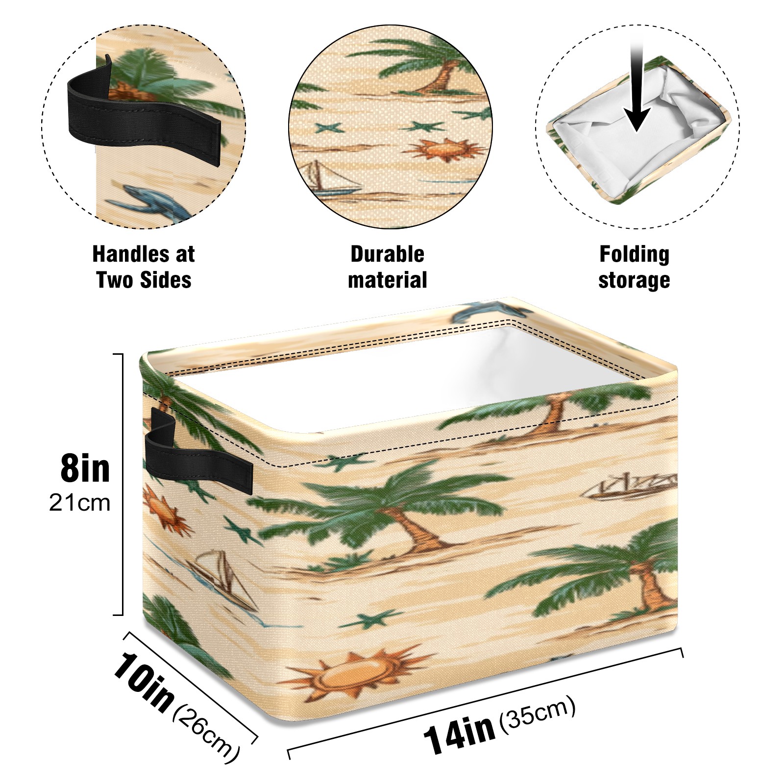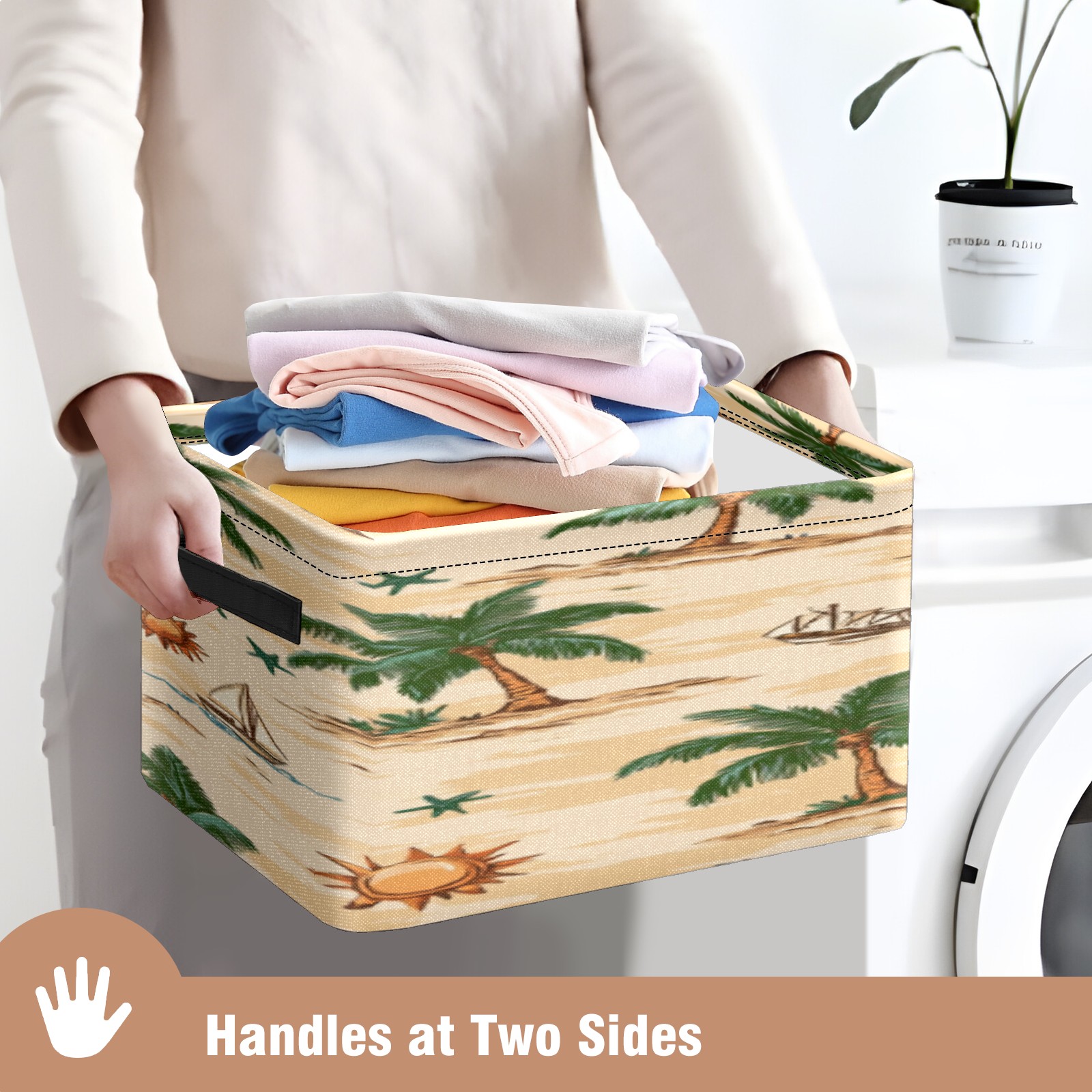 Foldable and Stackable Fabric Storage Basket for Home Organization with Handles, Decorative Closet Bins for Shelves, Laundry, and Toy Storage( Palm Trees Suns And Starfish)