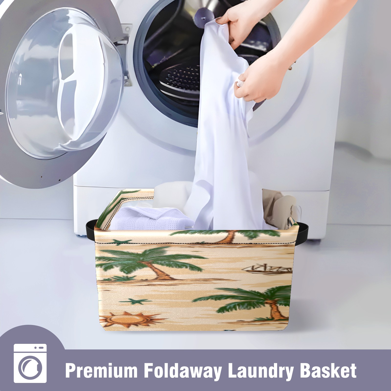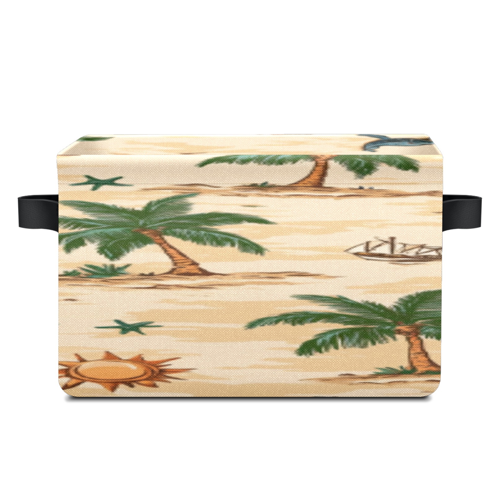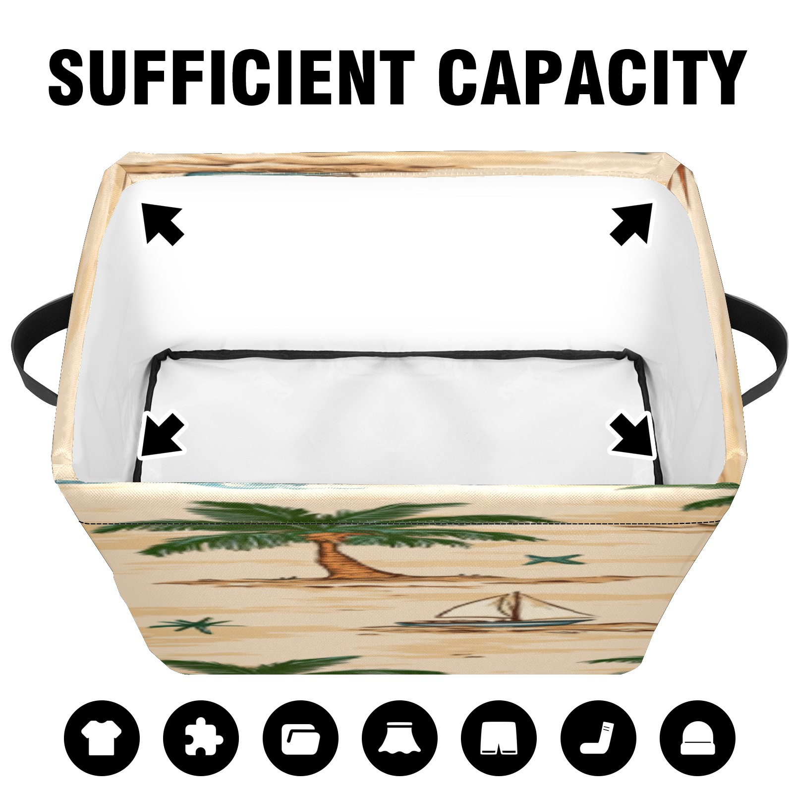 Foldable and Stackable Fabric Storage Basket for Home Organization with Handles, Decorative Closet Bins for Shelves, Laundry, and Toy Storage( Palm Trees Suns And Starfish)