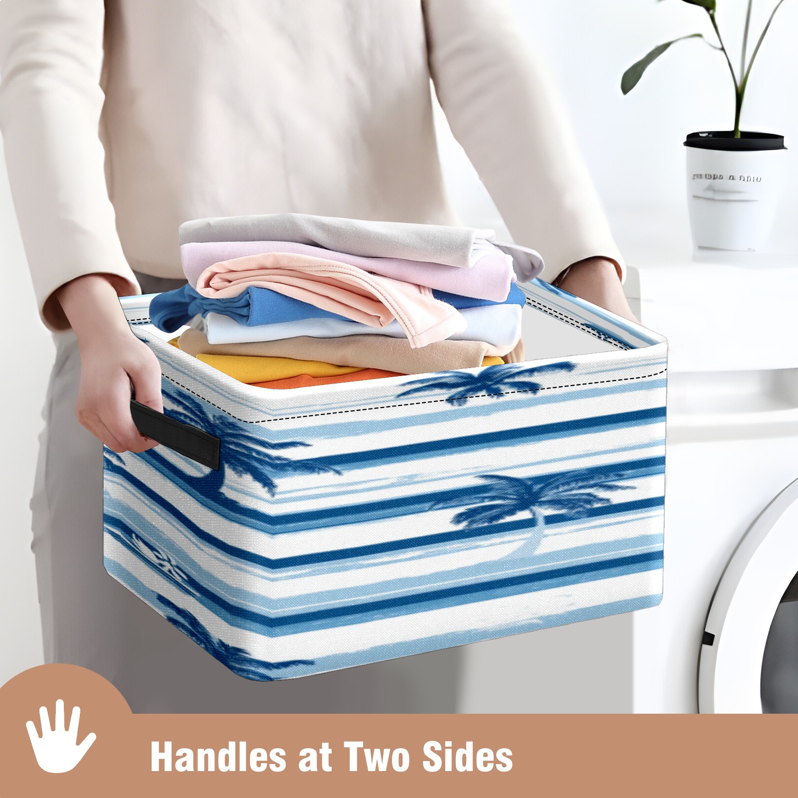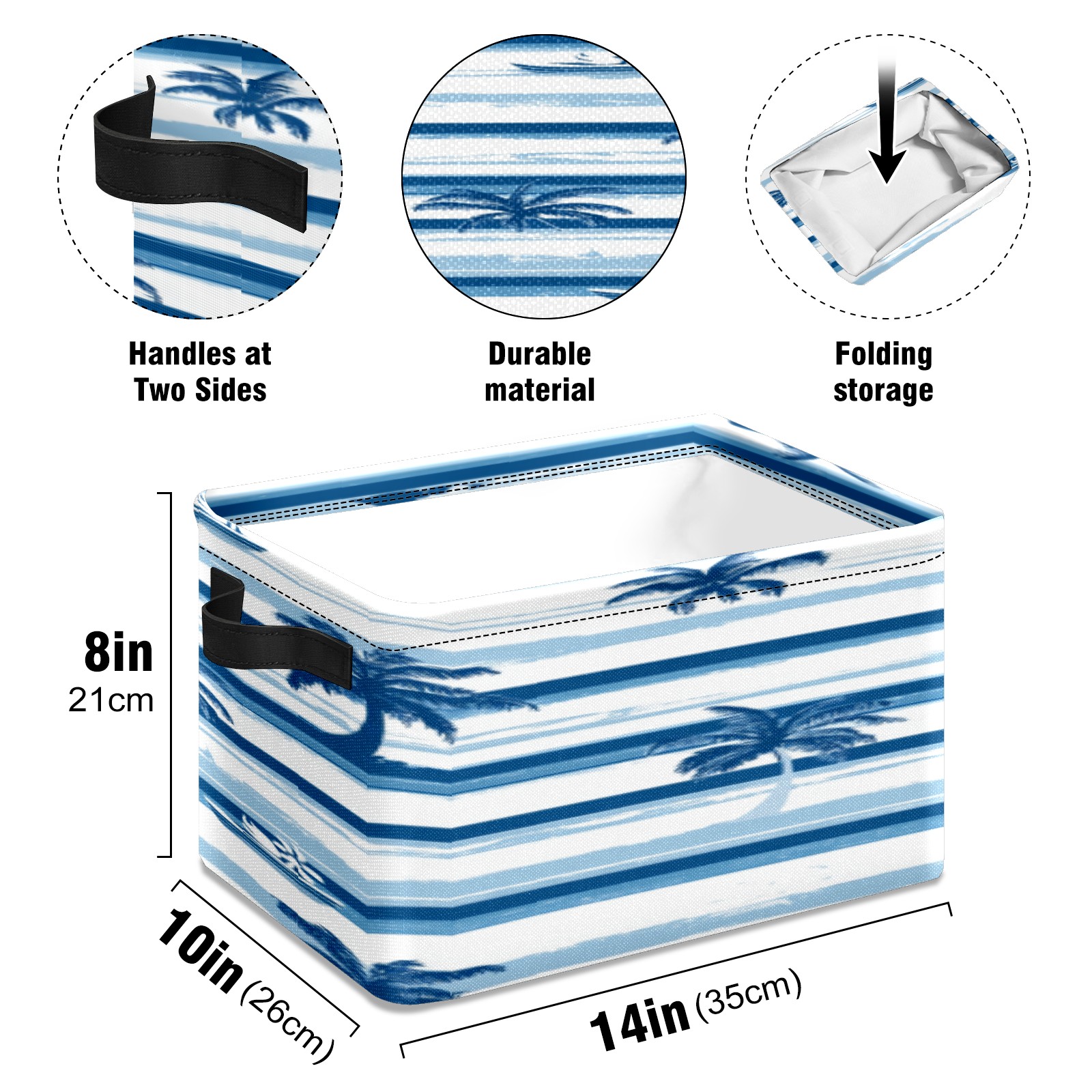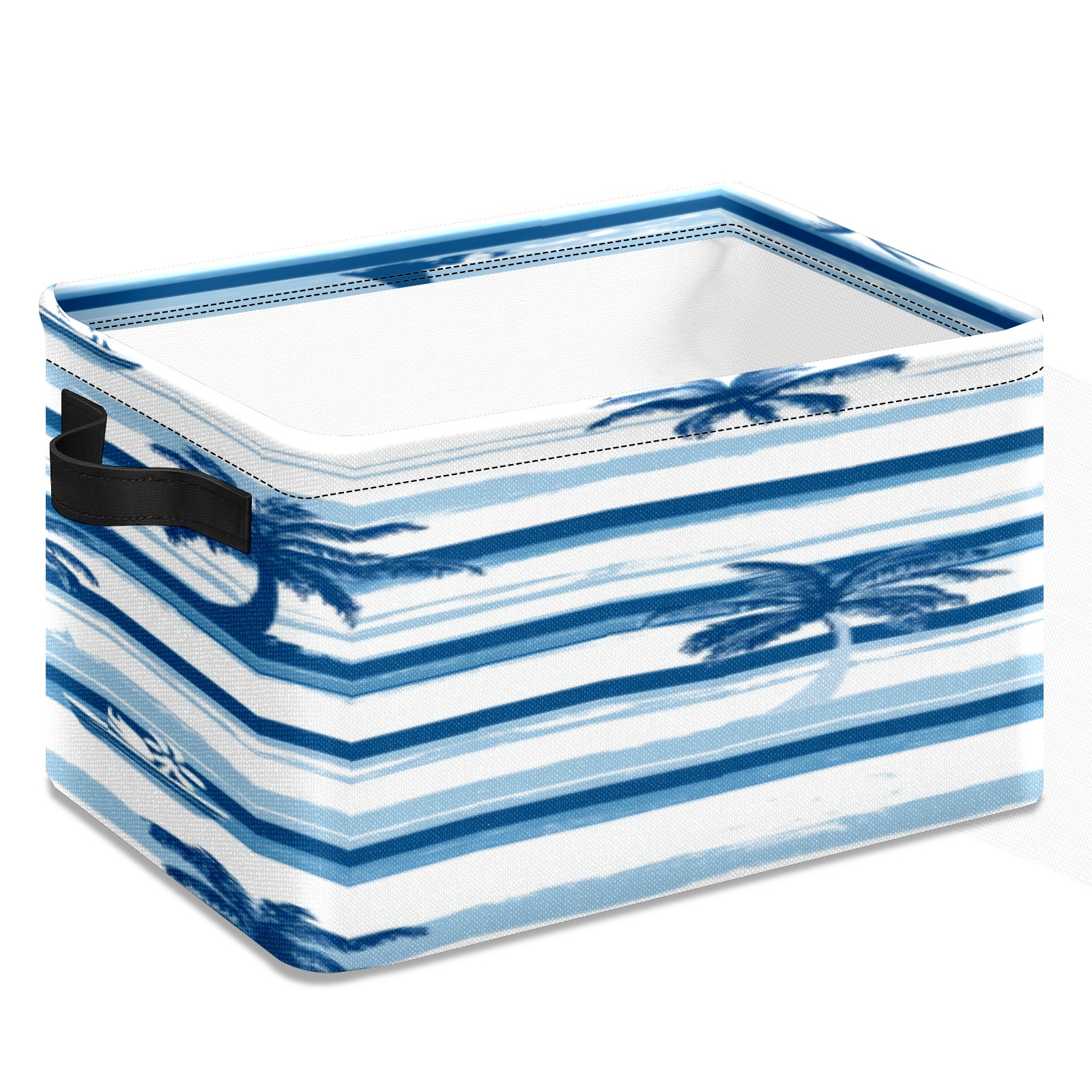 Foldable and Stackable Fabric Storage Basket for Home Organization with Handles, Decorative Closet Bins for Shelves, Laundry, and Toy Storage( Palm Trees And Boats)
