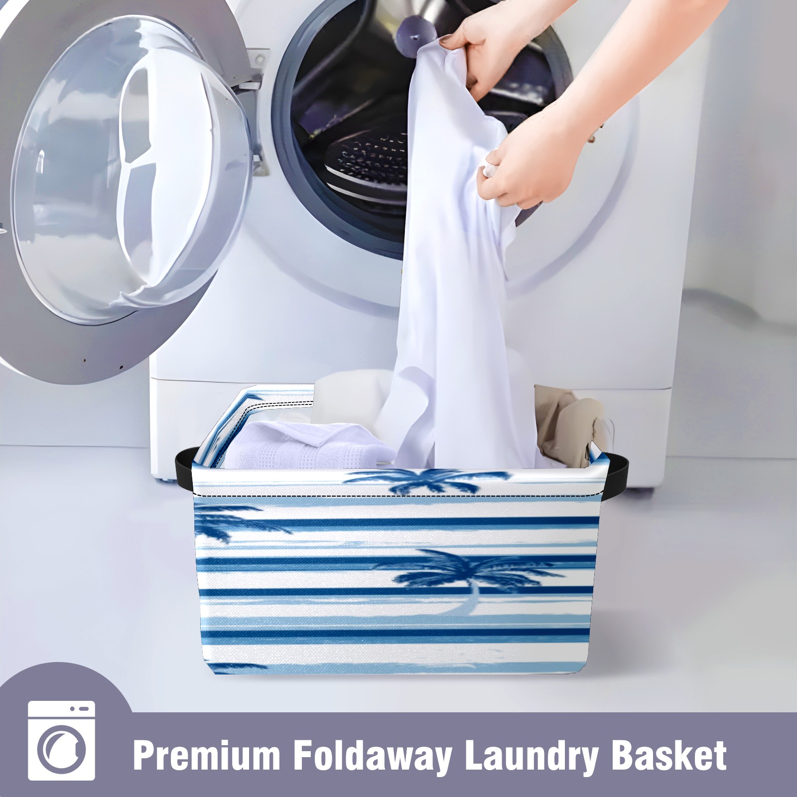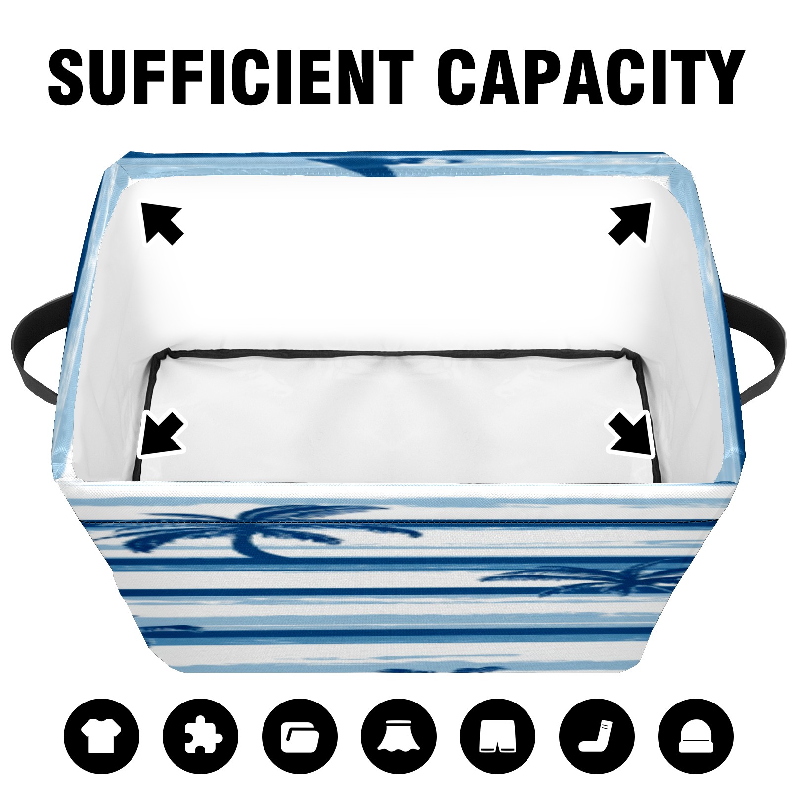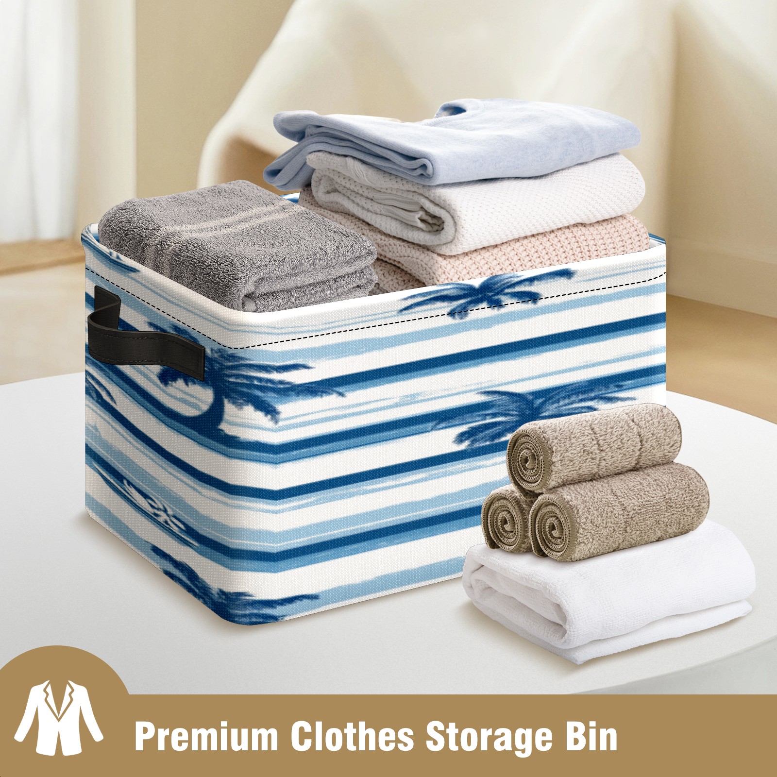 Foldable and Stackable Fabric Storage Basket for Home Organization with Handles, Decorative Closet Bins for Shelves, Laundry, and Toy Storage( Palm Trees And Boats)